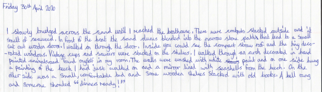 Wanting to know more about my ancestors, I grabbed another diary and read another extract. This time it was from 2020 and written by my Great Nan. Strangely it was written in coloured pens!