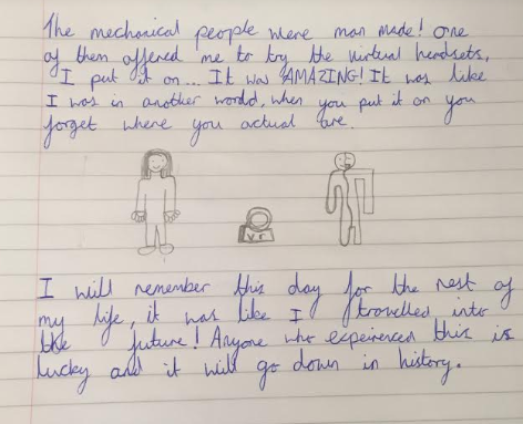 They looked at each other. After a while of feeling scared and unsure, something grabbed them by the shoulder and pushed something on their faces and all they could see was technology that for sure wasn't in the room before, they struggled to take off but eventually they did.
