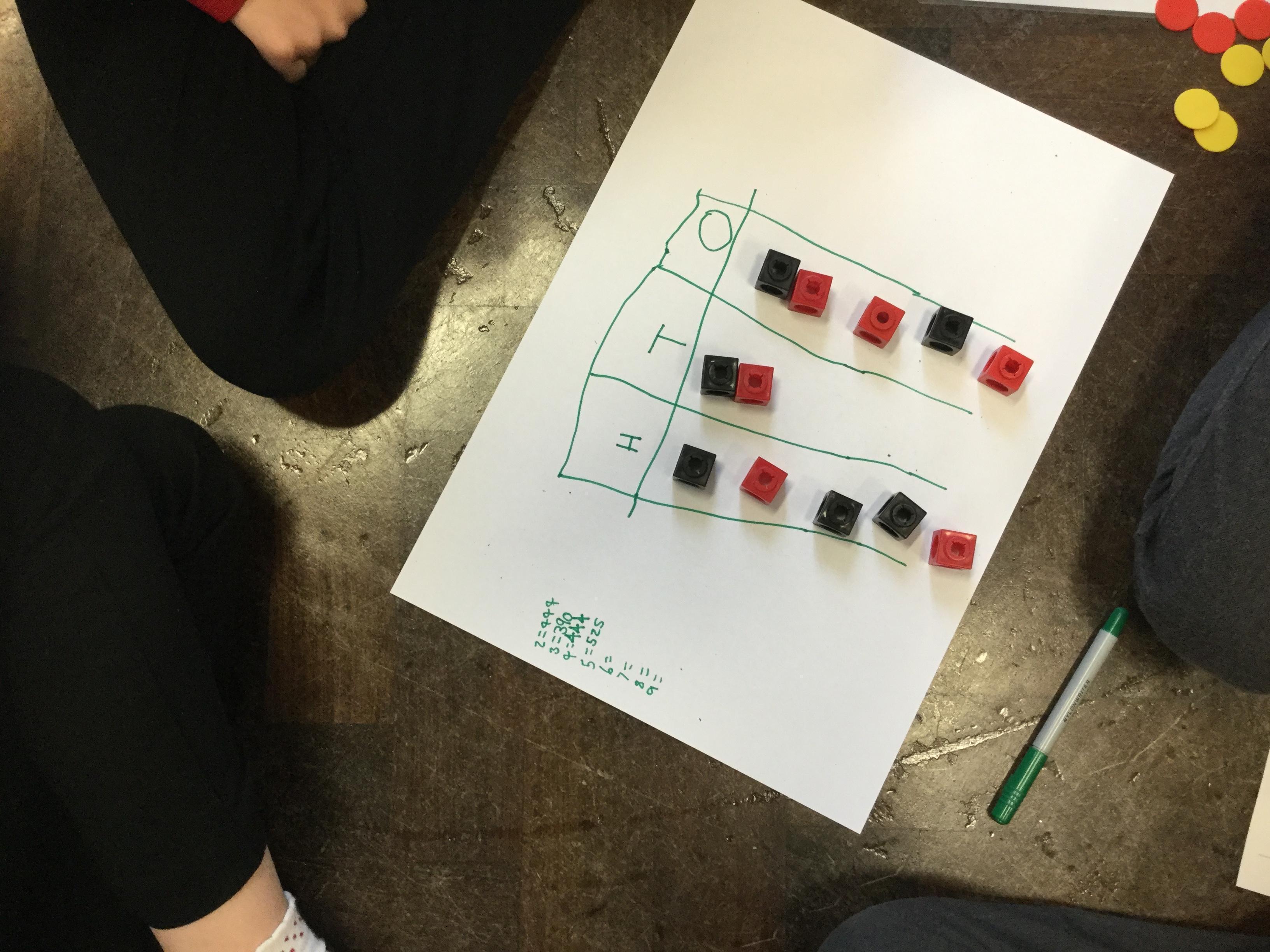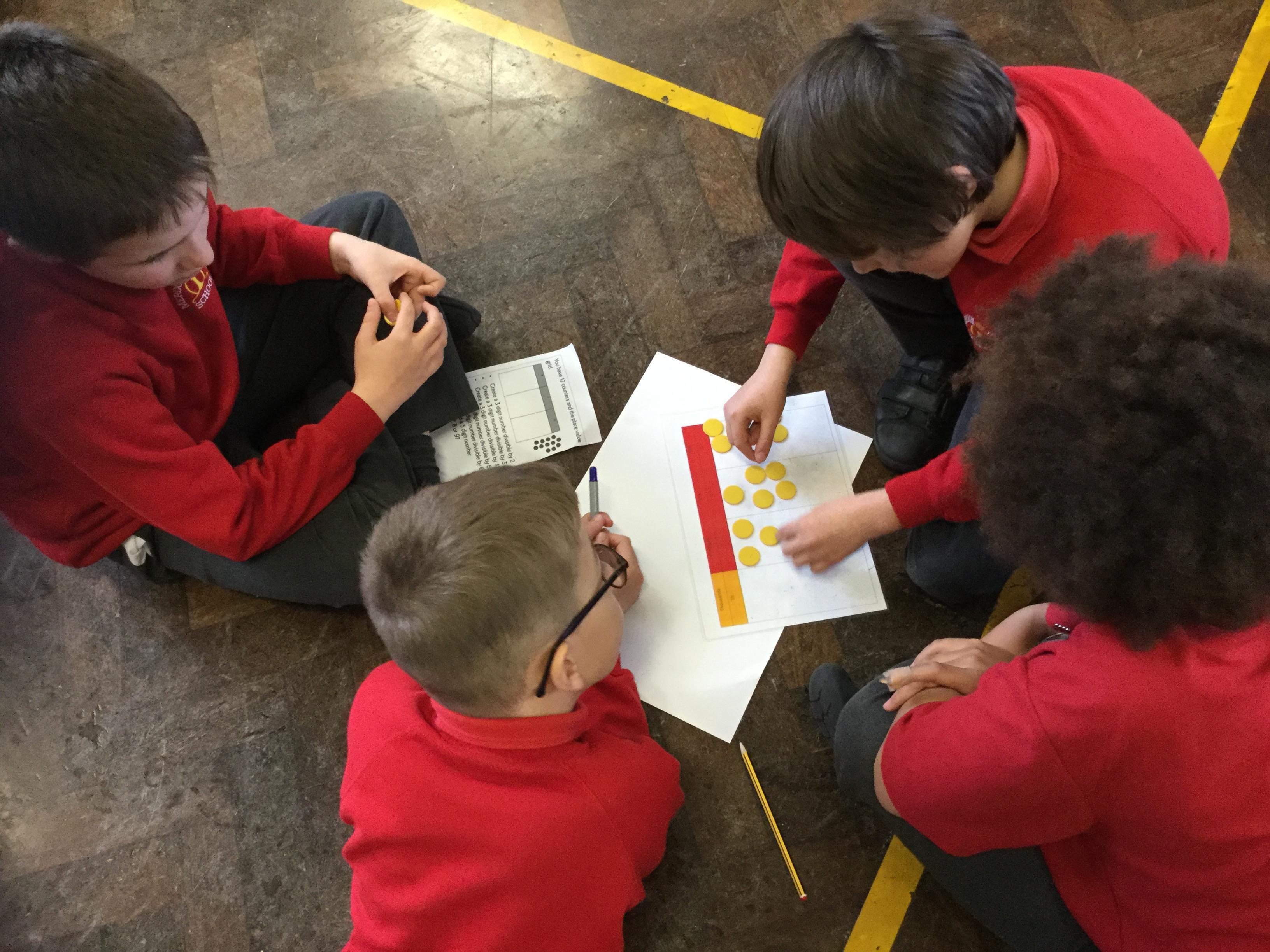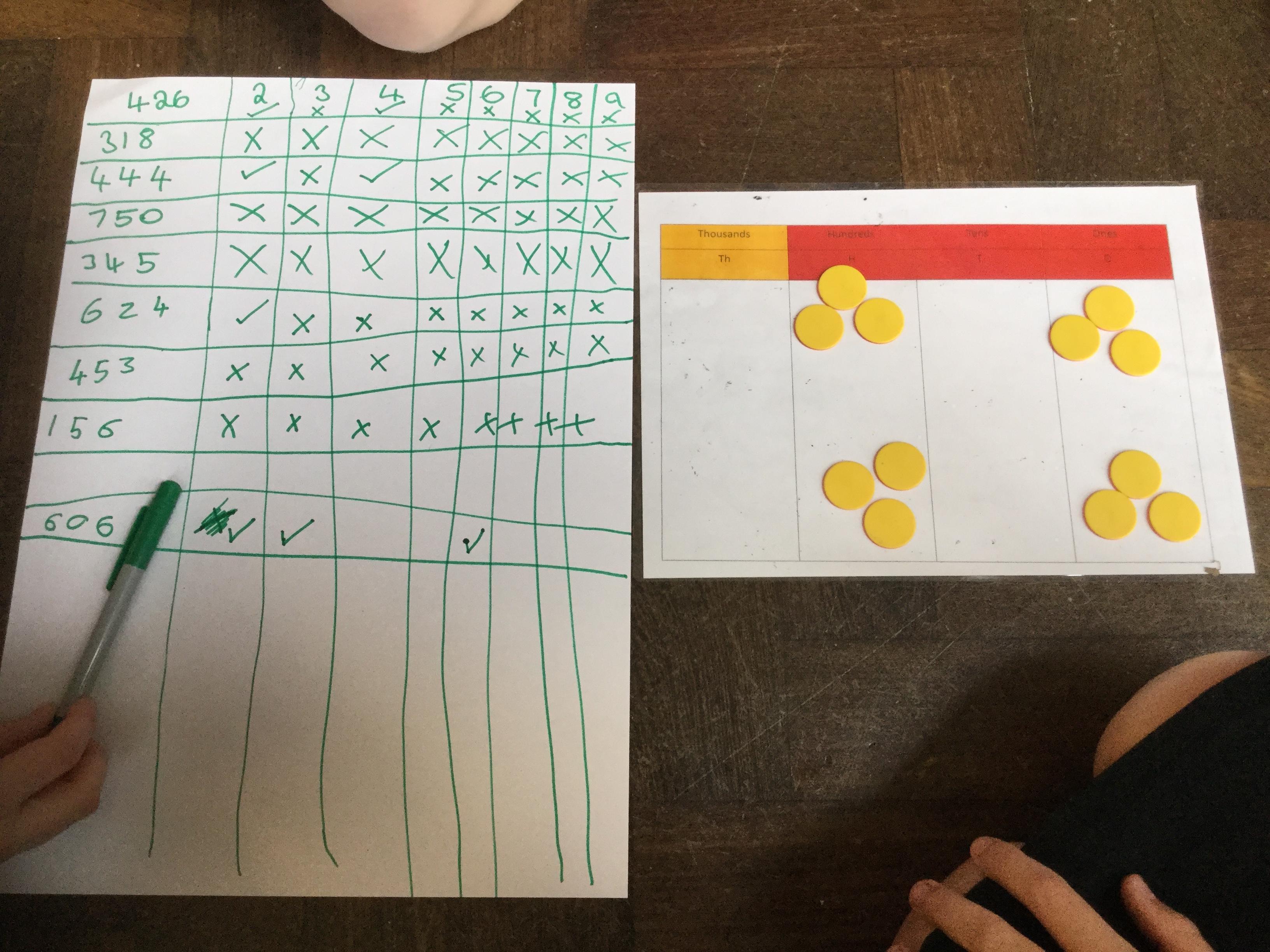 This morning the children were set a mathematical challenge. They had to work in groups to find 3 digit numbers that could be divided in different ways.