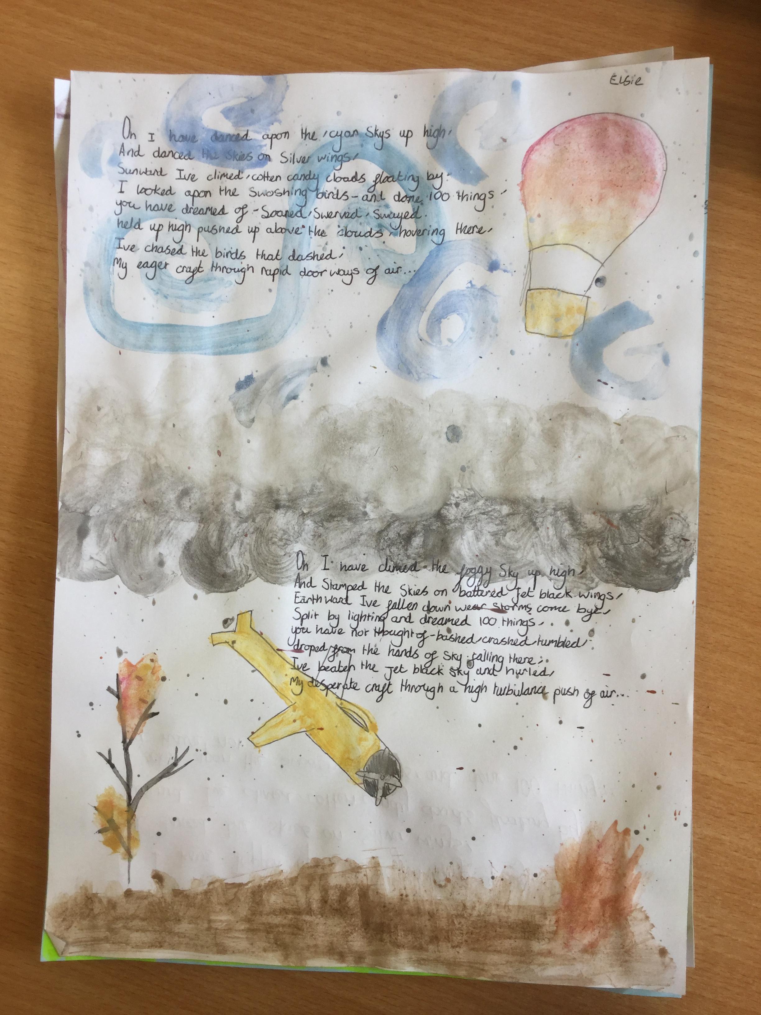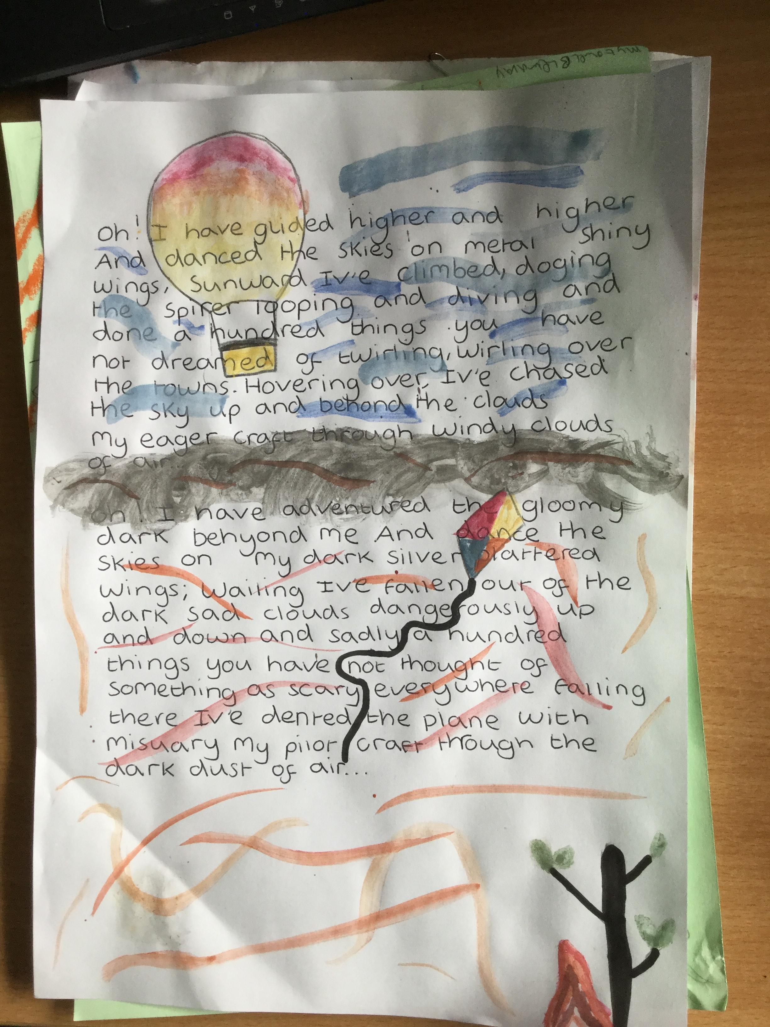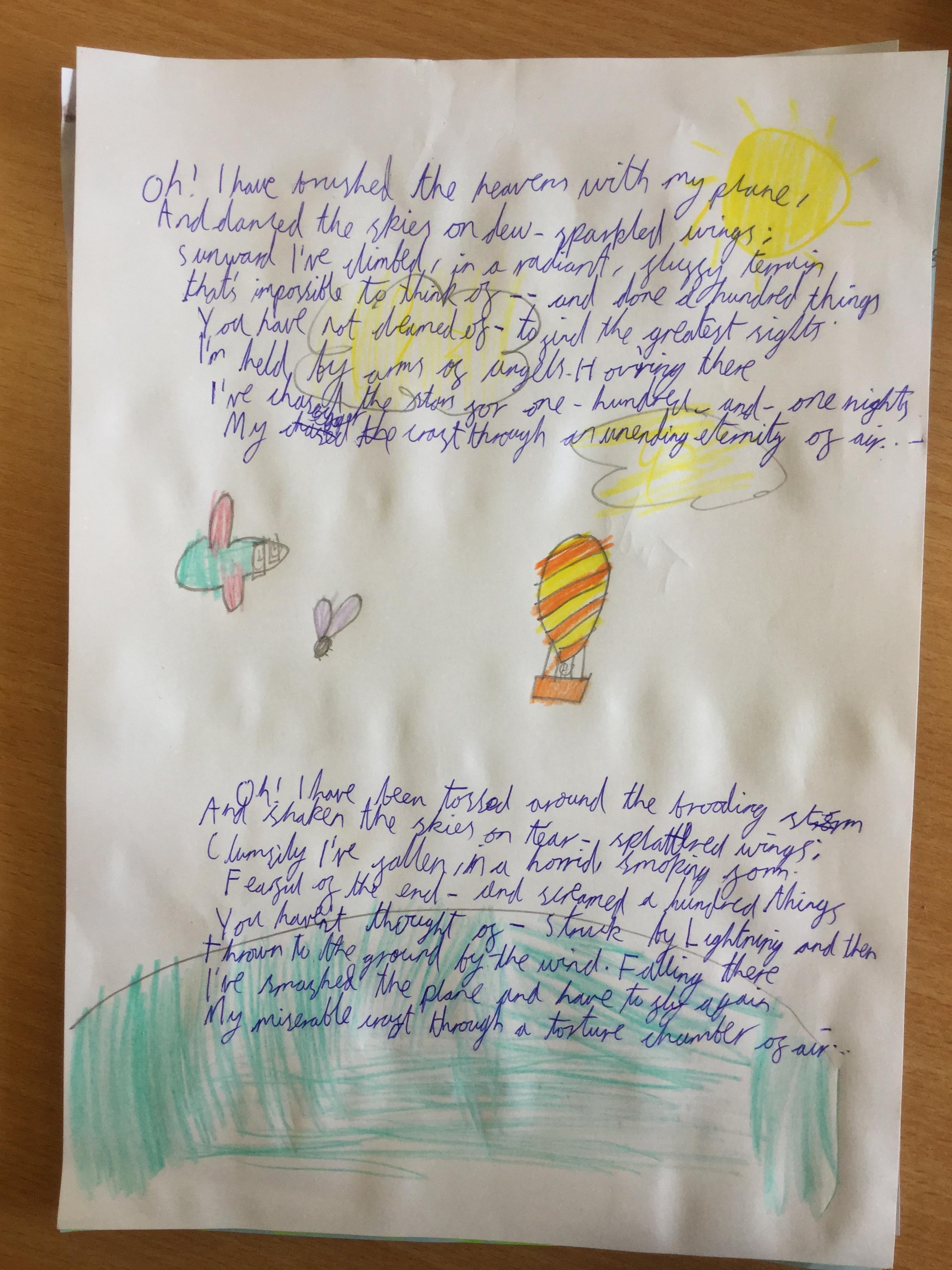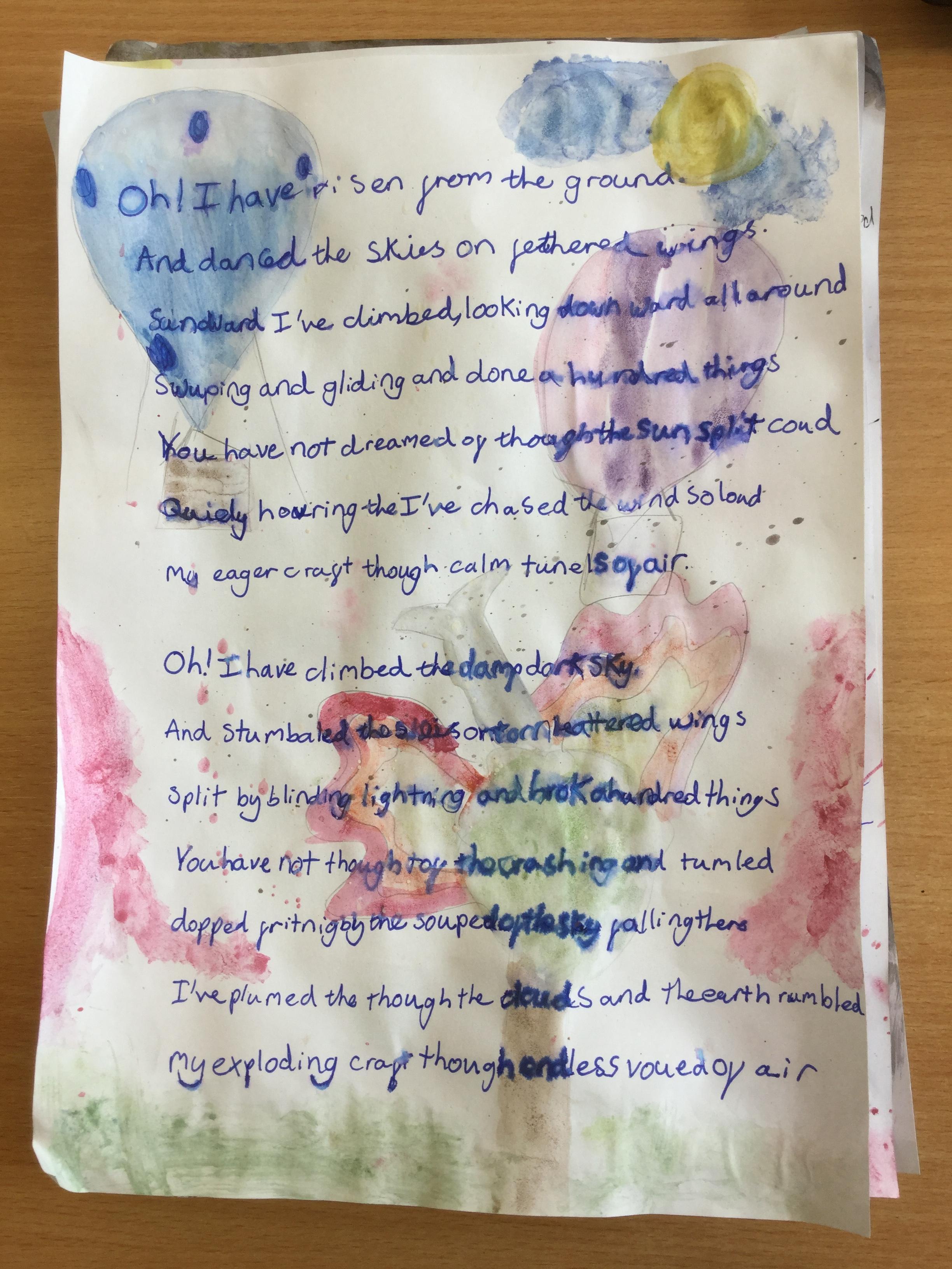 This week, we are reading a poem about flight looking specifically at the language used and he images it creates of the feeling of flying through the air. The children then collected many words to do with flight and they turned it into a group poem travelling around their table!