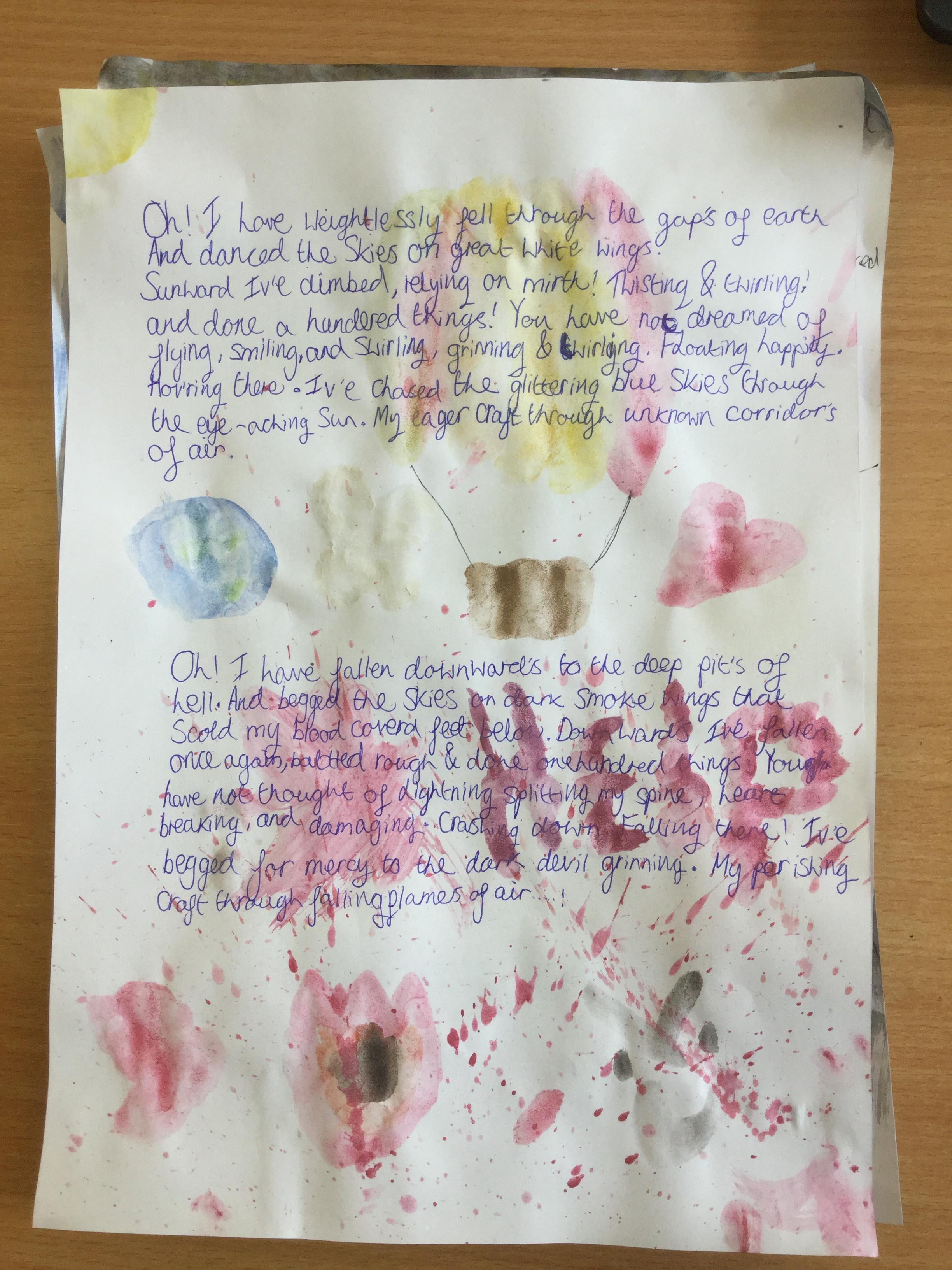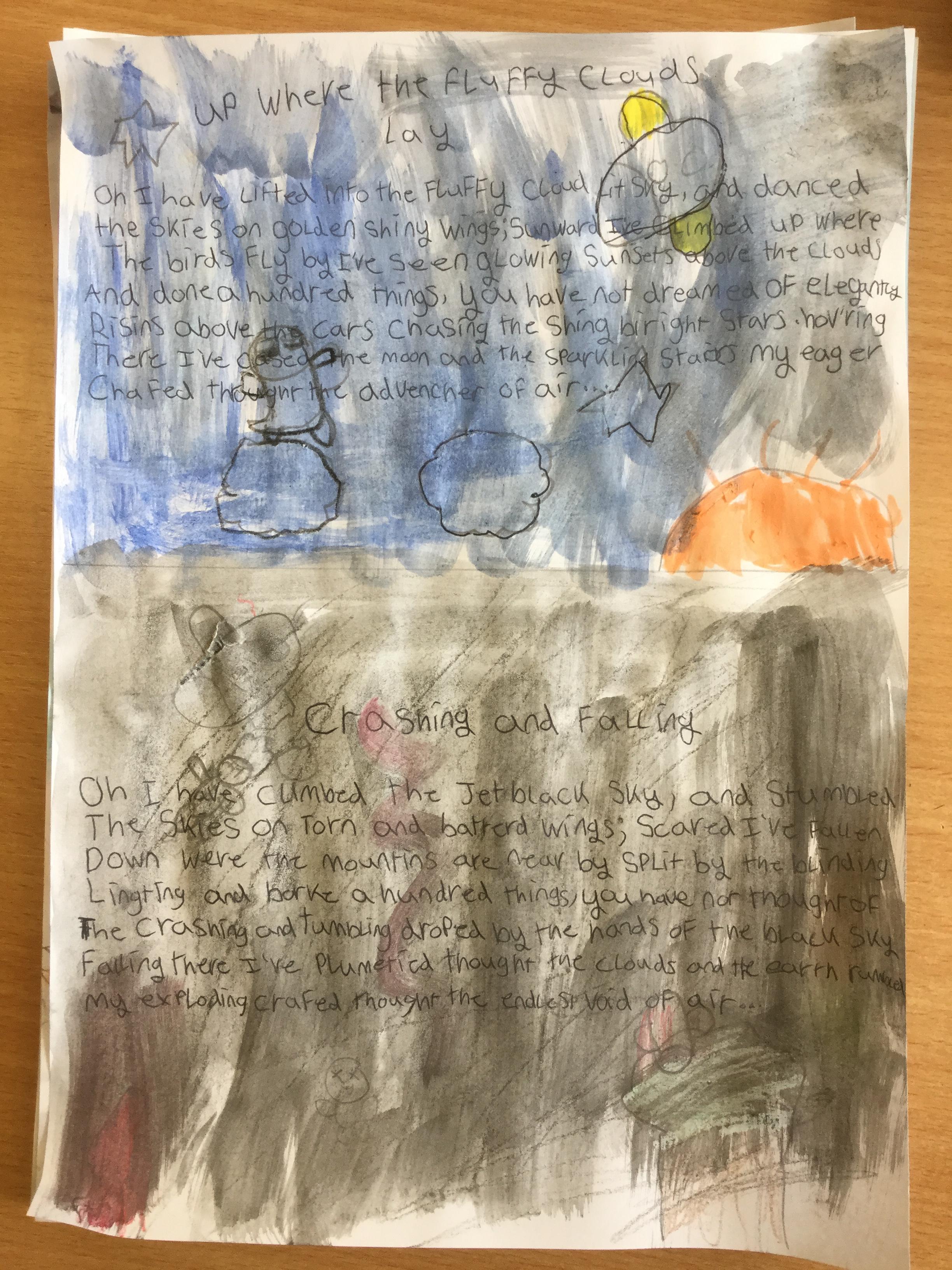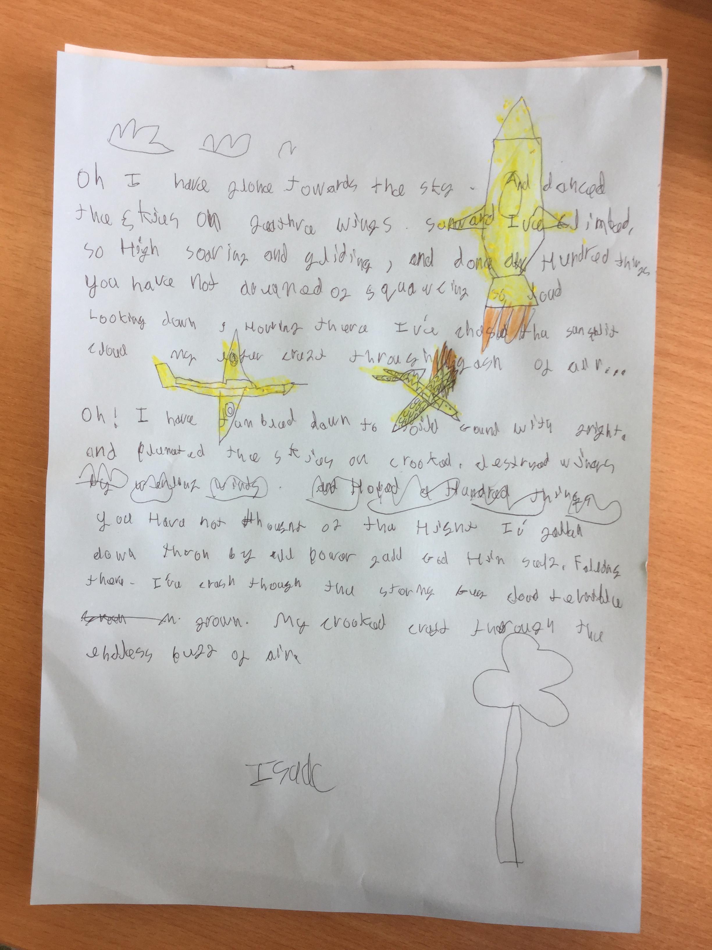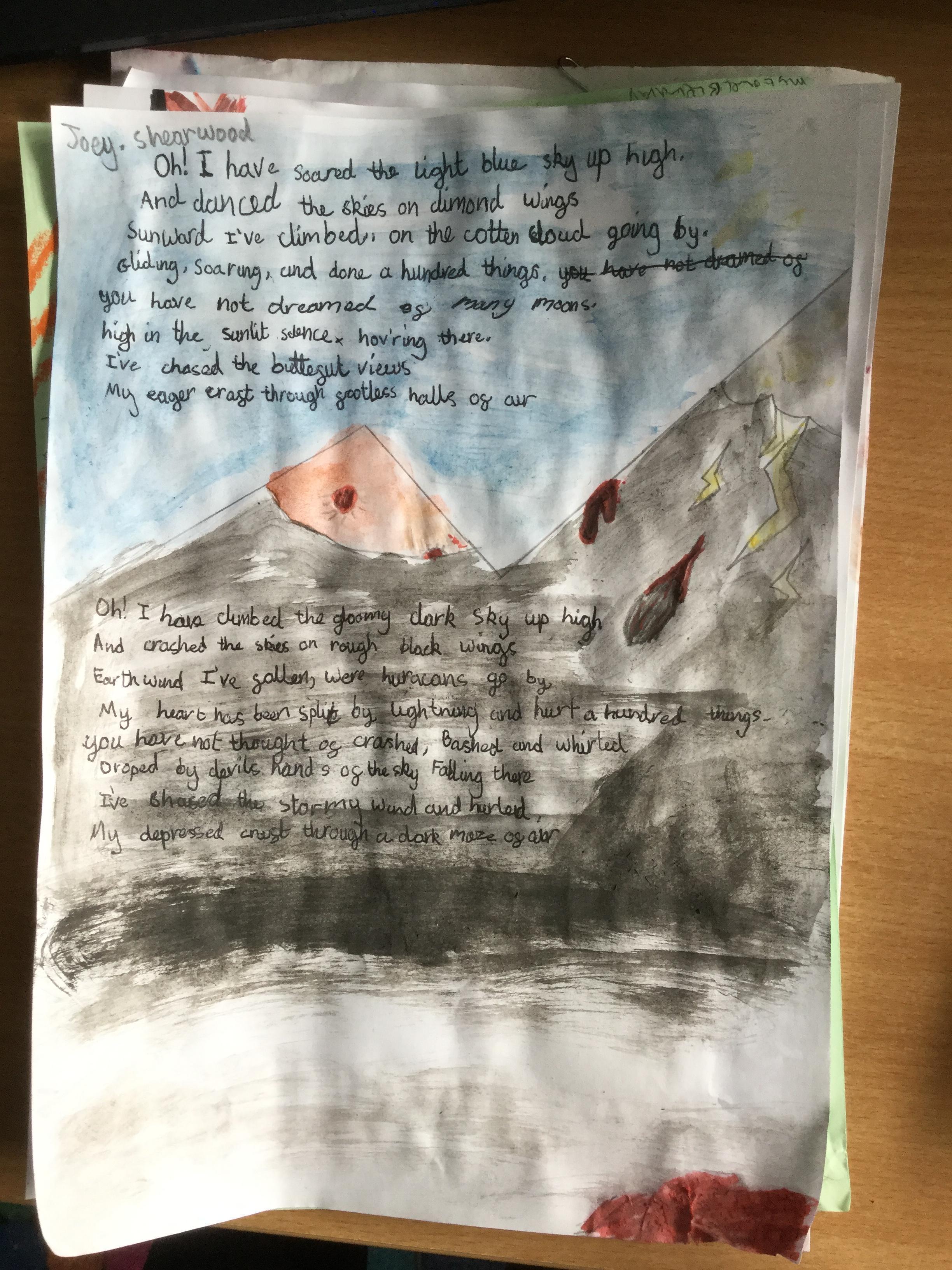 This week, we are reading a poem about flight looking specifically at the language used and he images it creates of the feeling of flying through the air. The children then collected many words to do with flight and they turned it into a group poem travelling around their table!