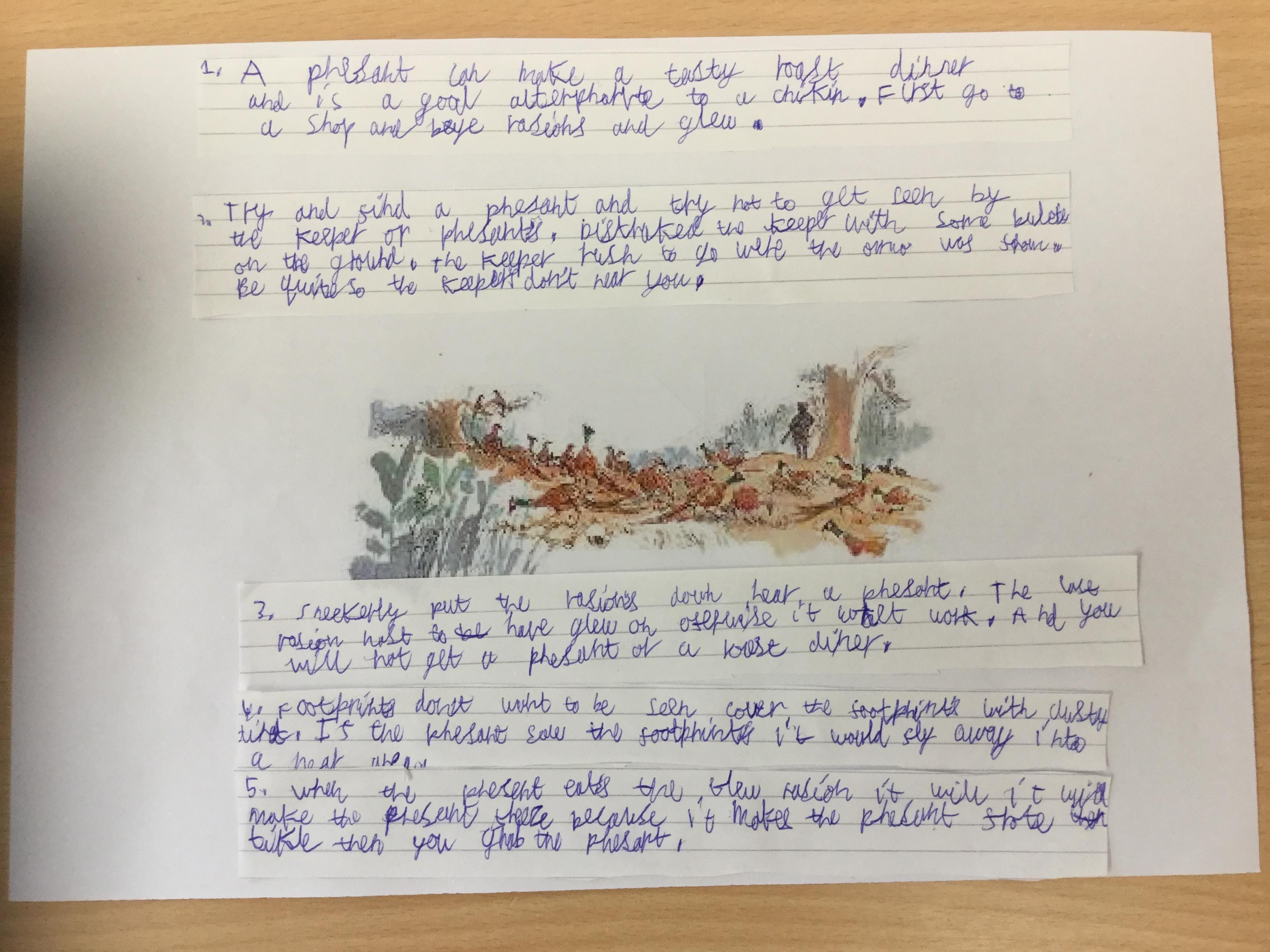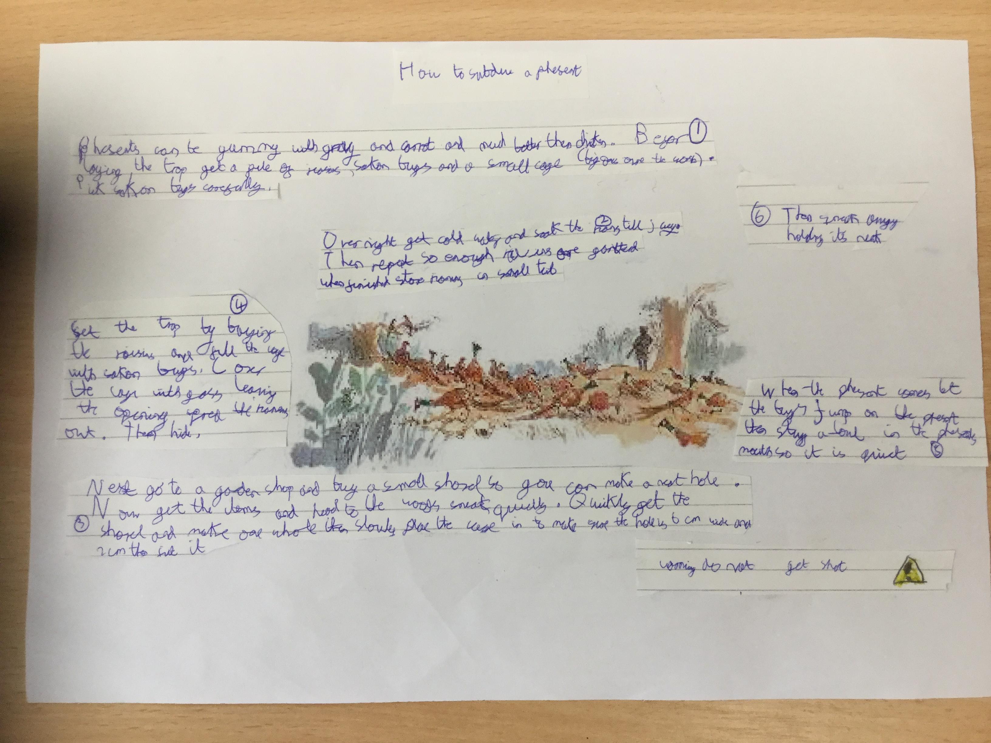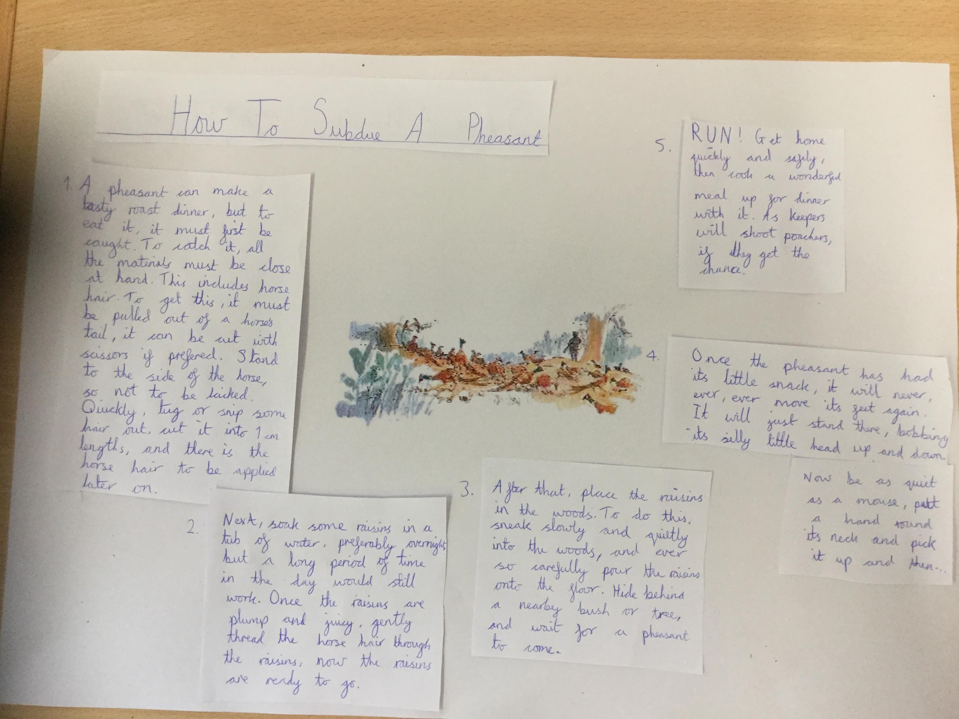 This week we have been writing an explanation of how to subdue a pheasant based on Danny the Champion of the World.