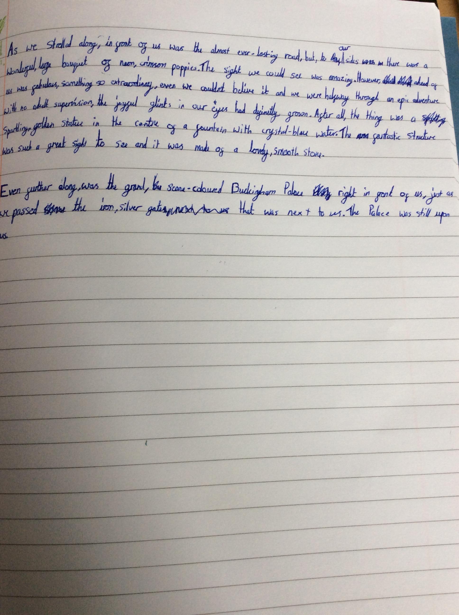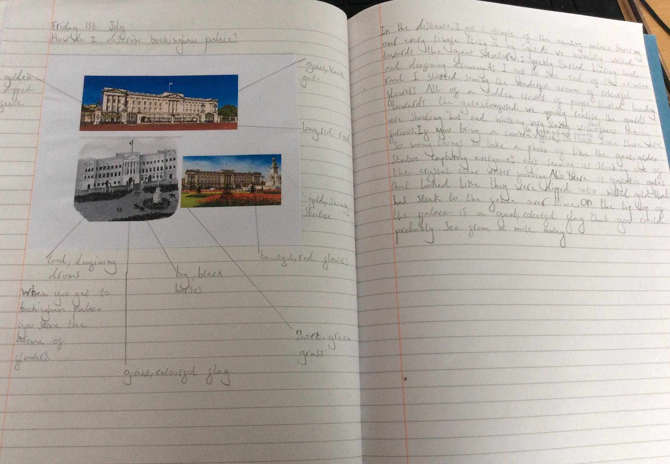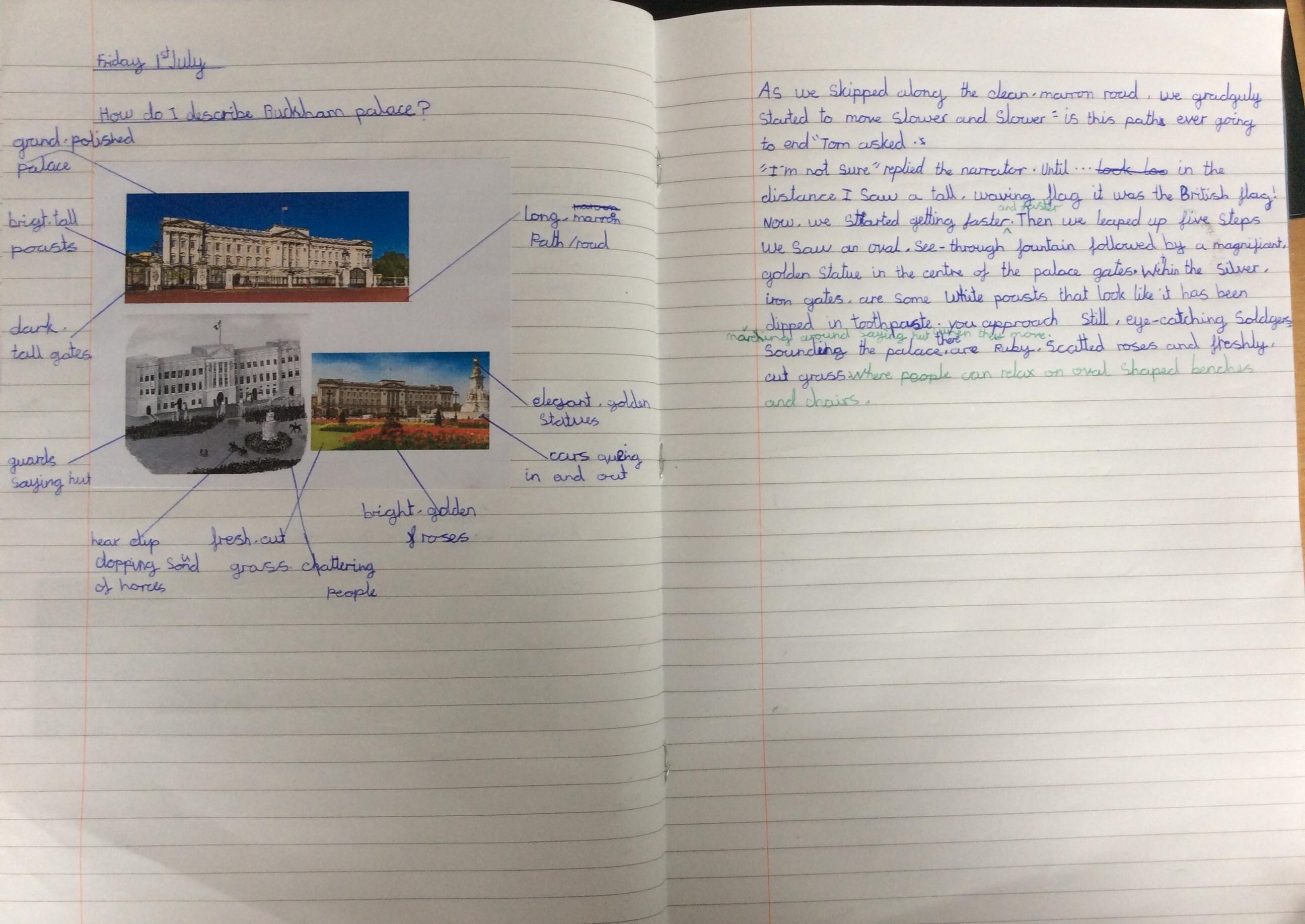 Furthermore, we planned and wrote a description of Buckingham Palace as if we were the 2 of the characters approaching the building, during their adventure to hand a letter to the Queen’s Special Guard.