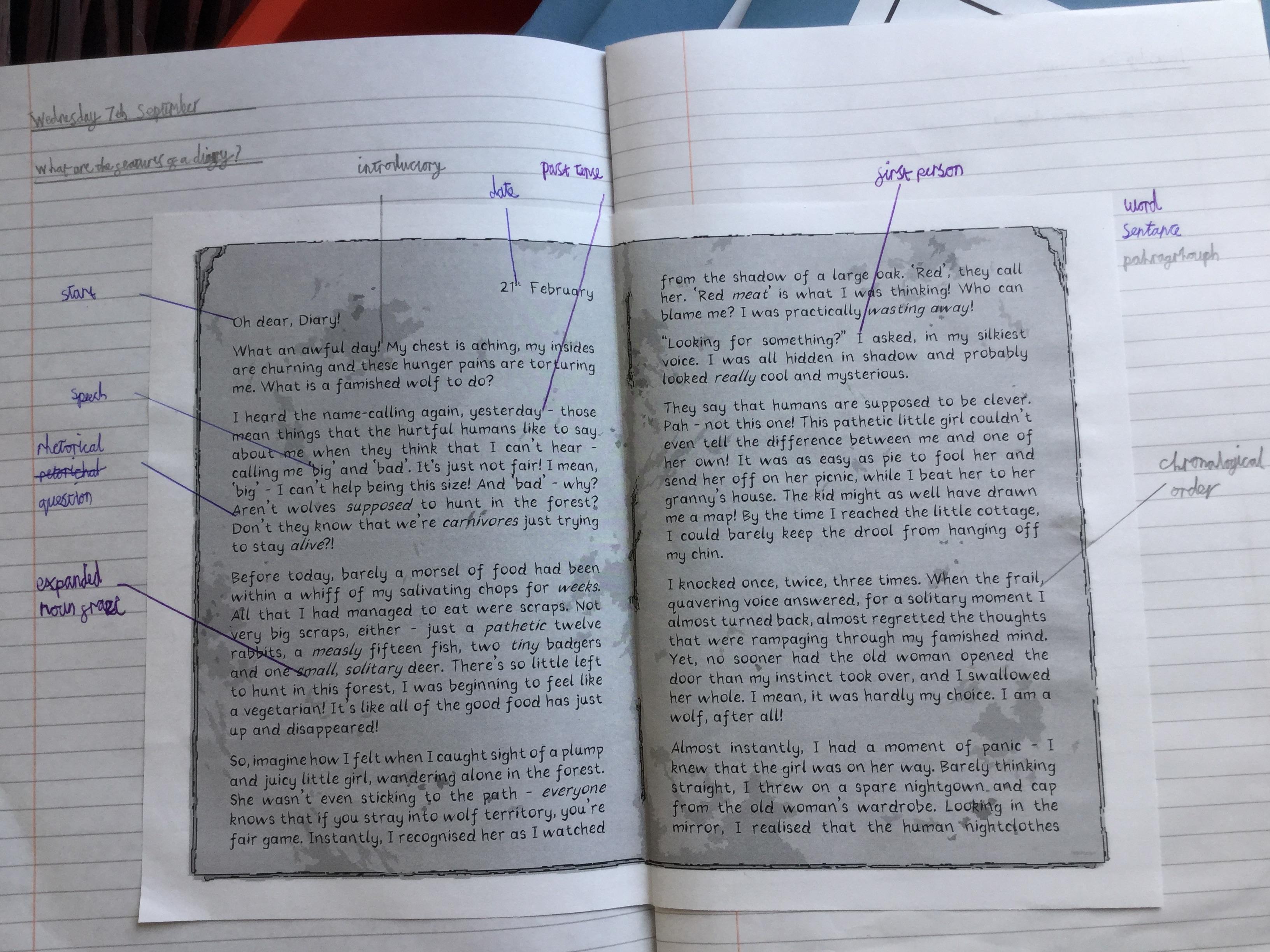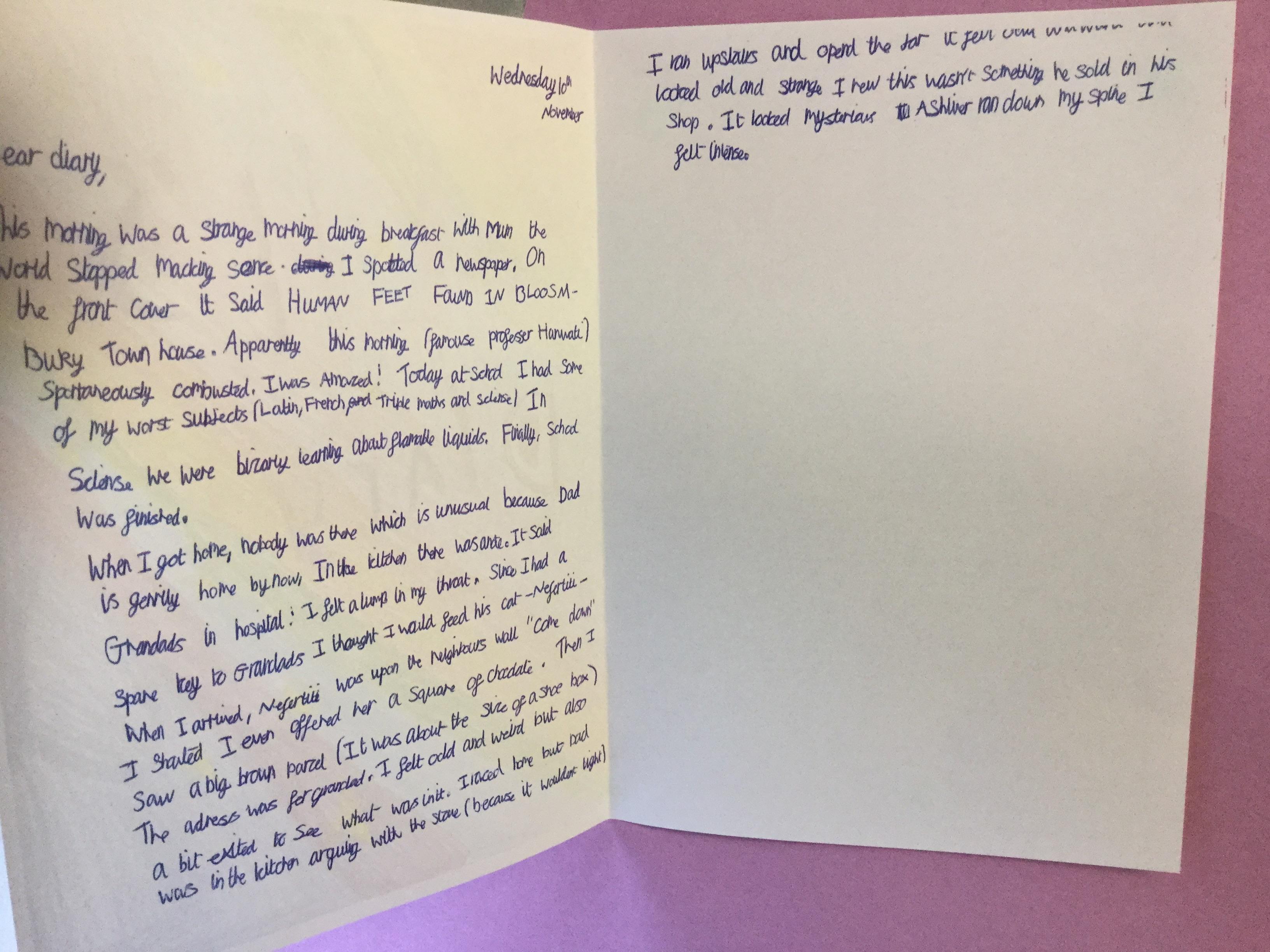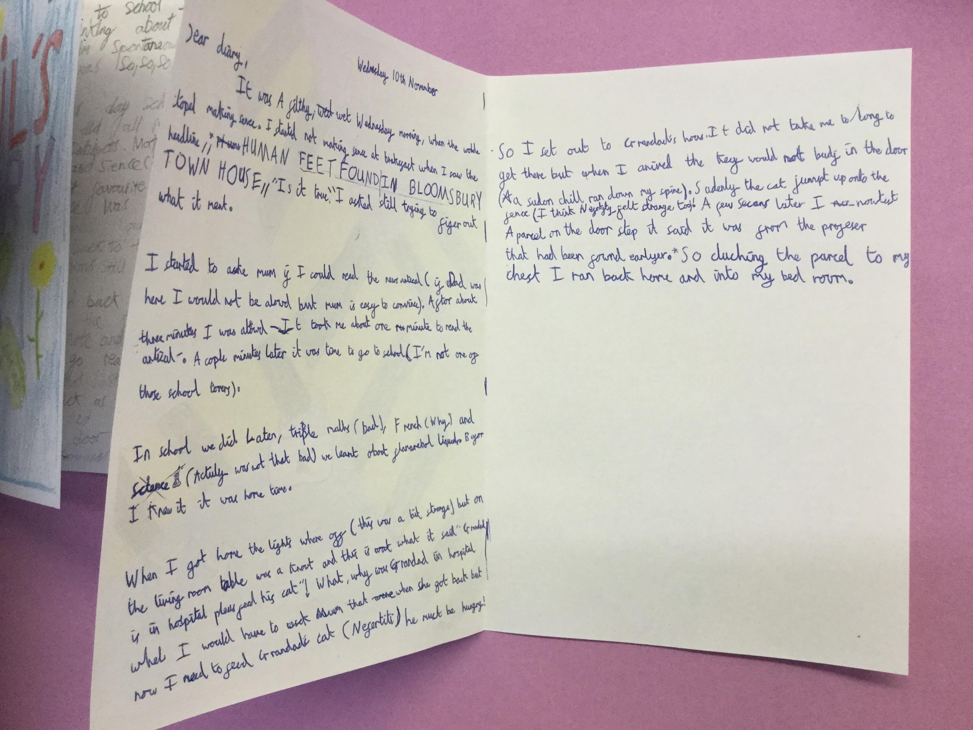Having read a couple of chapters, we summarised the key events for Lil and then wrote a diary extract. We published our diaries and illustrated them to make them look like actual journals.
