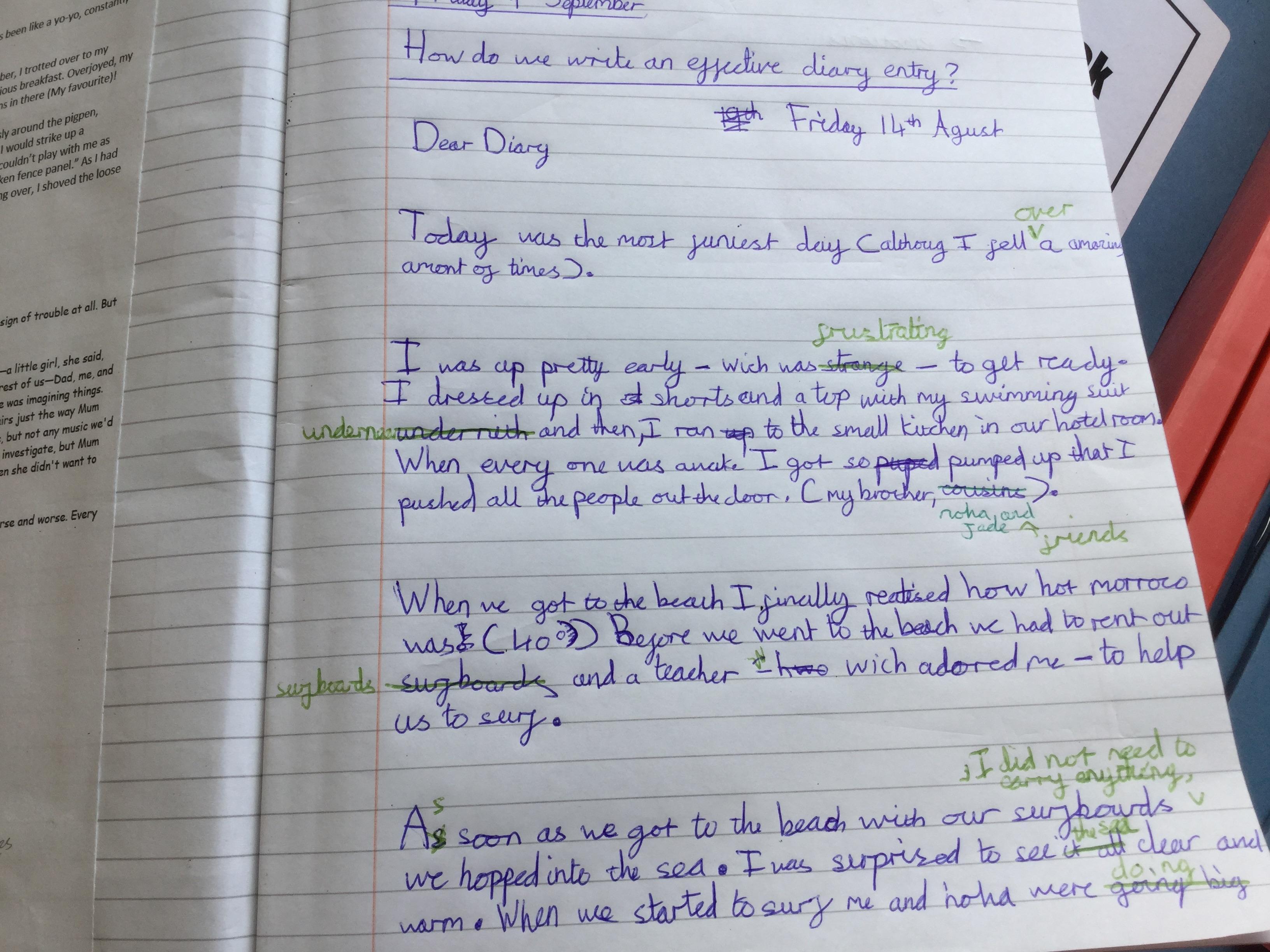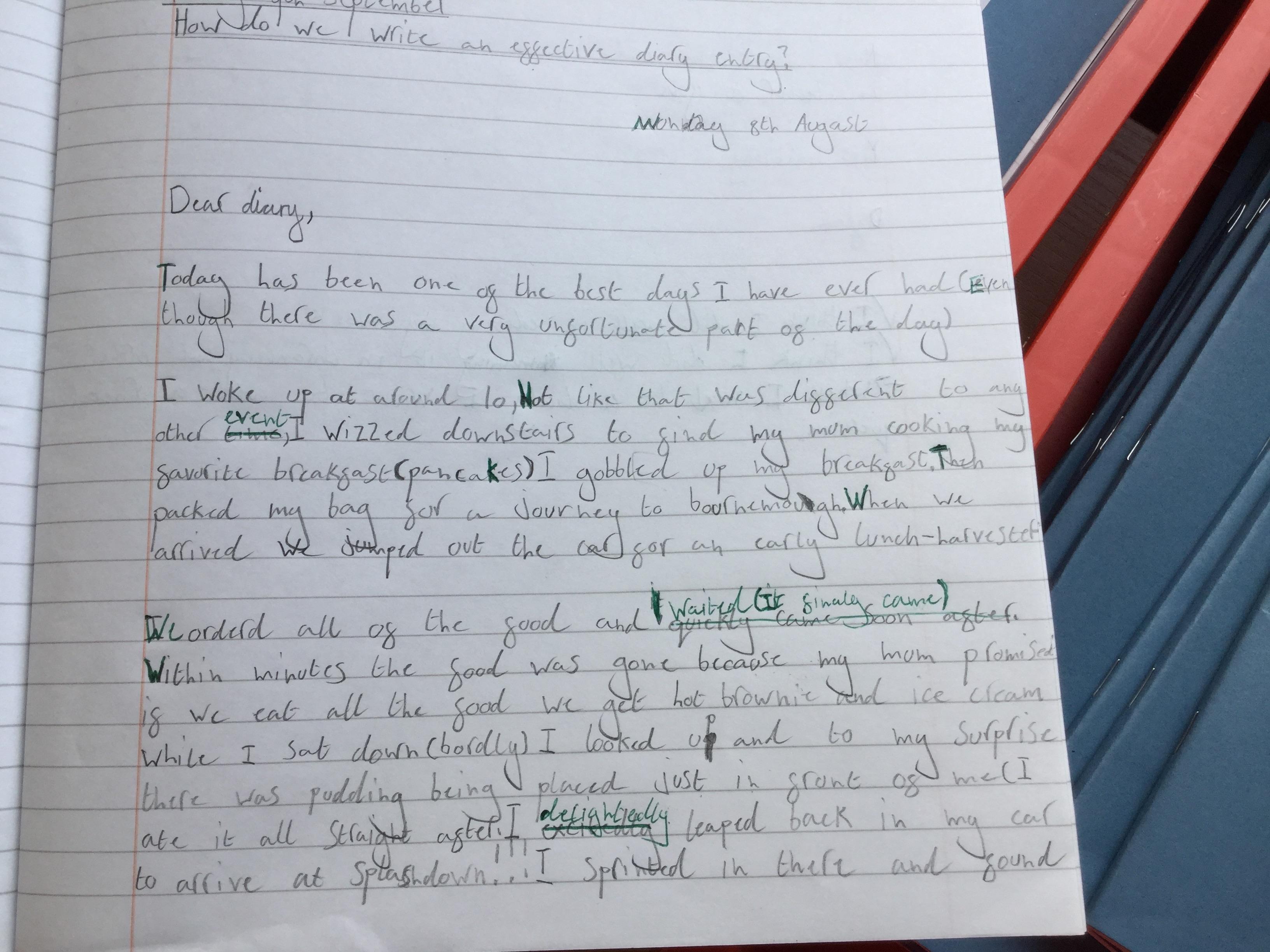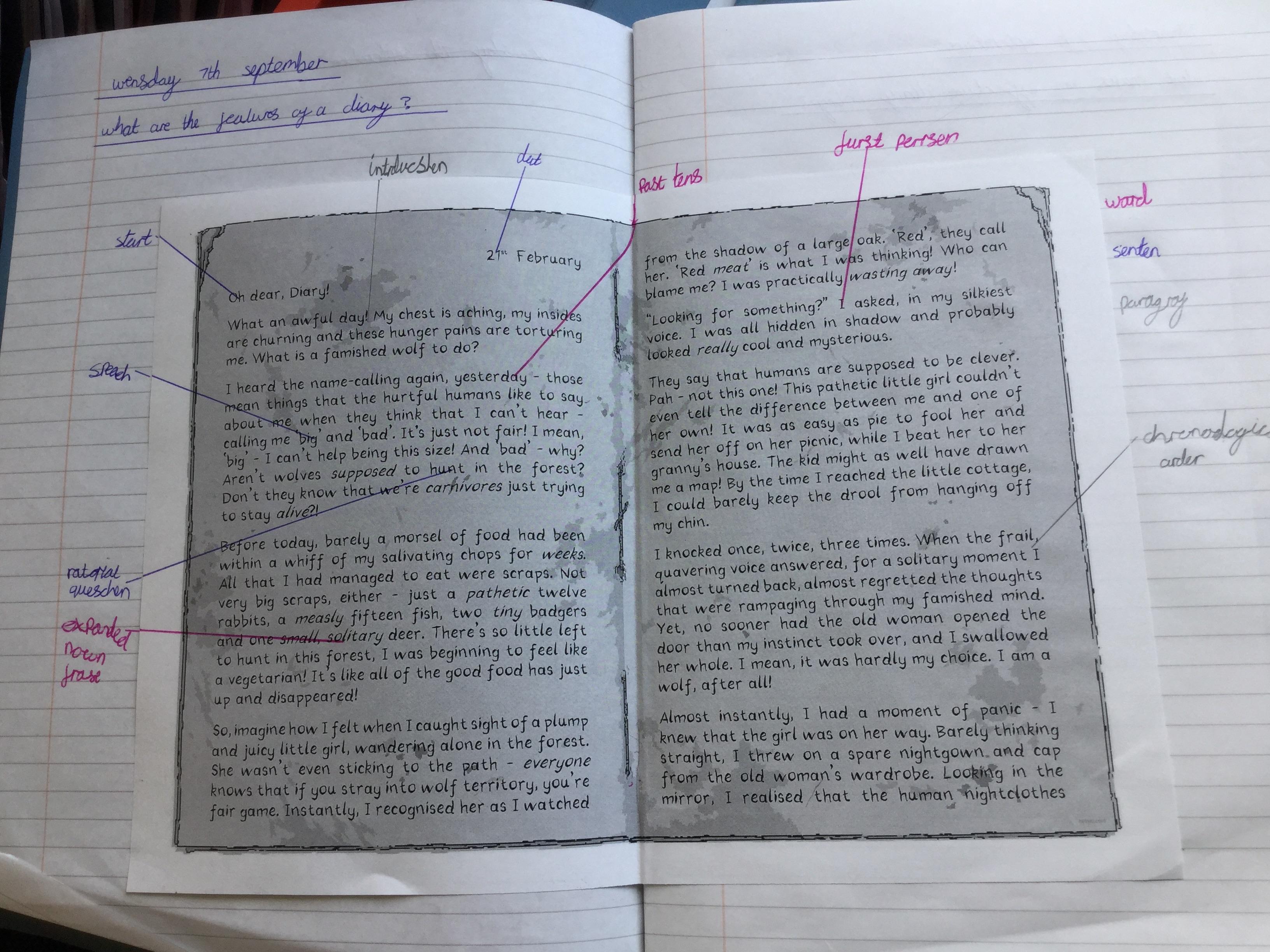 Our first writing challenge is to be able to write a diary as Lil, the main character in Secrets of a Sun King. To help us to achieve this we started by thinking about the features of a diary and then identifying them. We then tried to apply those features in our writing as we wrote a diary about an event of our choosing.