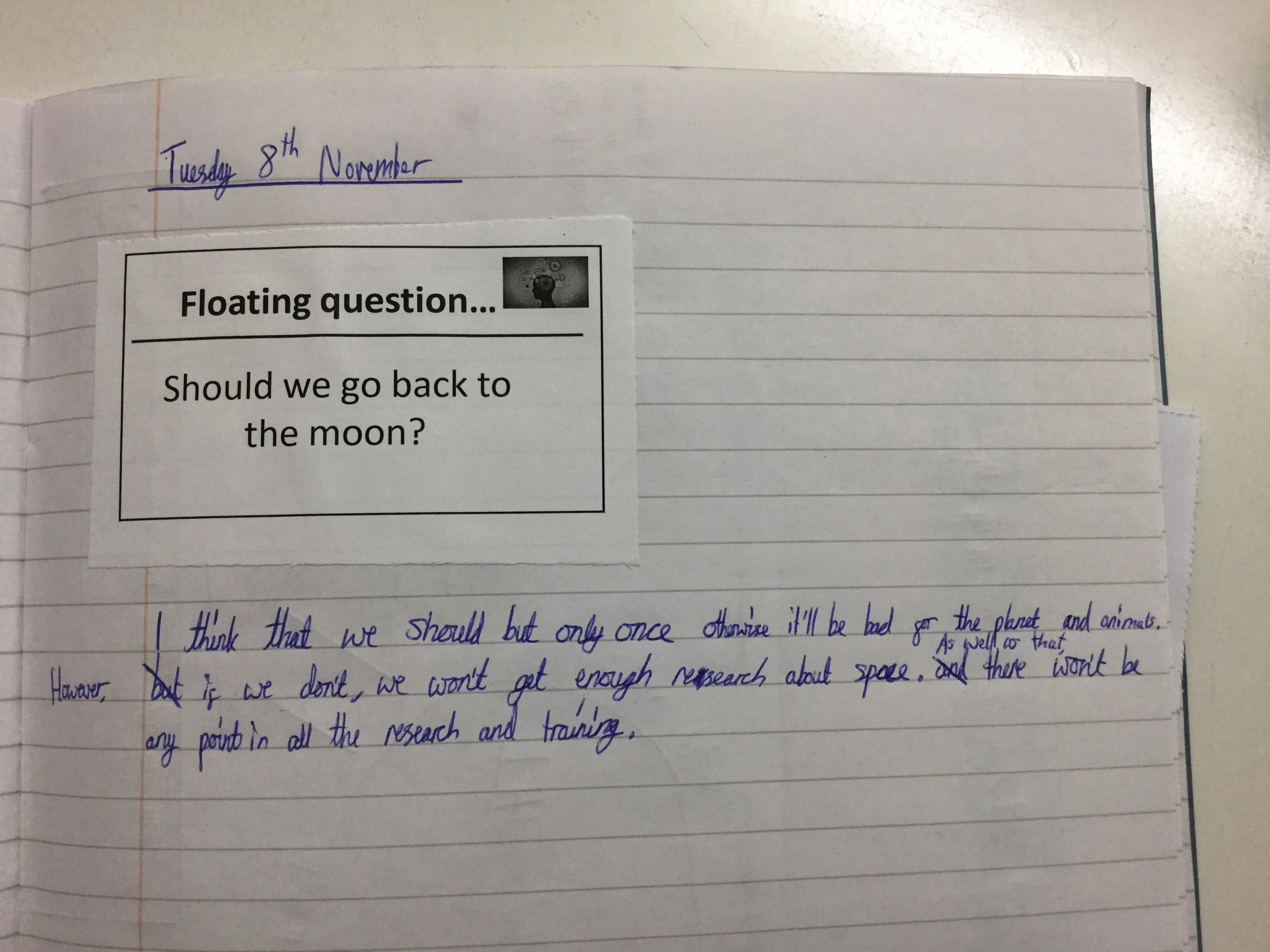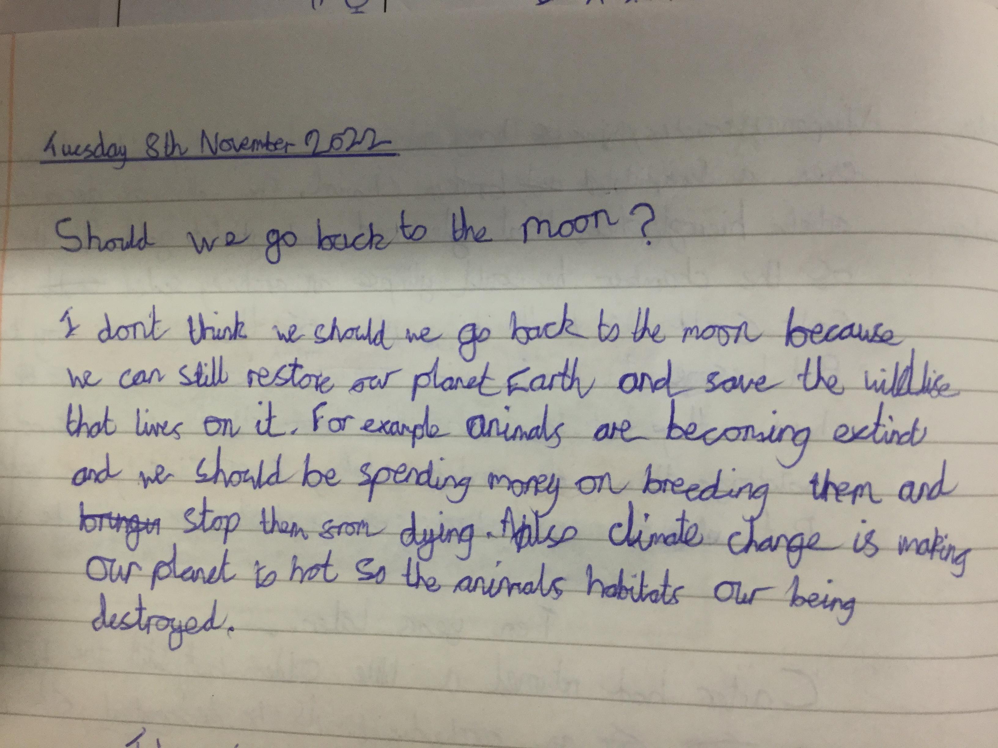 Over the next few weeks we will be working towards writing a speech as the American President explaining why we should be returning to the moon.