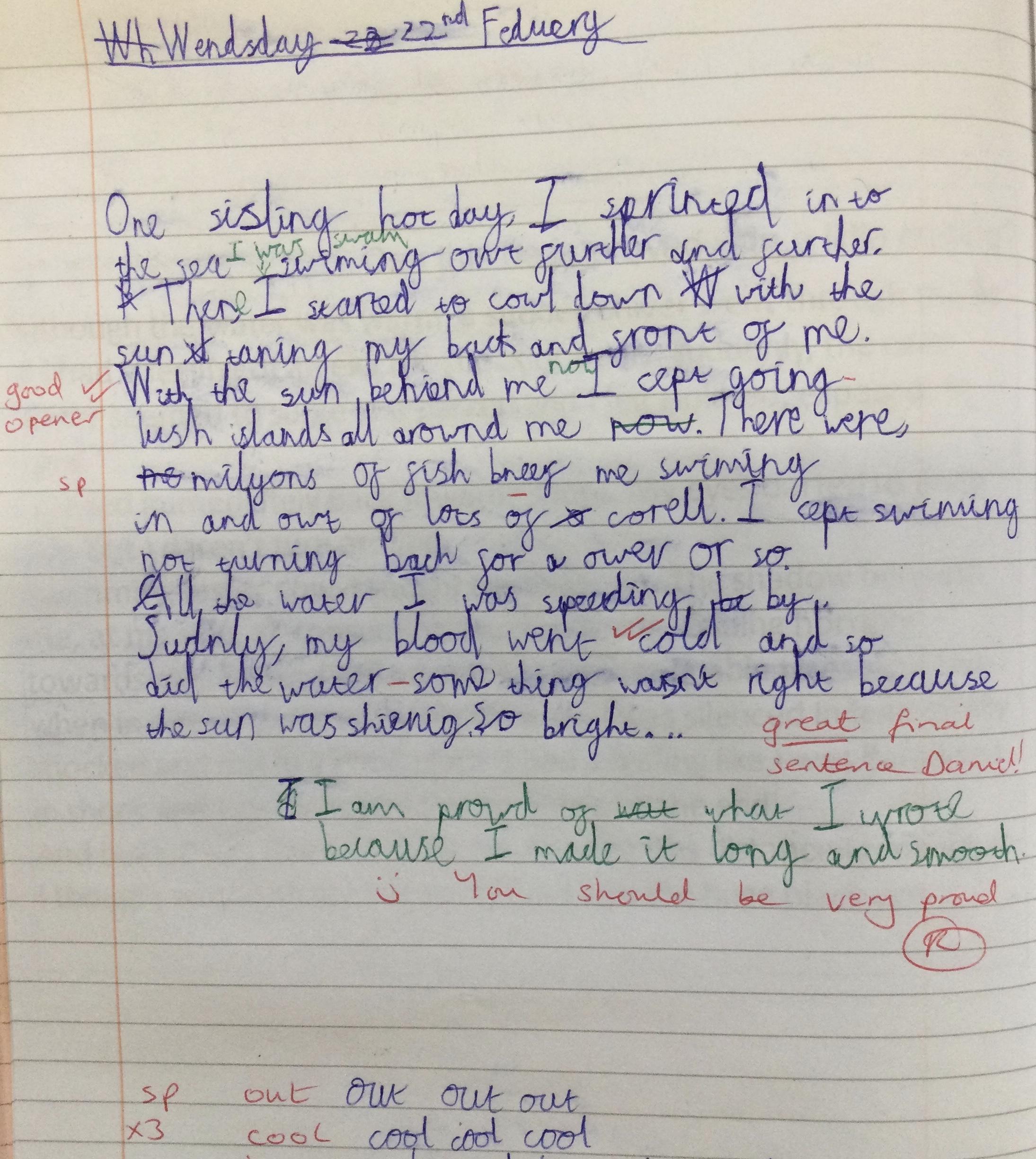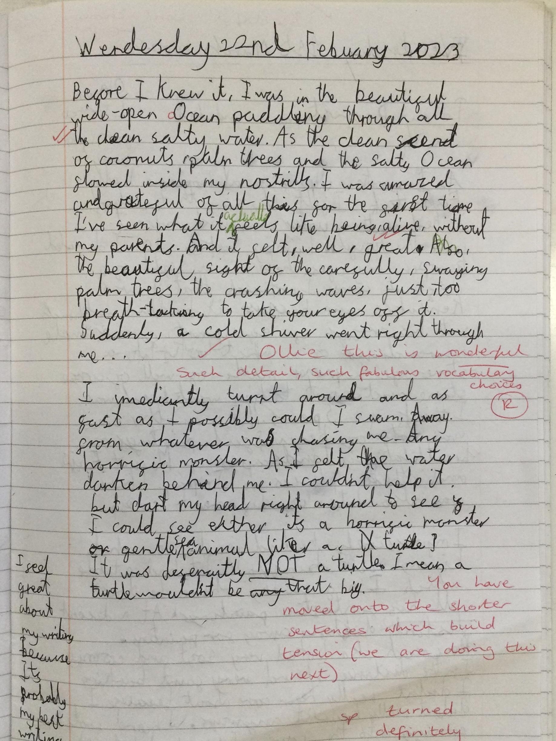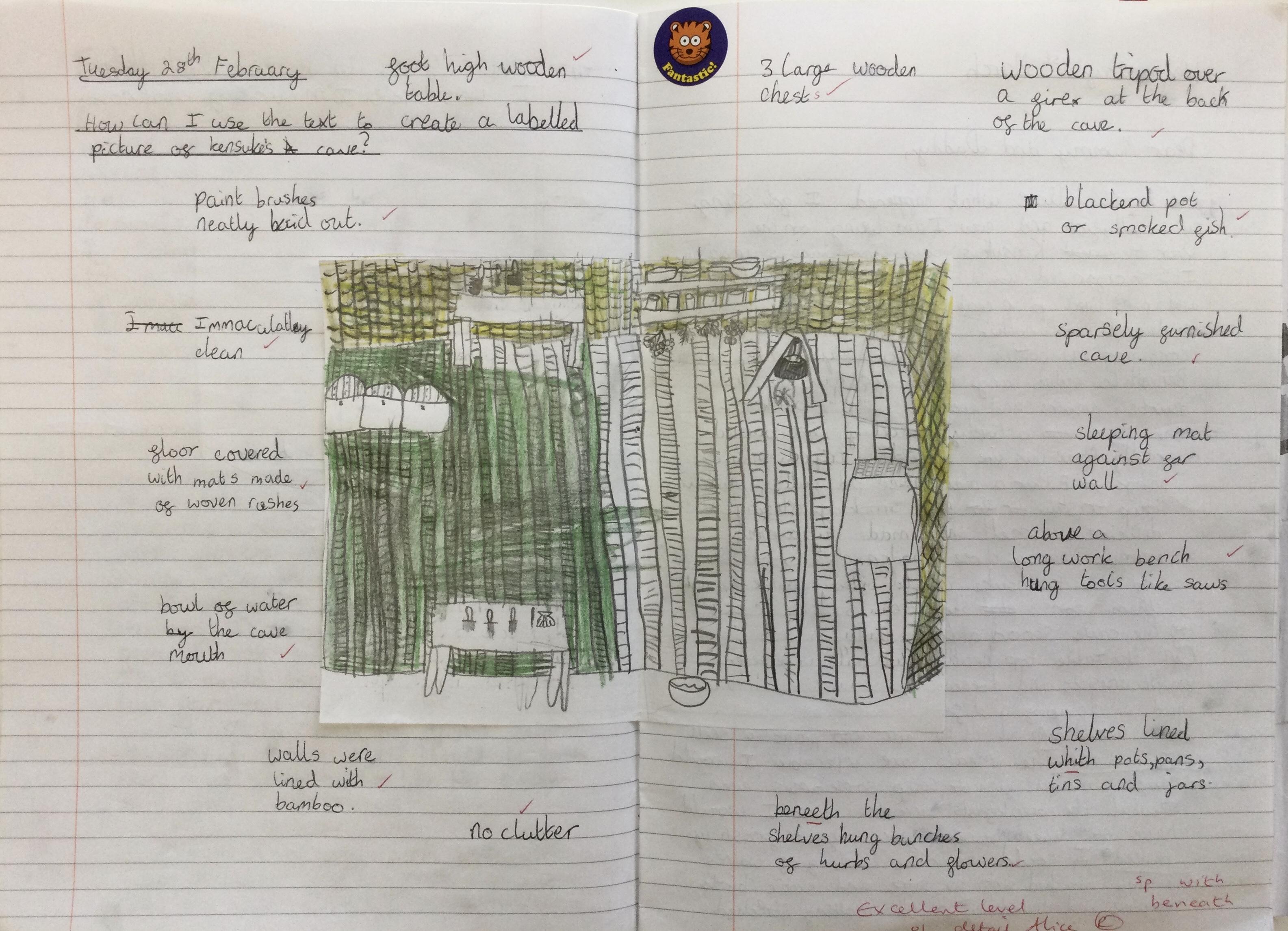 This half term we have been reading Kensuke's Kingdom by Michael Morpurgo. We have completed a range of writing tasks related to the novel, including a description of Kensuke's cave, a letter home from Michael to his parents and writing to create suspense. Please see below for some examples of the children's work.