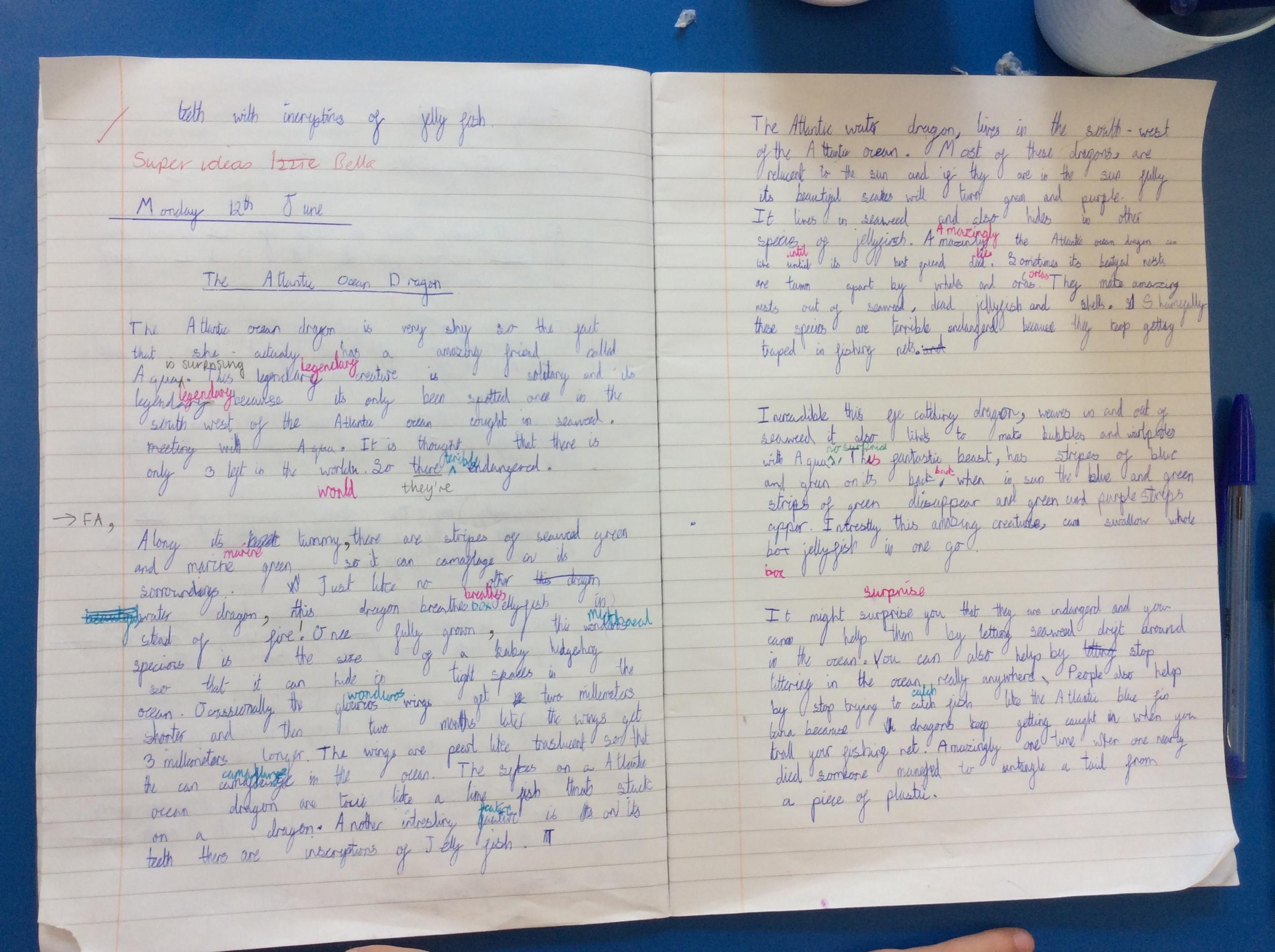 We used different colour pens to help use focus our editing.