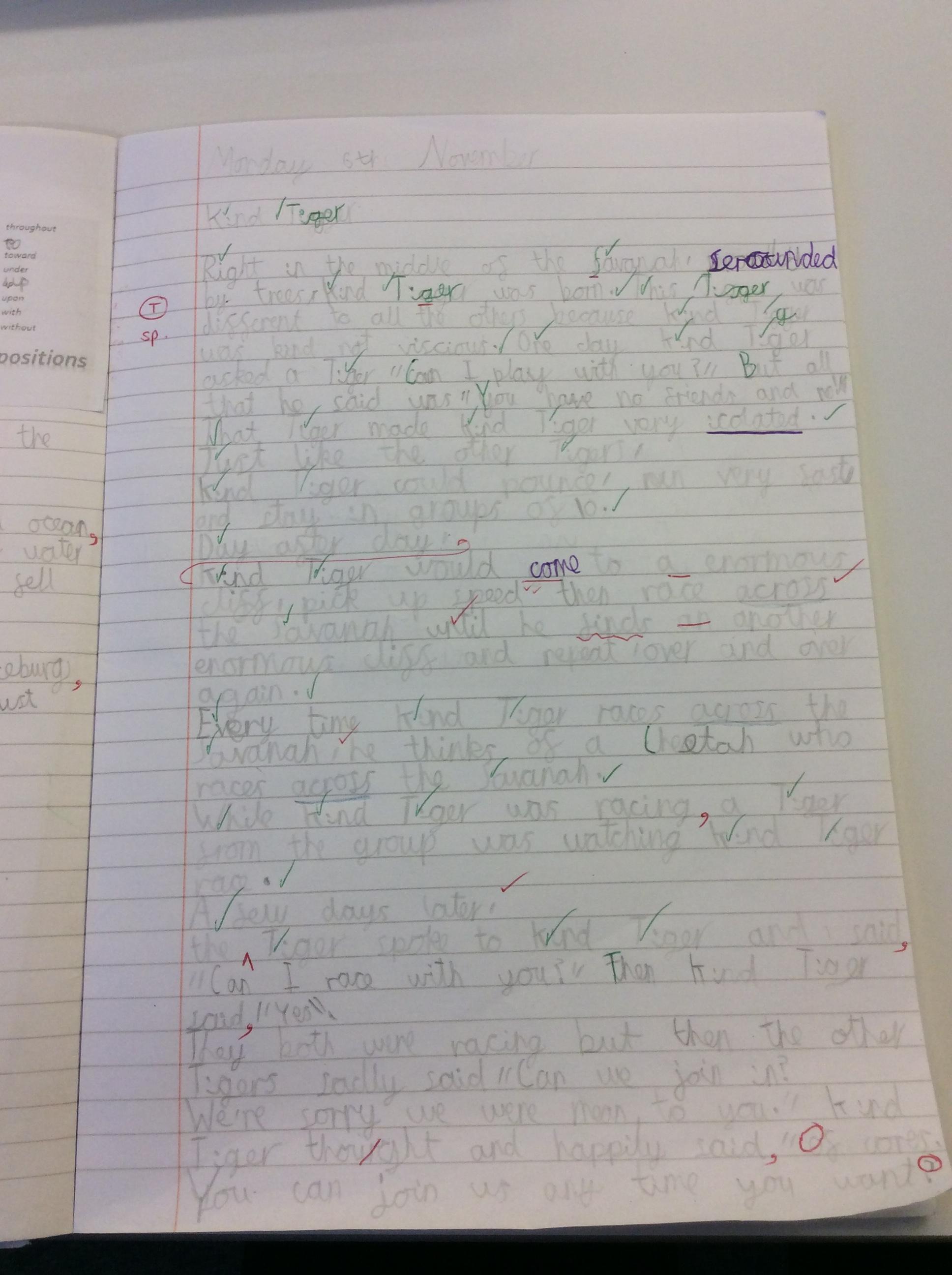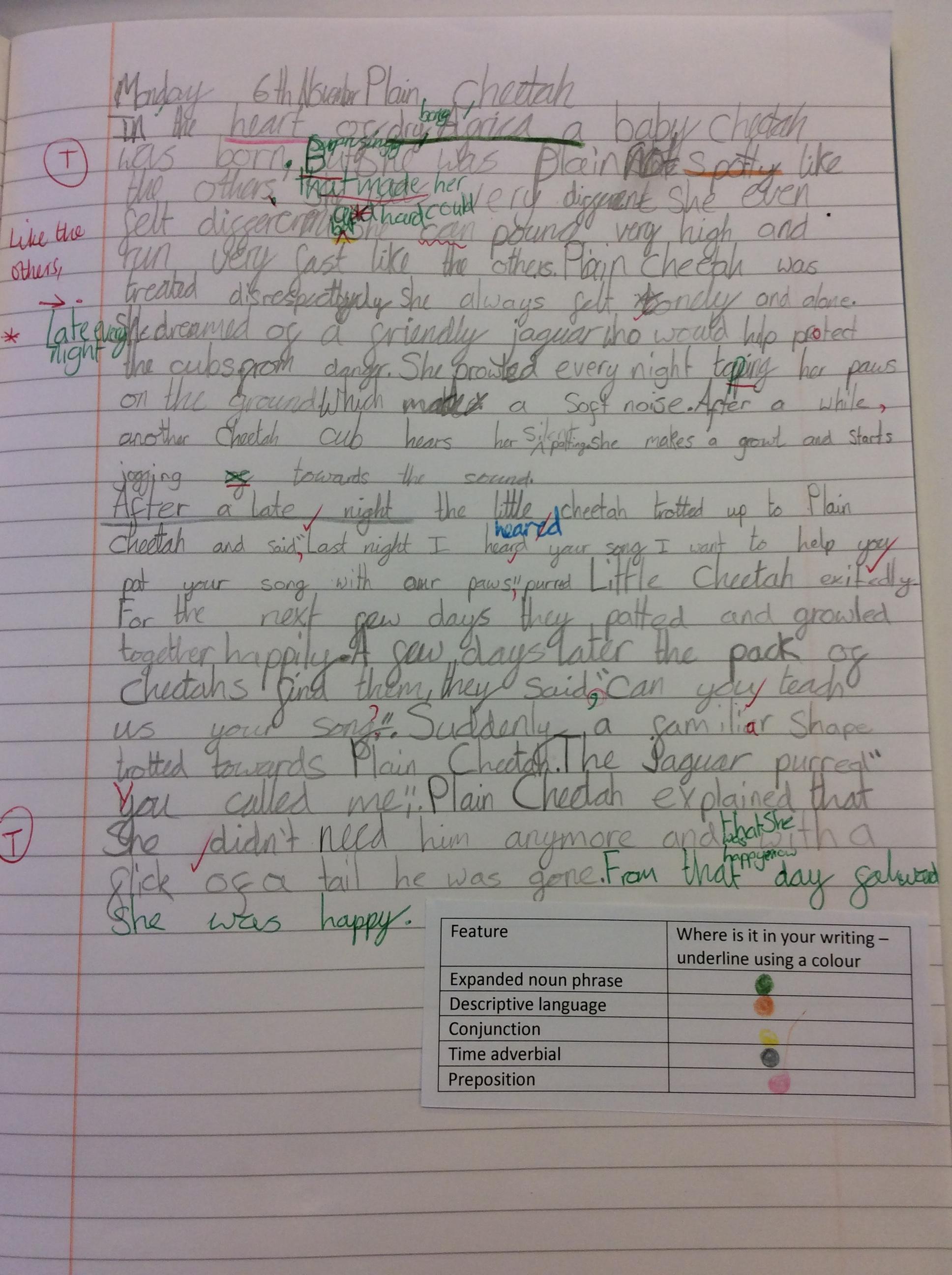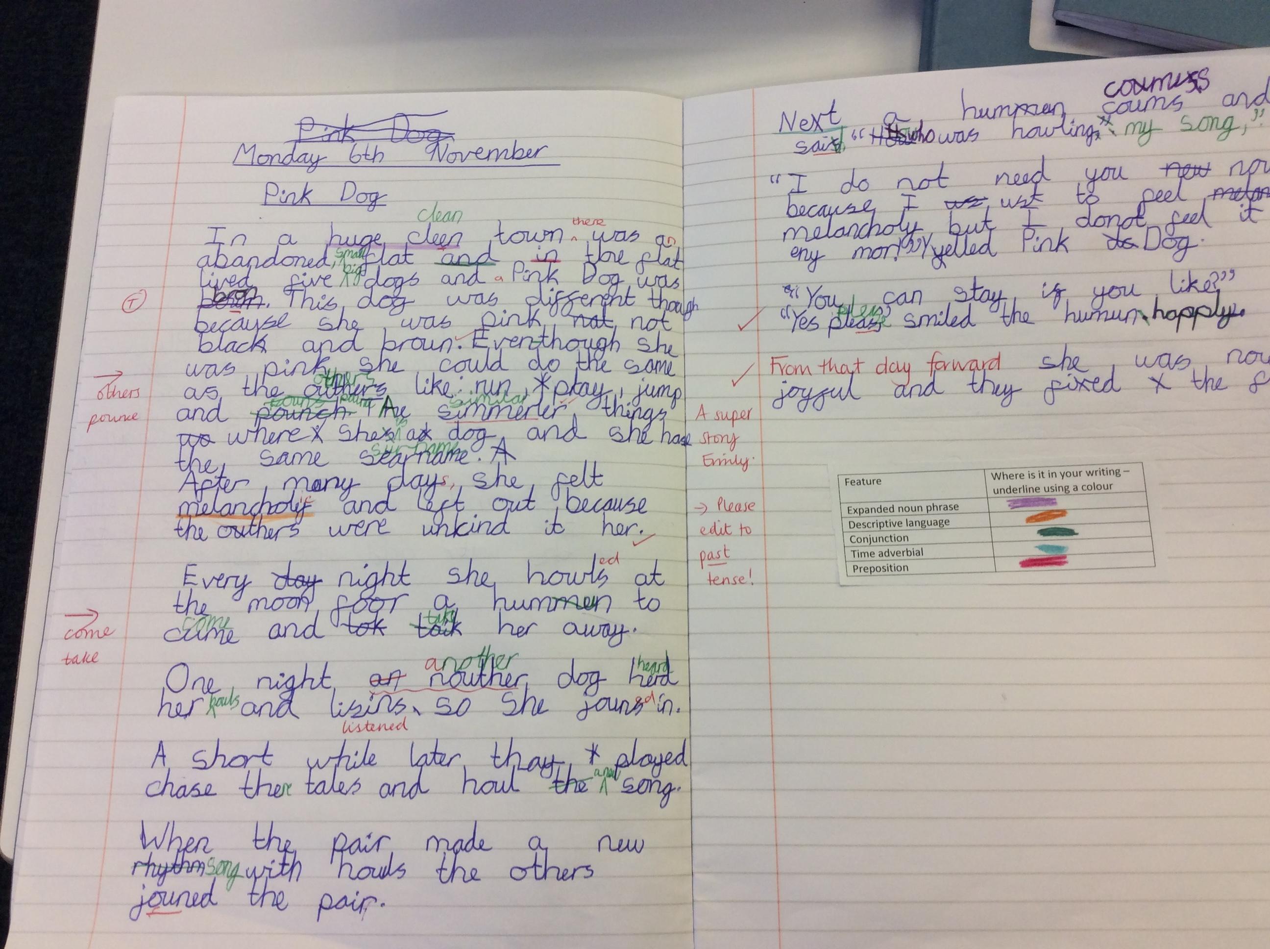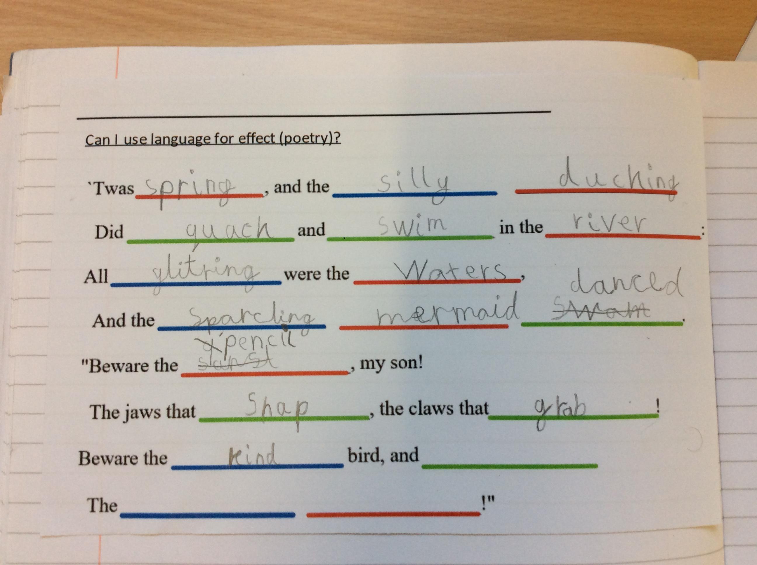 We recalled our work on word classes. nouns, verbs and adjectives. We tried to use the colour codes to add words to the stem sentences to describe different pictures. We had to play around with the words to until we were happy with what we had written.