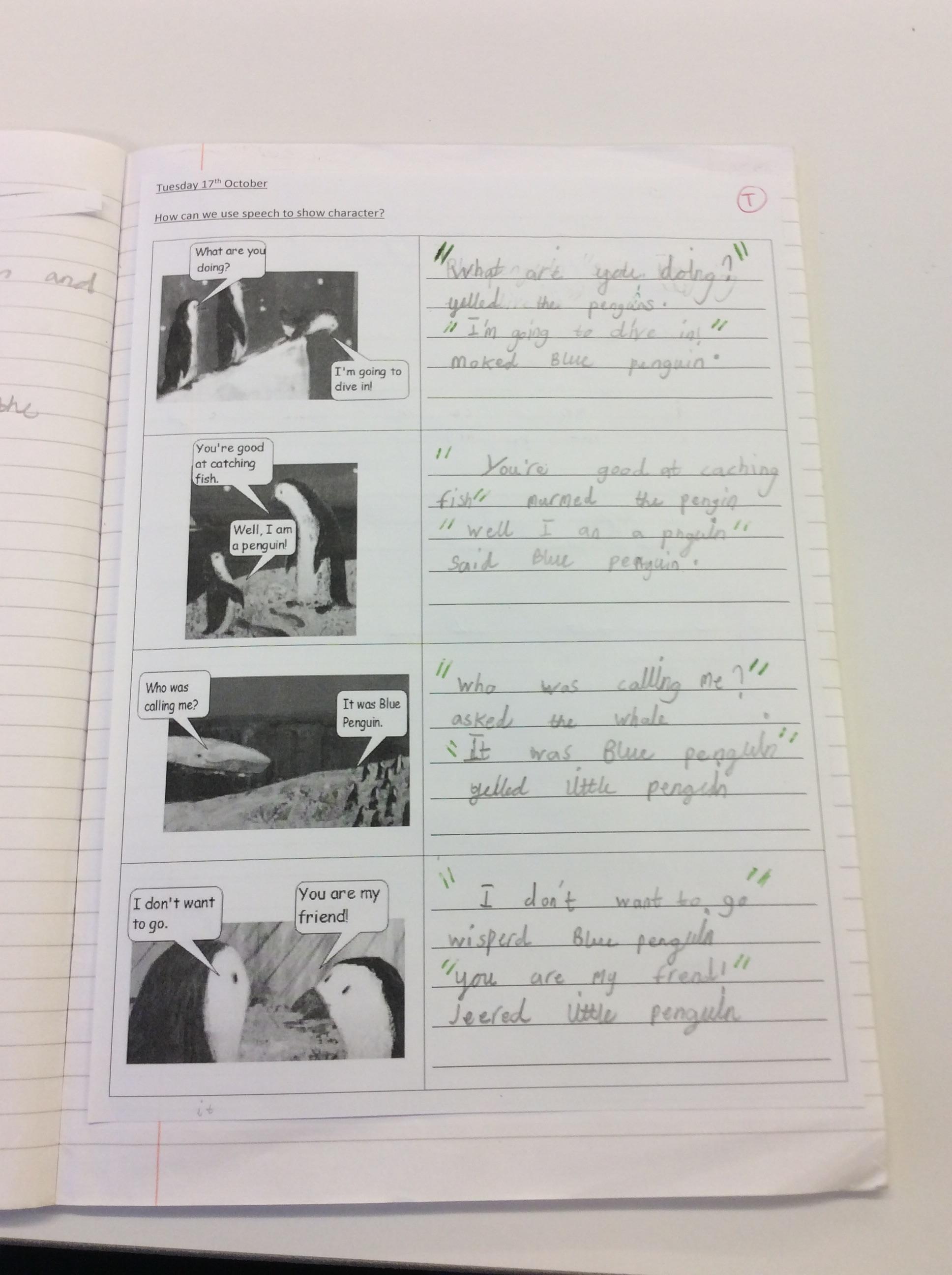 After reading Blue Penguin last half term, we have unpicked the themes and structures of the story and have innovated our own story.