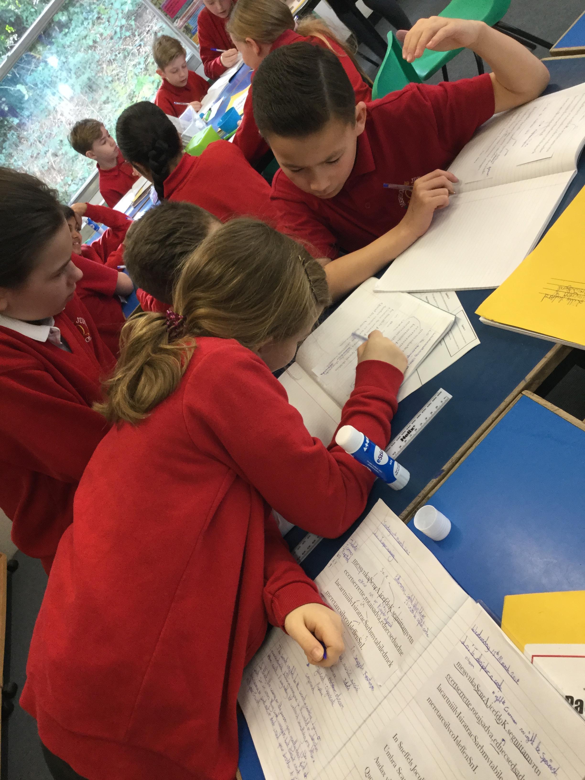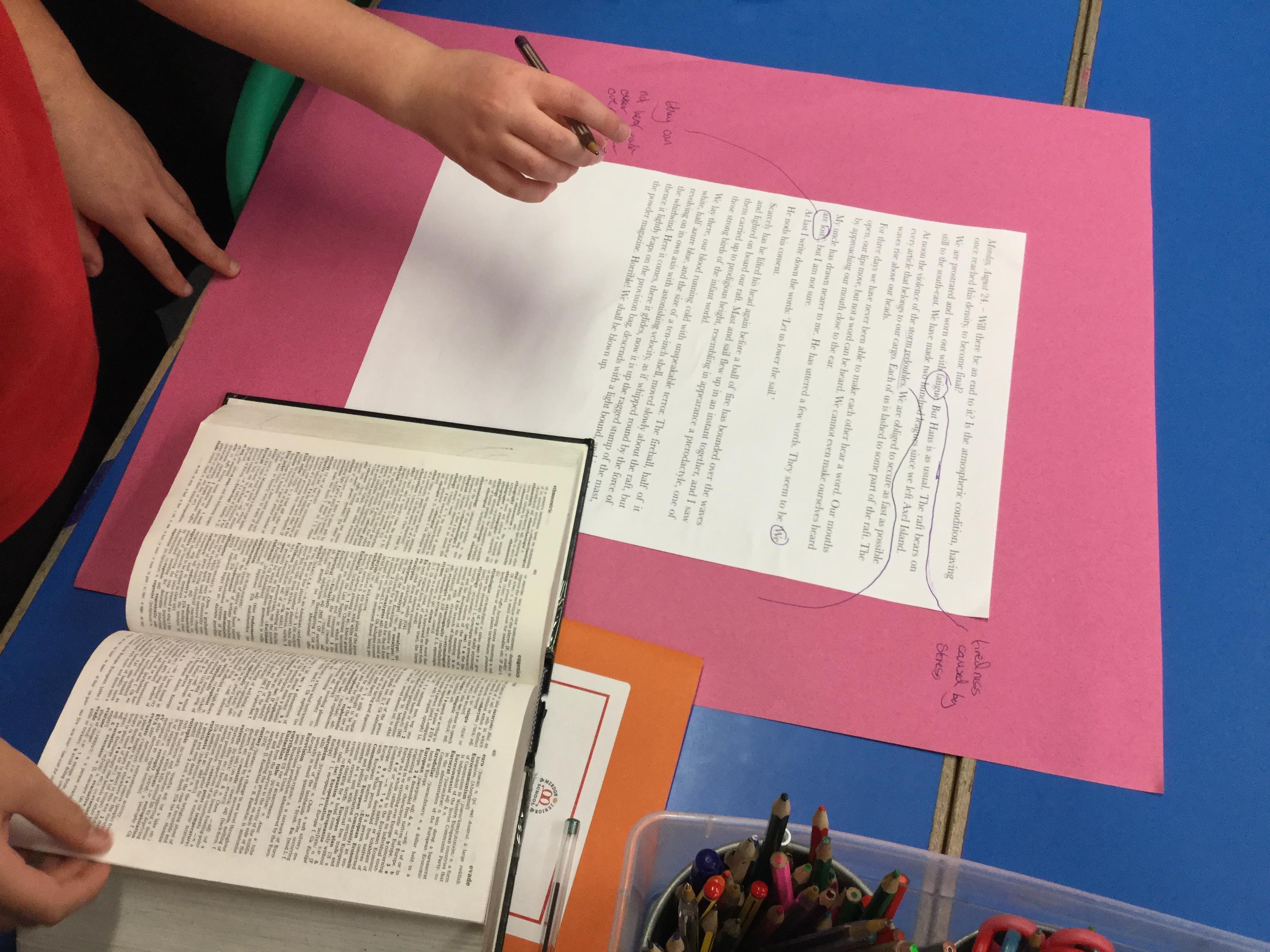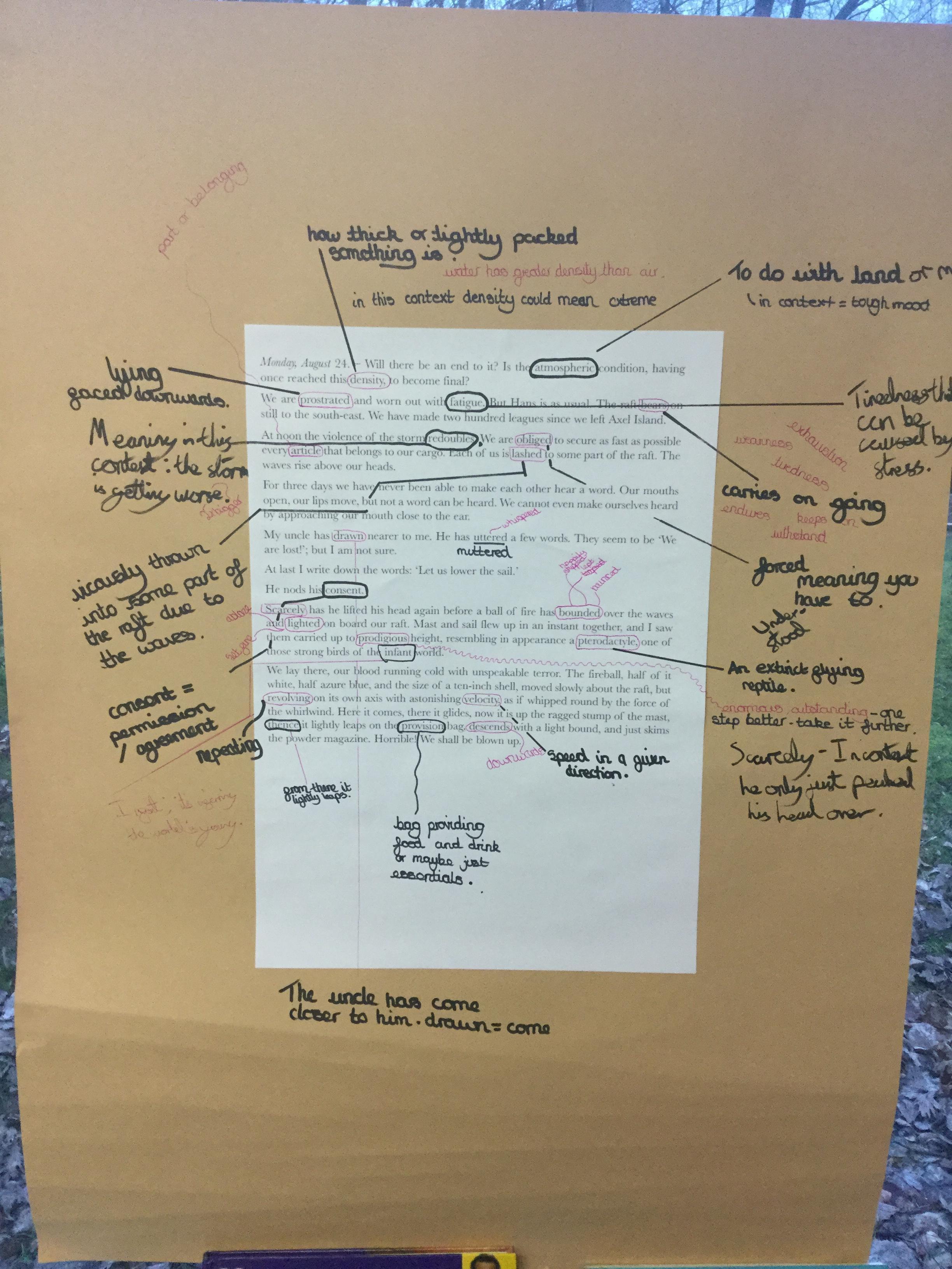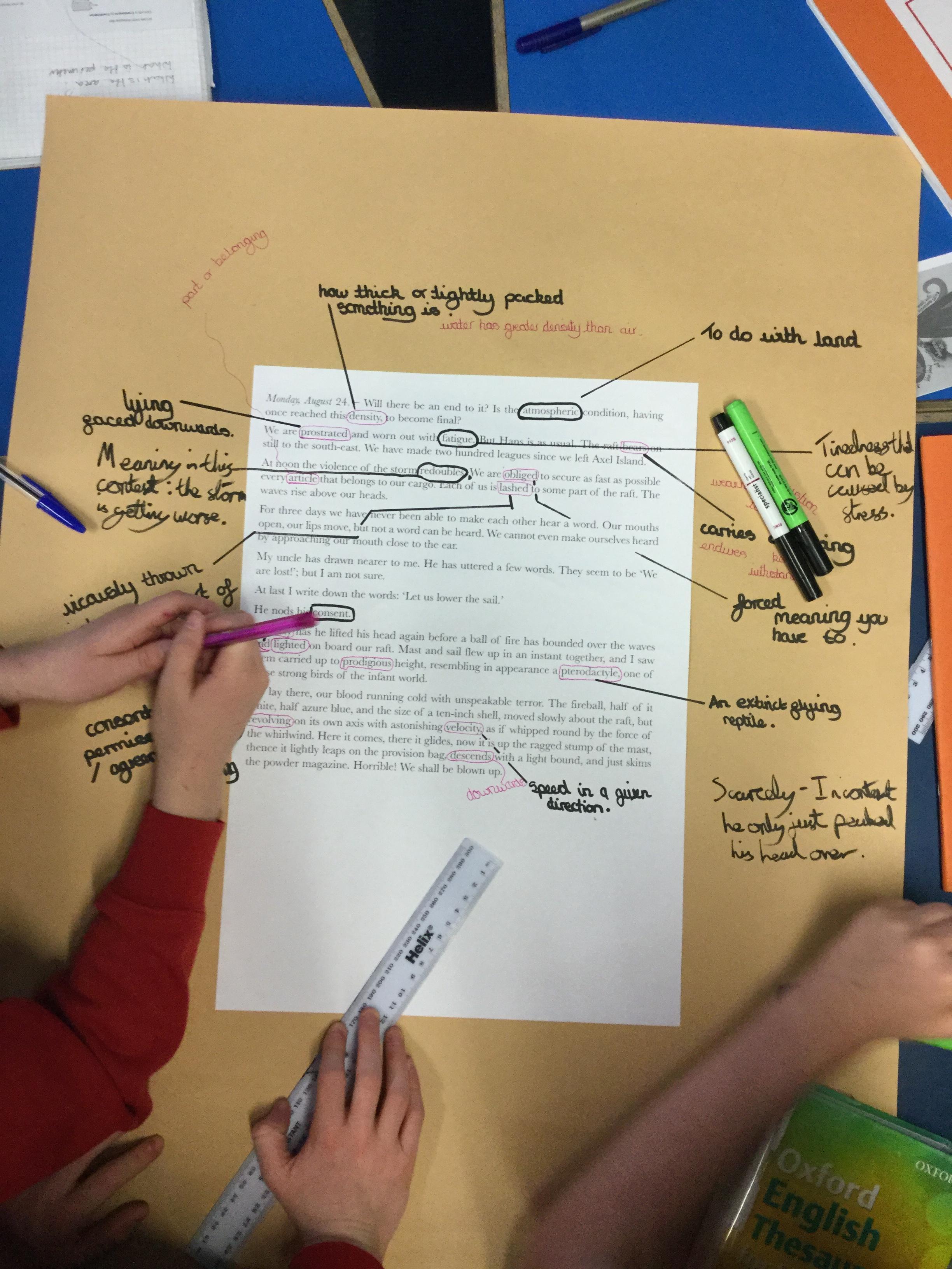 Next we looked at another extract and in groups investigated unknown words and their meanings replacing them with synomyns.