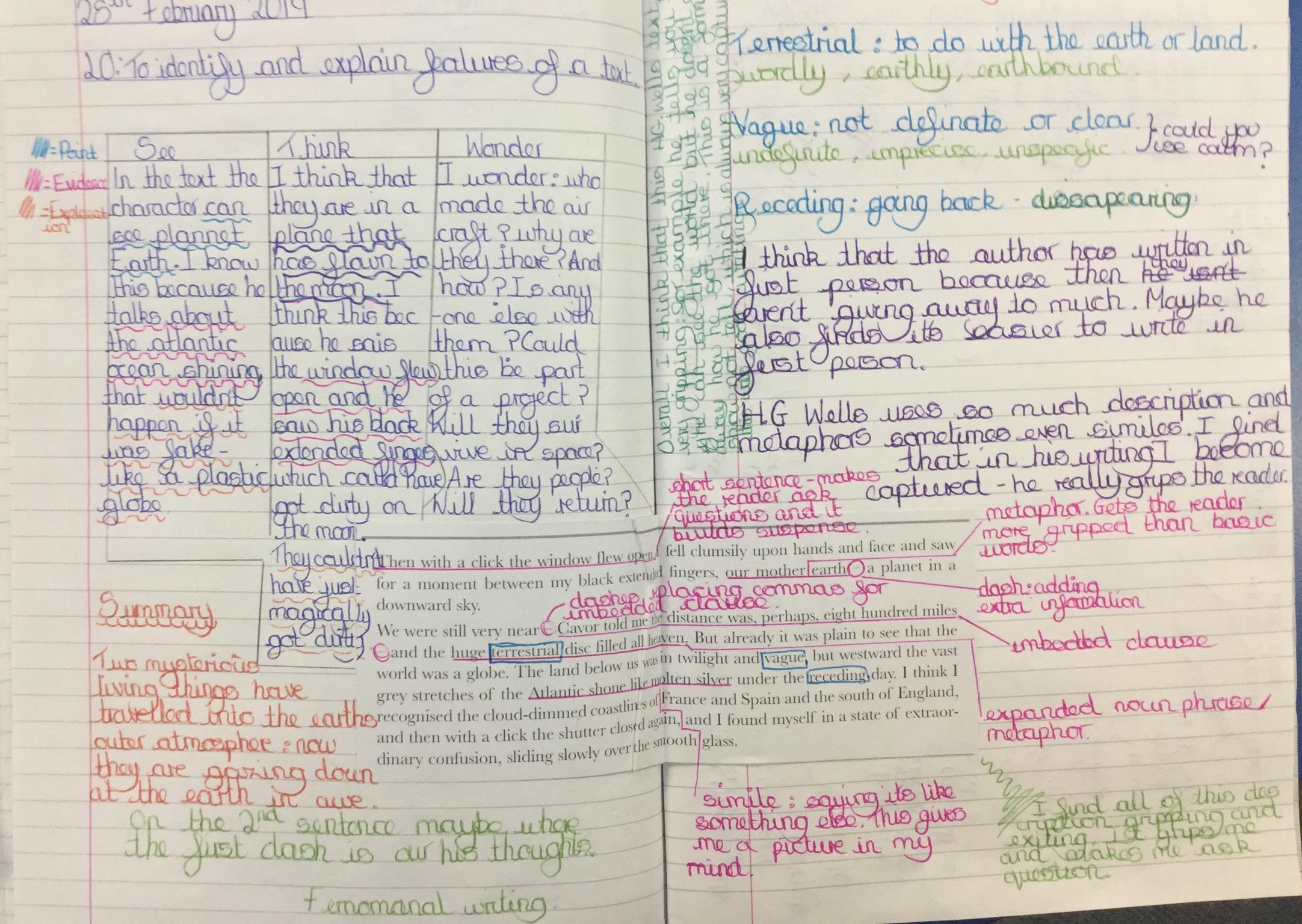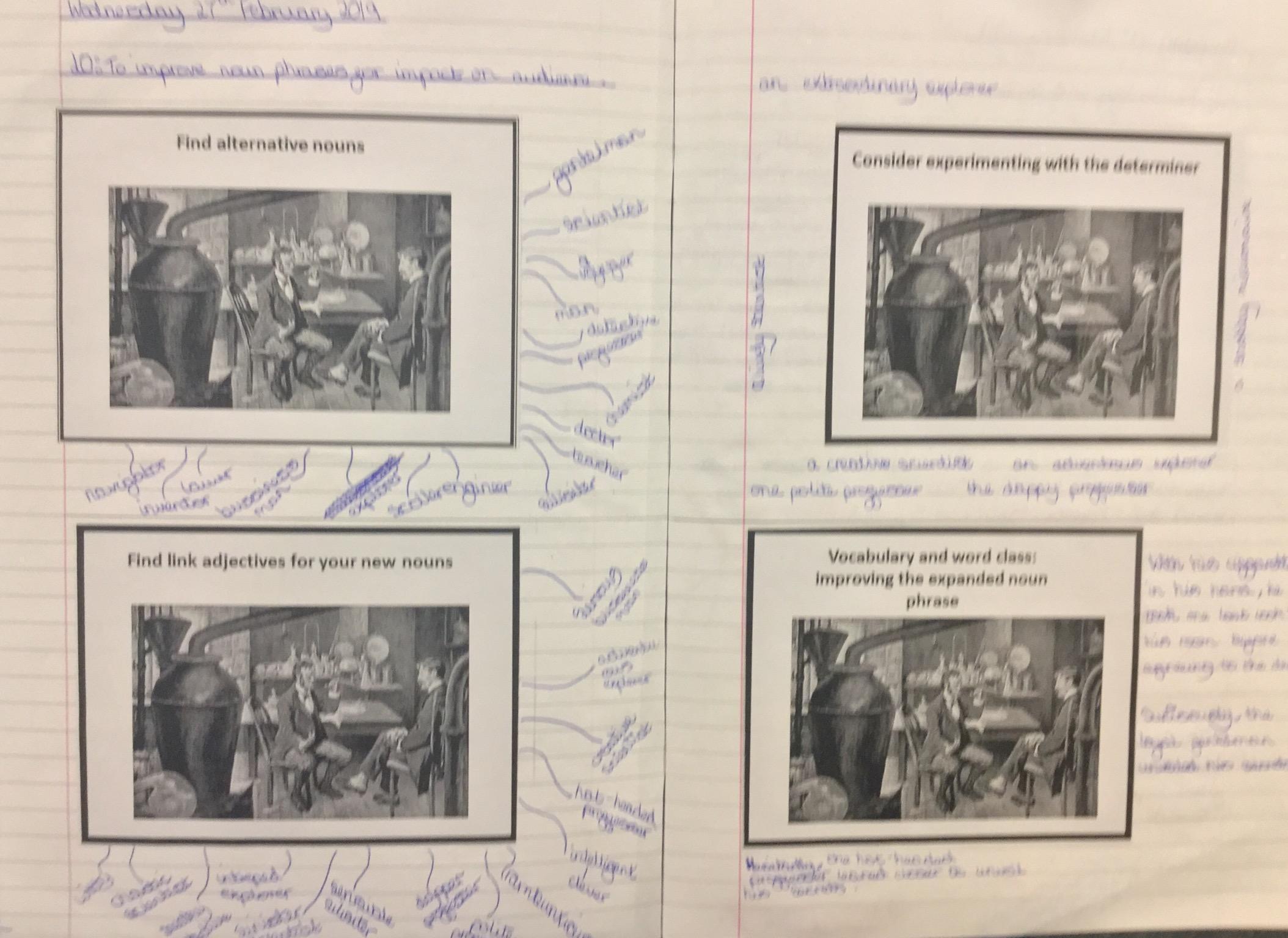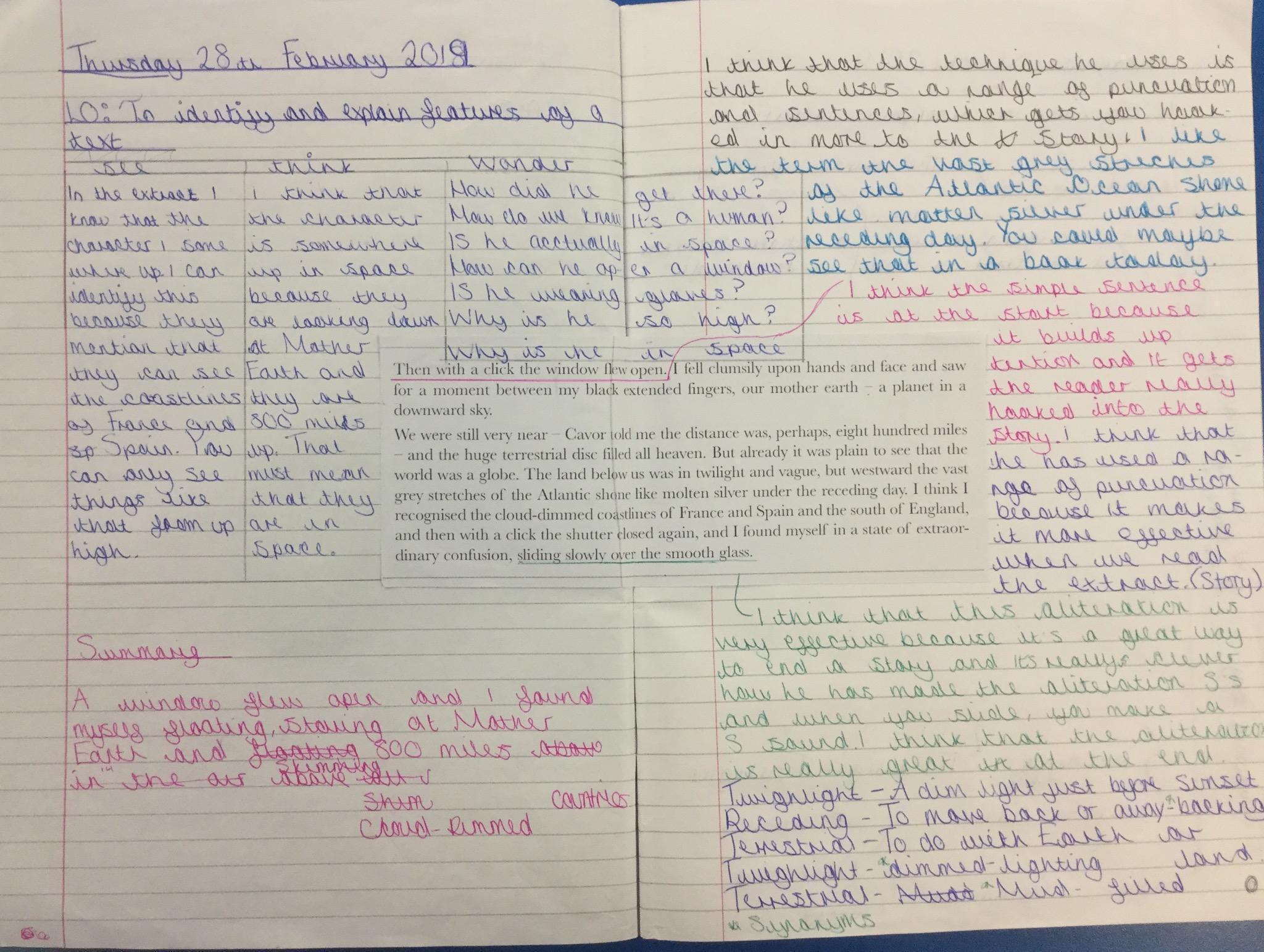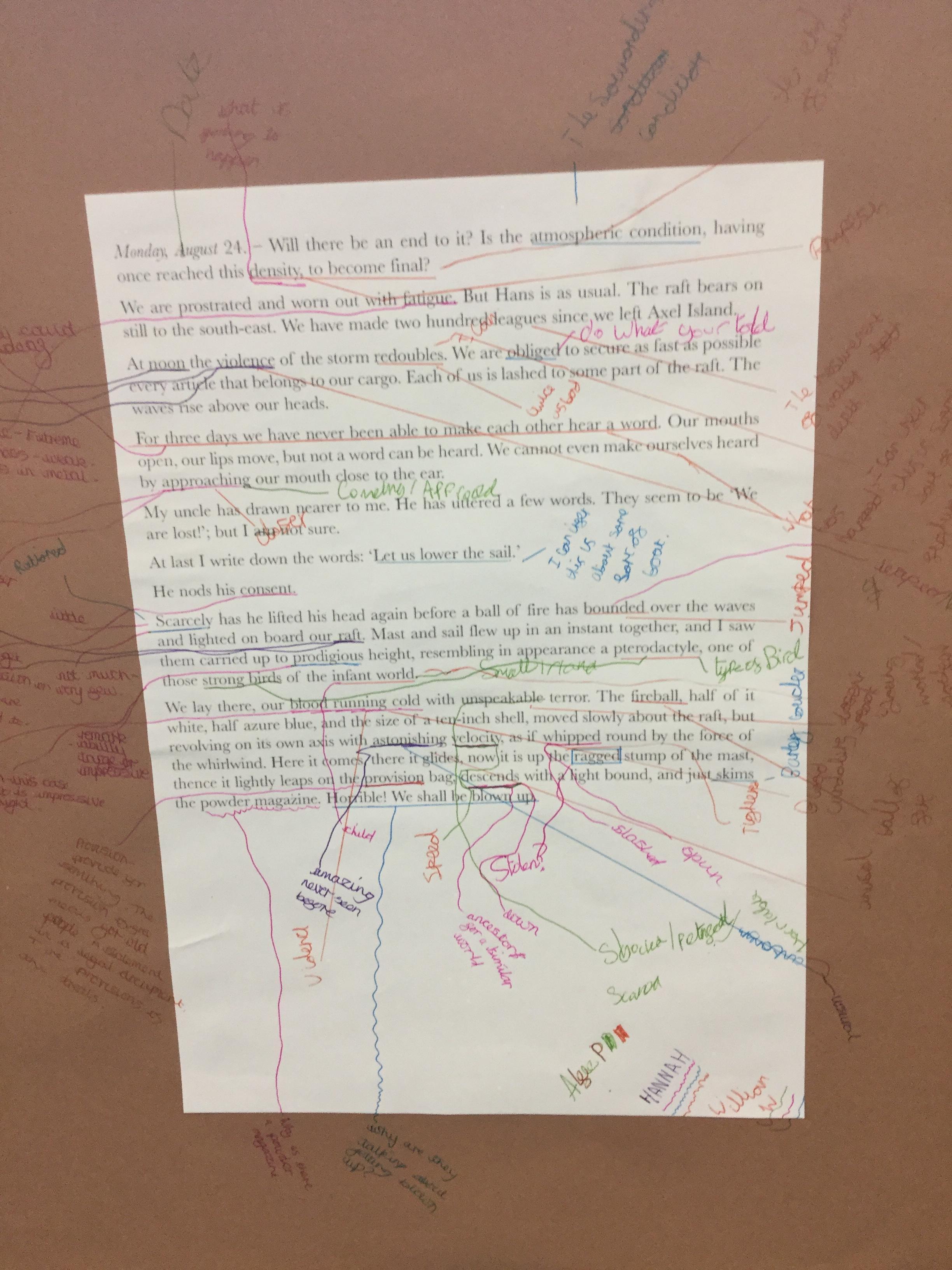 Next we looked at another extract and in groups investigated unknown words and their meanings replacing them with synomyns.