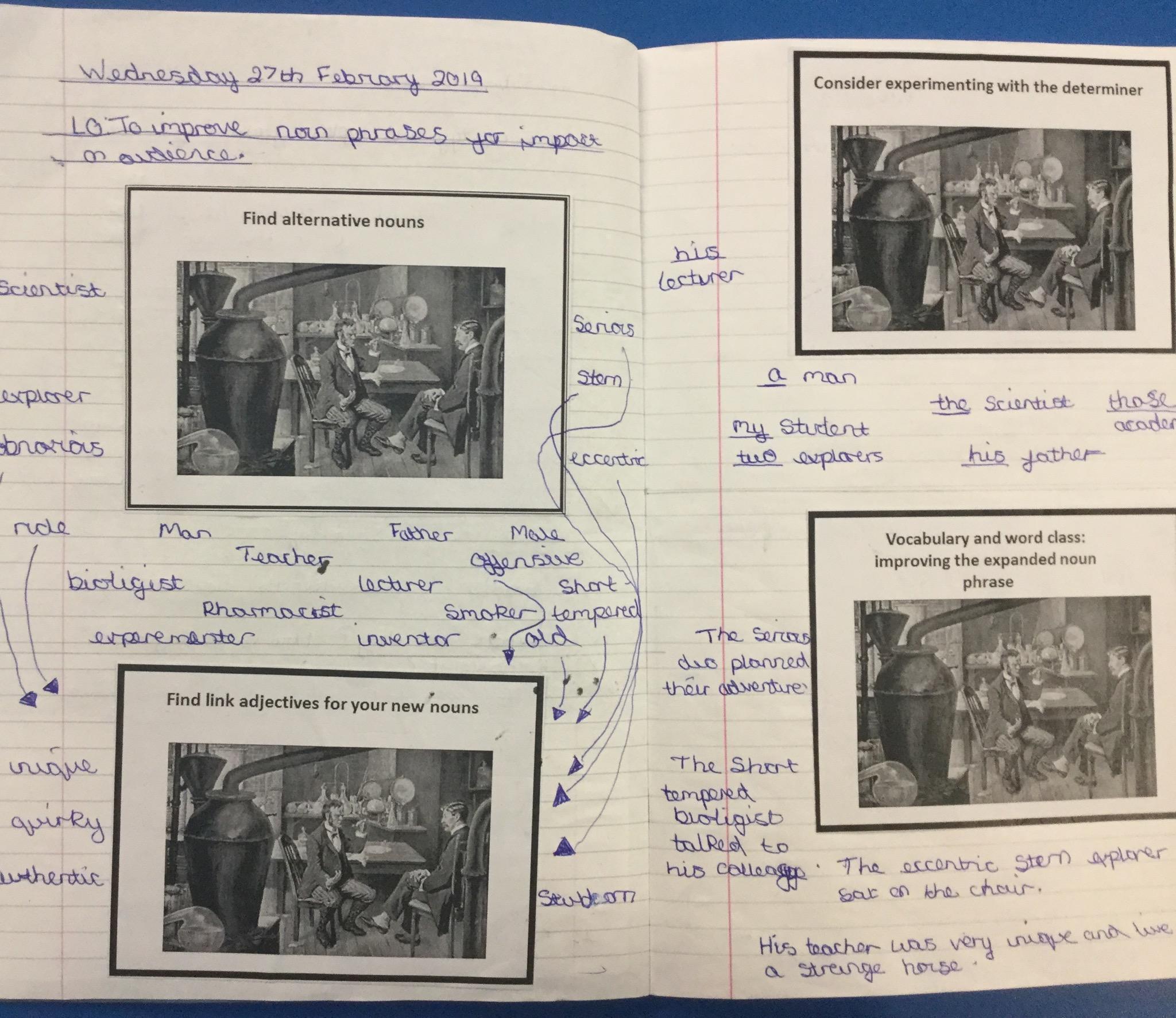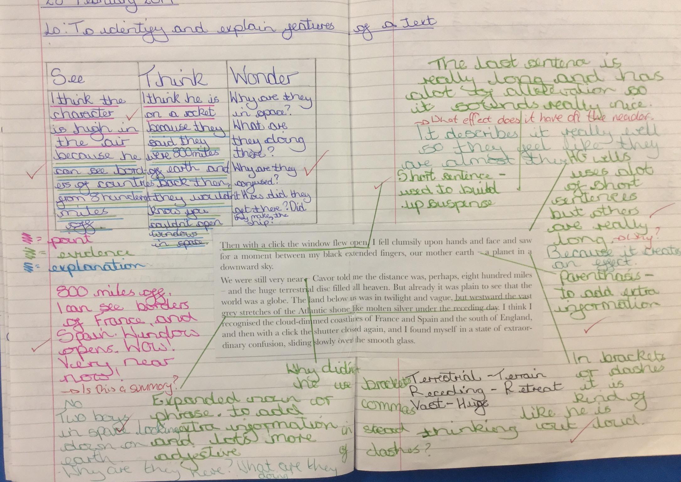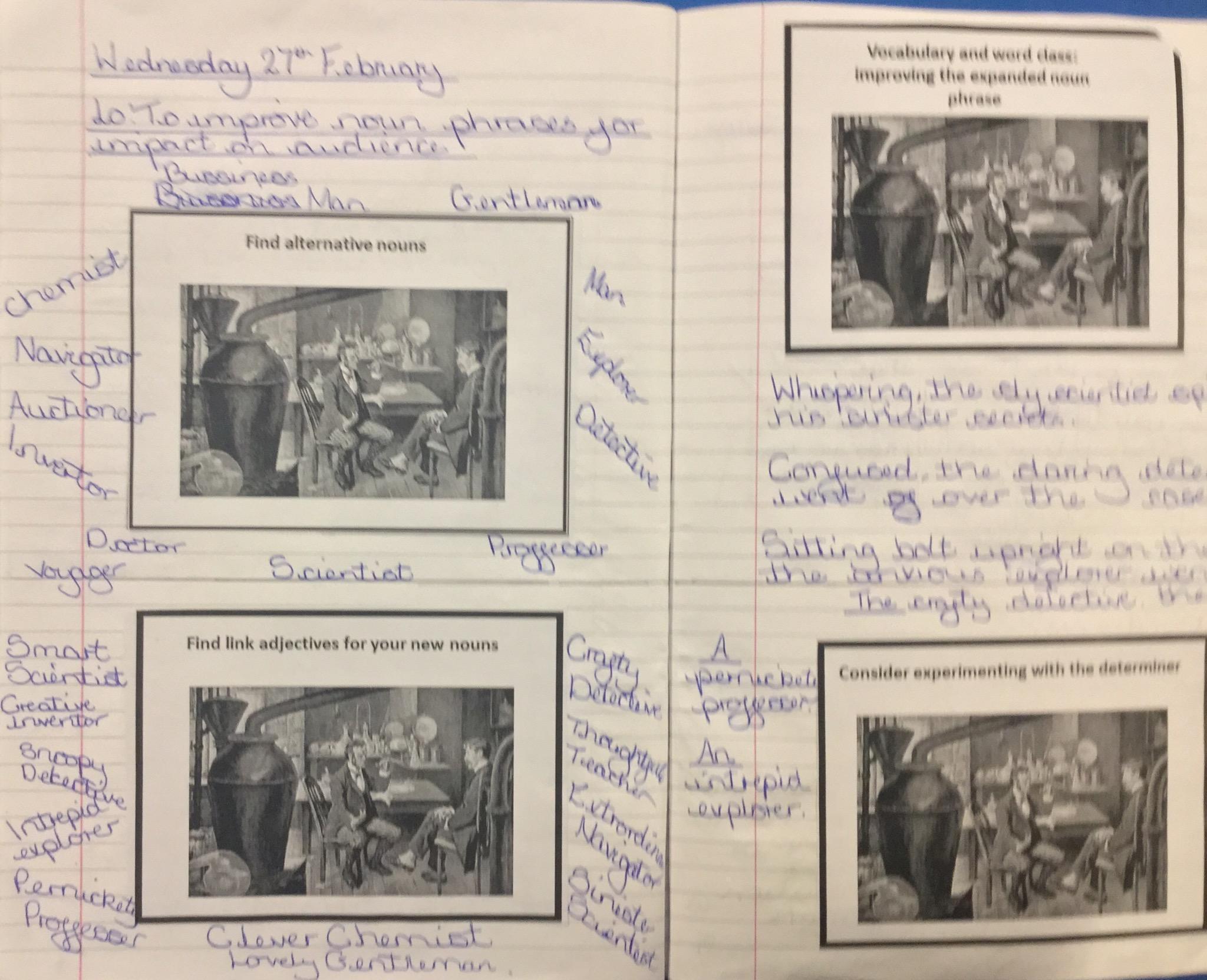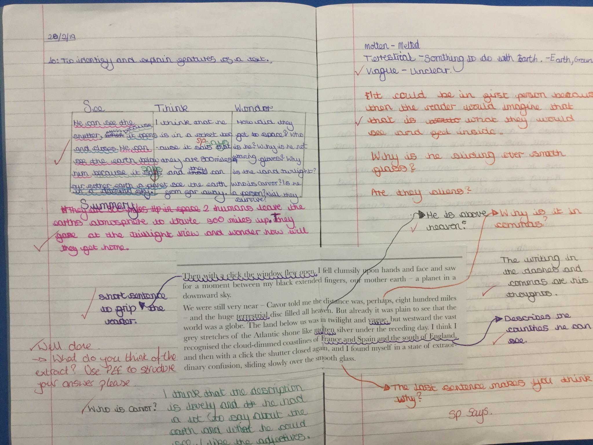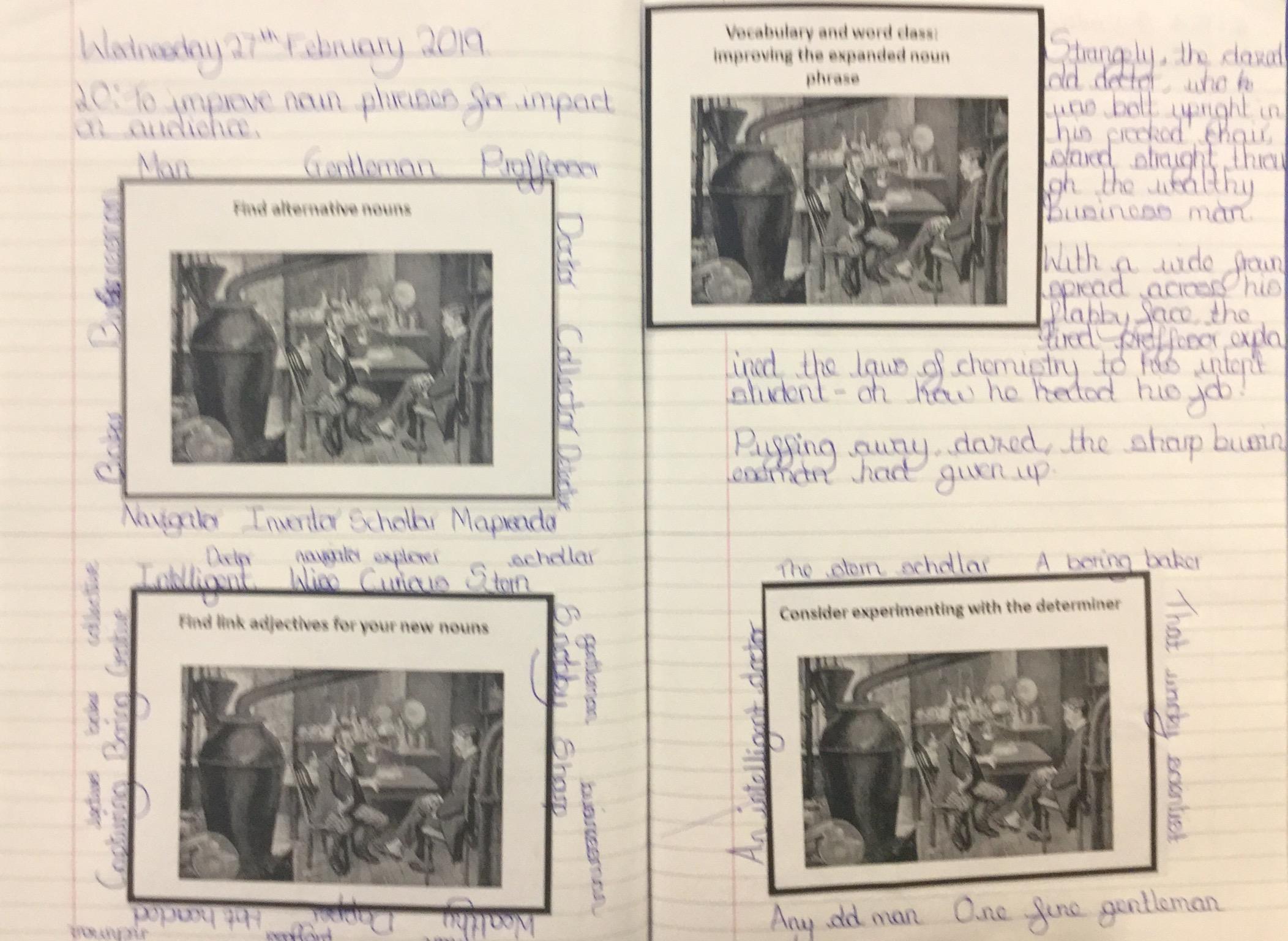 Next we looked at another extract and in groups investigated unknown words and their meanings replacing them with synomyns.