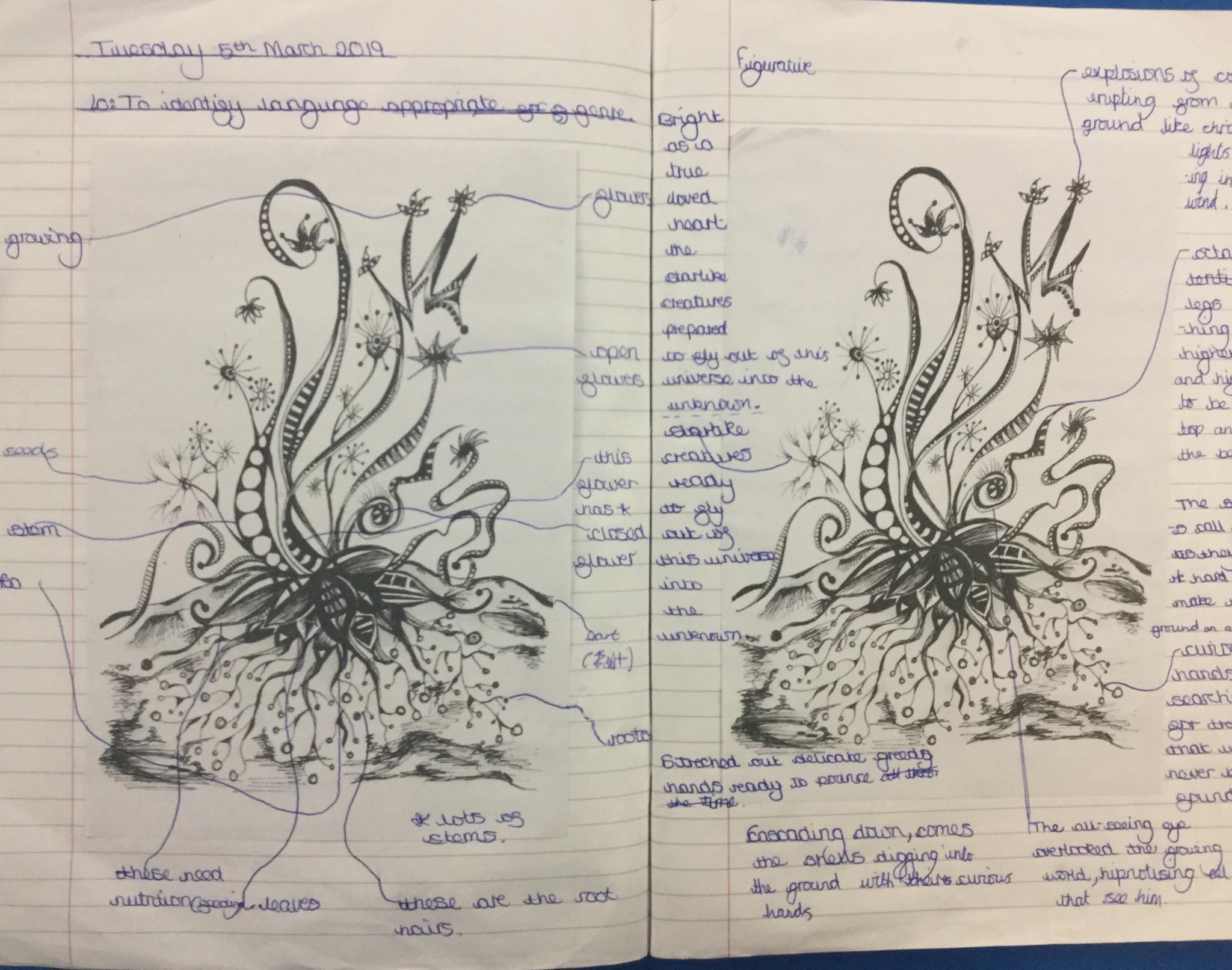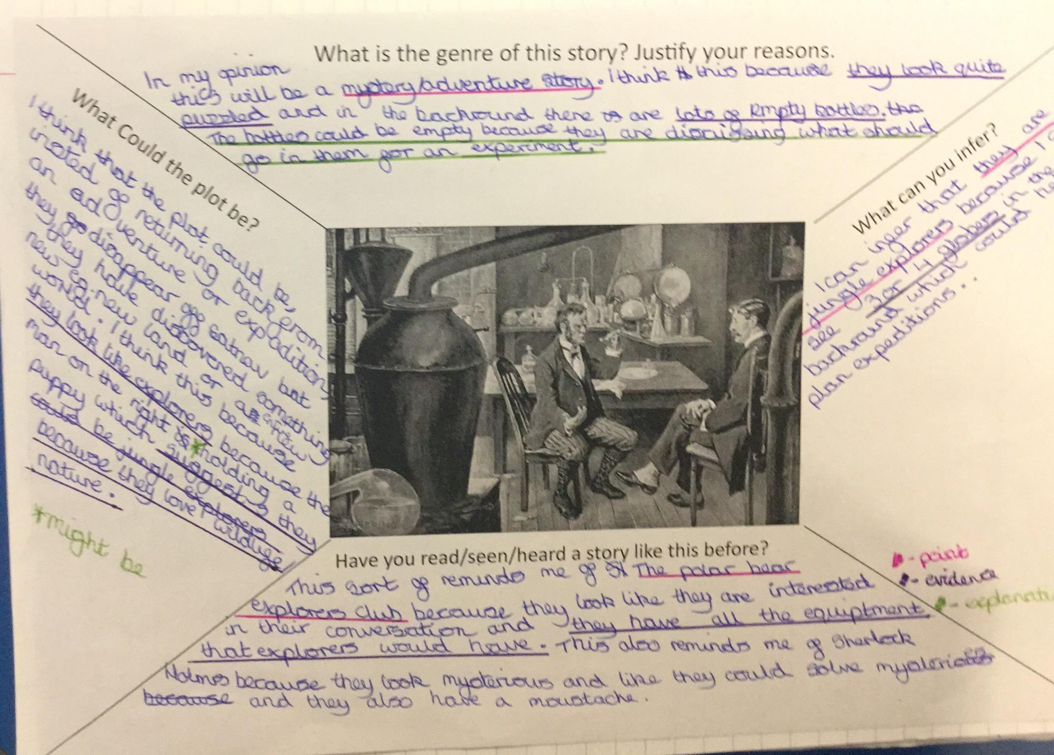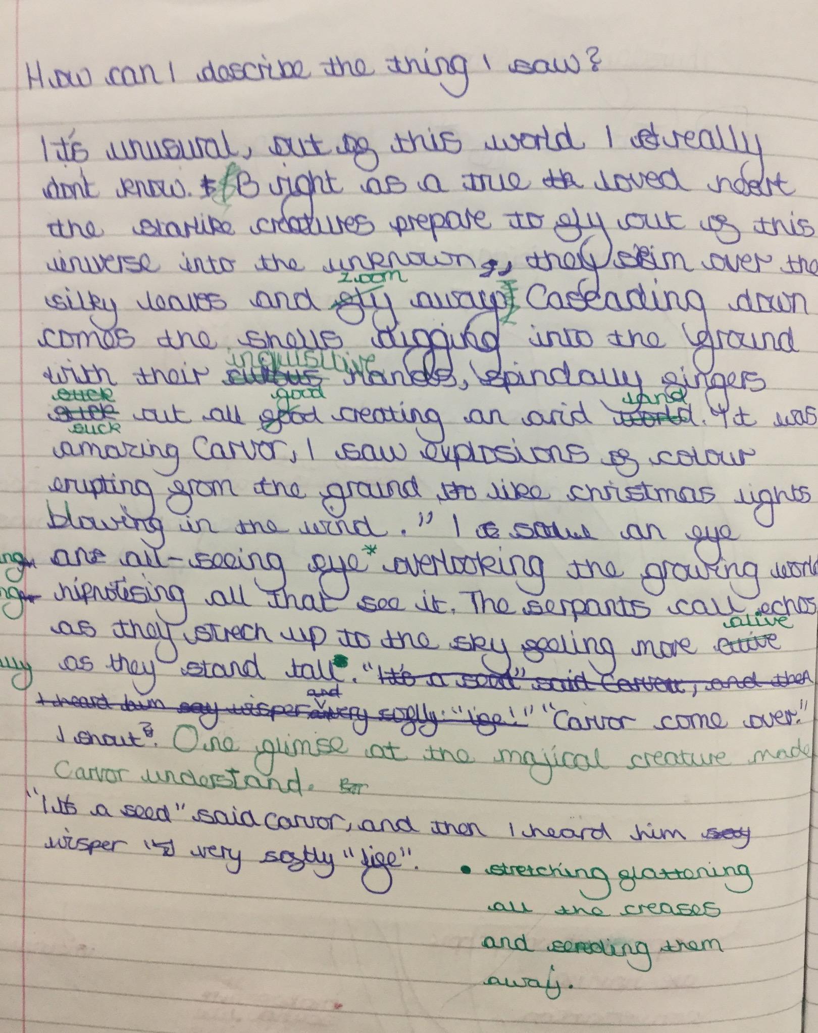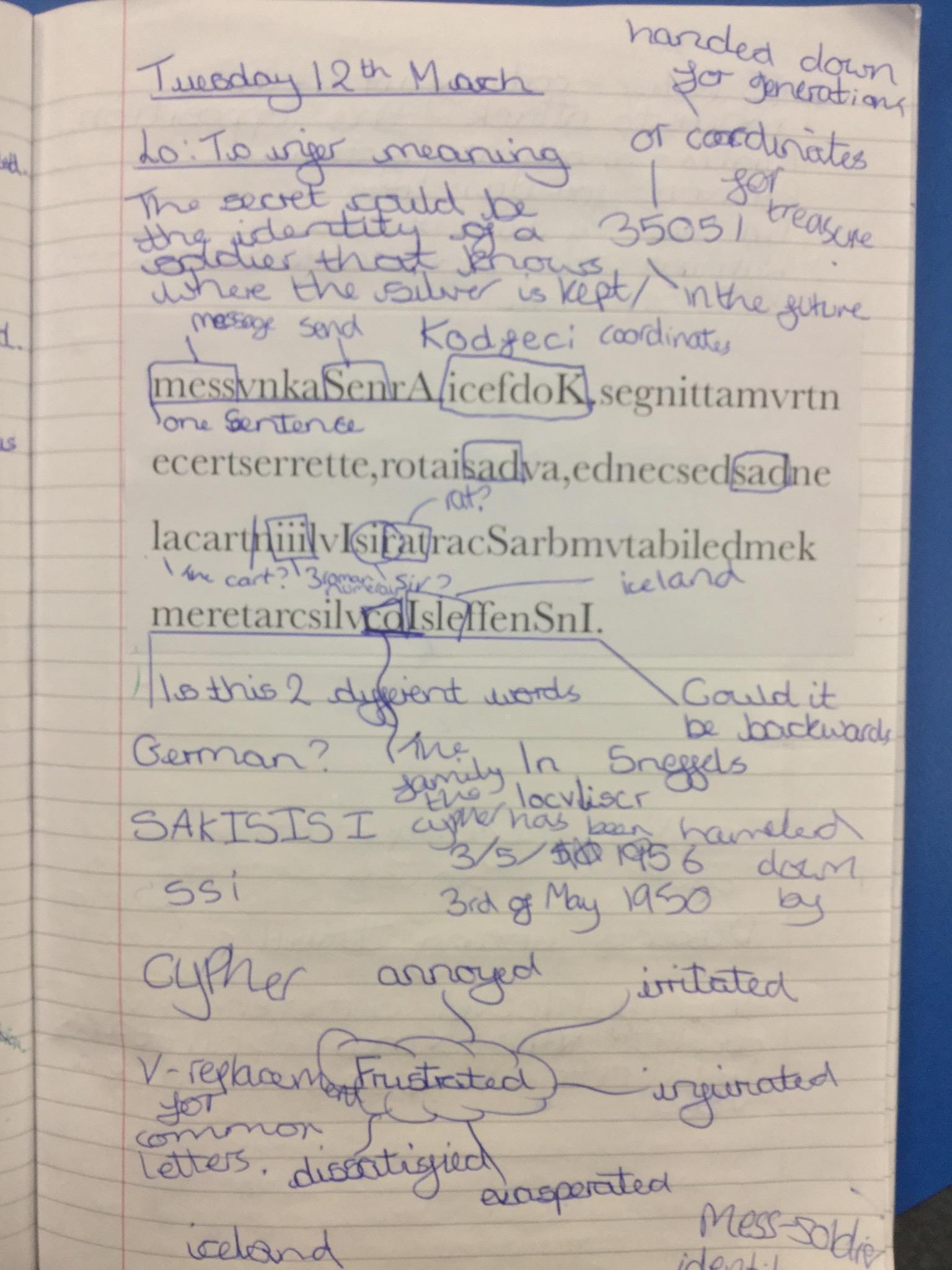 Next we looked at another extract and in groups investigated unknown words and their meanings replacing them with synomyns.
