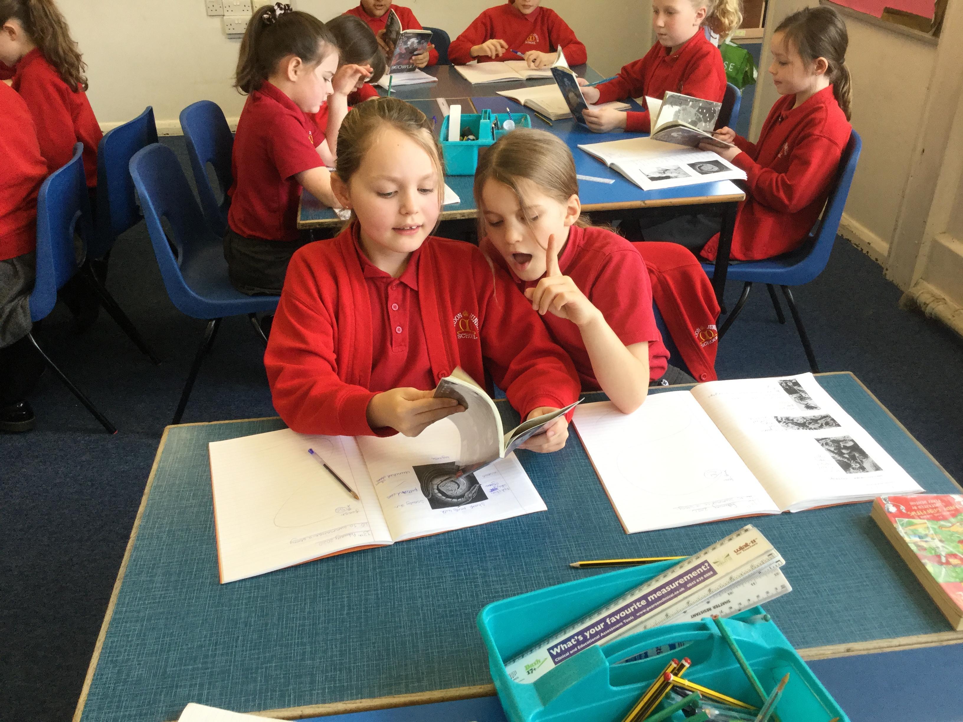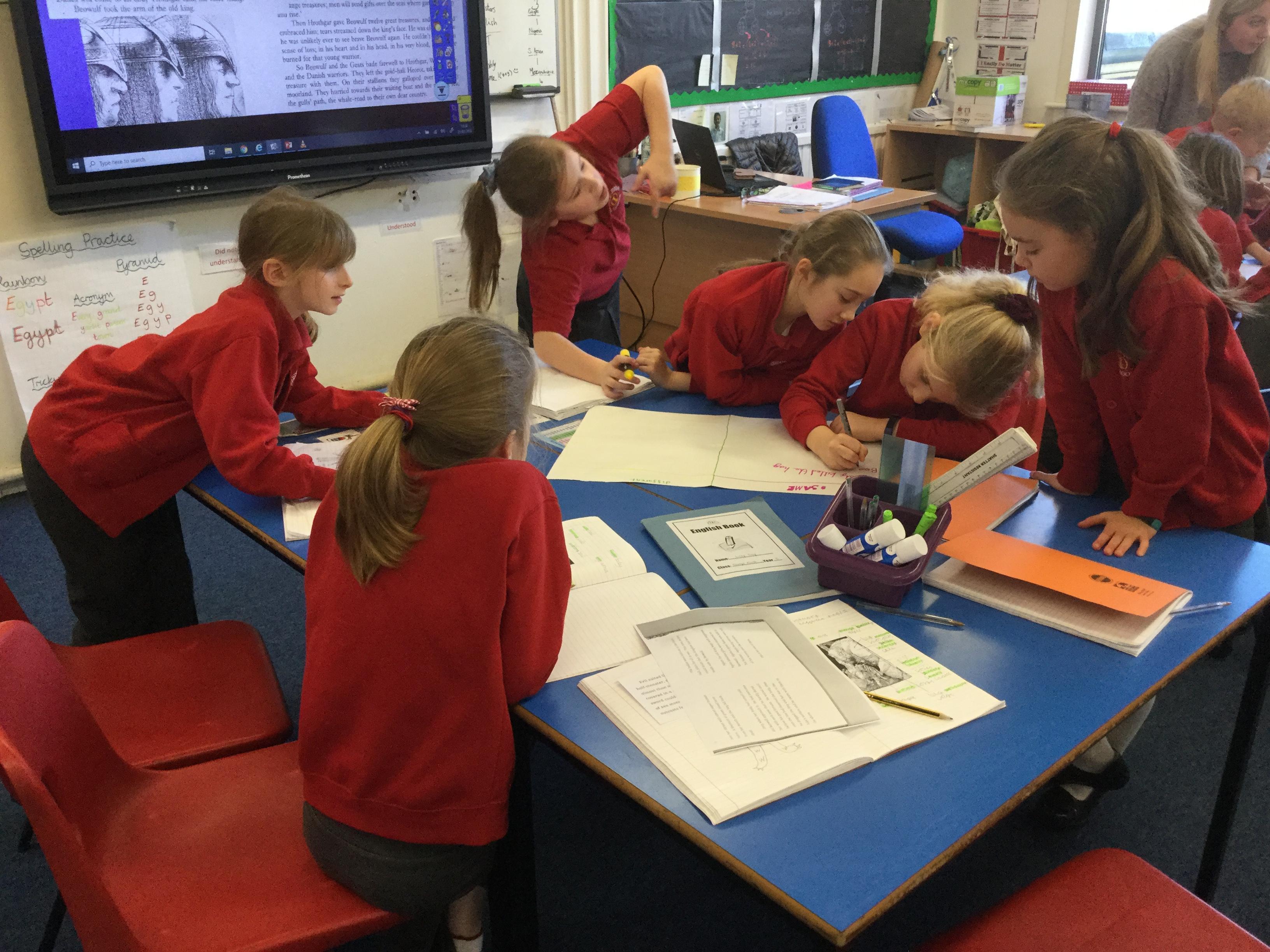 We have looked at and compared many versions of the story of Beowulf. There are many similarities but also many differences between them. We worked as a group comparing the different endings of two versions in detail.