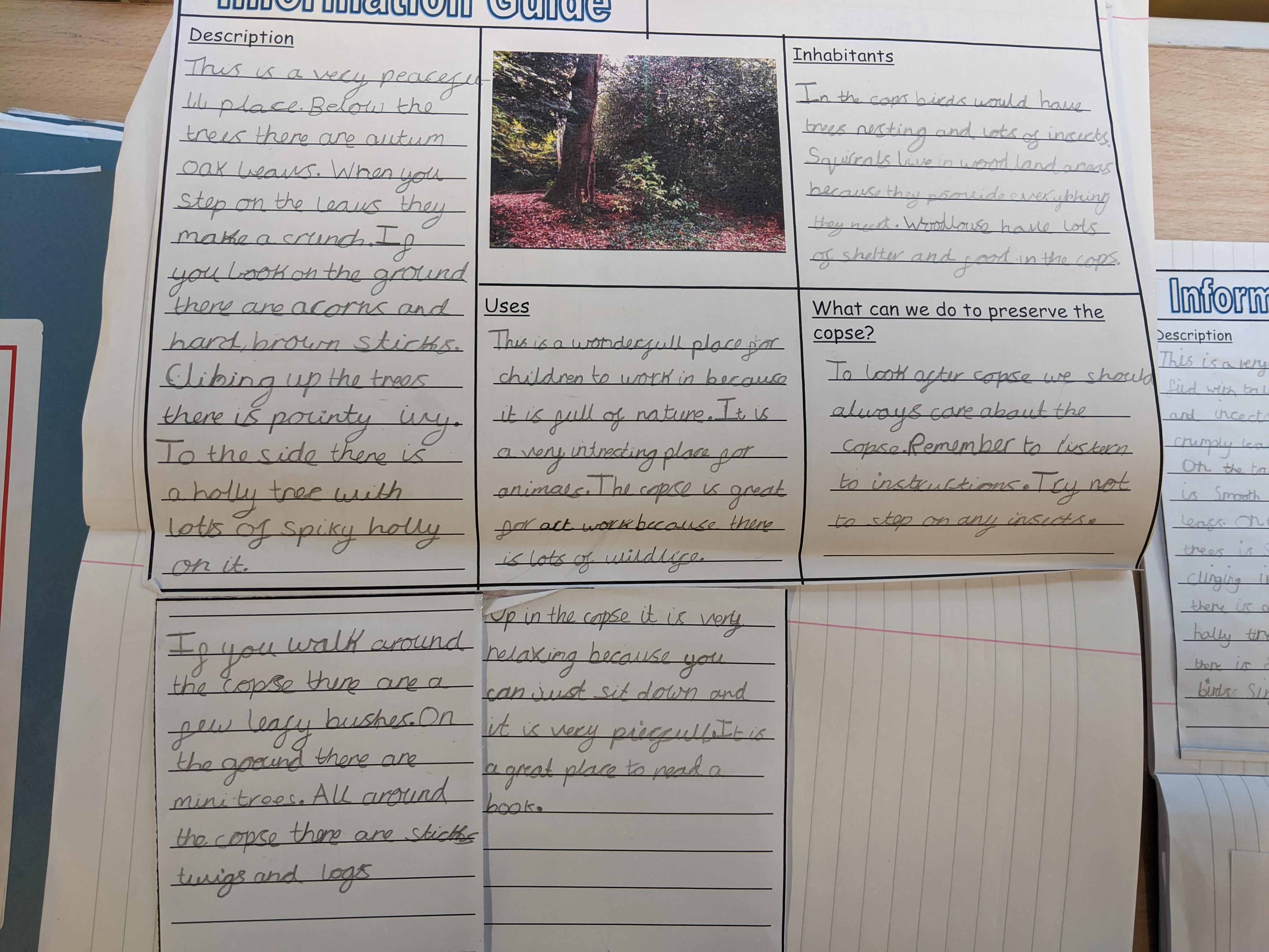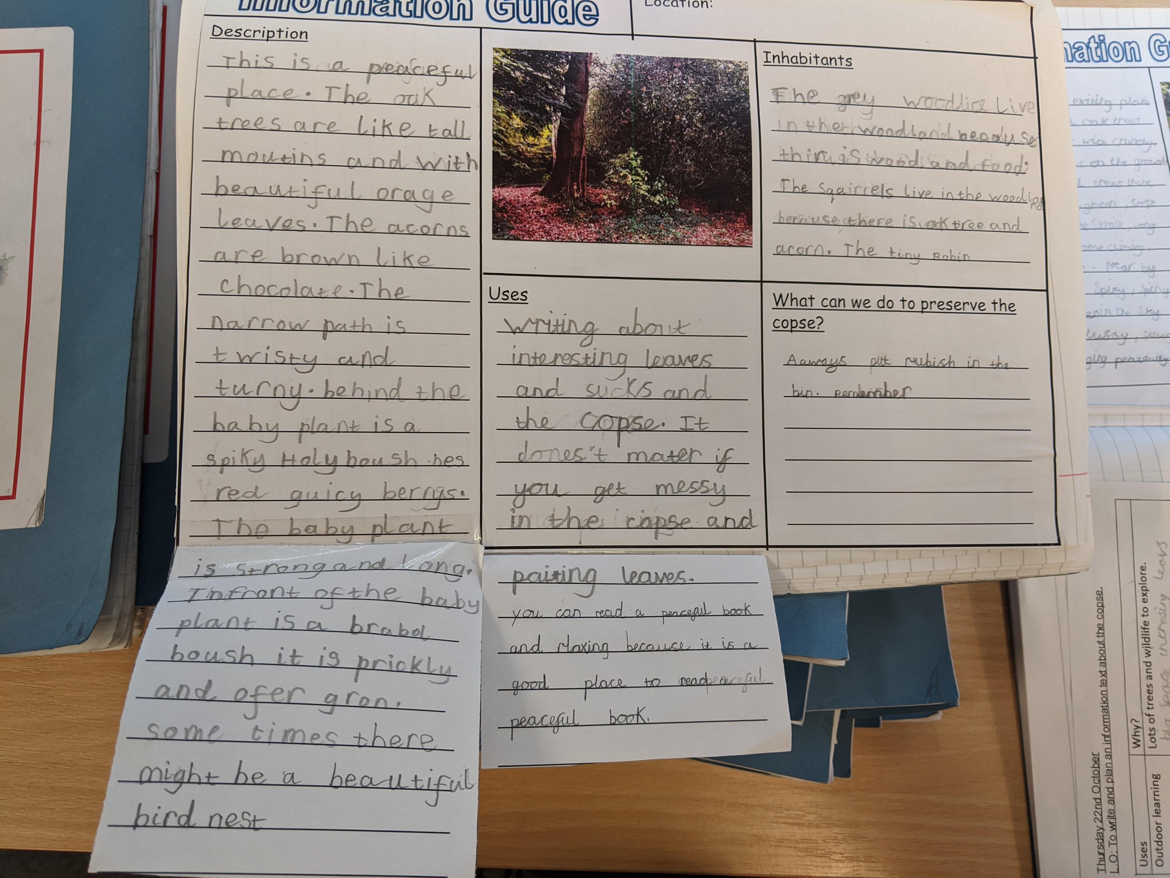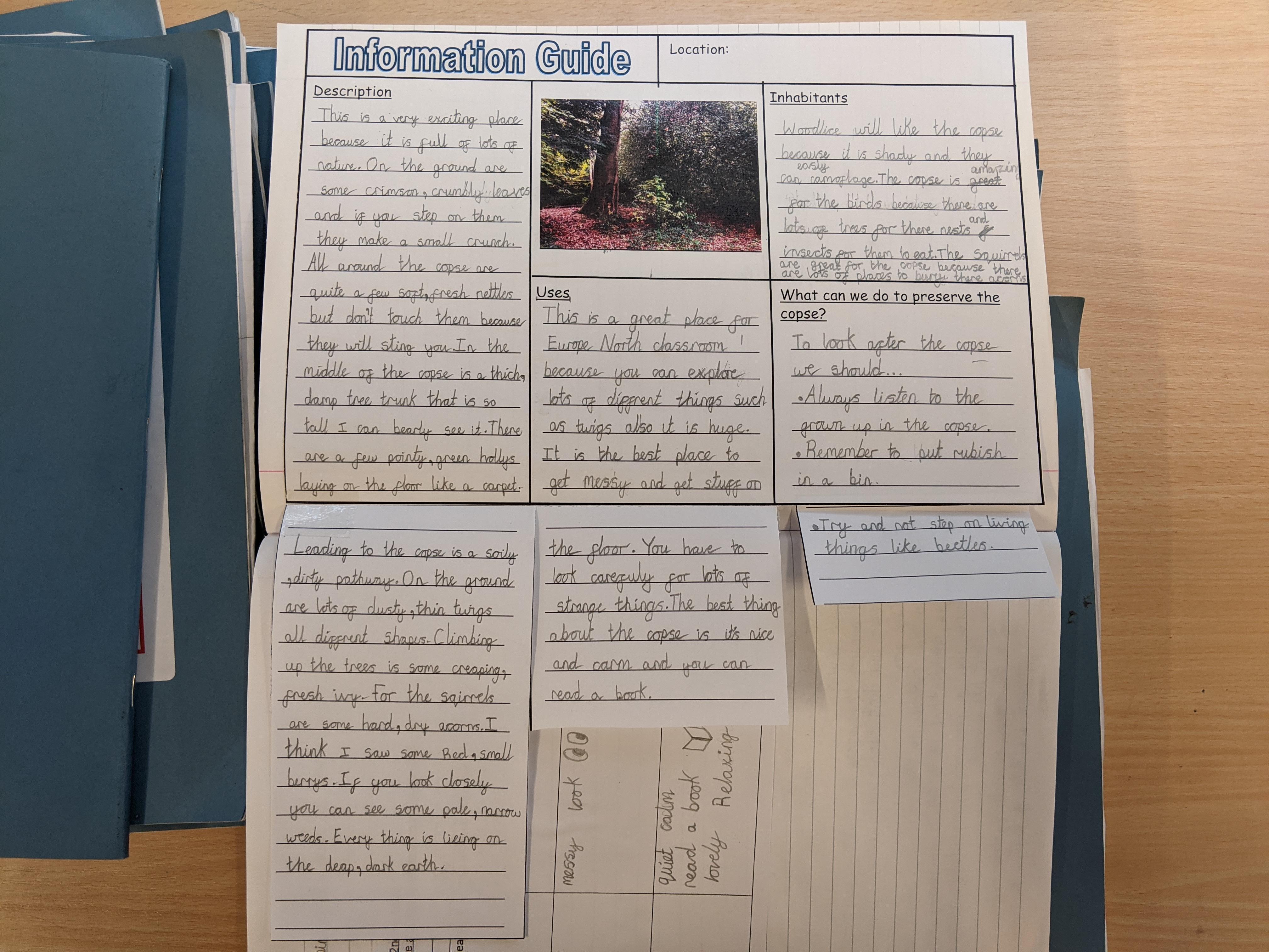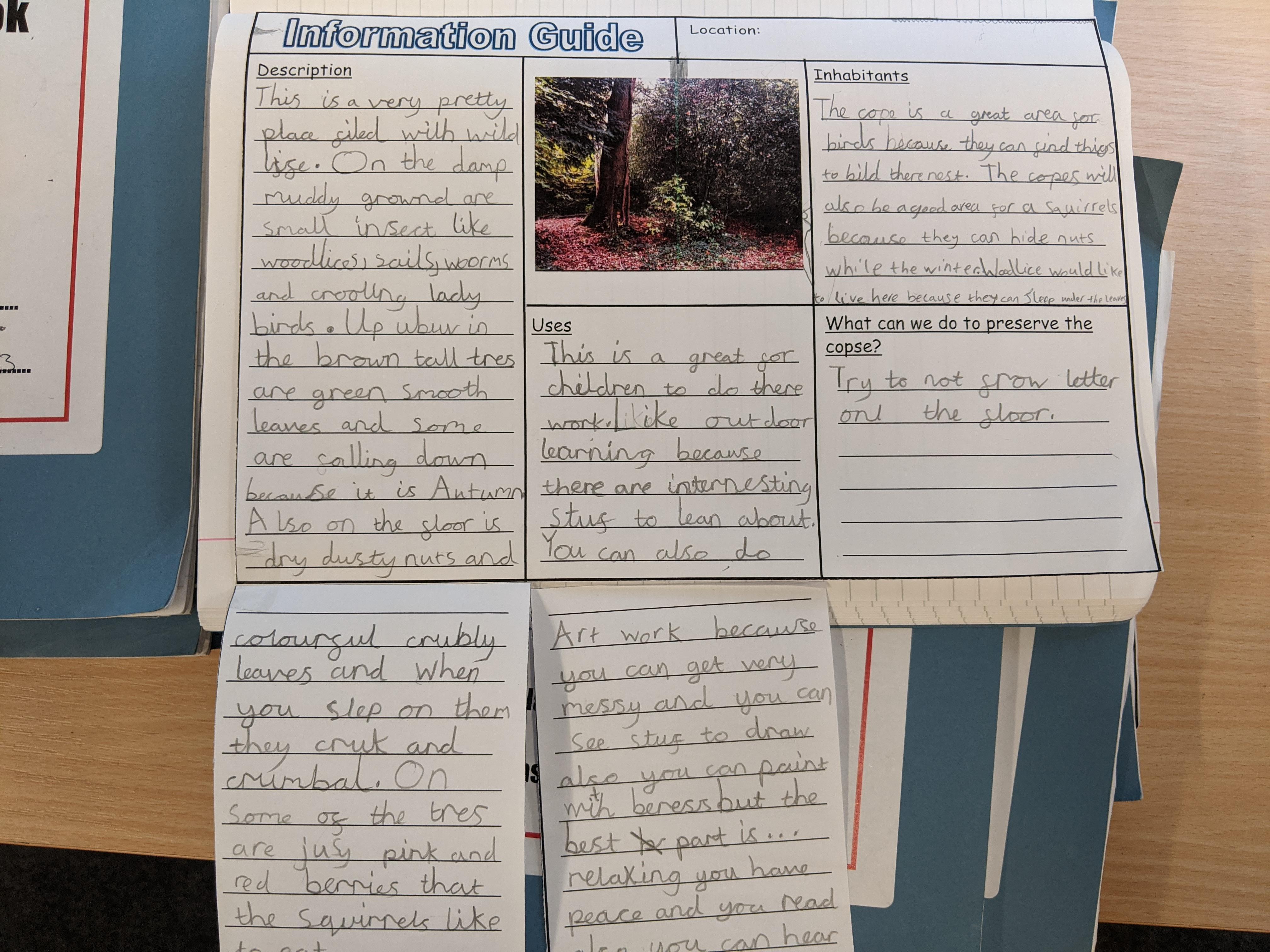 This week we have continued to look at places in the school grounds and have written an information guide. We tried to use our expanded noun phrases and prepositions of place.