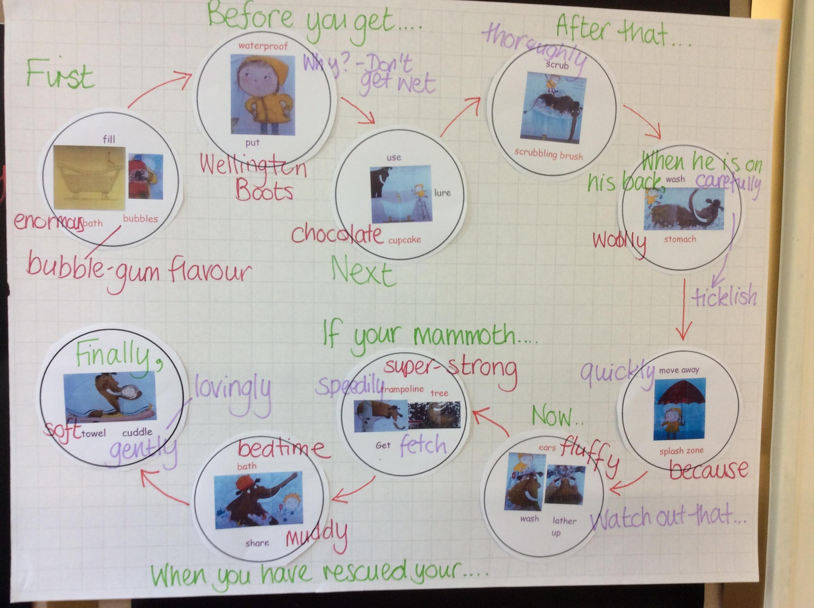 After we shared the story 'How to Wash A woolly Mammoth', We applied our learning about writing instructions to a new task. We wrote our own instructions including all the skills we have been learning this week...