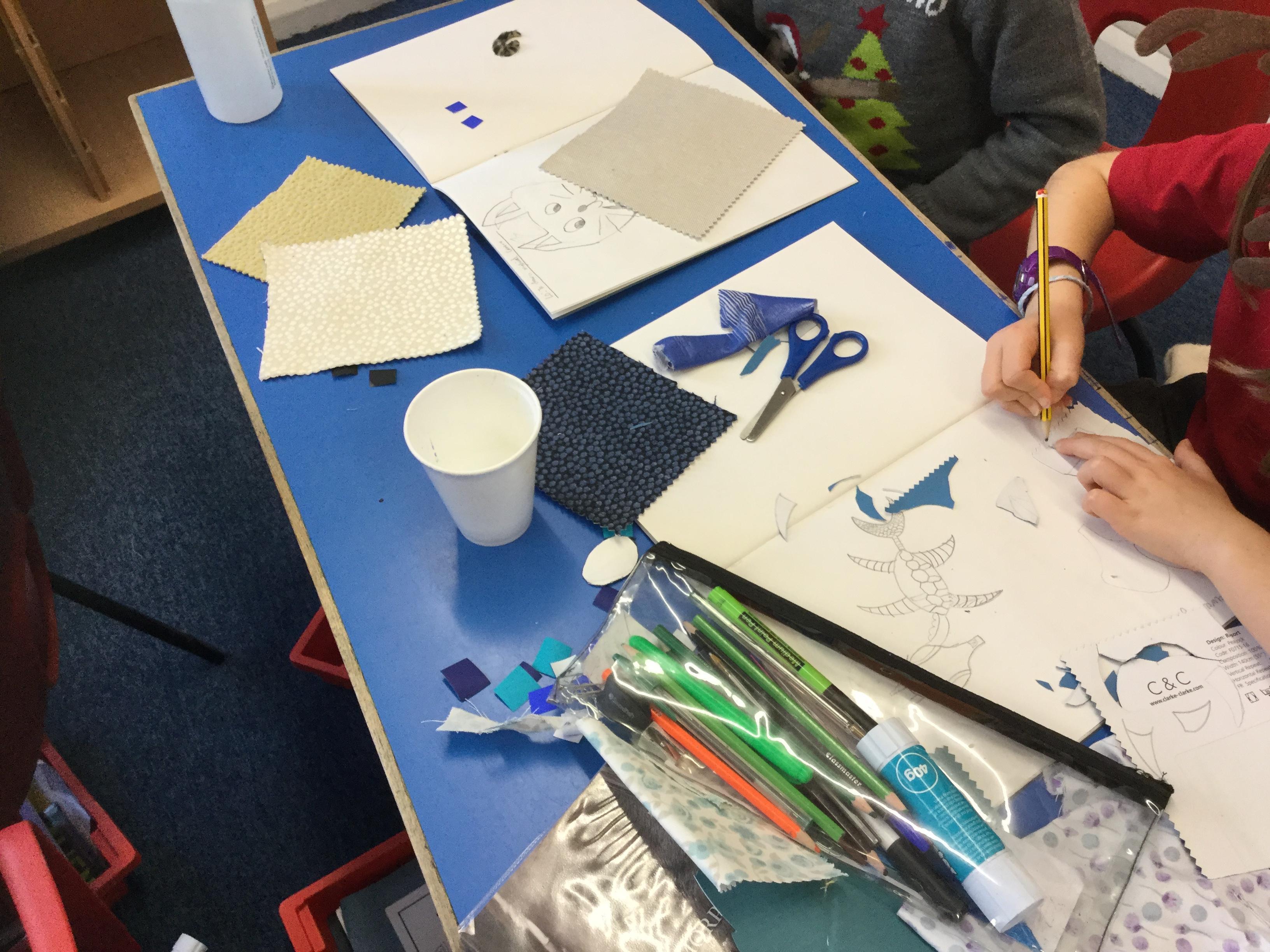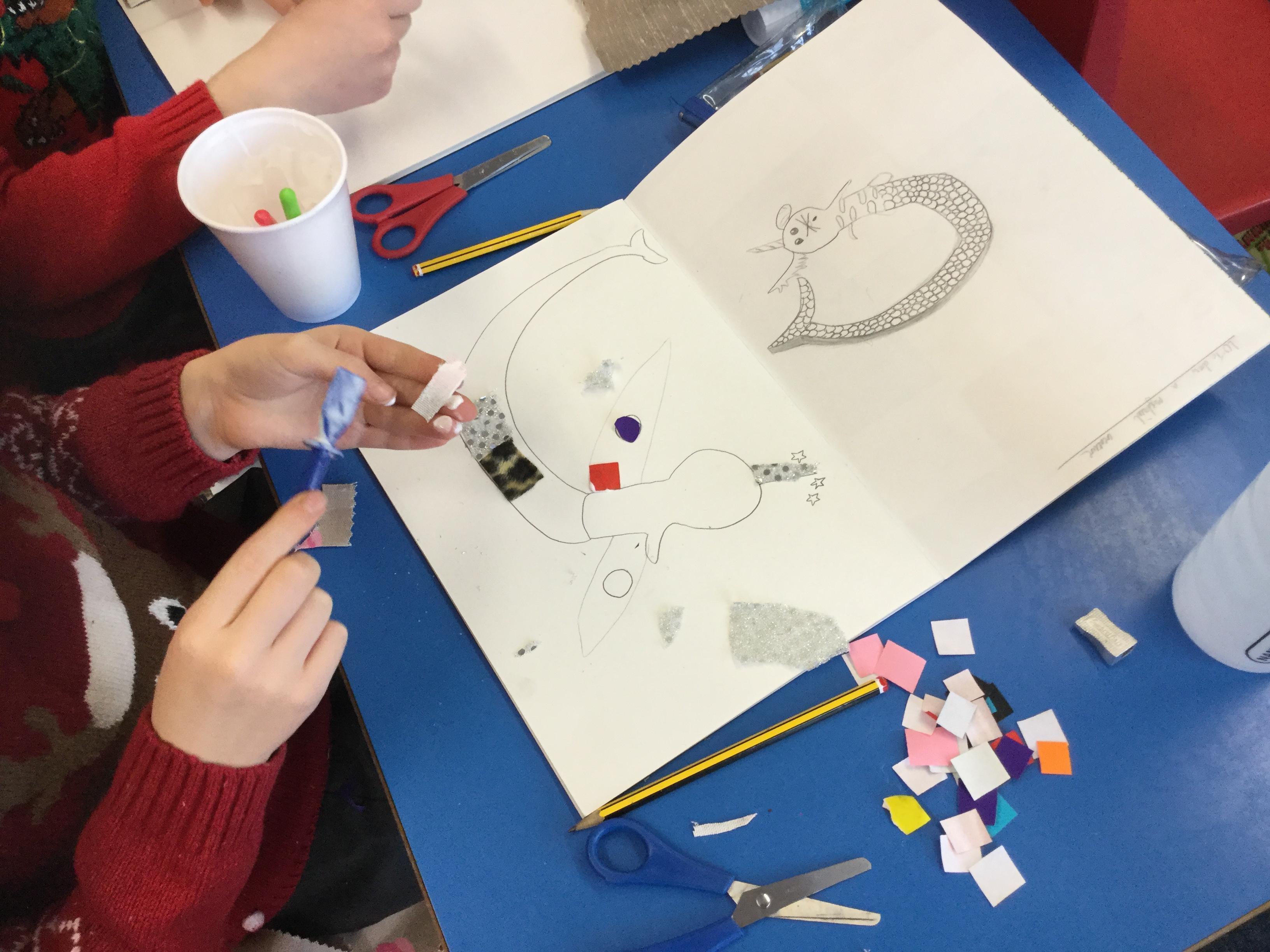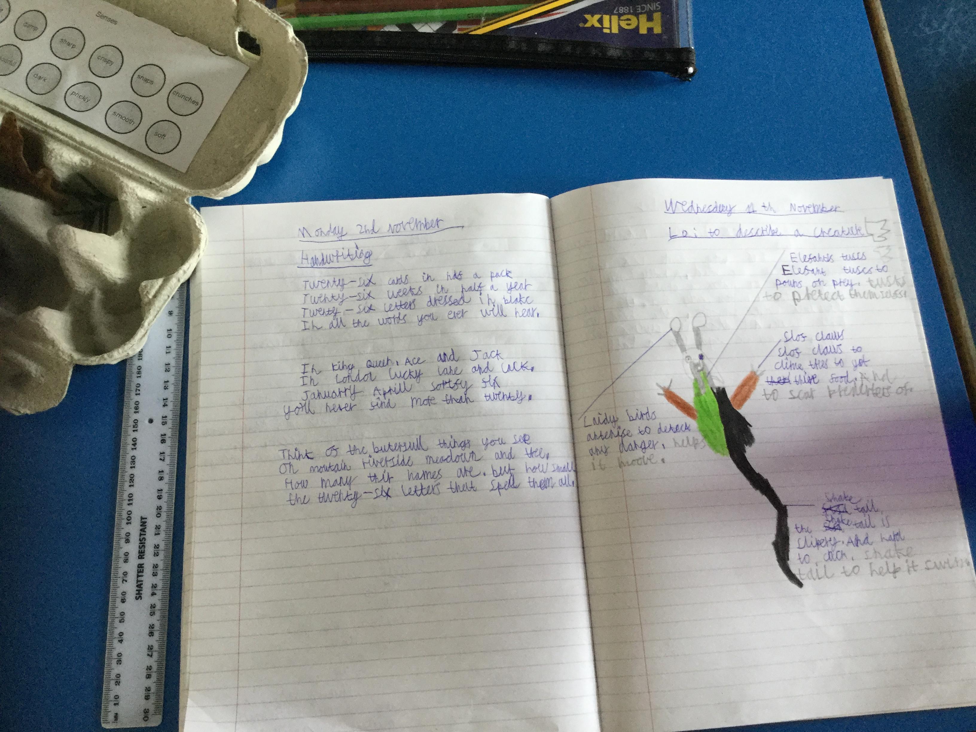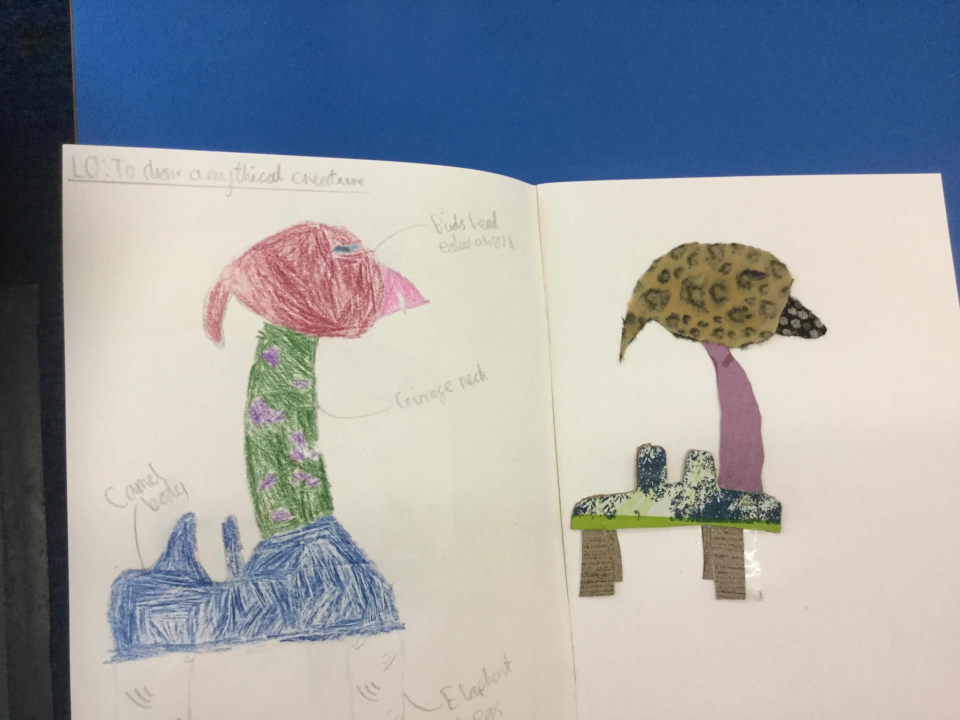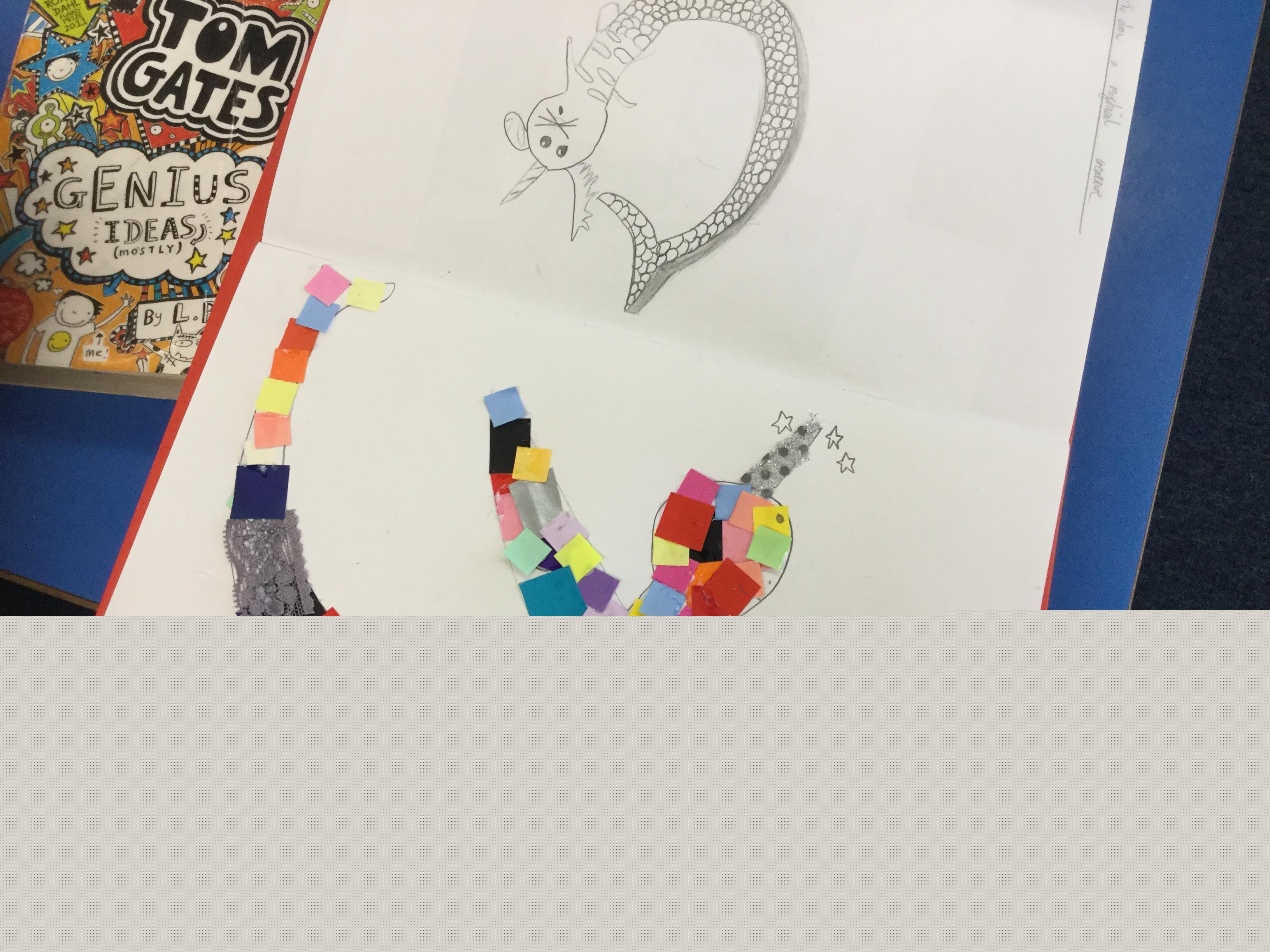 Our text this half term is  The Waterhorse.  This week the children have drawn their own imaginary creature.  They then used the egg boxes to go into the copse and collect objects which matched the words they had inside the egg box.  Then they used the word bank they created to describe their creature