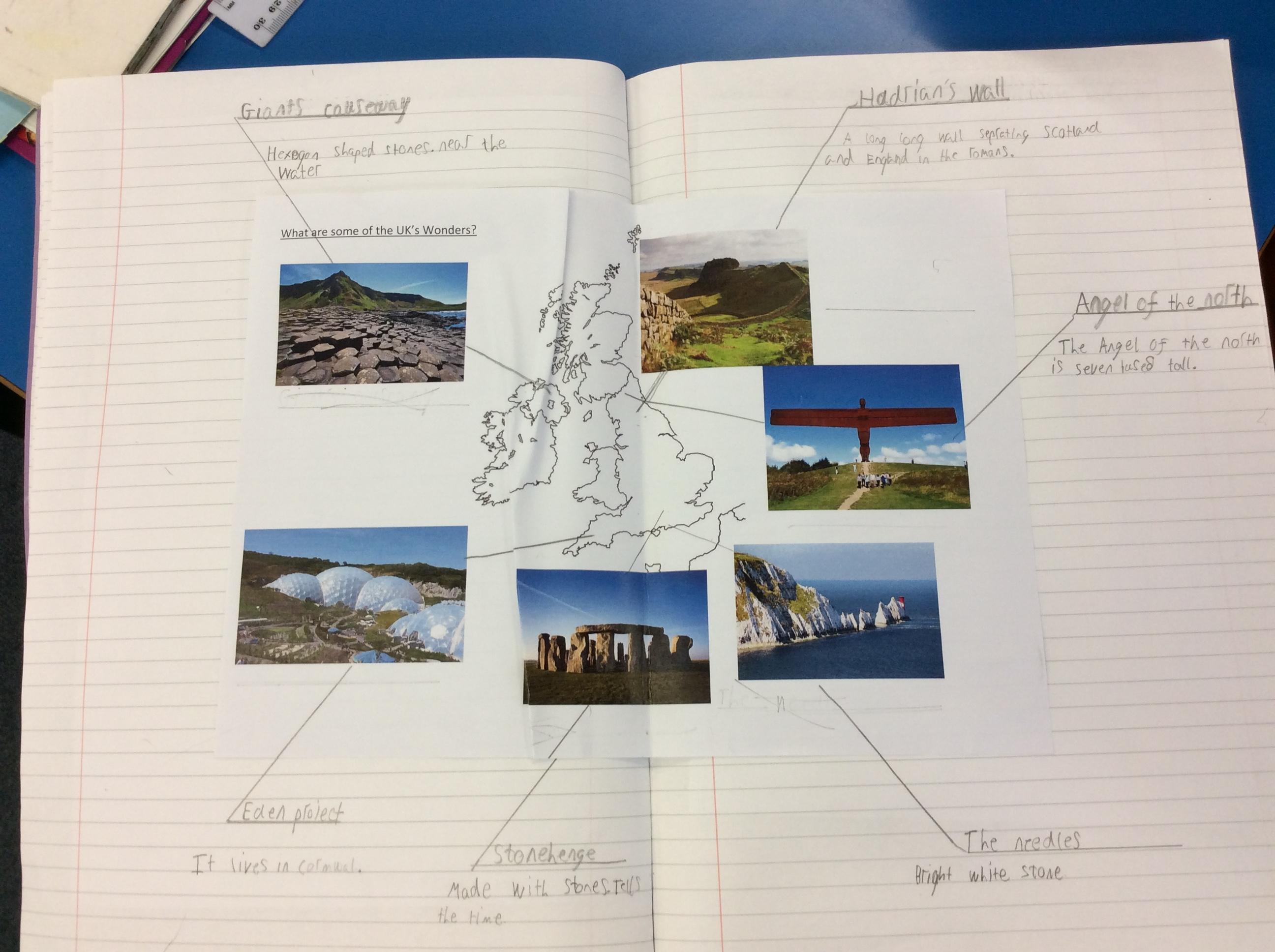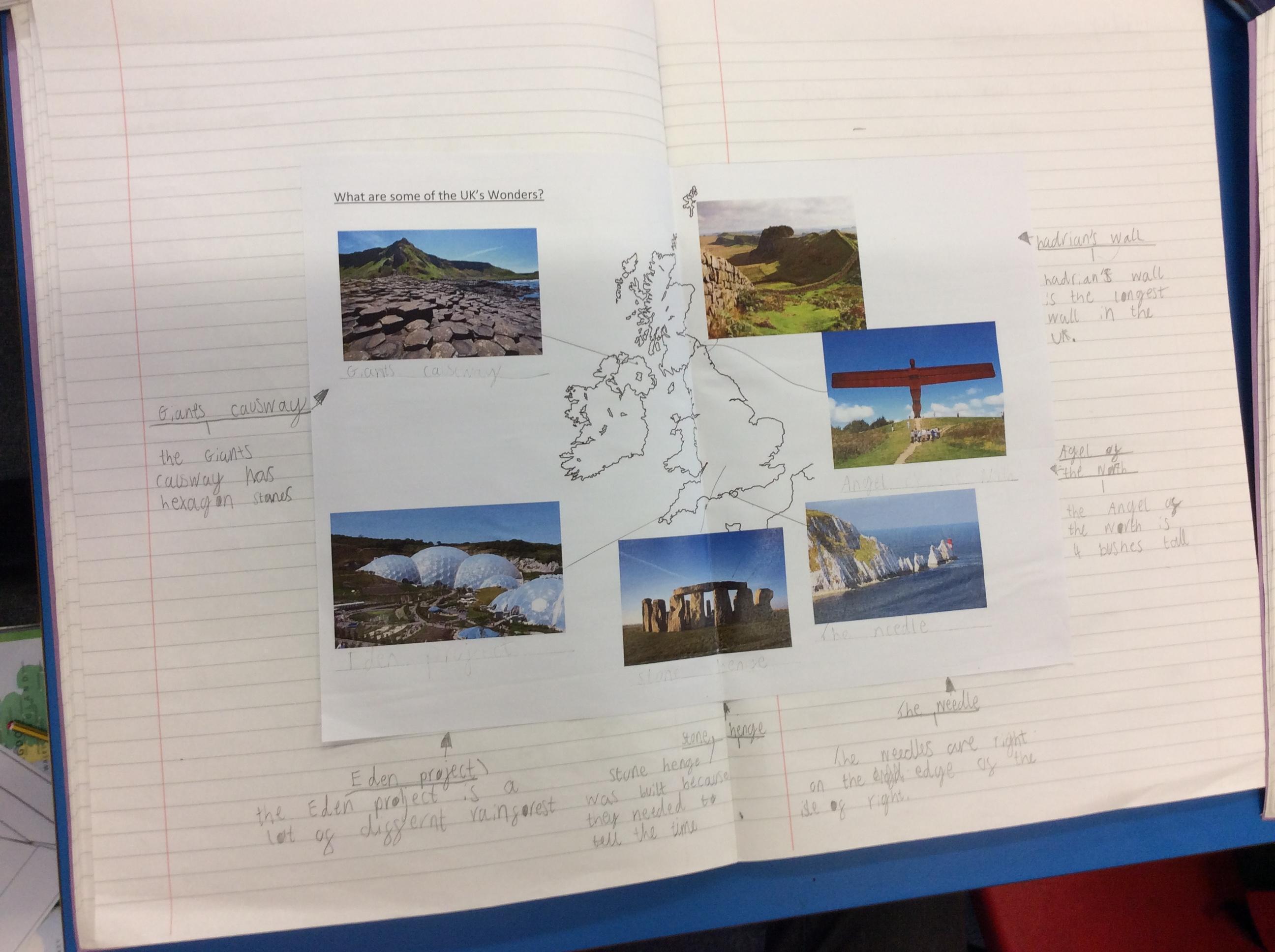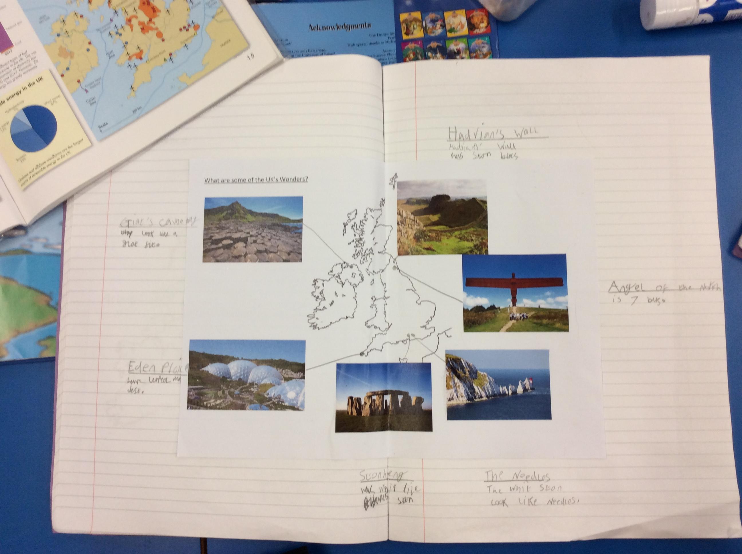 Next, we learnt about some of the natural and man-made wonders in the UK.