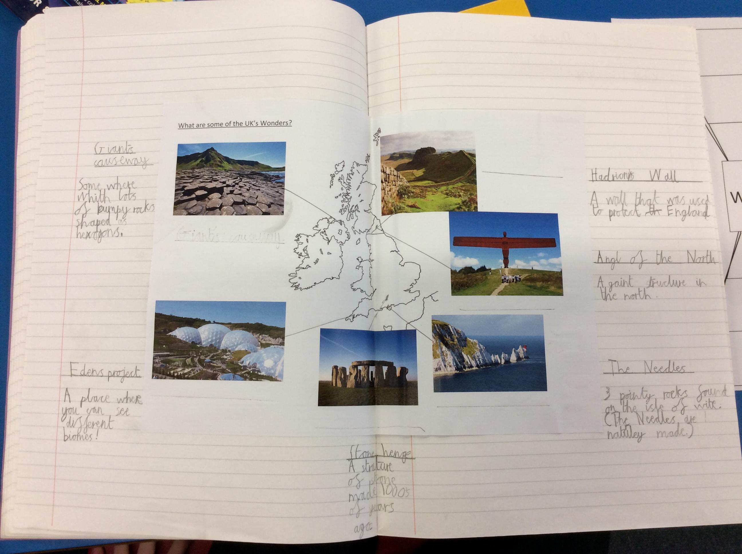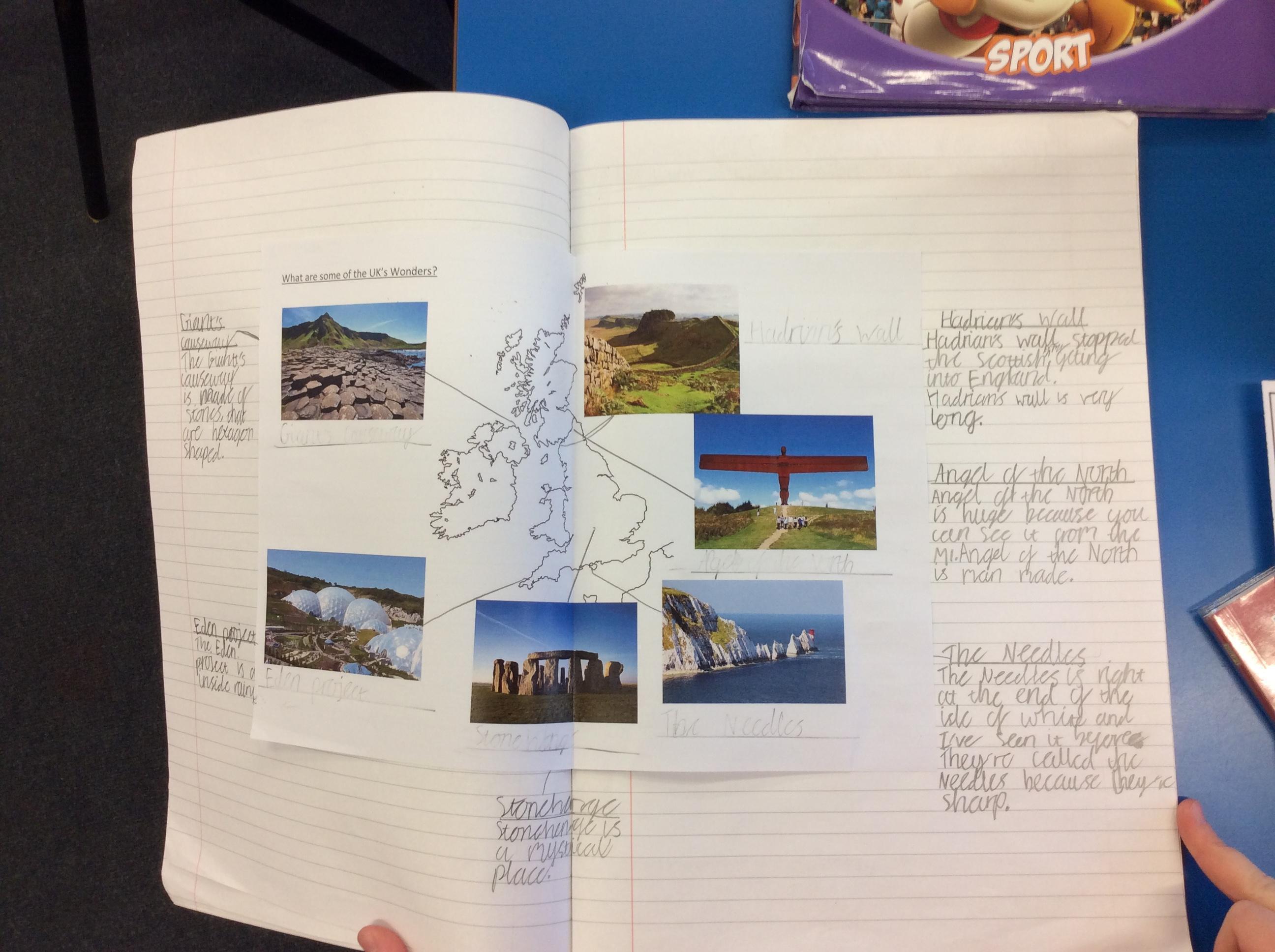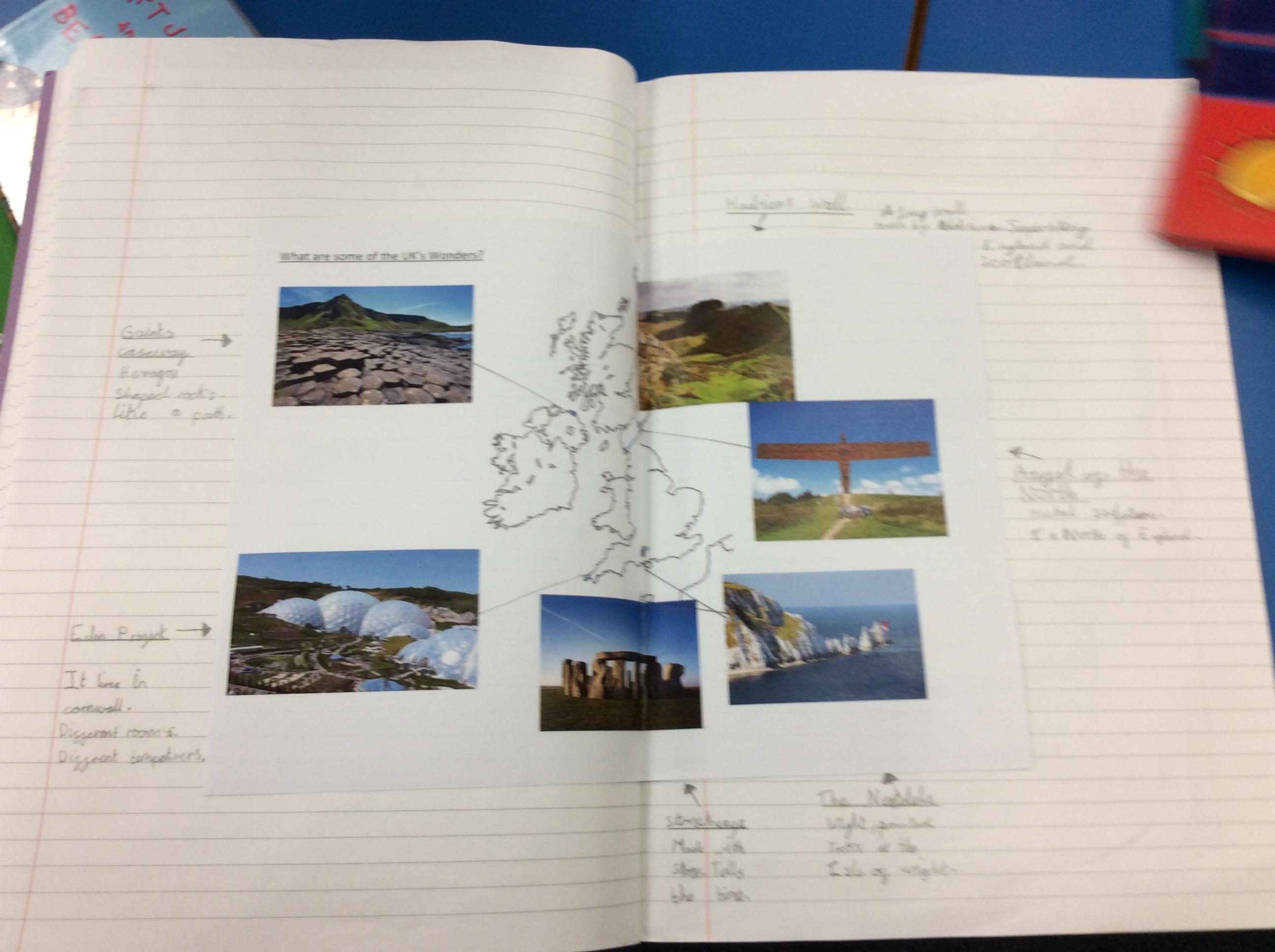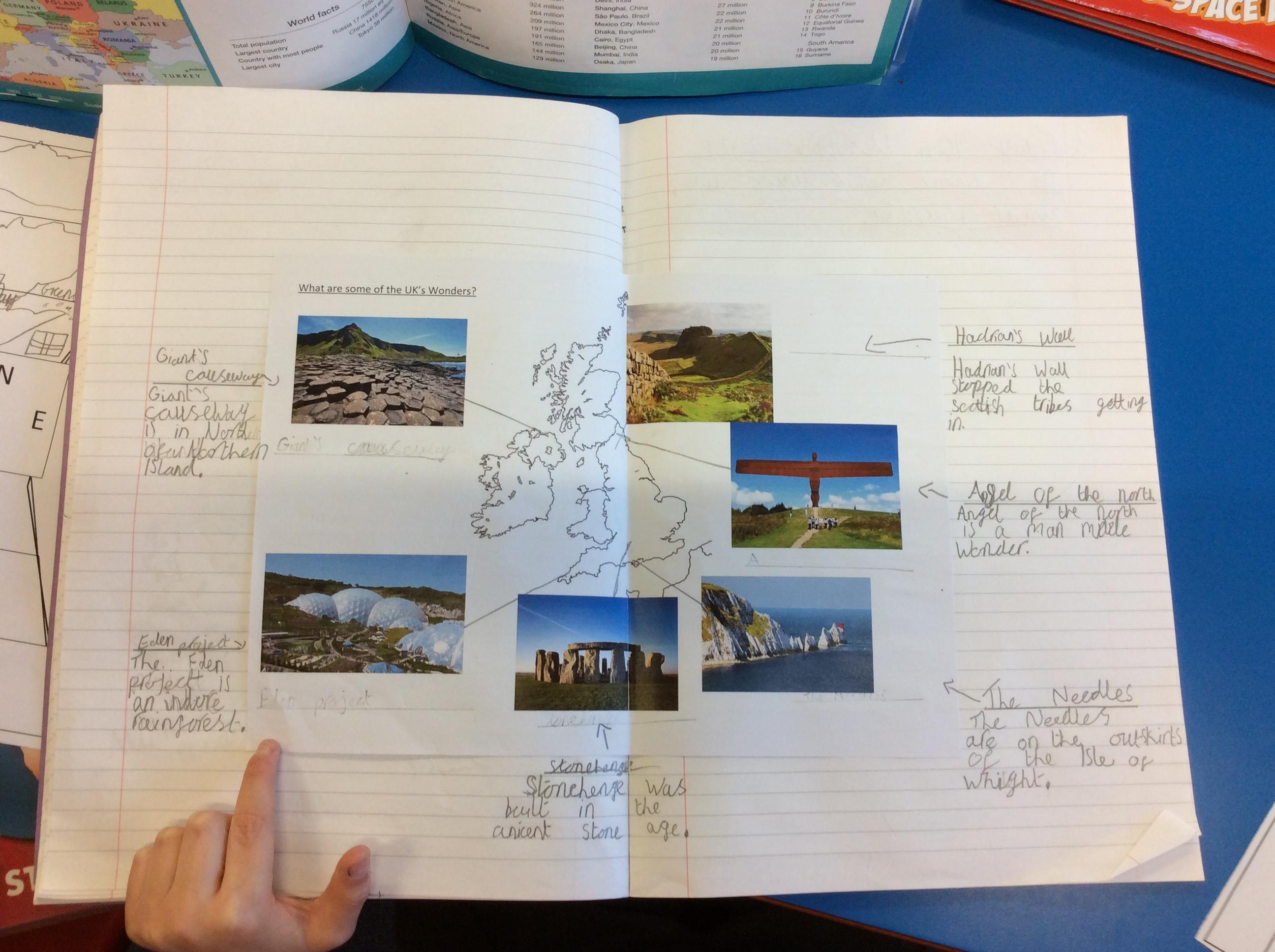 Next, we learnt about some of the natural and man-made wonders in the UK.