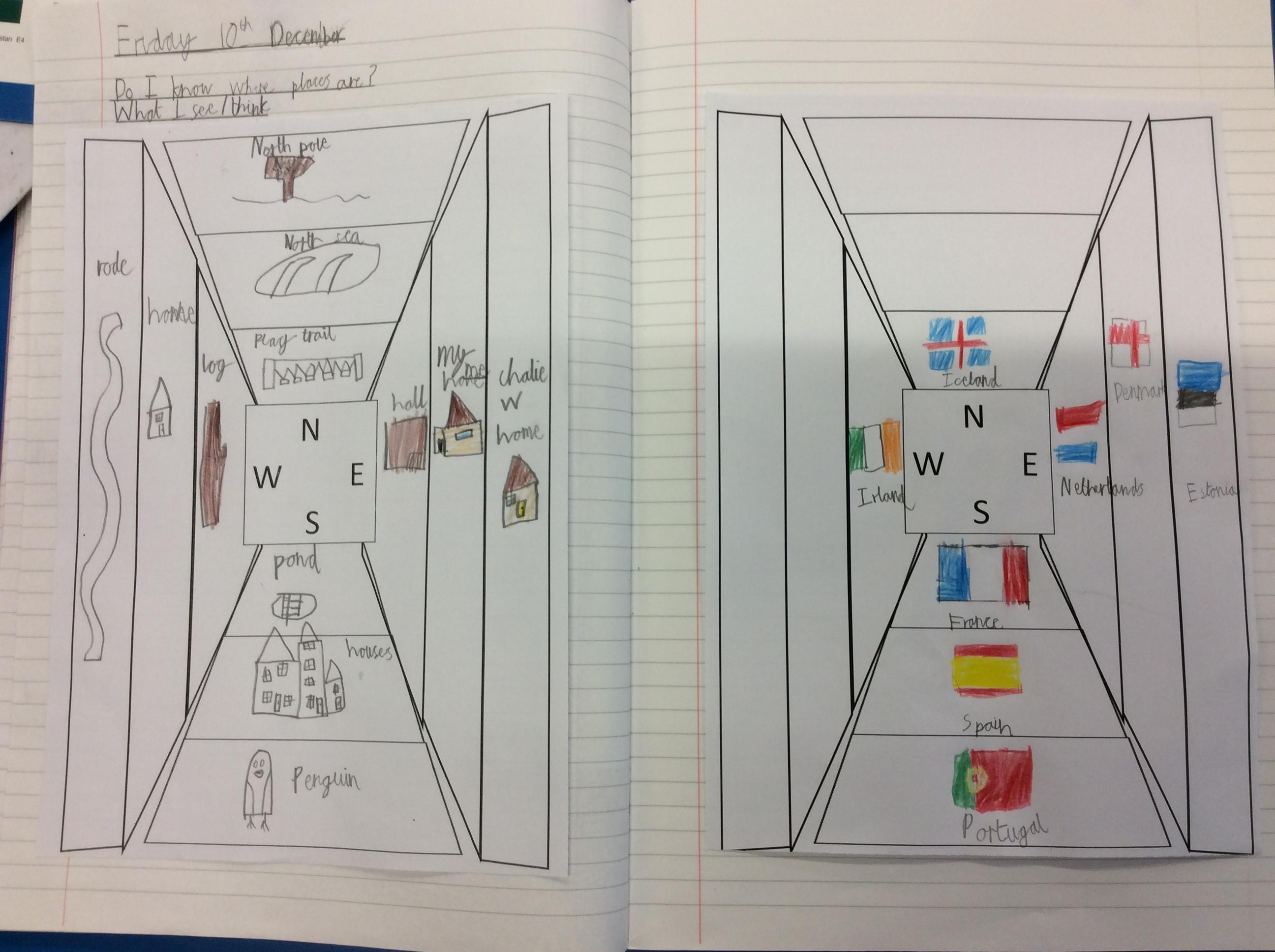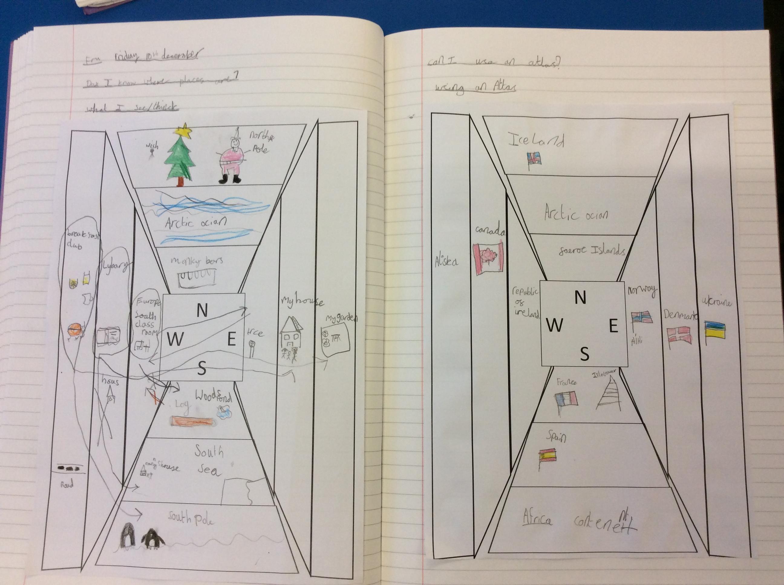 We thought about what we might find if we travelled in those directions. We all knew where to find Santa!!!
