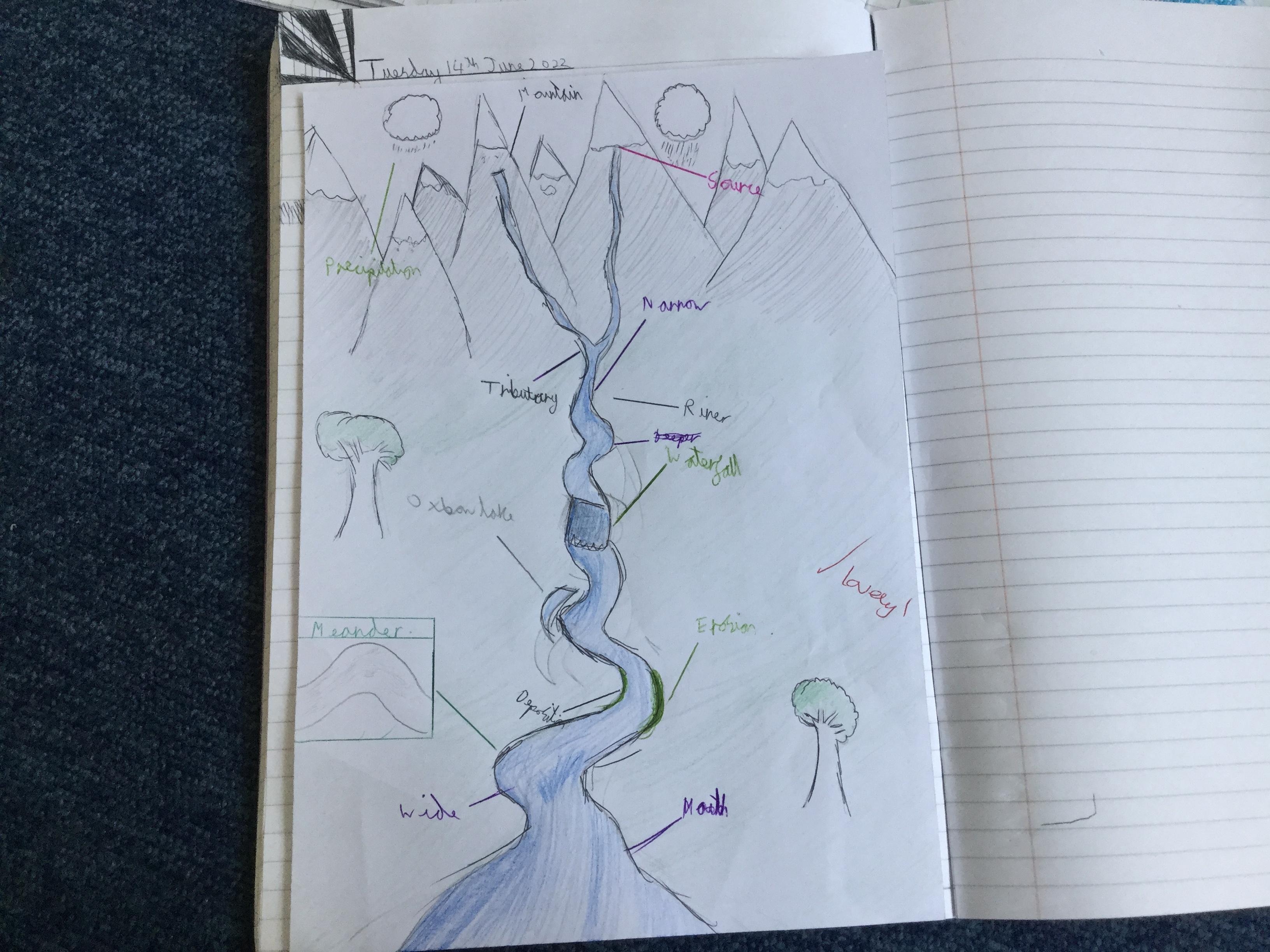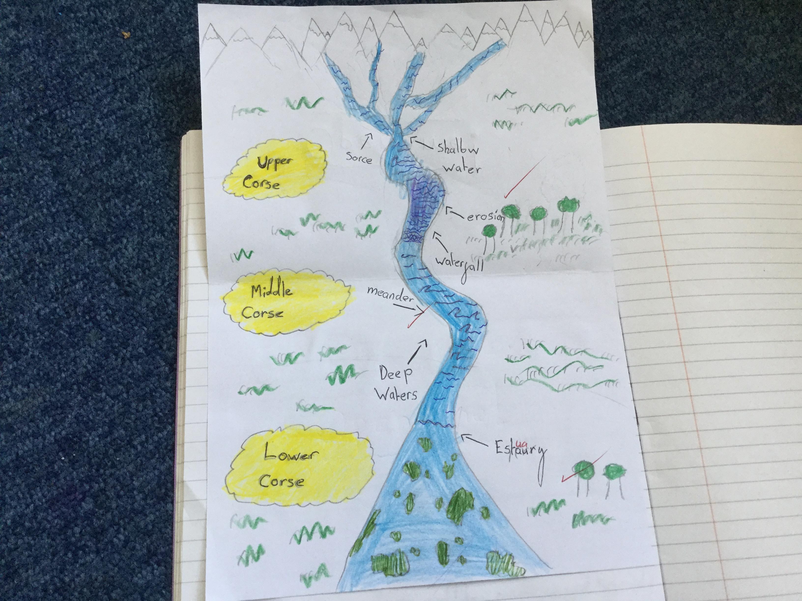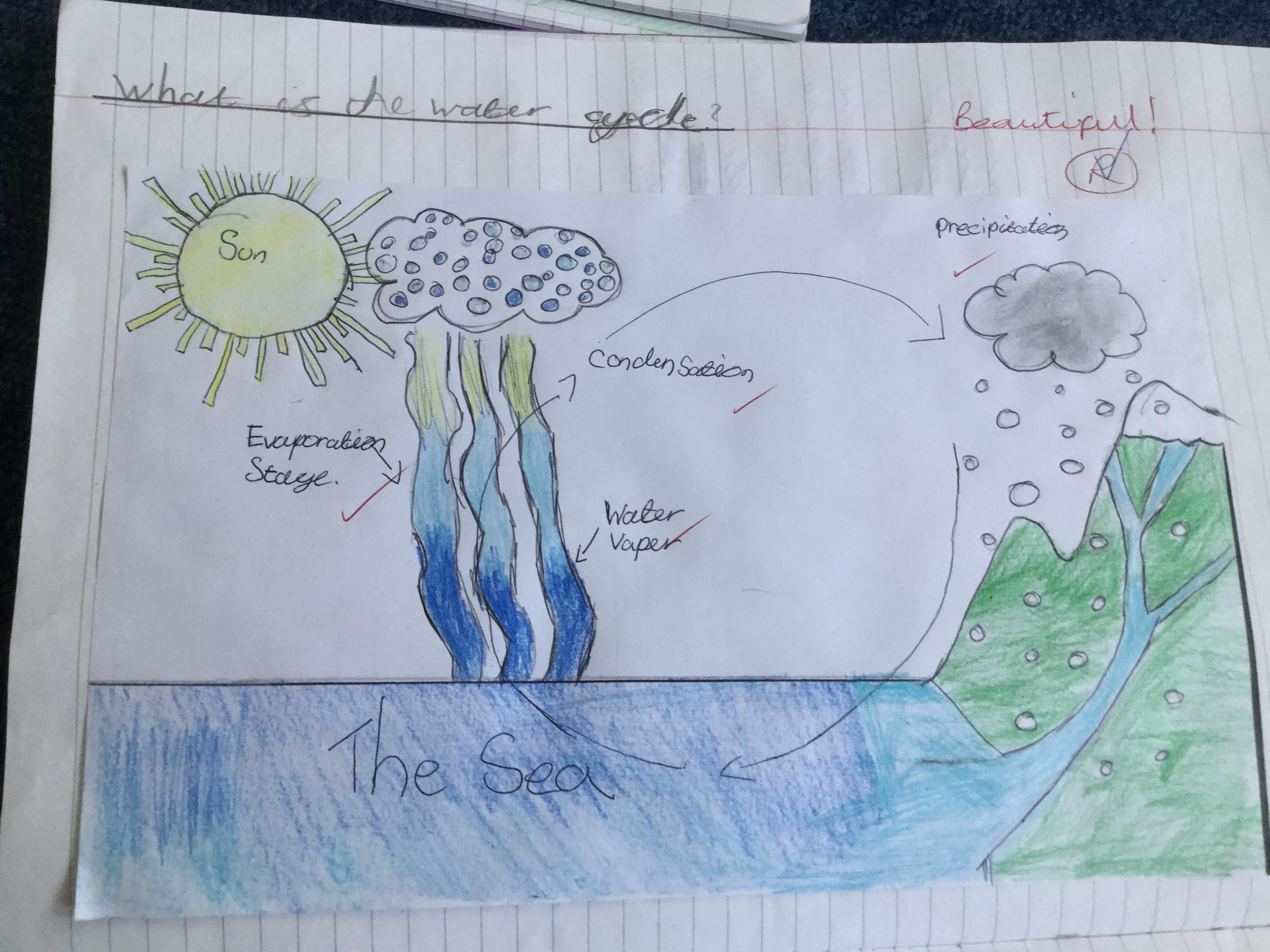 In order to understand rivers, we first need to know about the water cycle as the part that rivers play in it. We watched videos and used different sources of information around the room to find out. We then drew an illustration to explain the cycle.