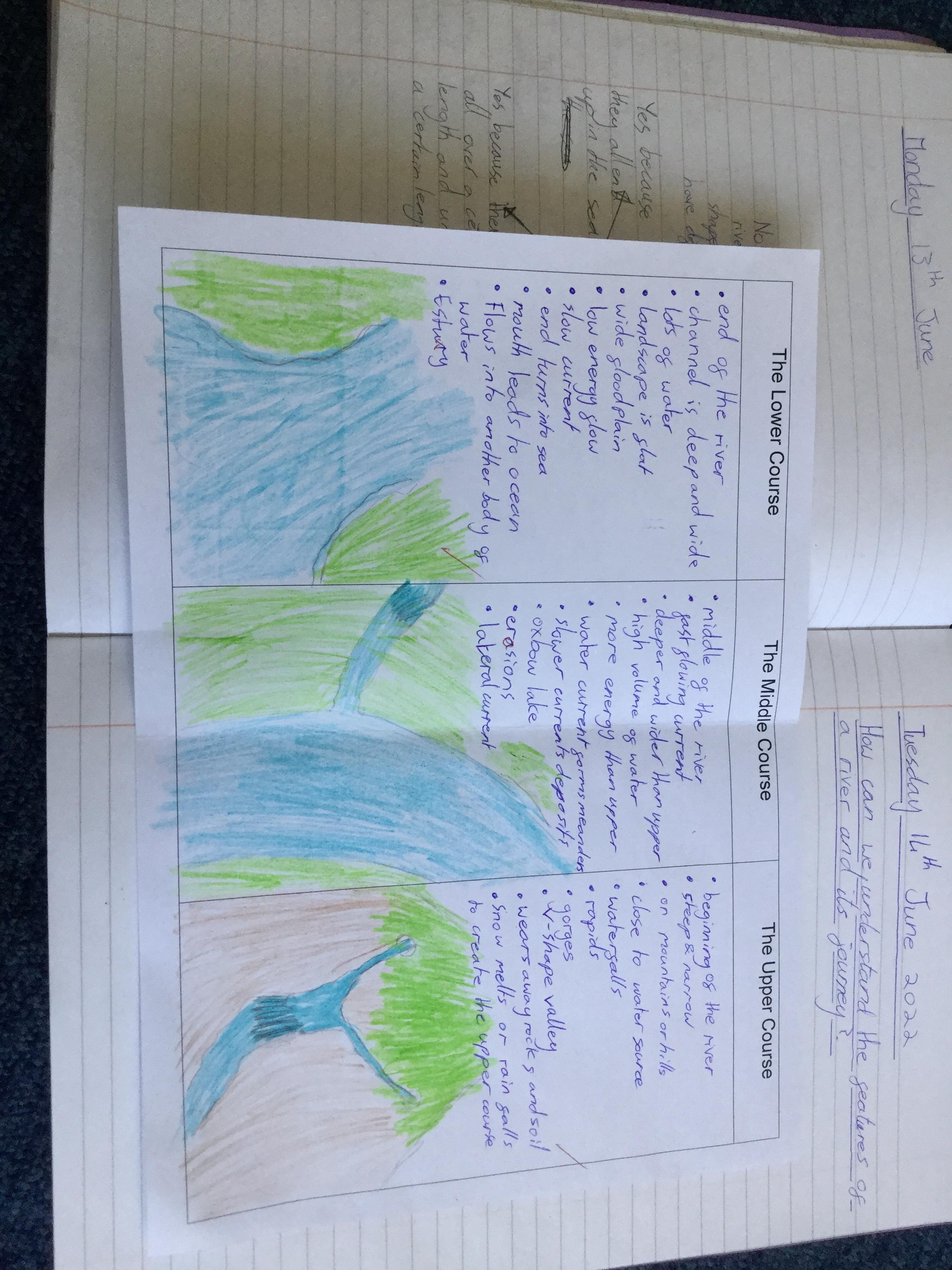 We watched videos and used different sources of information (topic books from our library, information pinned to the walls in the classroom, each other and a website) in order to learn about the different stages of a river as it travels for the mountain to the sea. Here are some of the presentations we made to show what we had learnt.