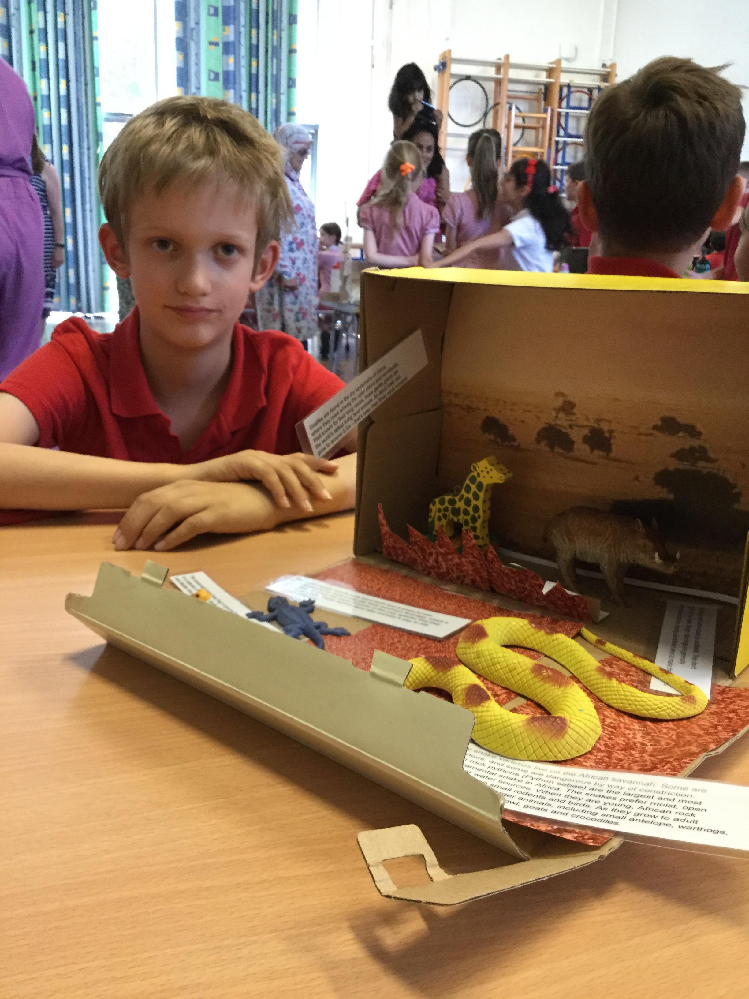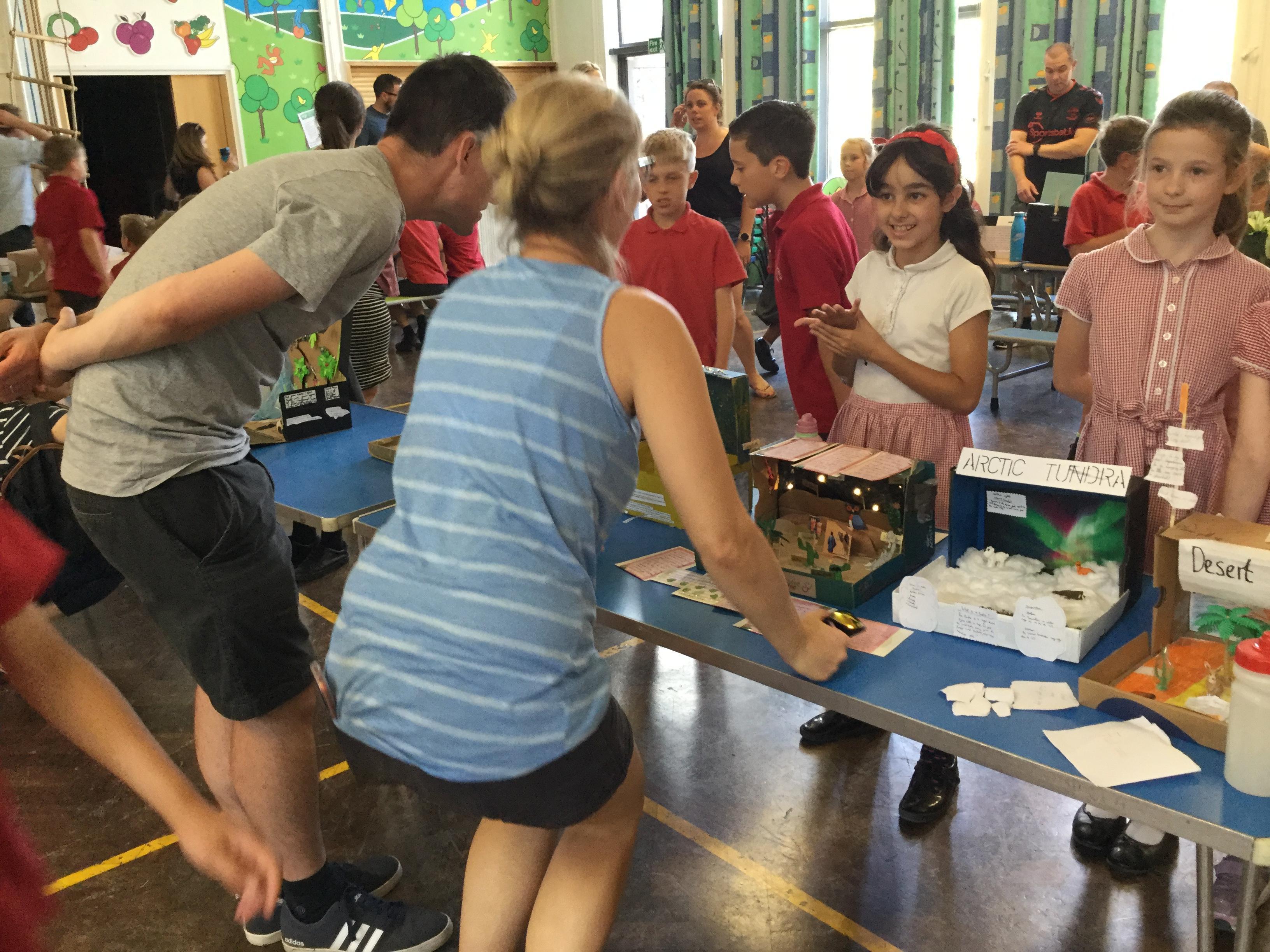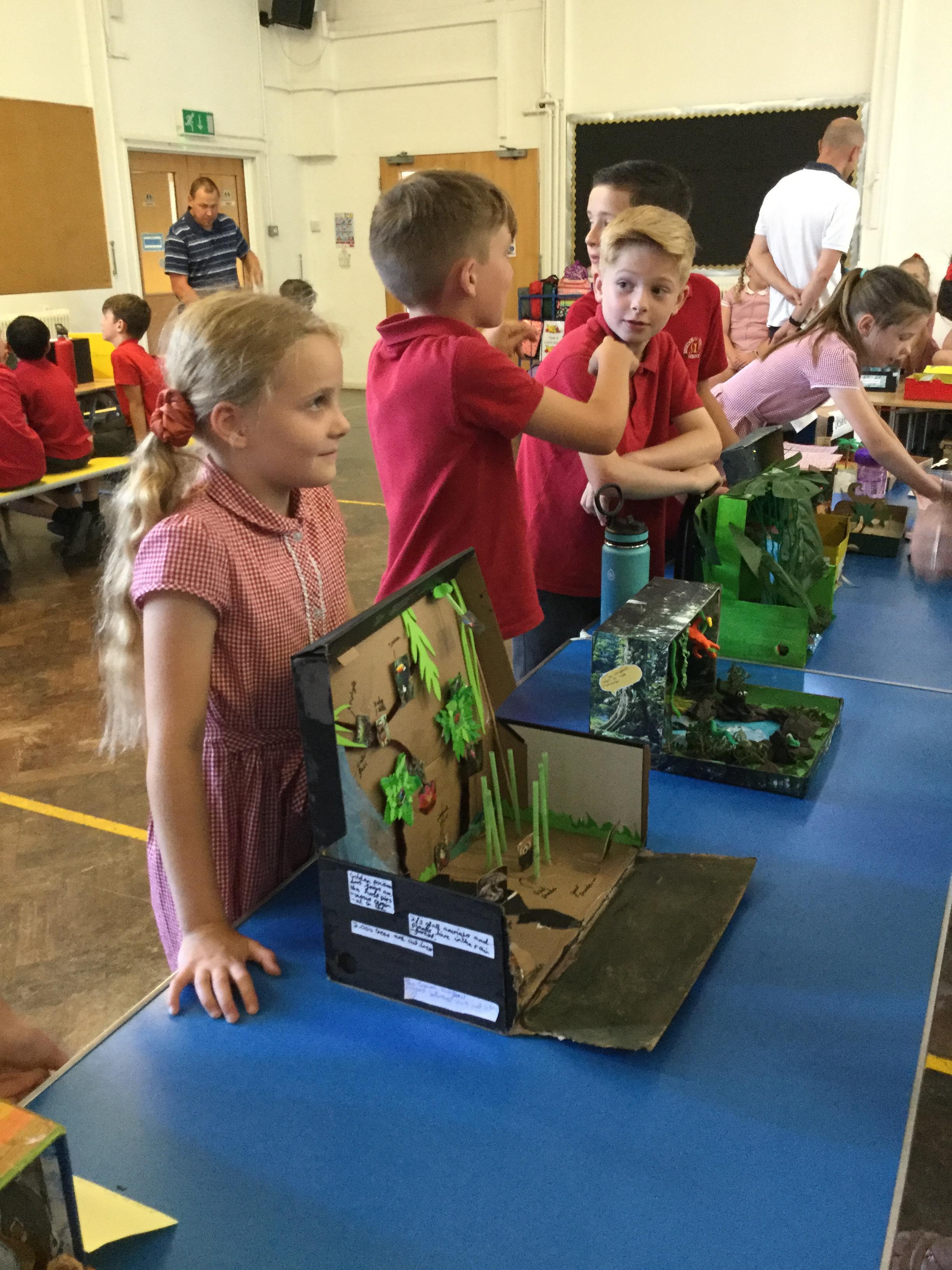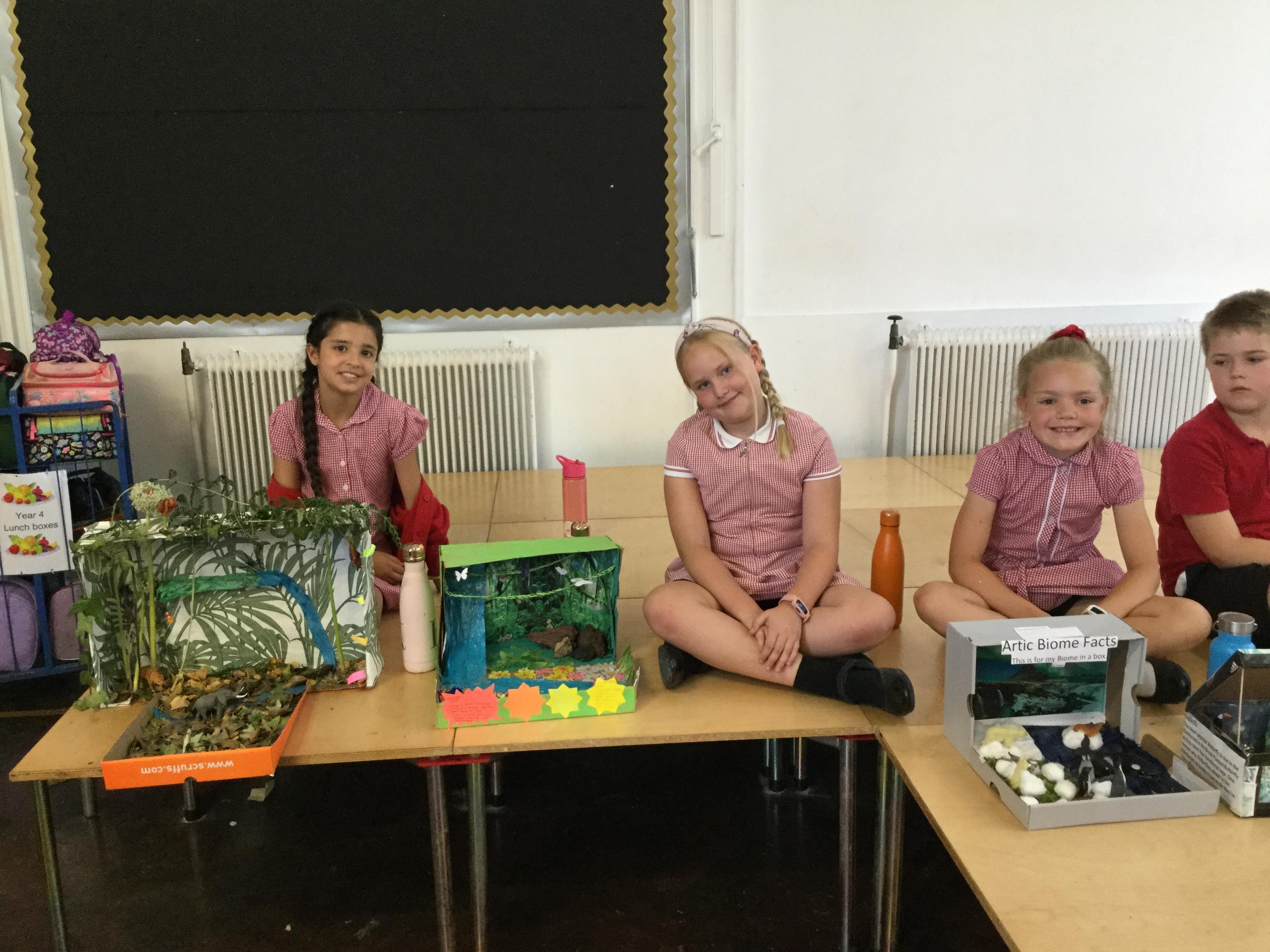 Year 4 has a super afternoon at their parent outcome on Friday afternoon when they shared their biomes in a box with lots of adults at a walking museum.