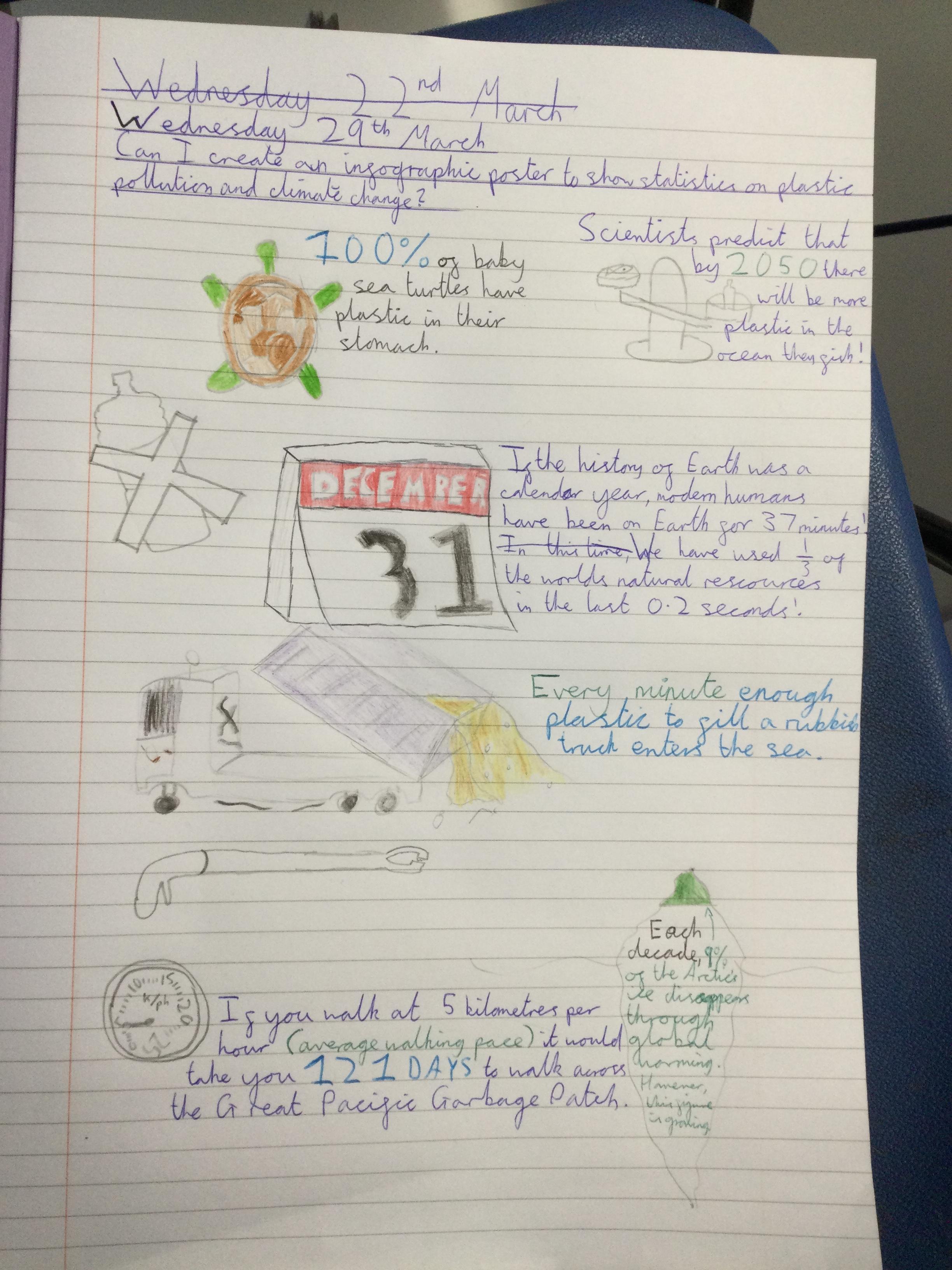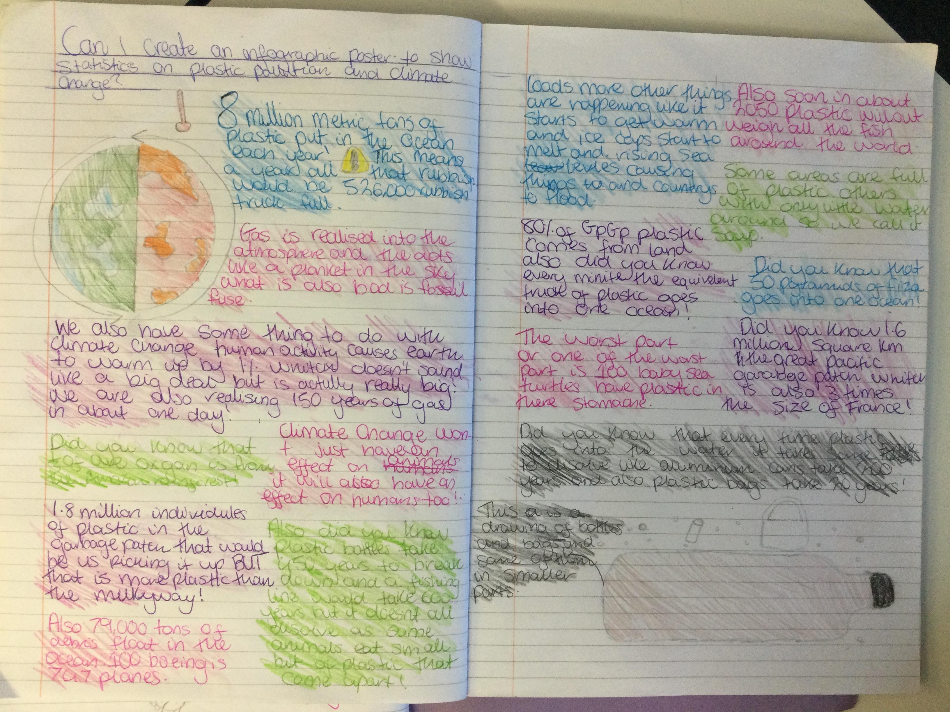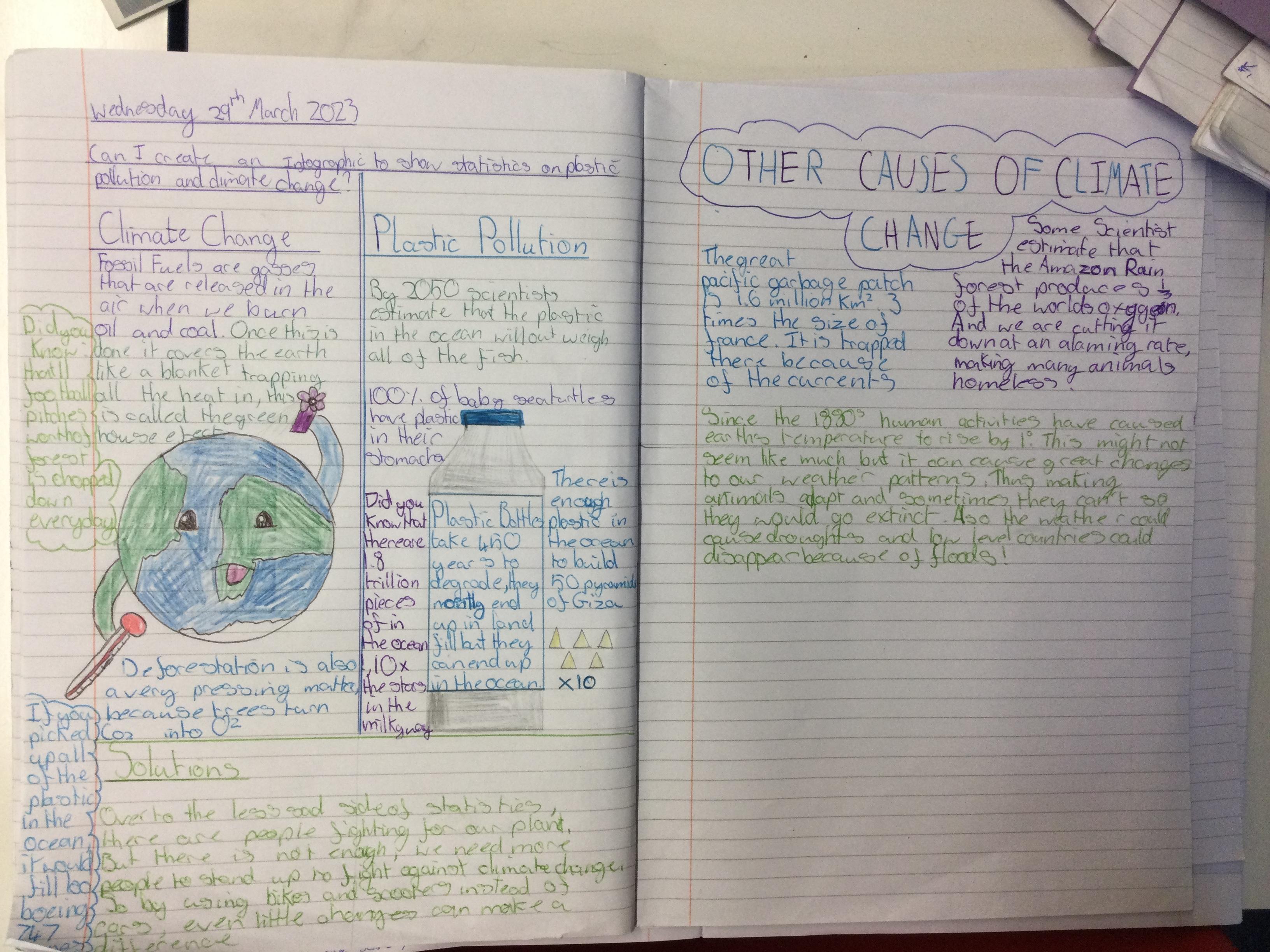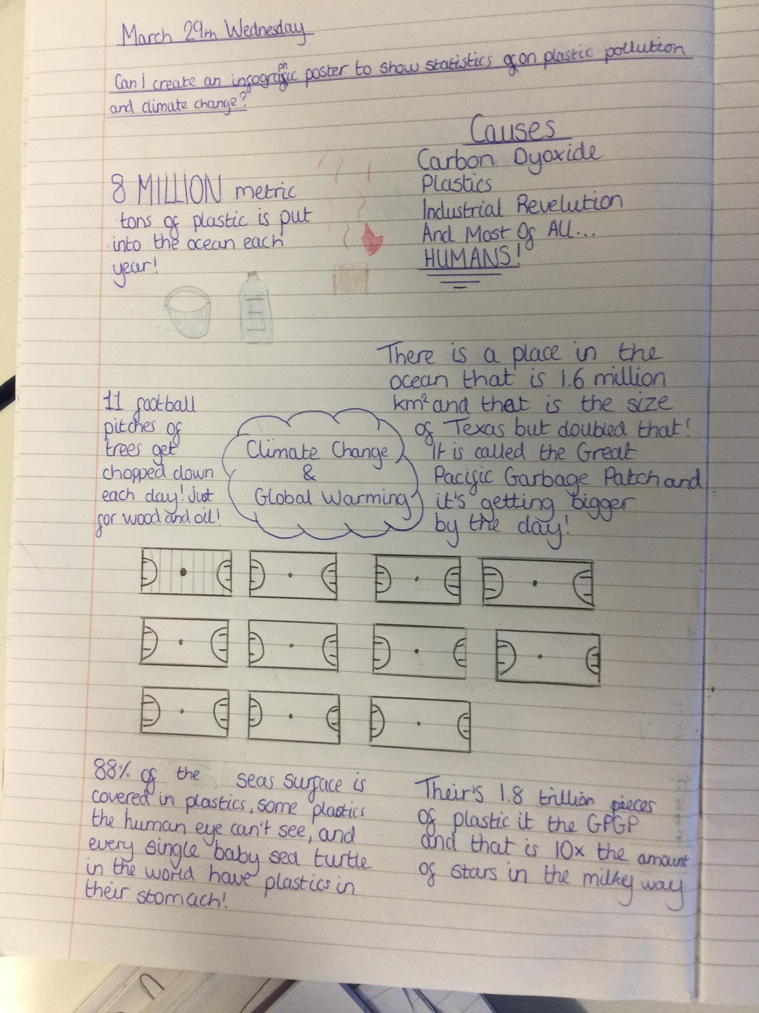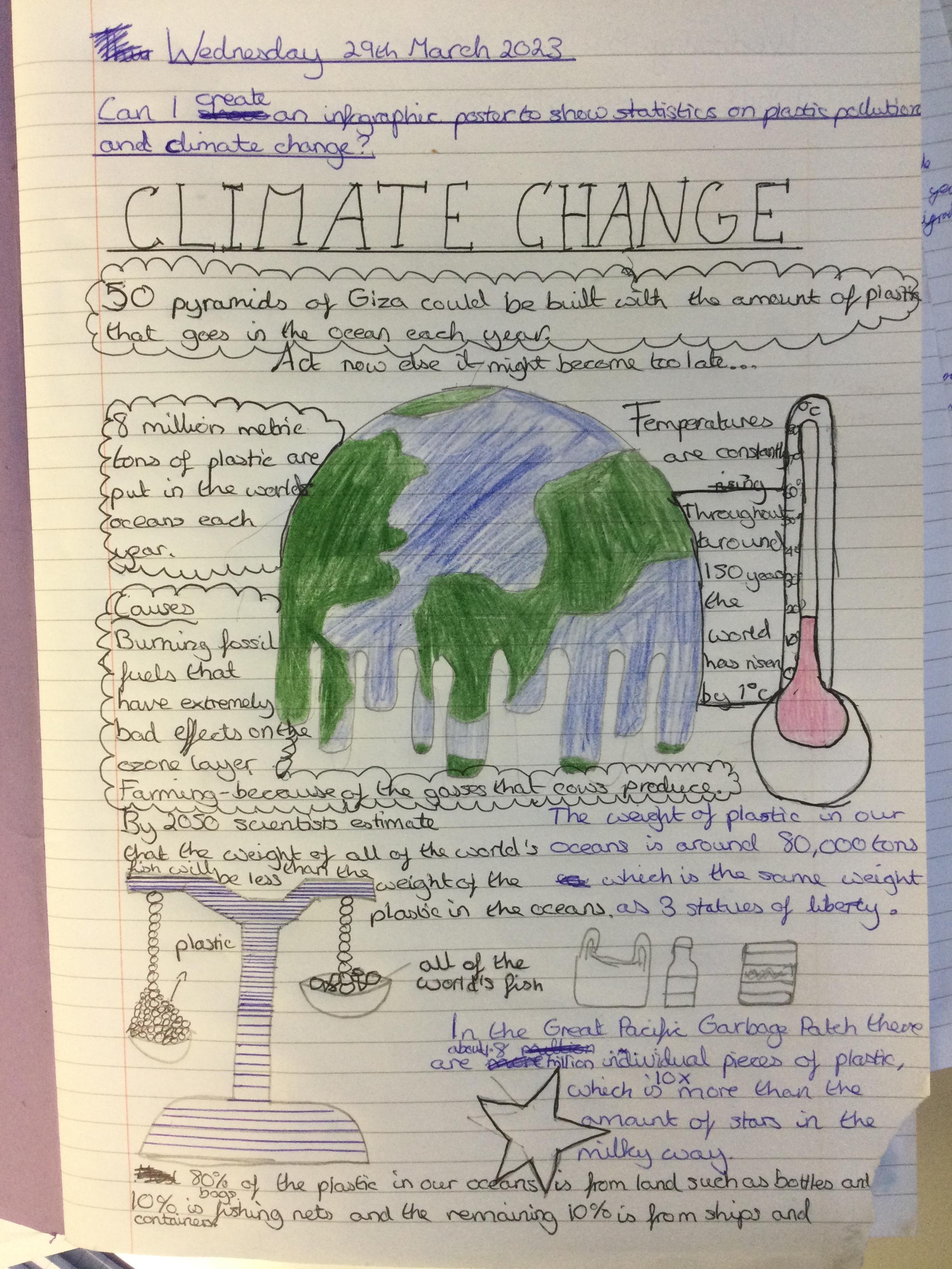 Infographics to illustrate the shocking facts about climate change and the Great Pacific Garbage Patch.