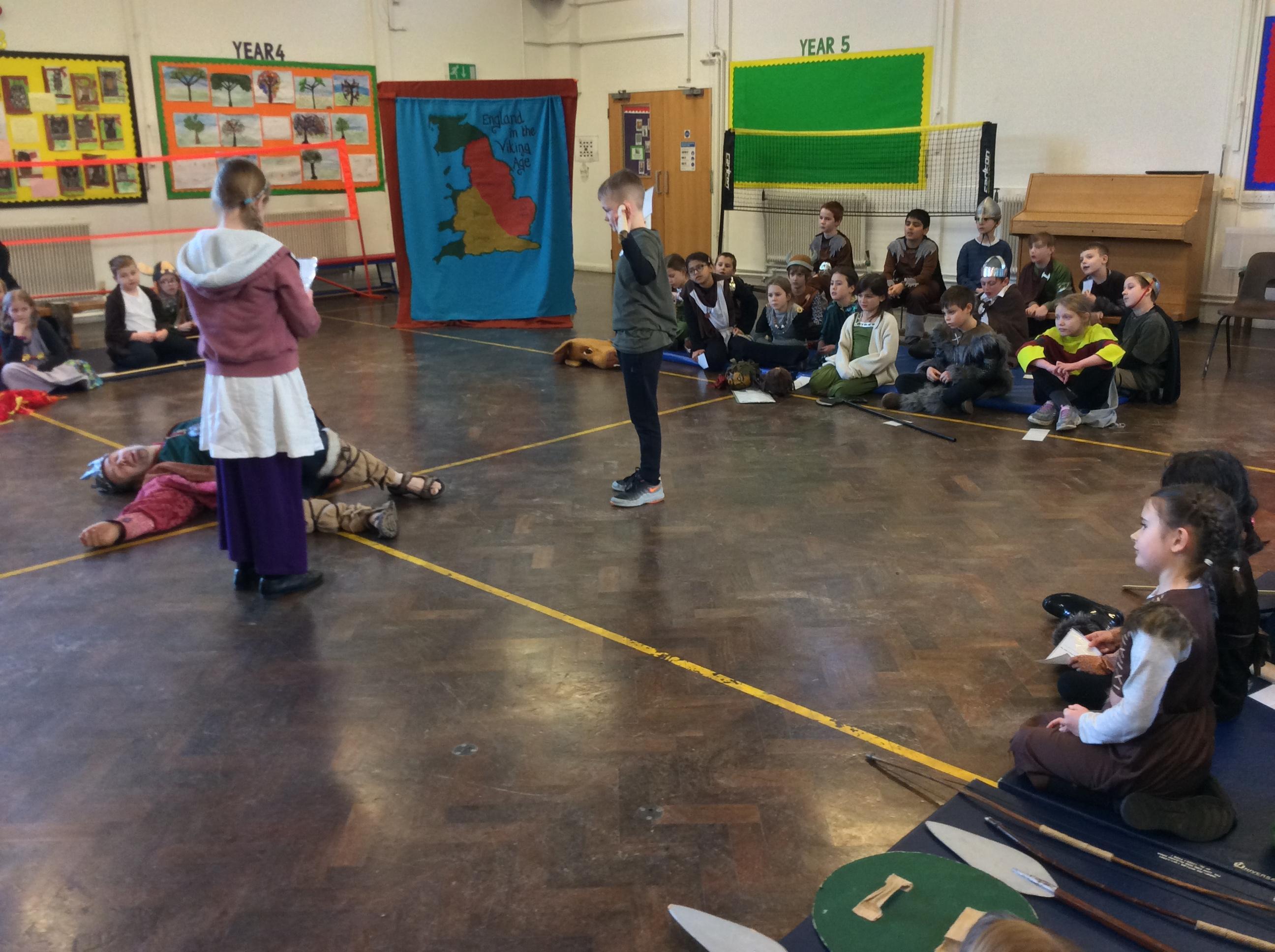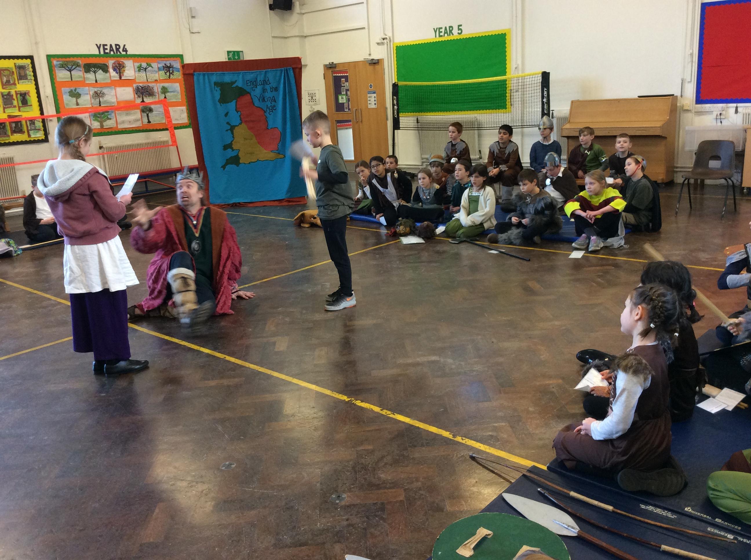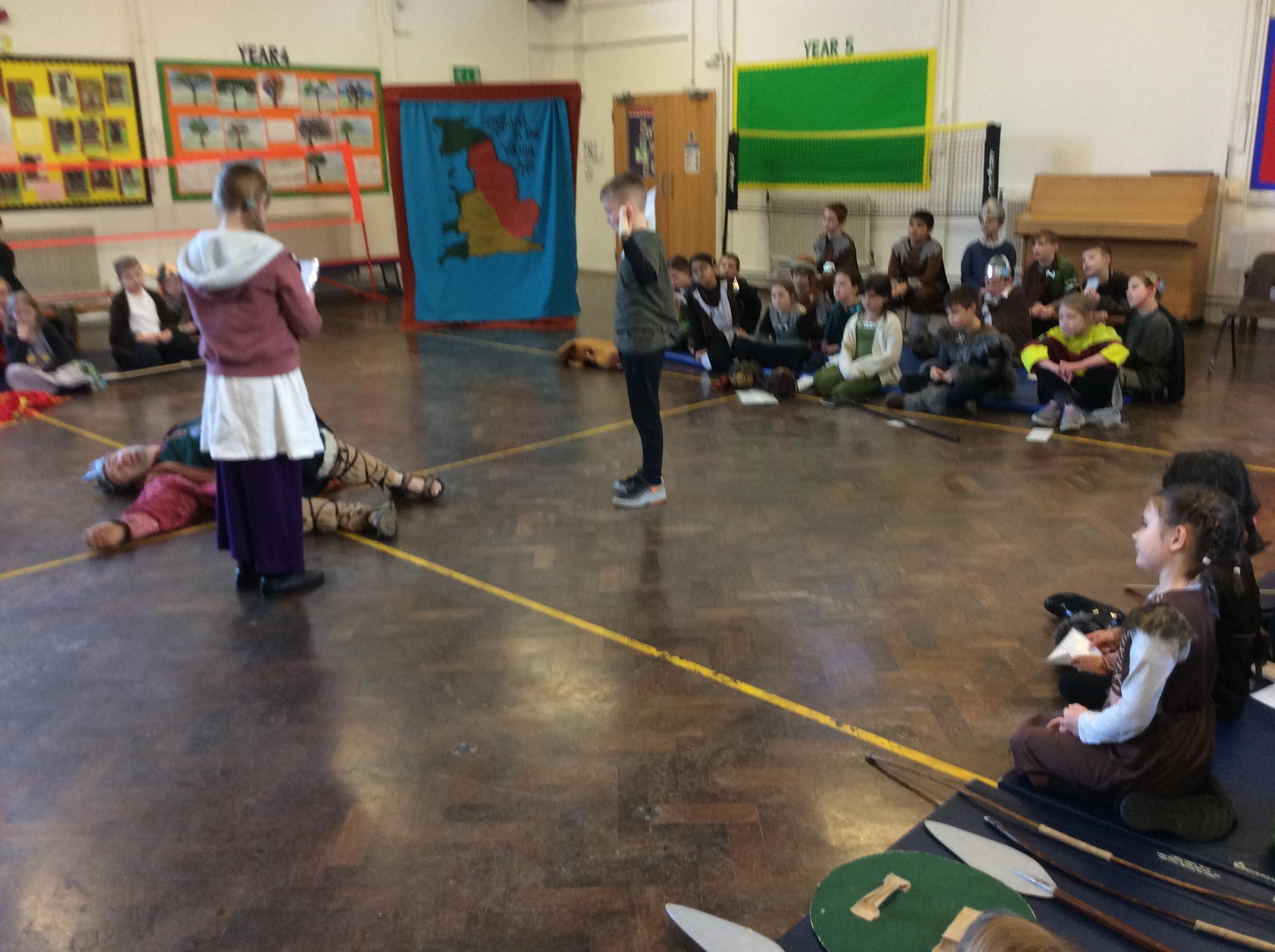 Today, we travelled back to the Viking times and experienced life as a Viking. We tasted food that the Vikings ate, played Viking board games, learnt how to write our names in runes and finally created a play retelling the Vikings vs the Anglo-Saxons with the Treehouse Theatre Company.