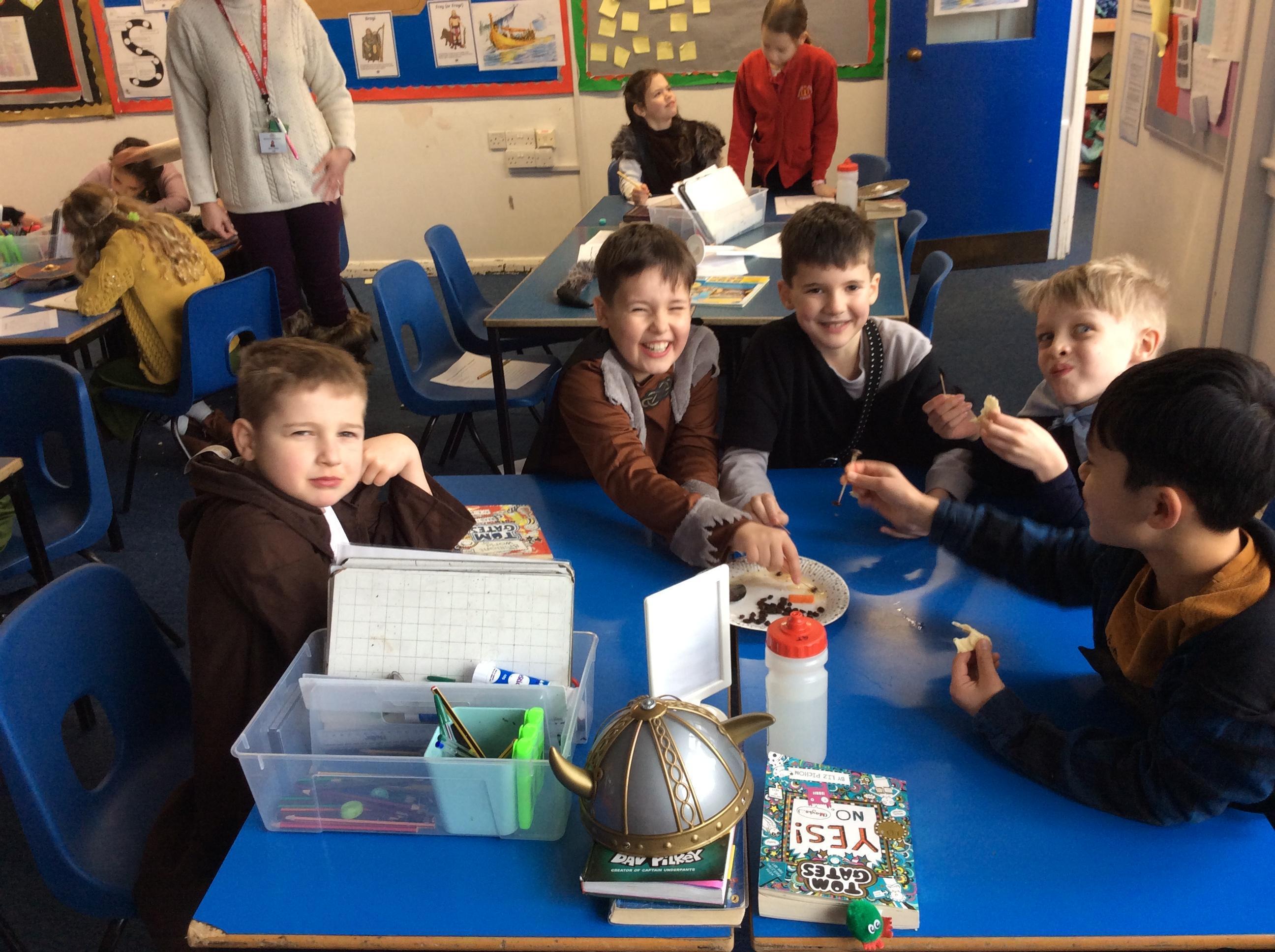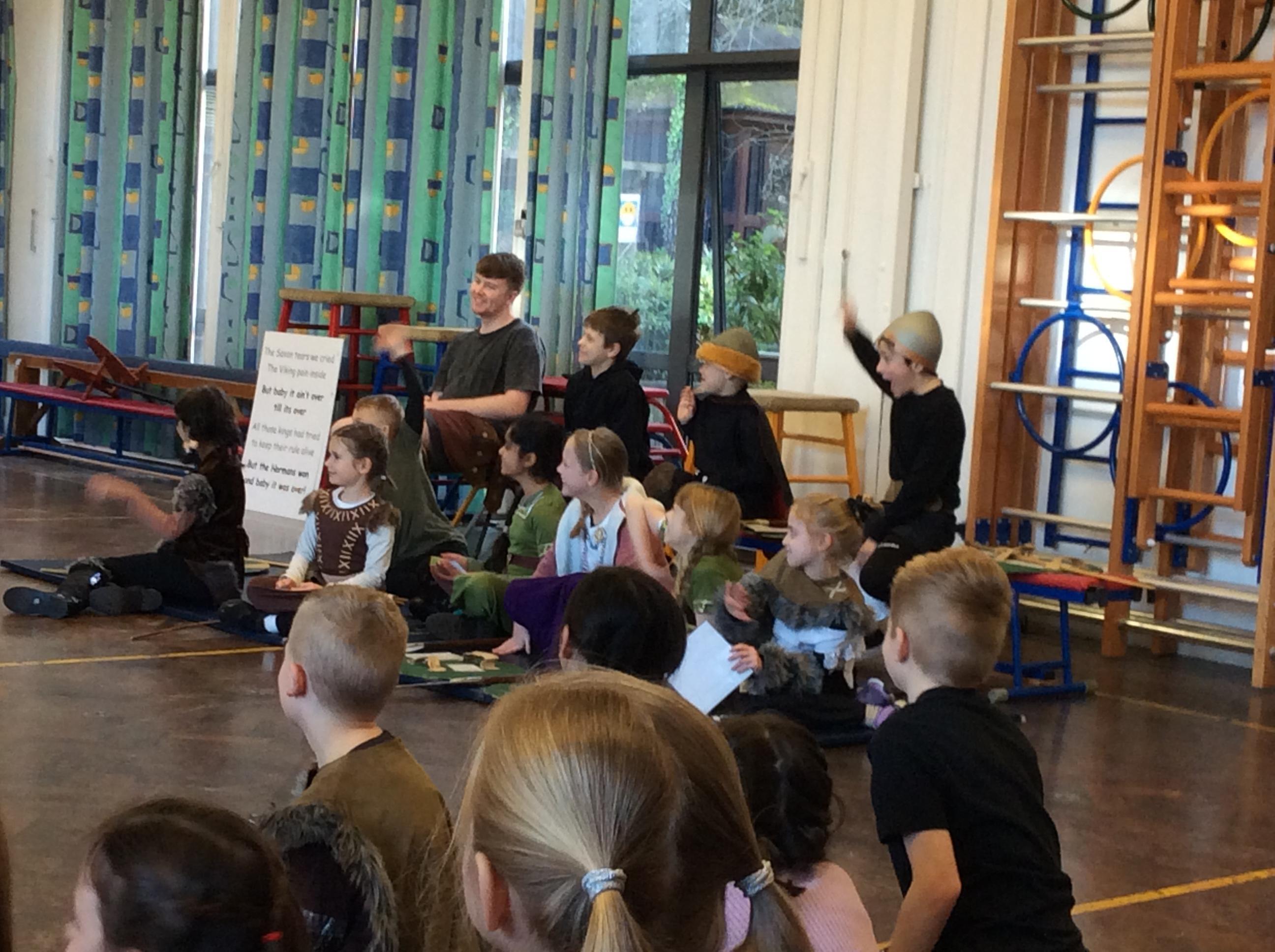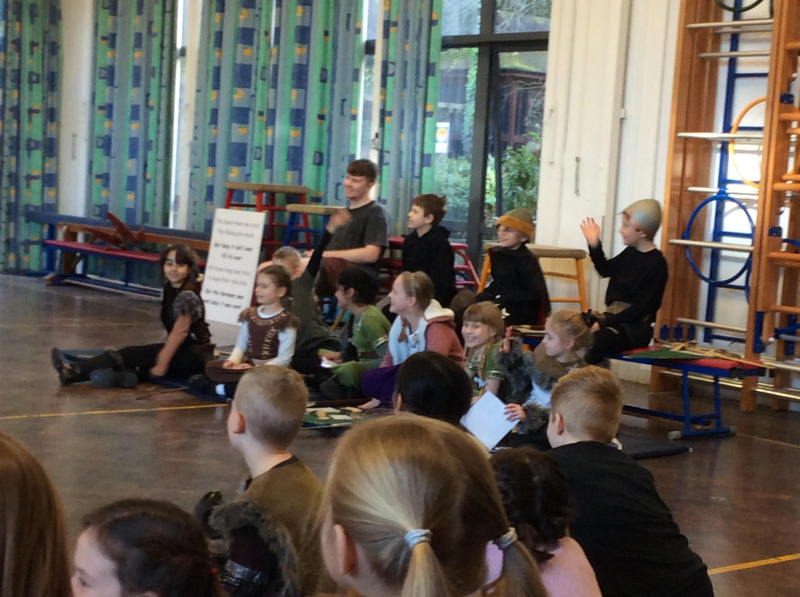 Today, we travelled back to the Viking times and experienced life as a Viking. We tasted food that the Vikings ate, played Viking board games, learnt how to write our names in runes and finally created a play retelling the Vikings vs the Anglo-Saxons with the Treehouse Theatre Company.