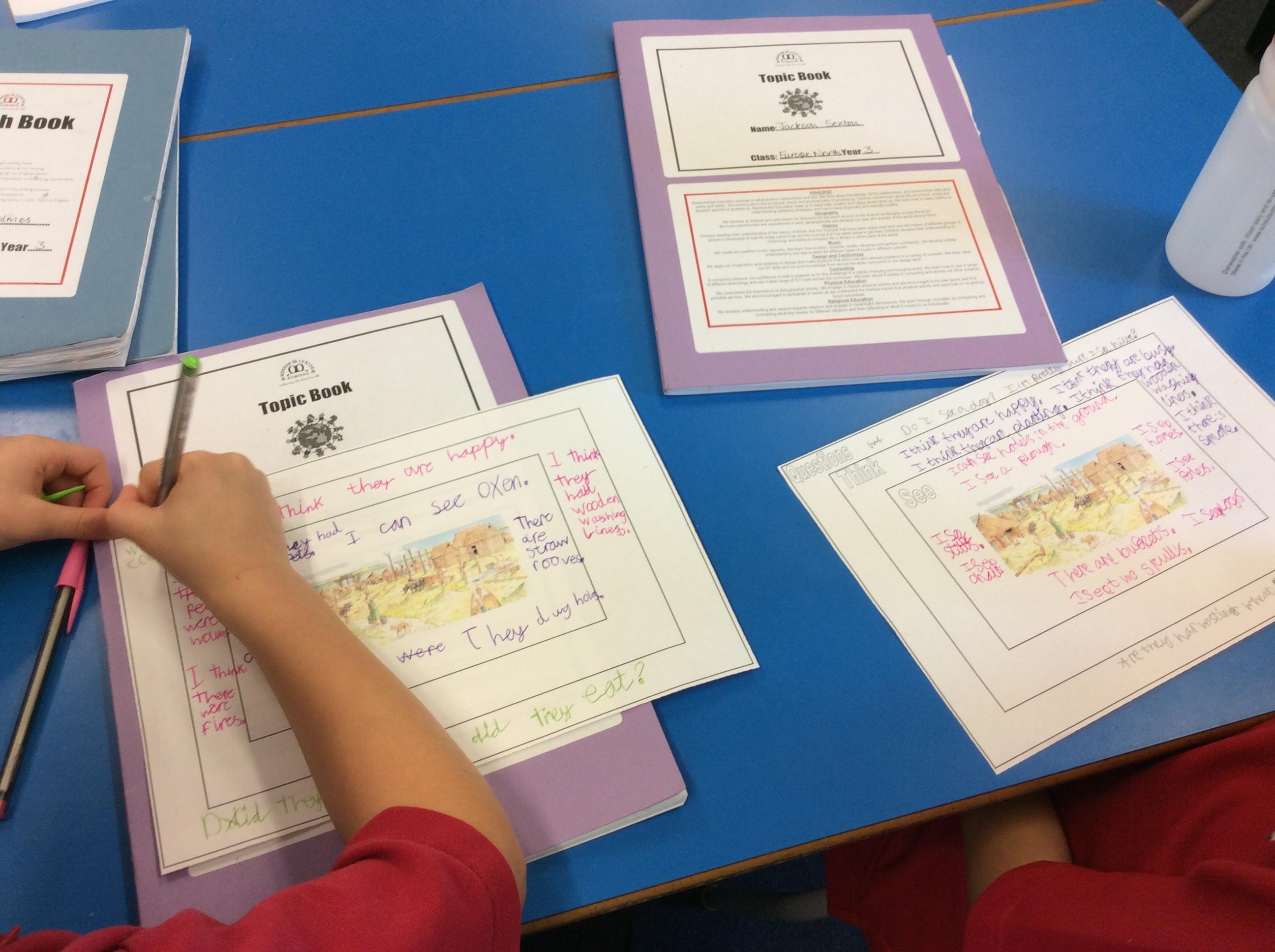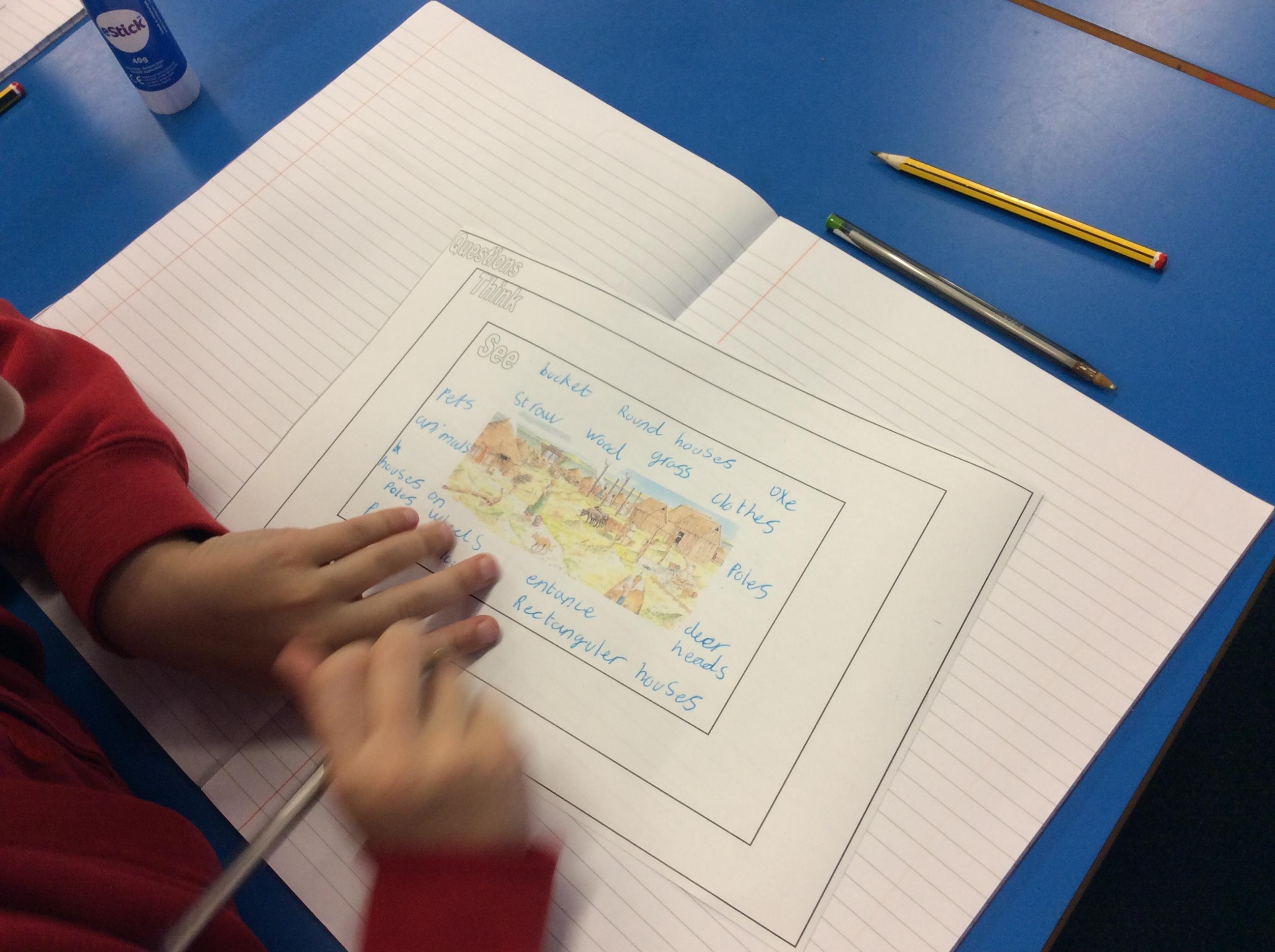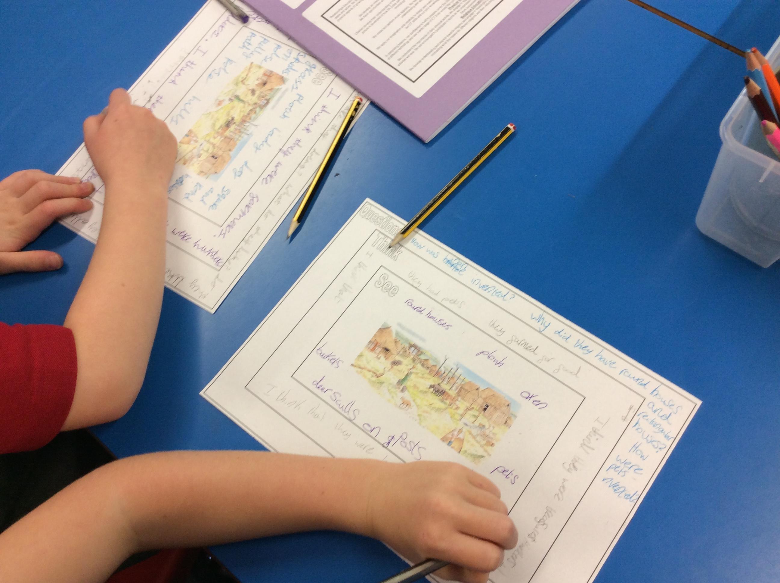 We thought about what would be the 4 main changes that happened in the Bronze Age before learning about the Iron Age. We focused our learning on Danebury Iron Age hill fort. We looked at maps, aerial photos and photographs of the site and pictures of the artefacts found there. Were thought about how historians use evidence to build a picture of the past. We looked at artist impressions to see what we could infer about life in the fort.