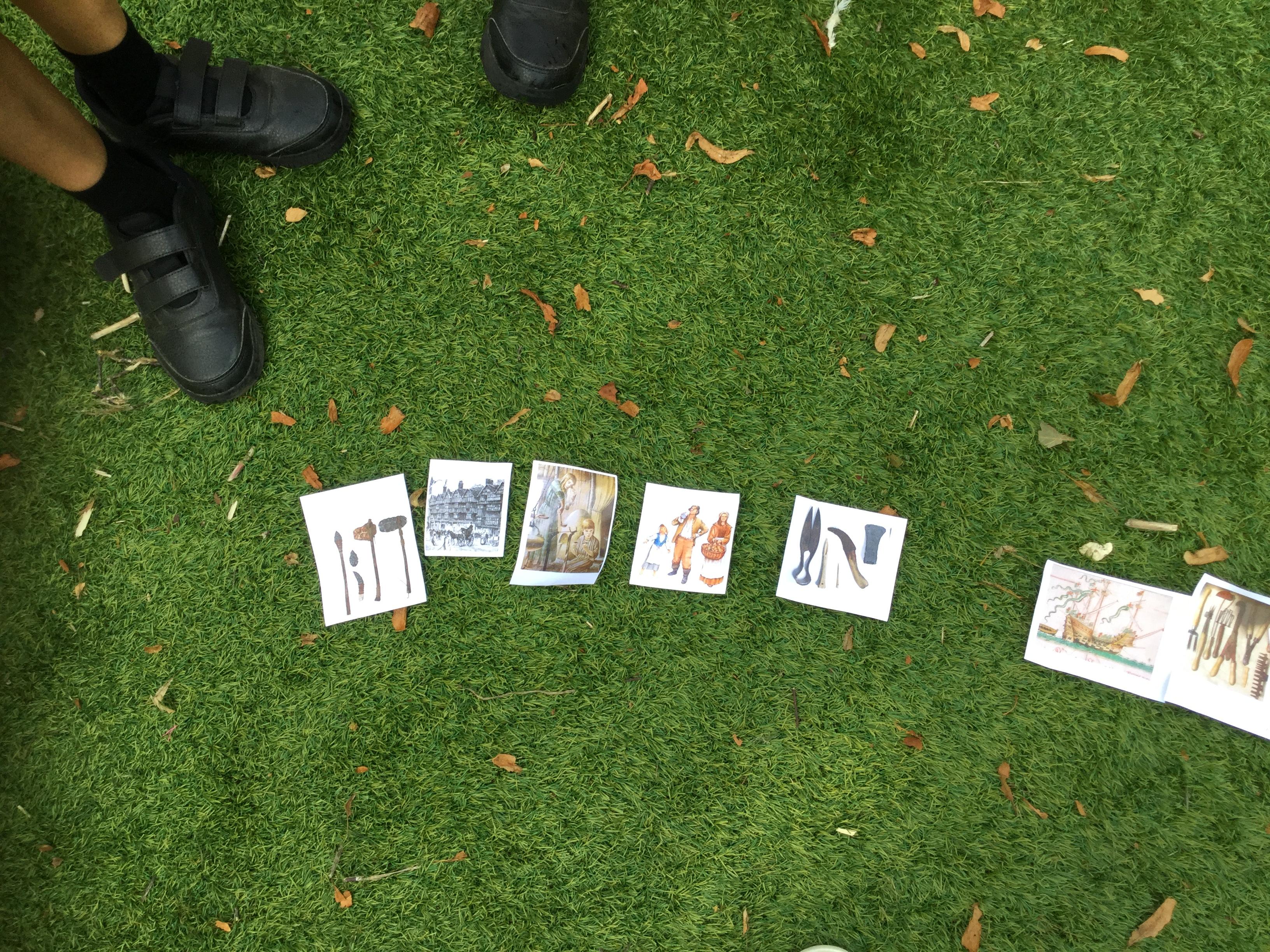 Today we started our History topic by being detectives. We worked in teams to find picture clues for our topic. We found 16 picture clues and sorted them in to groups, then into chronological order.