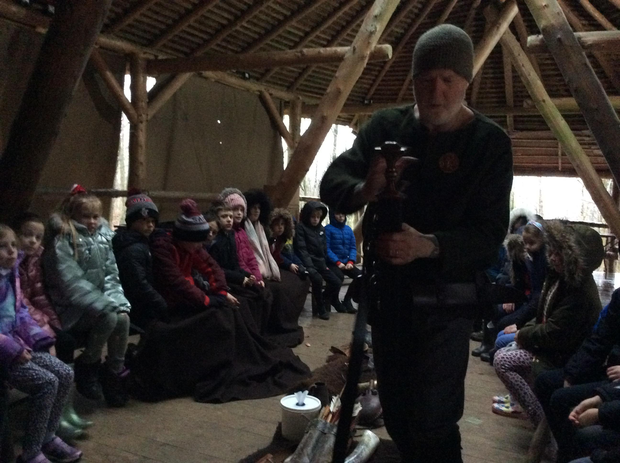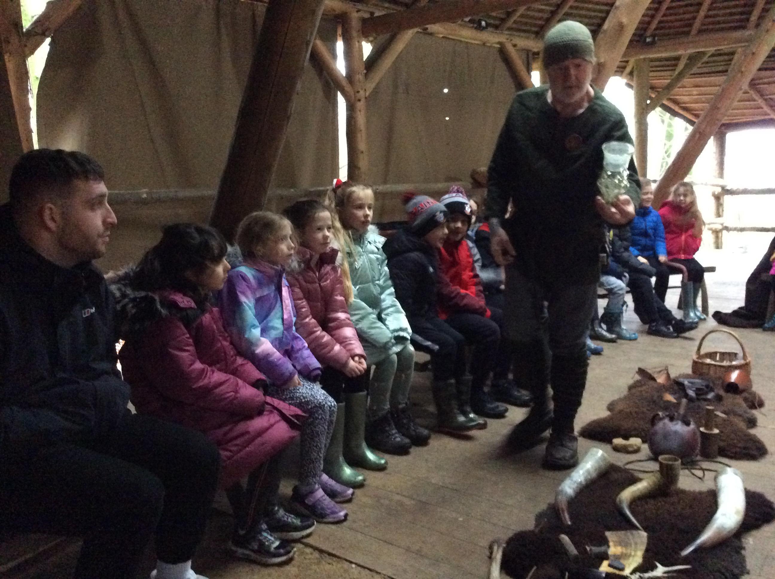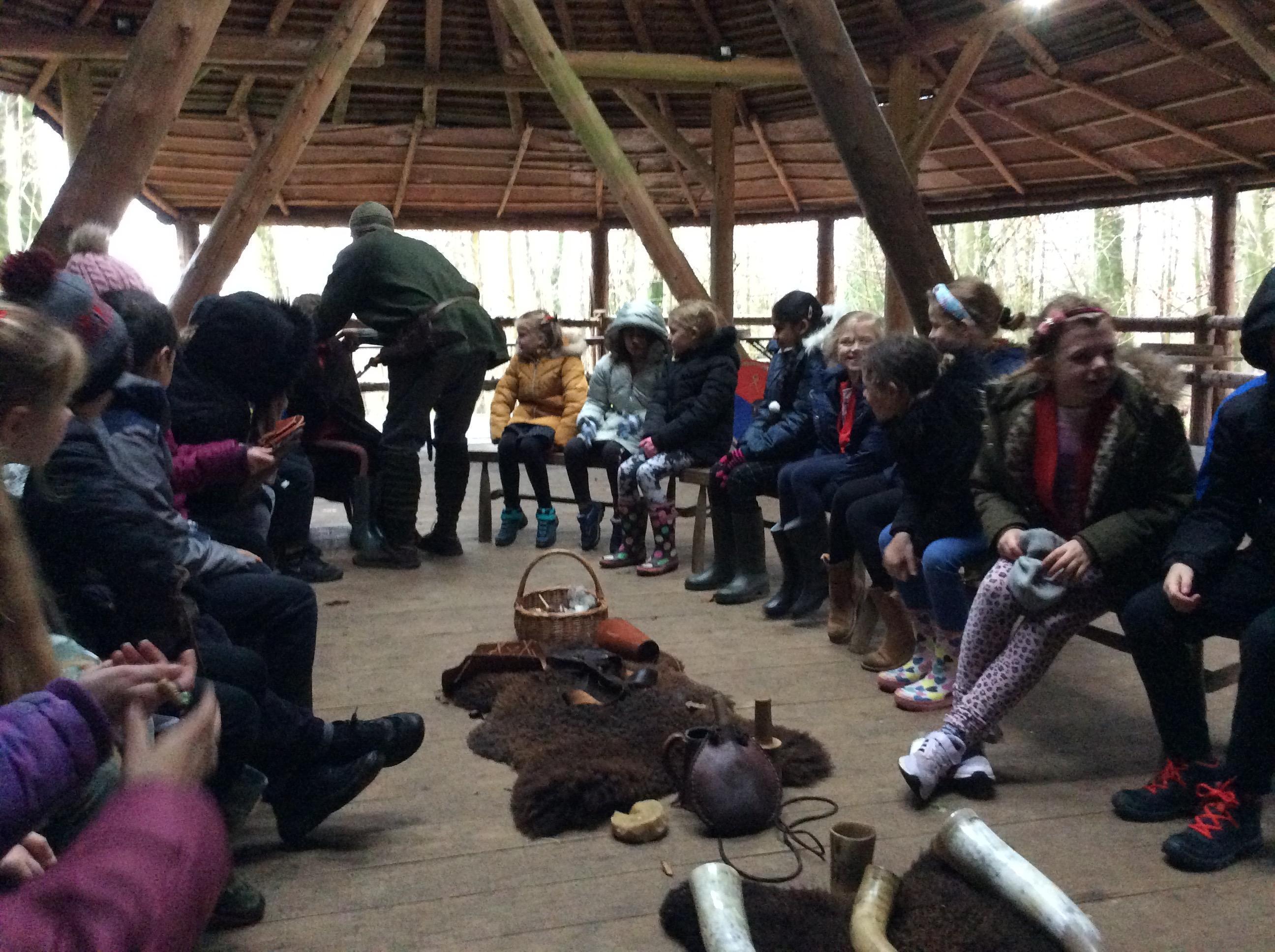 This week, we went back in time to the Anglo-Saxon times when we visited the Sustainability Centre. When we arrived, we were greeted by an Anglo-Saxon man who shared lots of artefacts with us which we got to hold. We also experienced the jobs that Anglo-Saxon children used to do such as grinding wheat, stoning crows and whacking rats. In the afternoon, we joined in with some clay archeology and weaving fences.