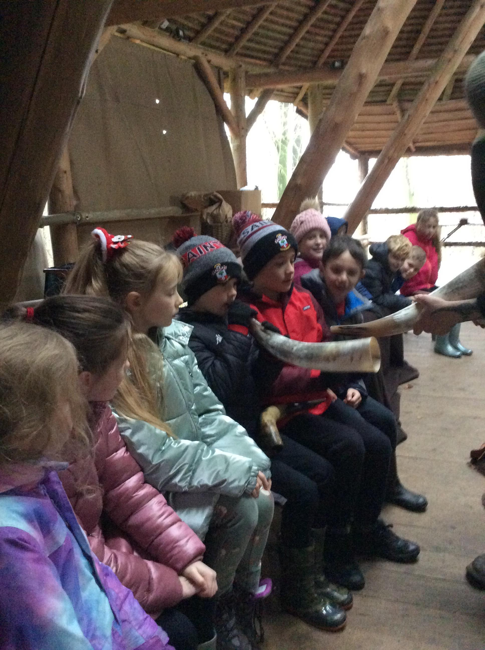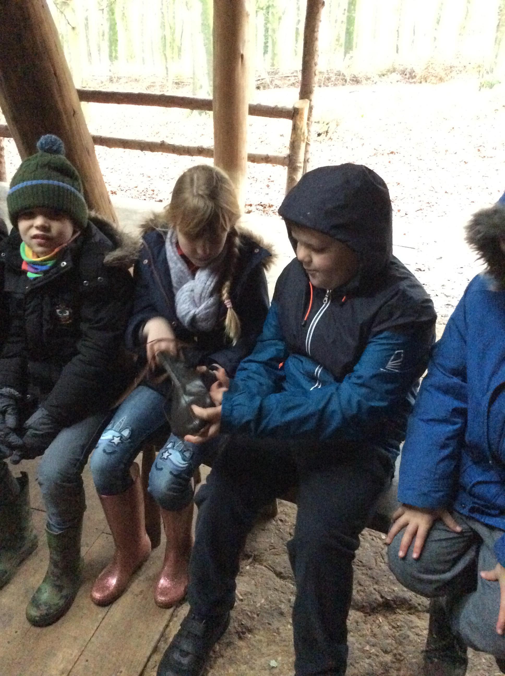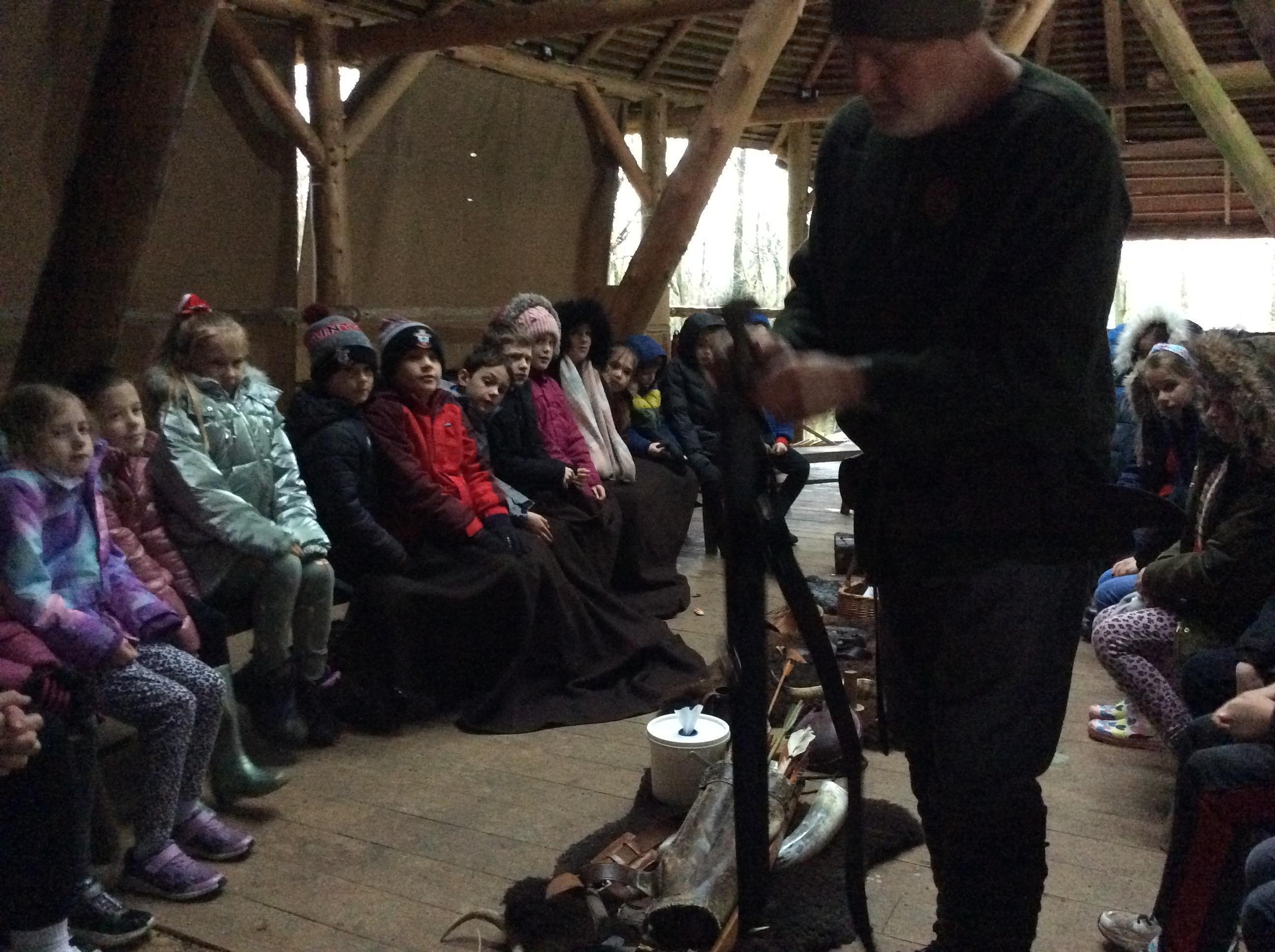This week, we went back in time to the Anglo-Saxon times when we visited the Sustainability Centre. When we arrived, we were greeted by an Anglo-Saxon man who shared lots of artefacts with us which we got to hold. We also experienced the jobs that Anglo-Saxon children used to do such as grinding wheat, stoning crows and whacking rats. In the afternoon, we joined in with some clay archeology and weaving fences.