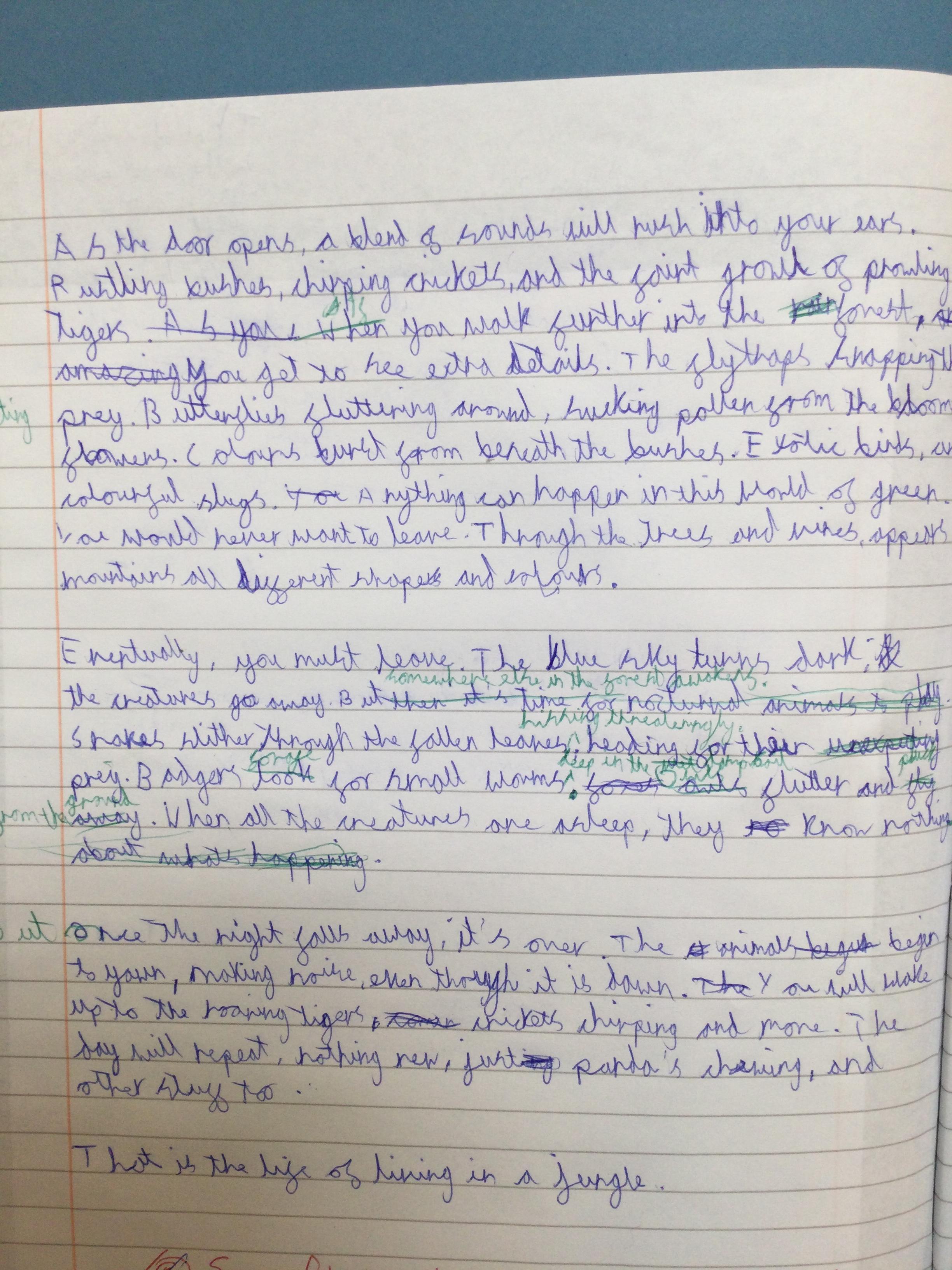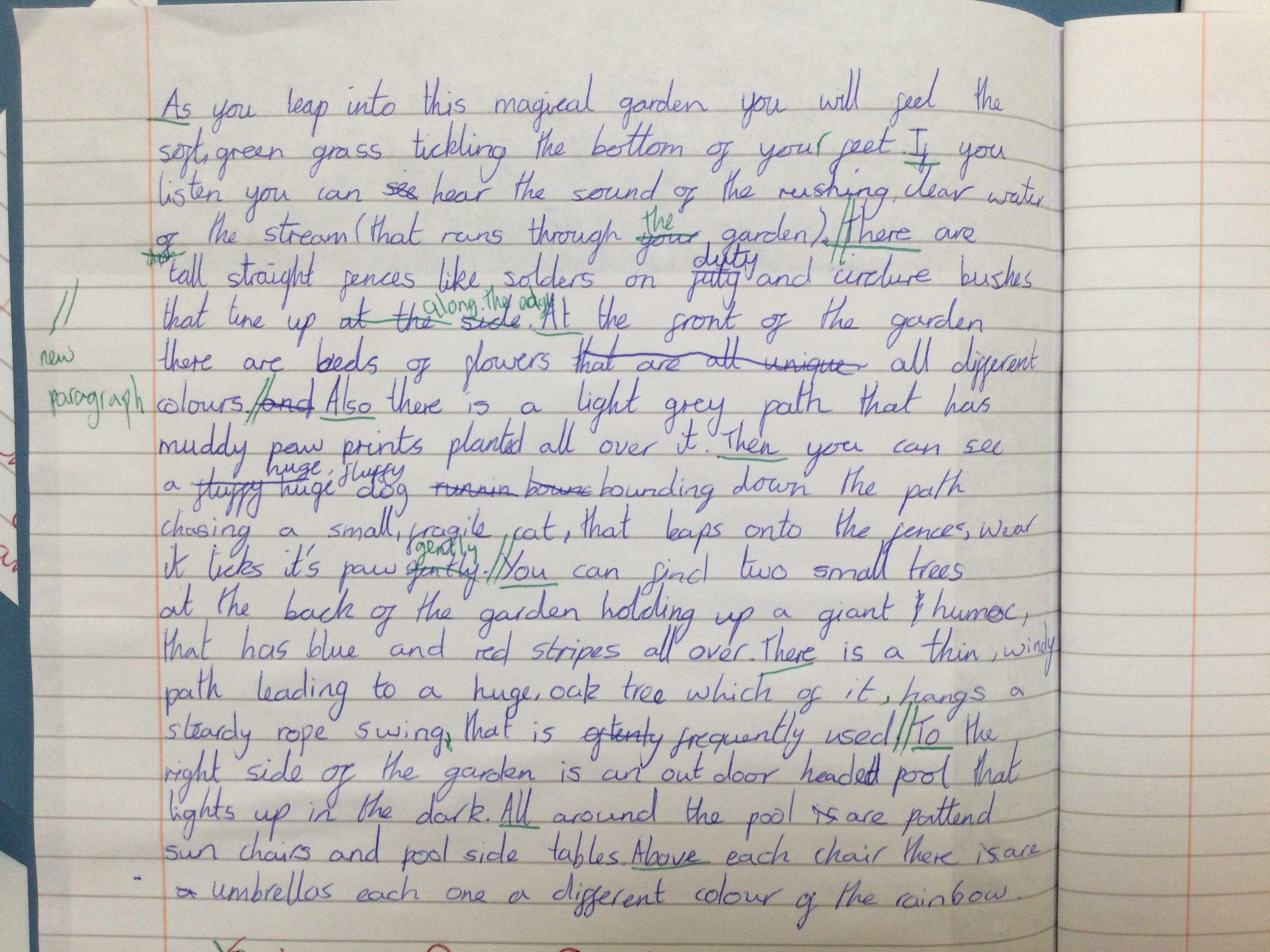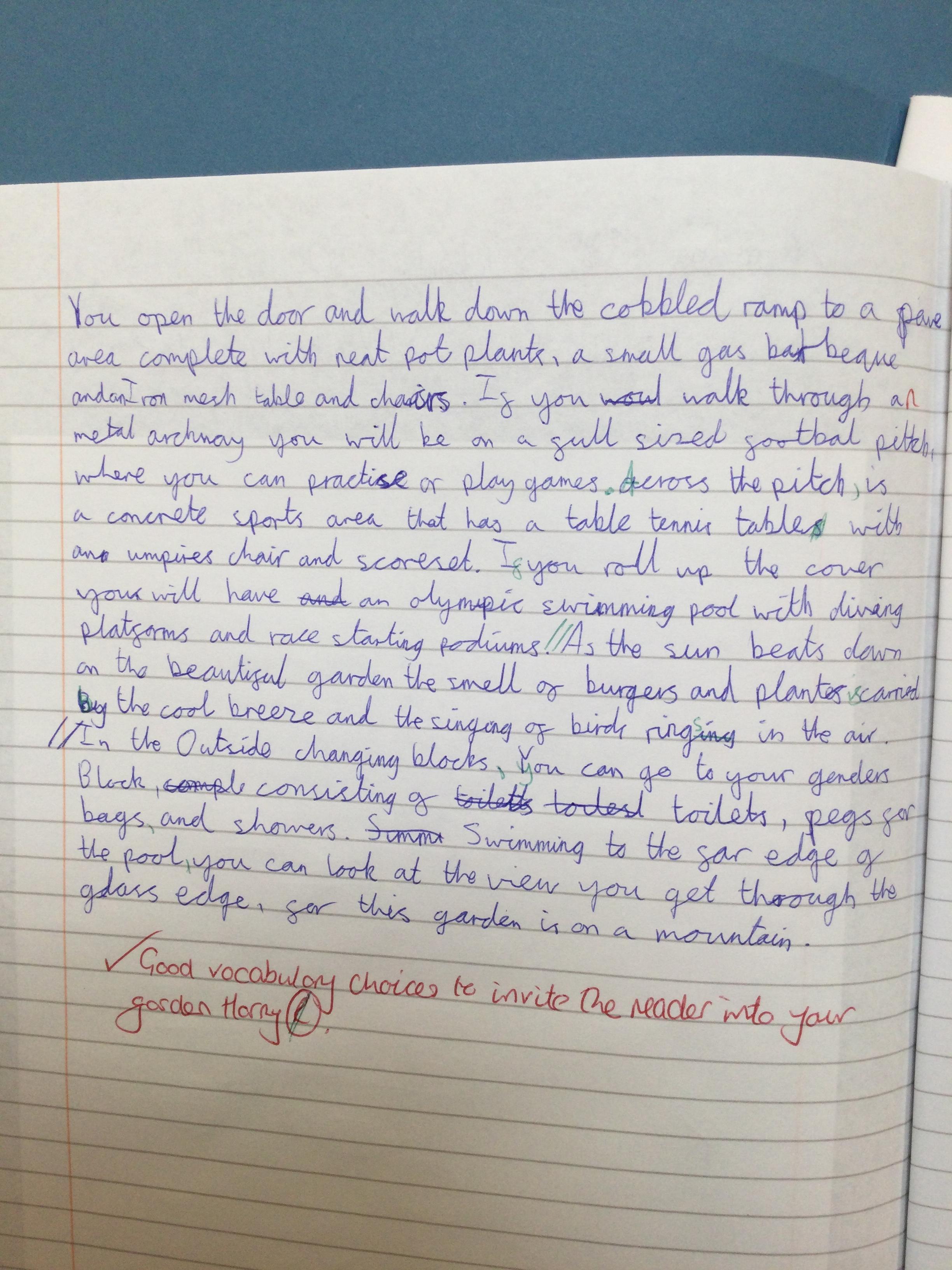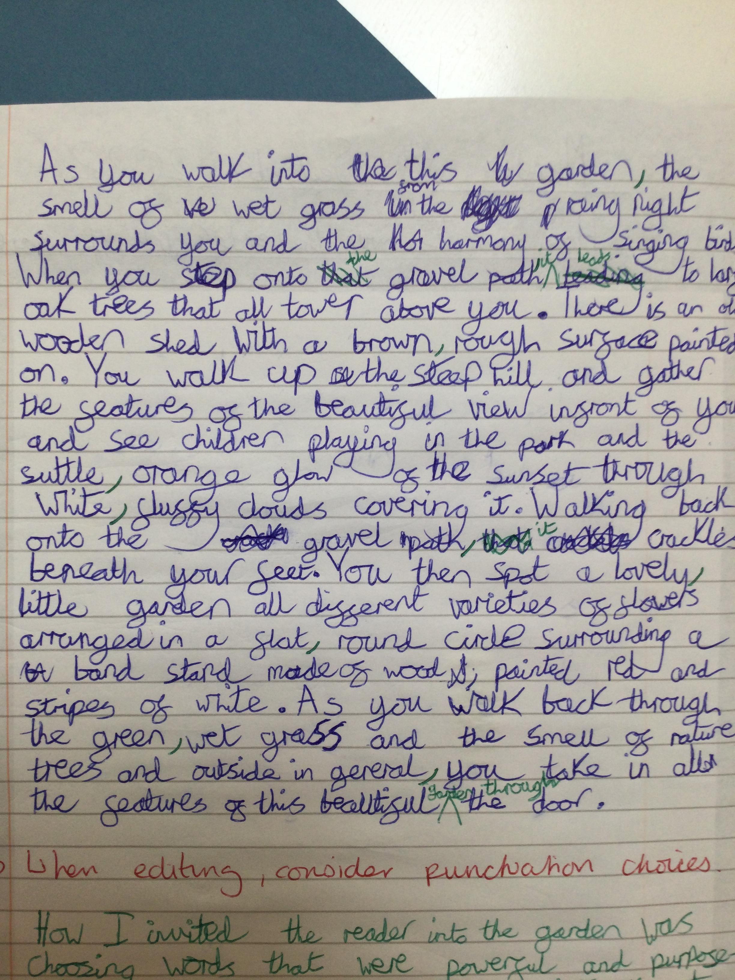 We began by thinking of a door. A door that opens into a garden. What is behinD the door? We then drew what our garden could look like - negative or positive, any time of day or night and any time of year. After this, we wrote descriptive pieces inviting the reader into our gardens.