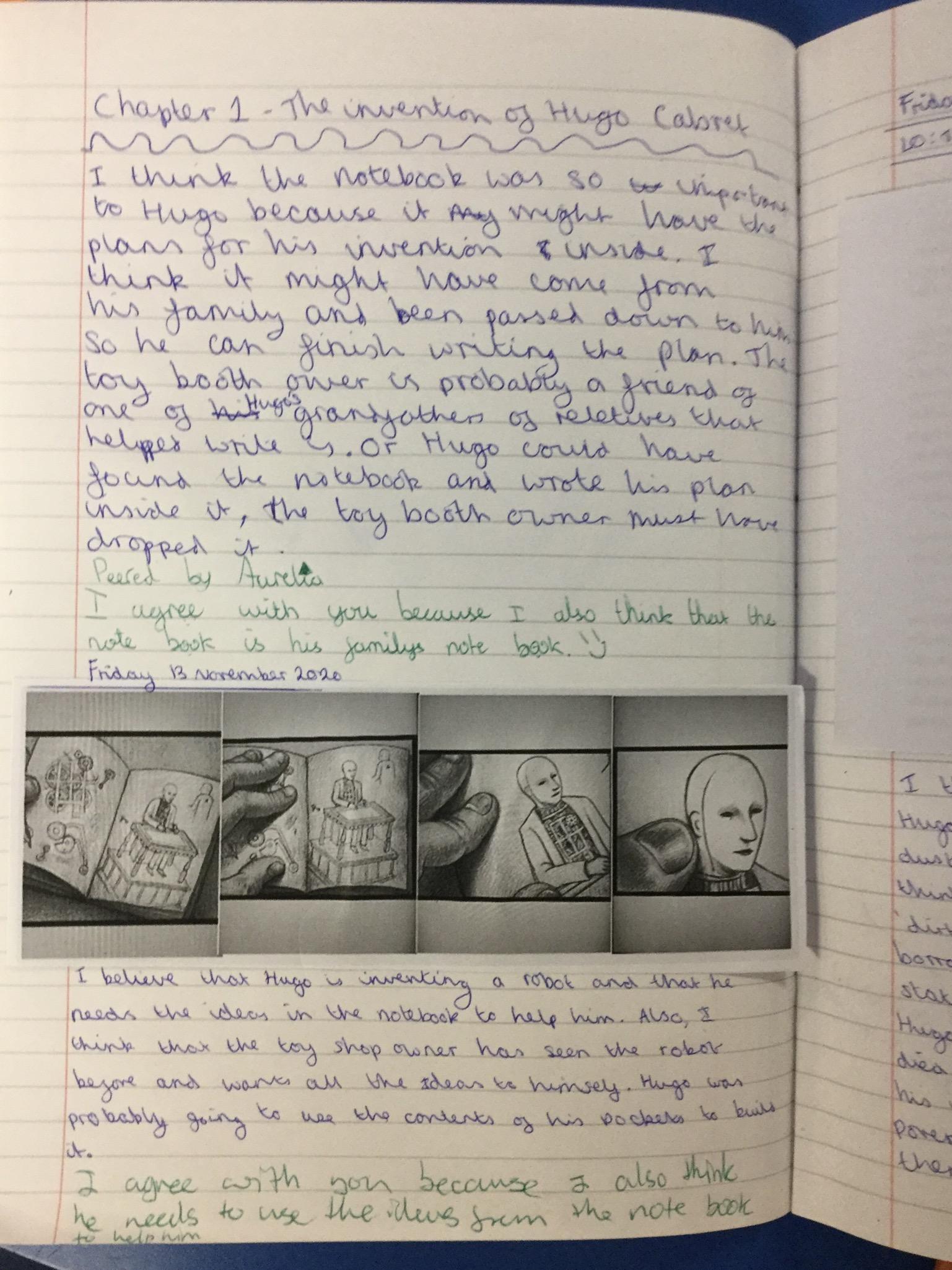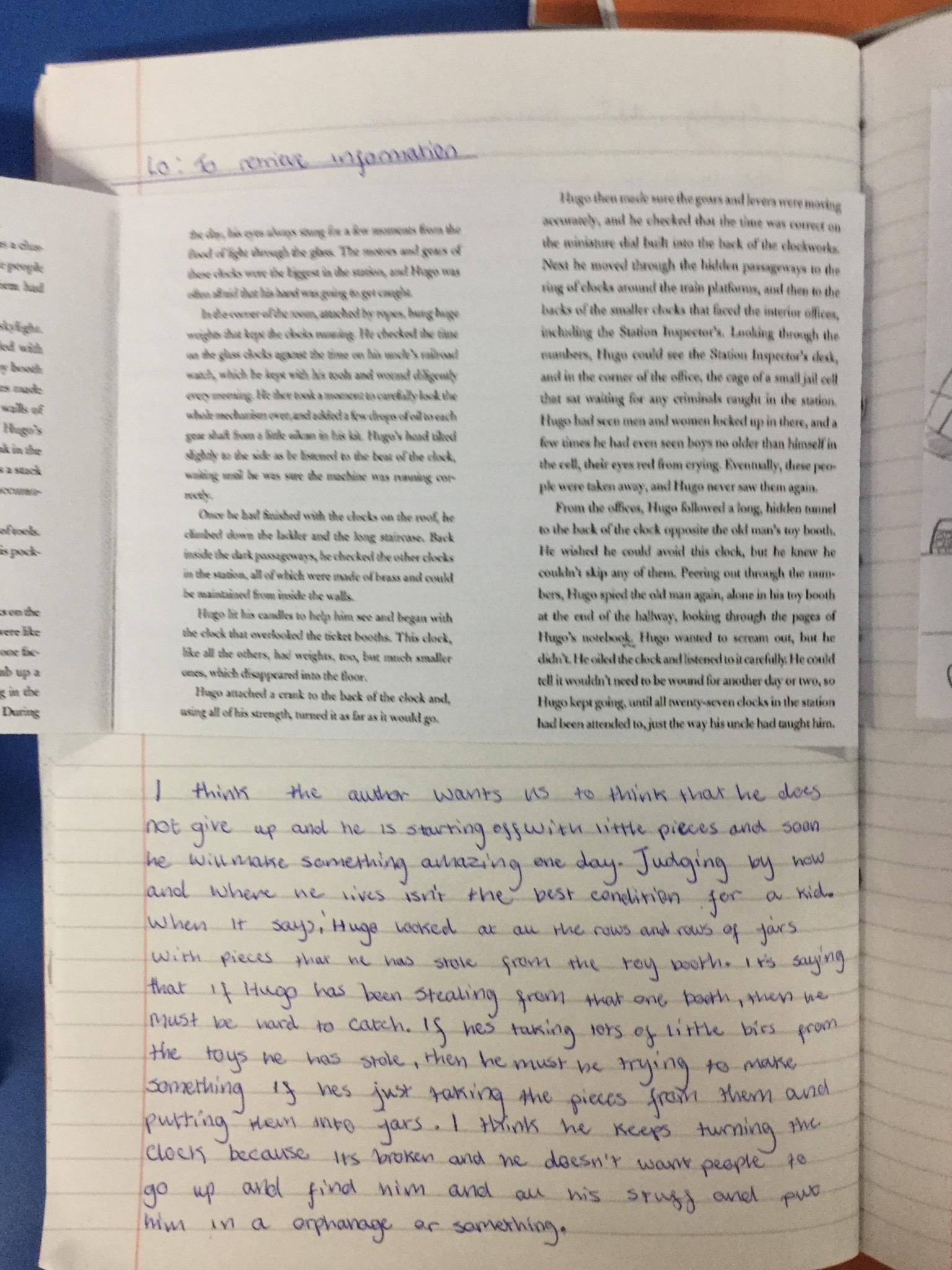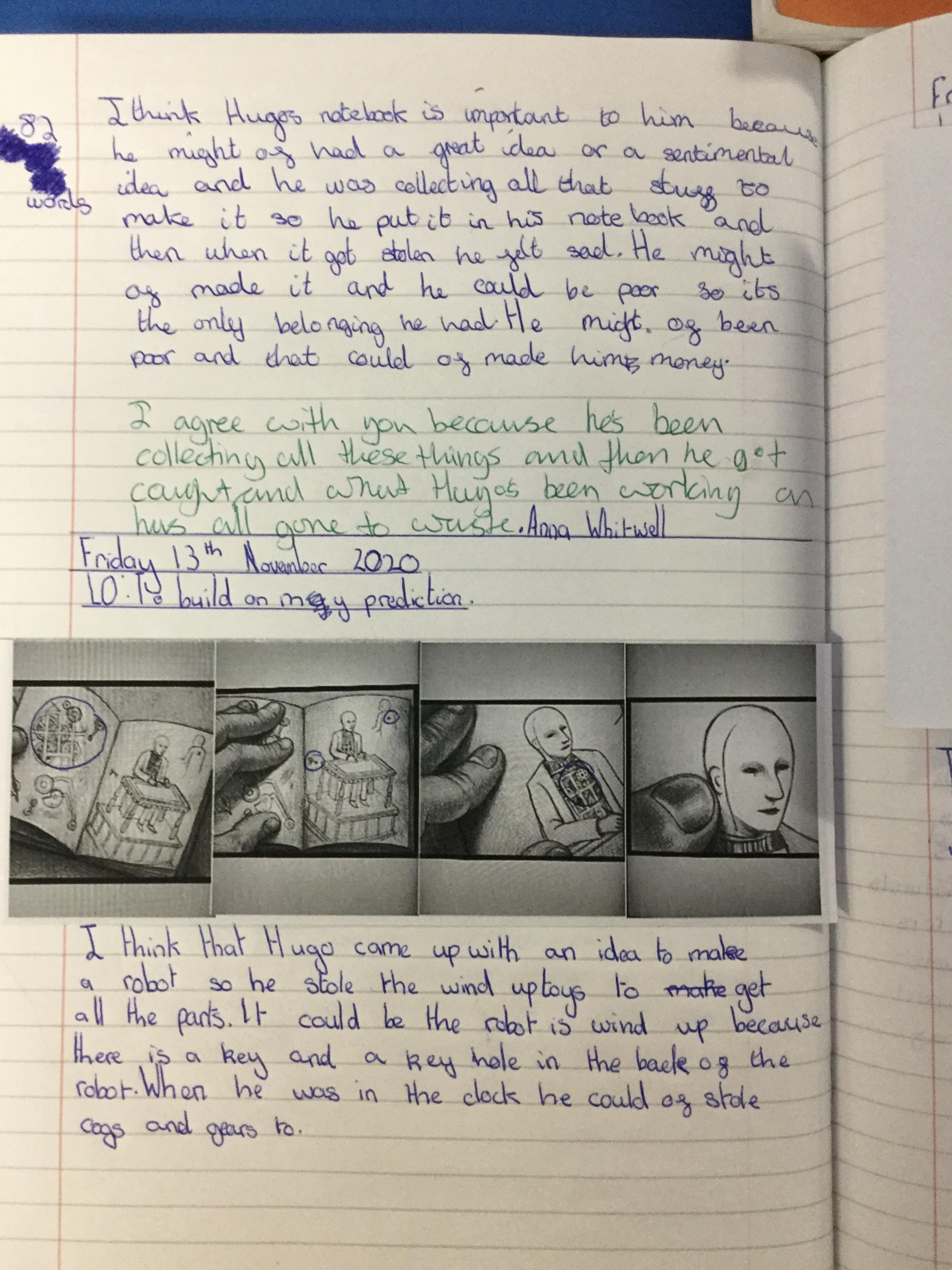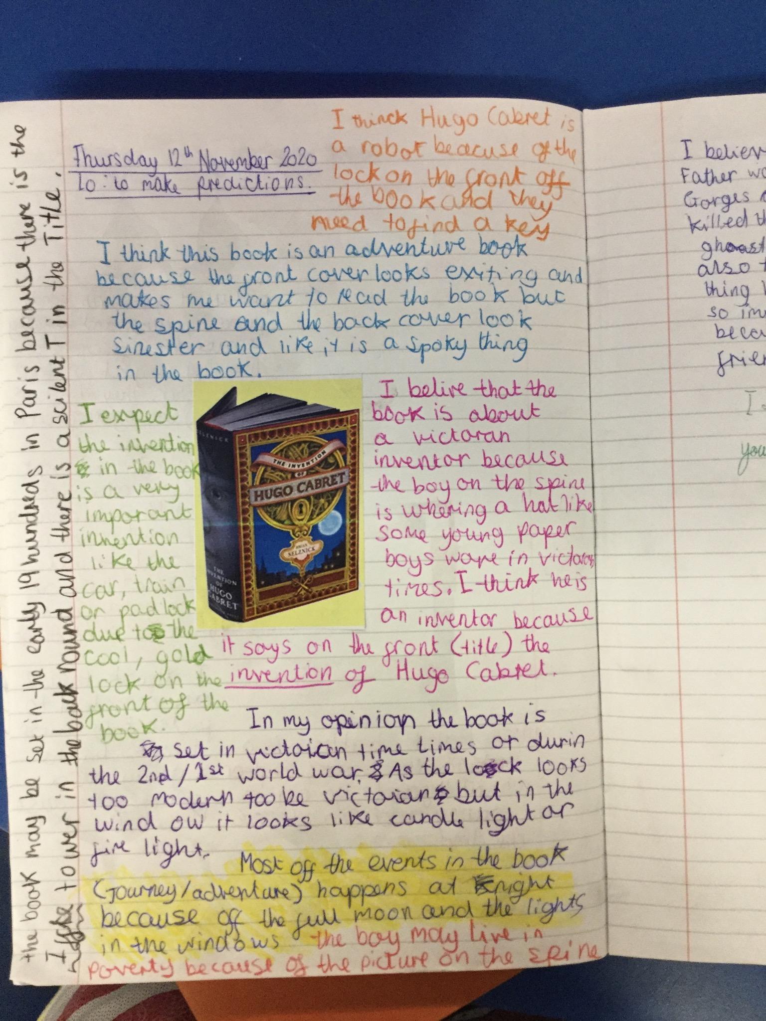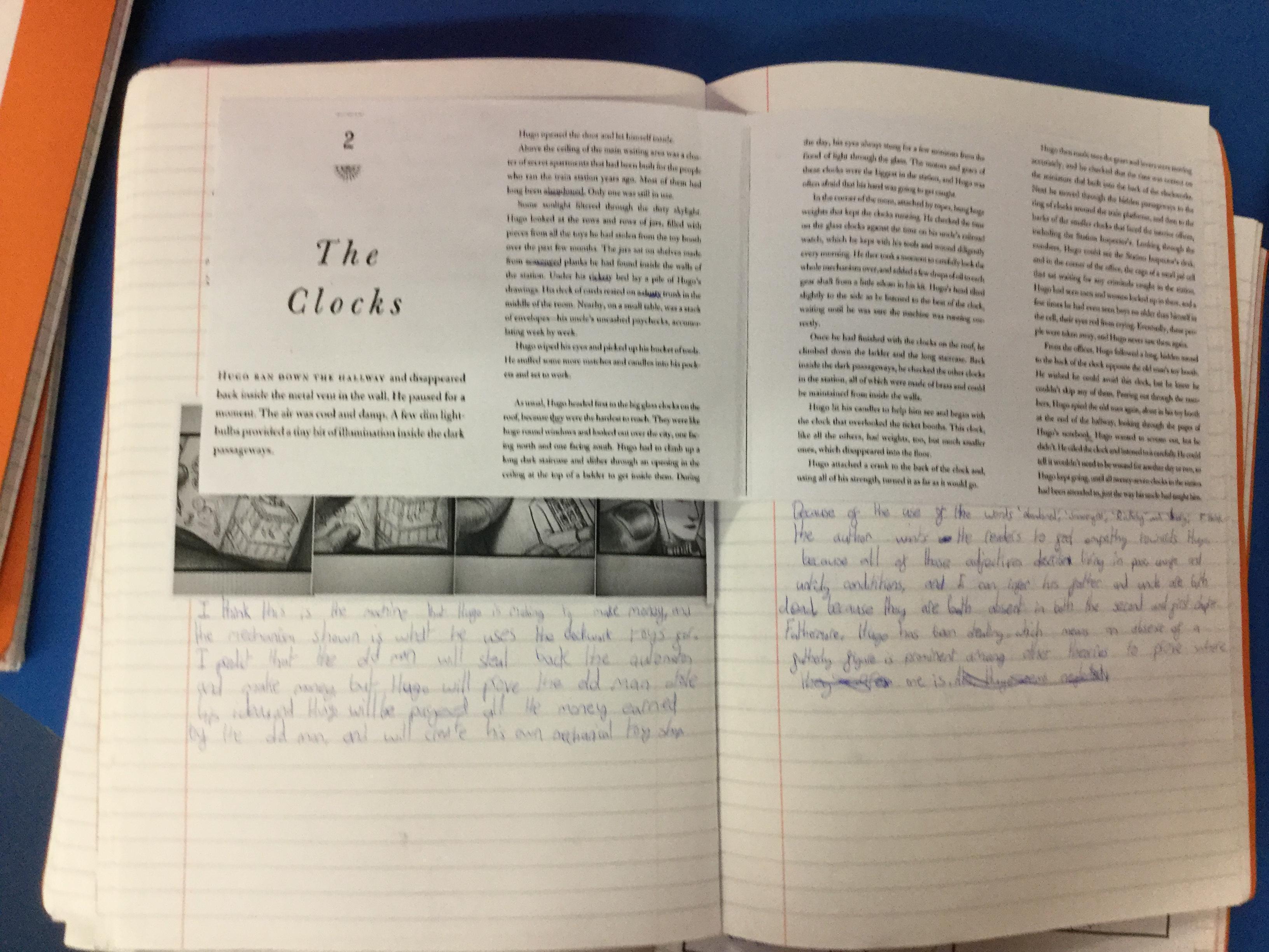 We have begun our new book: Brian Selznick’s The invention of Hugo Cabret’. We made predictions based on the front cover of the novel, made inferences about Hugo based on his notebook and what we have learnt about his room. We have retrieved information from the text to created diagrams of Hugo’s room in the train station in the style of Selznick.