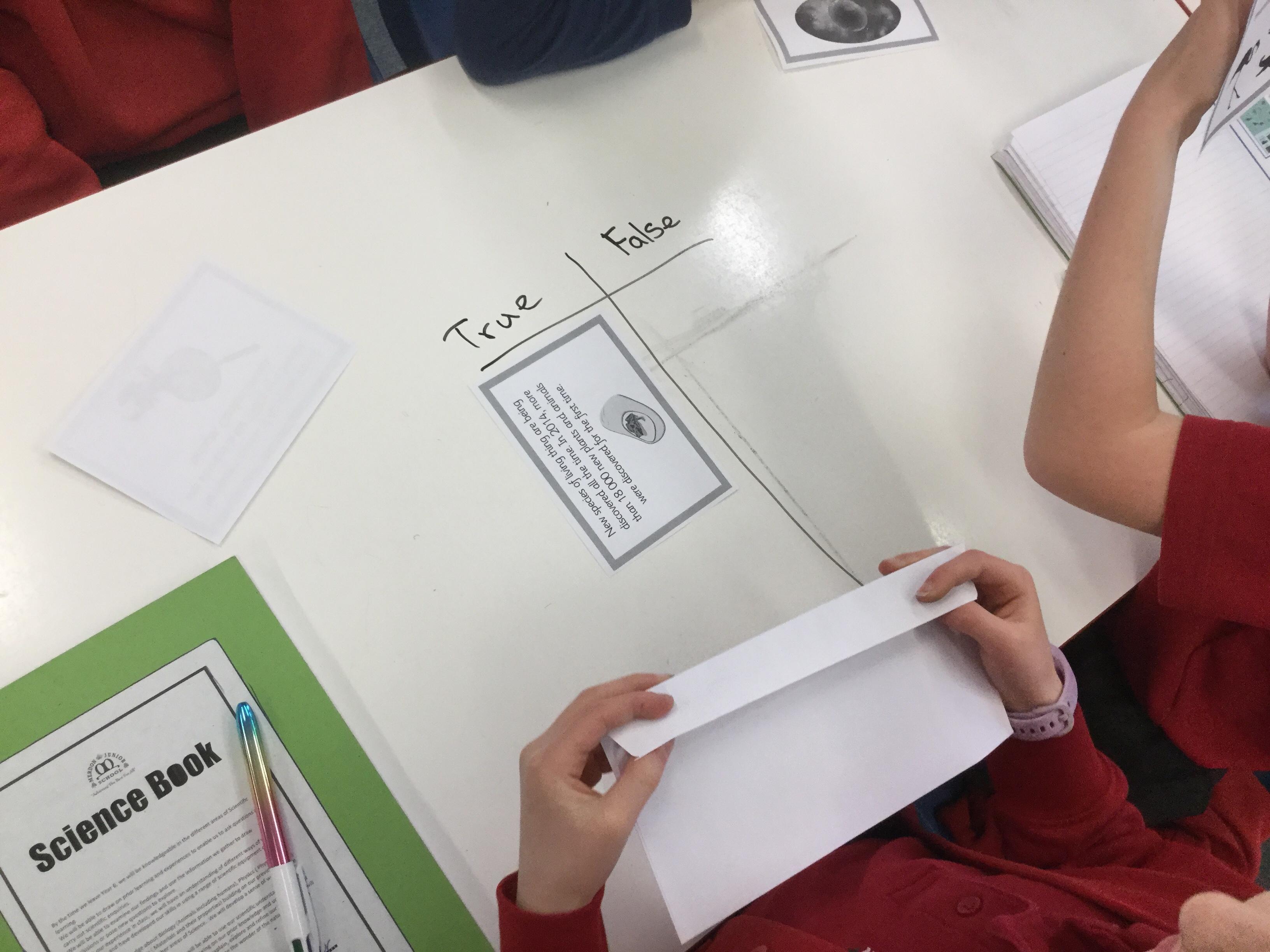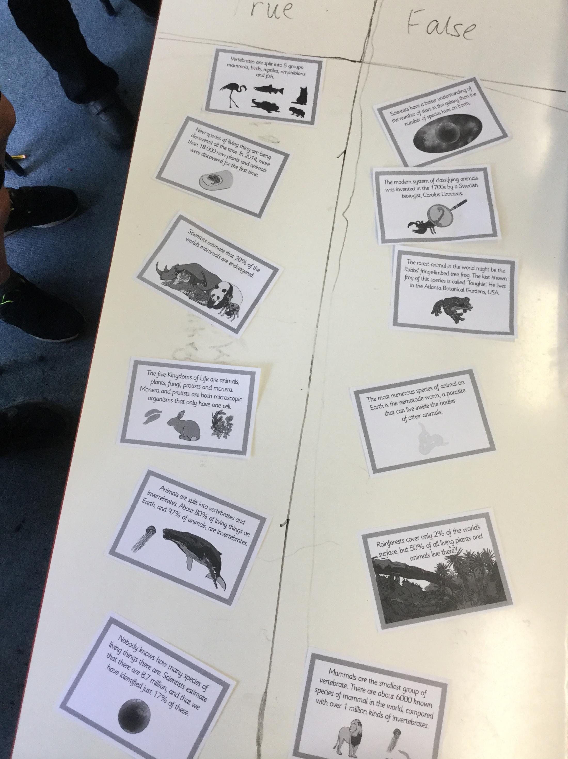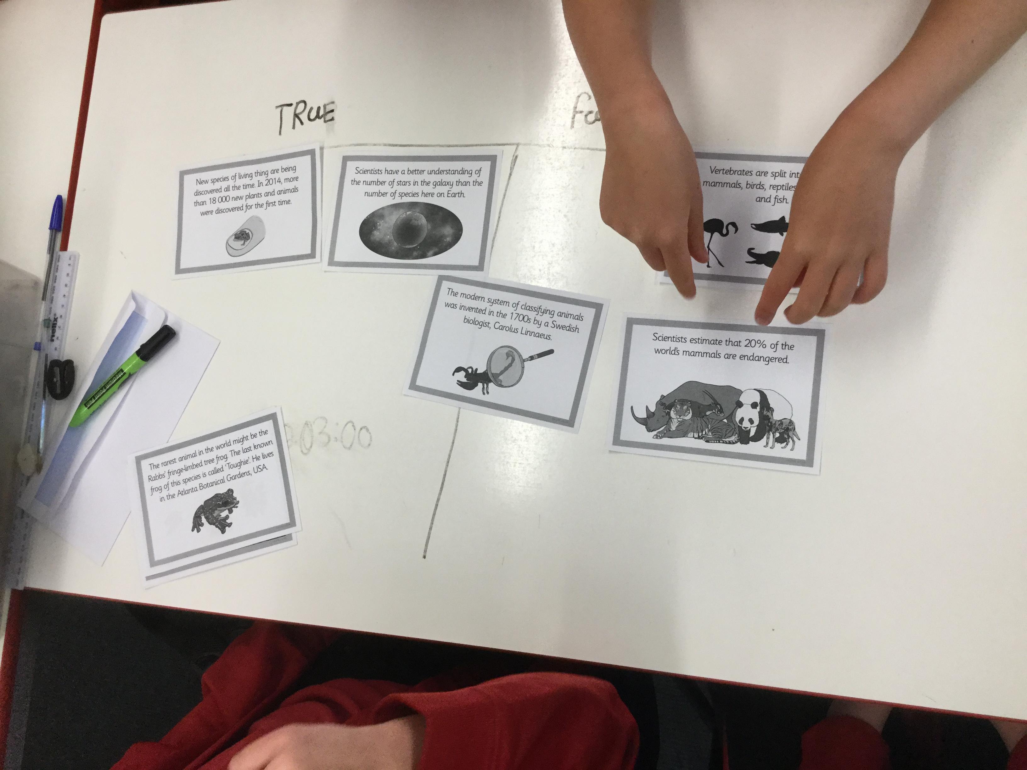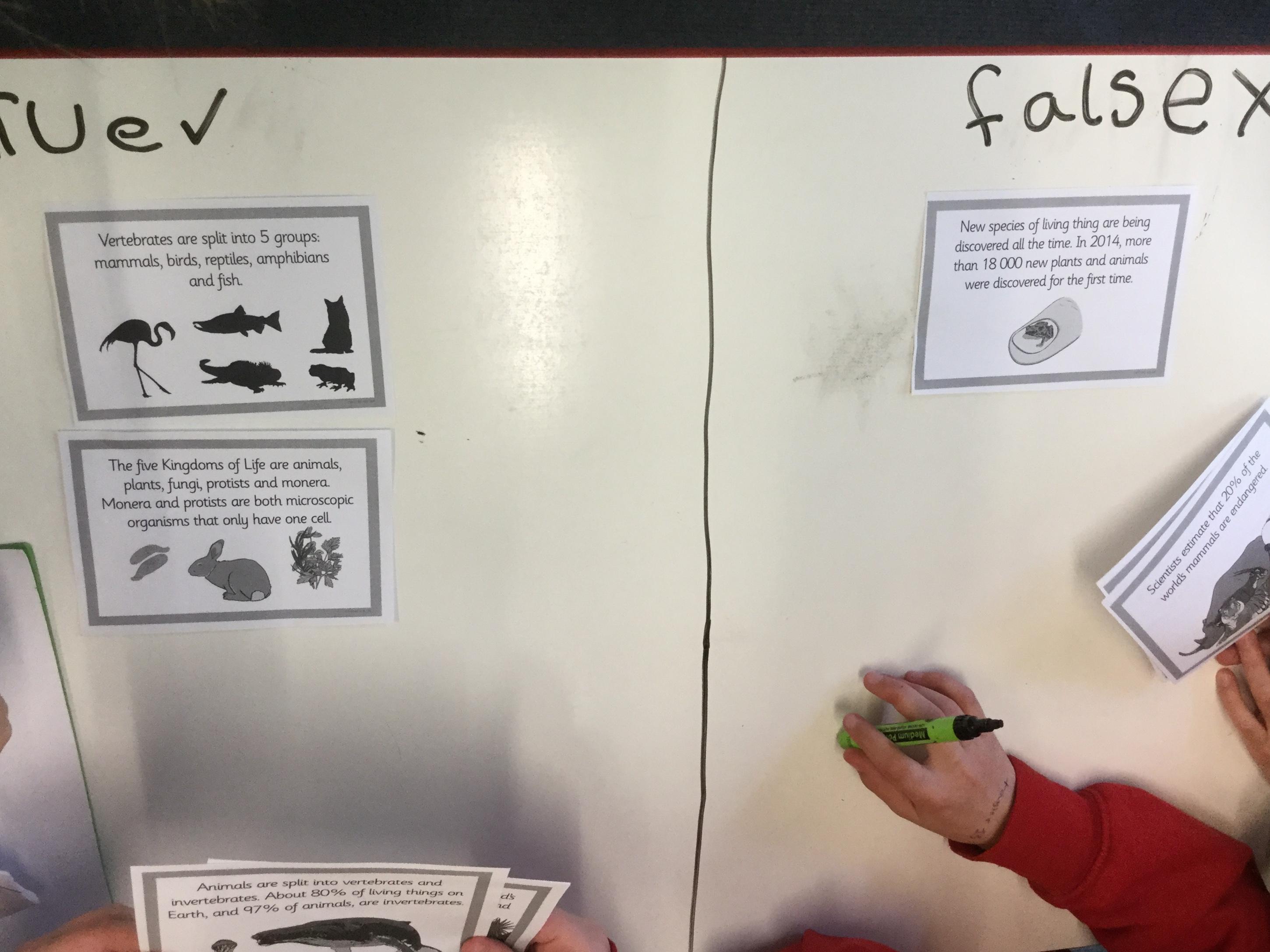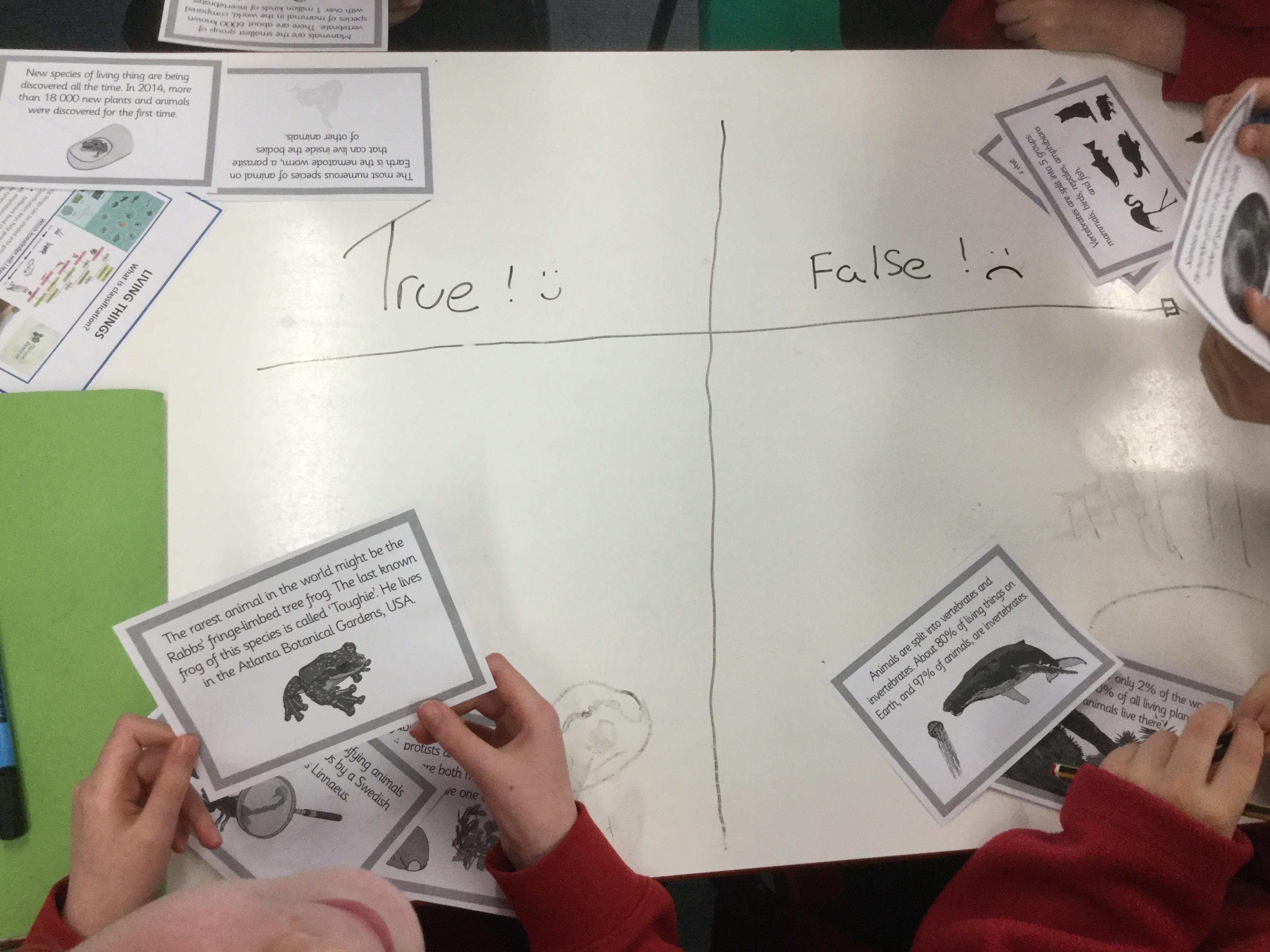 Today, the children started our ‘Living Things’ topic by looking at and sorting some interesting facts. They had to sort them into whether they thought they were true or false. The children explained their thoughts on the facts and then it was revealed that all of the facts are true!