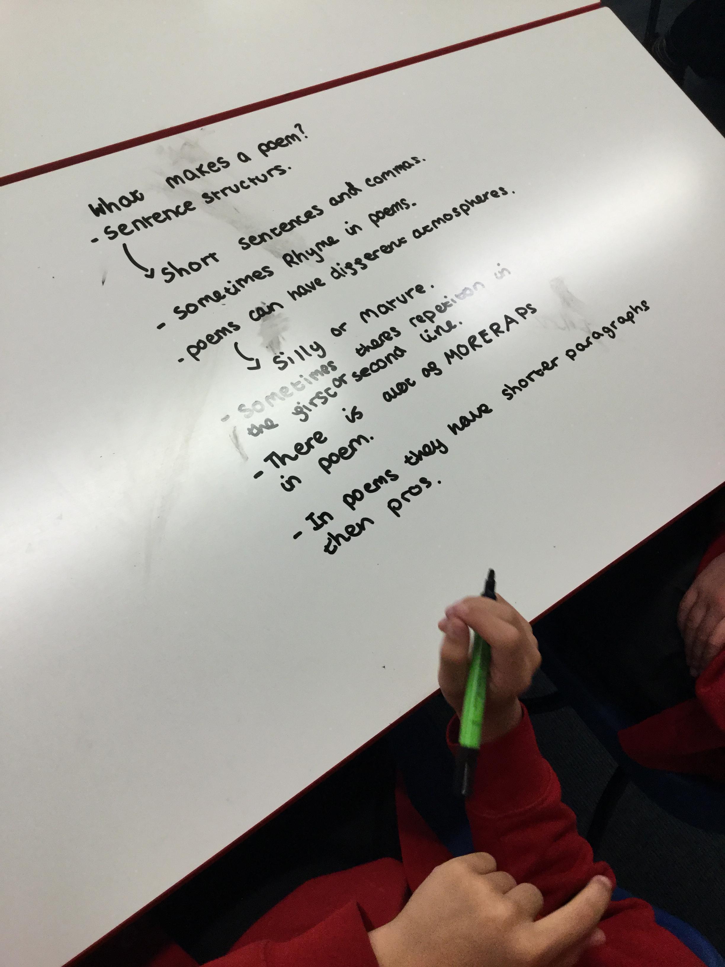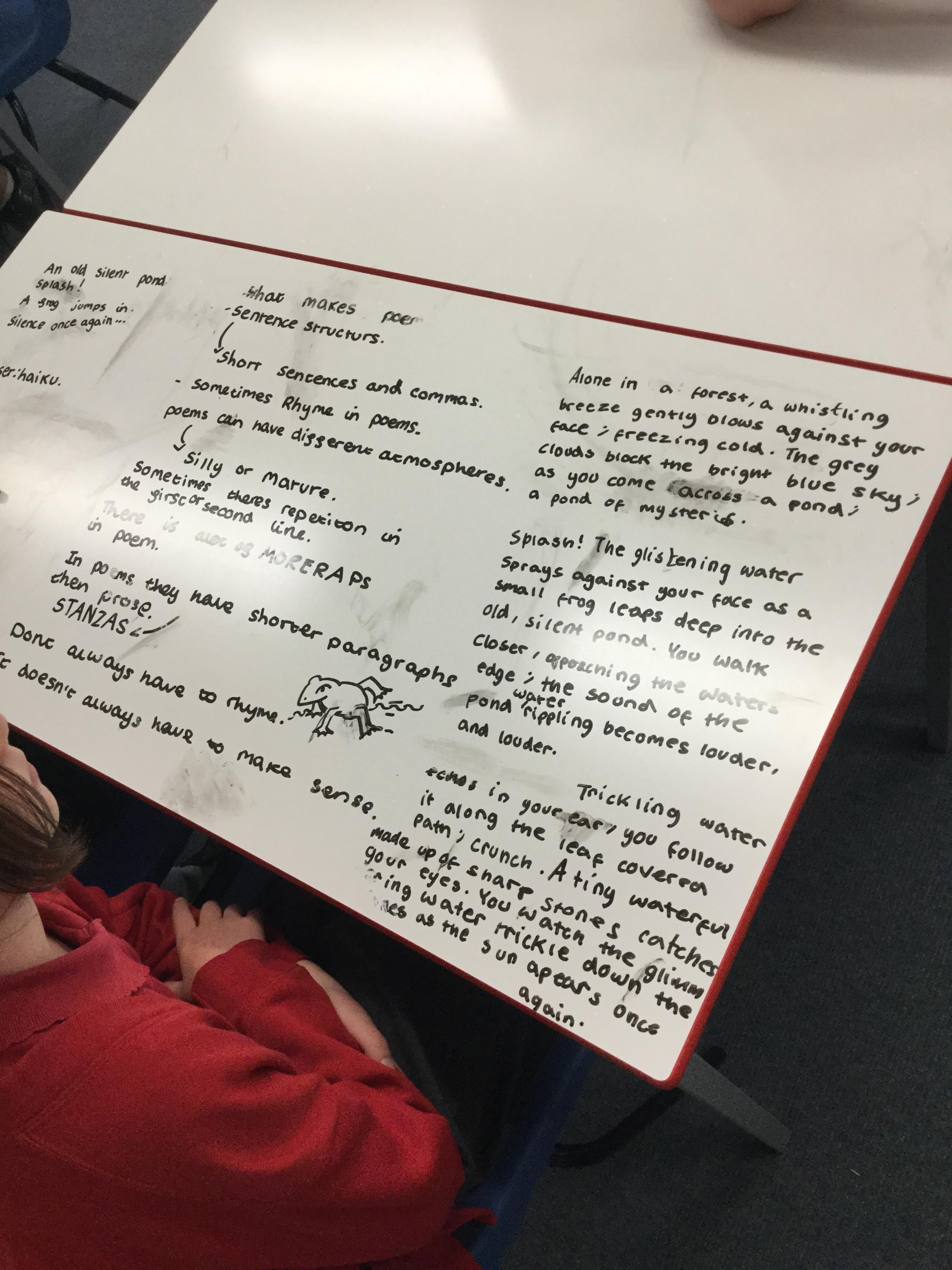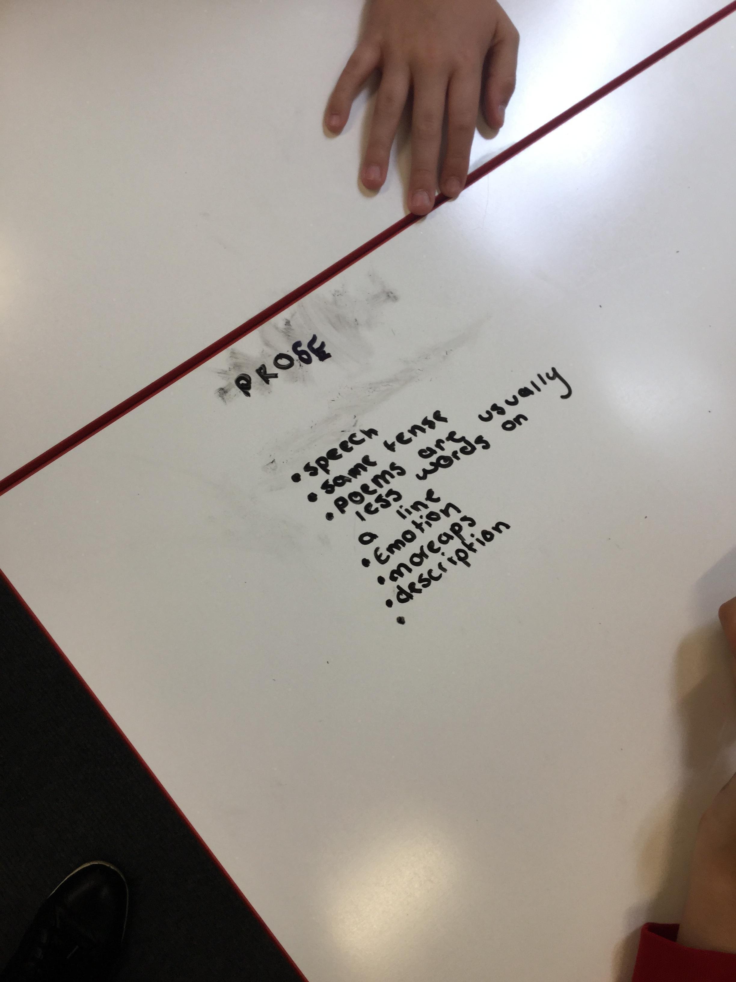In our Let’s Thin English lesson we were trying to classify and identify the differences between poetry and prose. We then looked at some text and tried to decide the category writing it belonged to. After much discussion we tried to make the text more poetic before using the text as a basis for a narrative - which we wrote collaboratively in our Let’s Think groups.