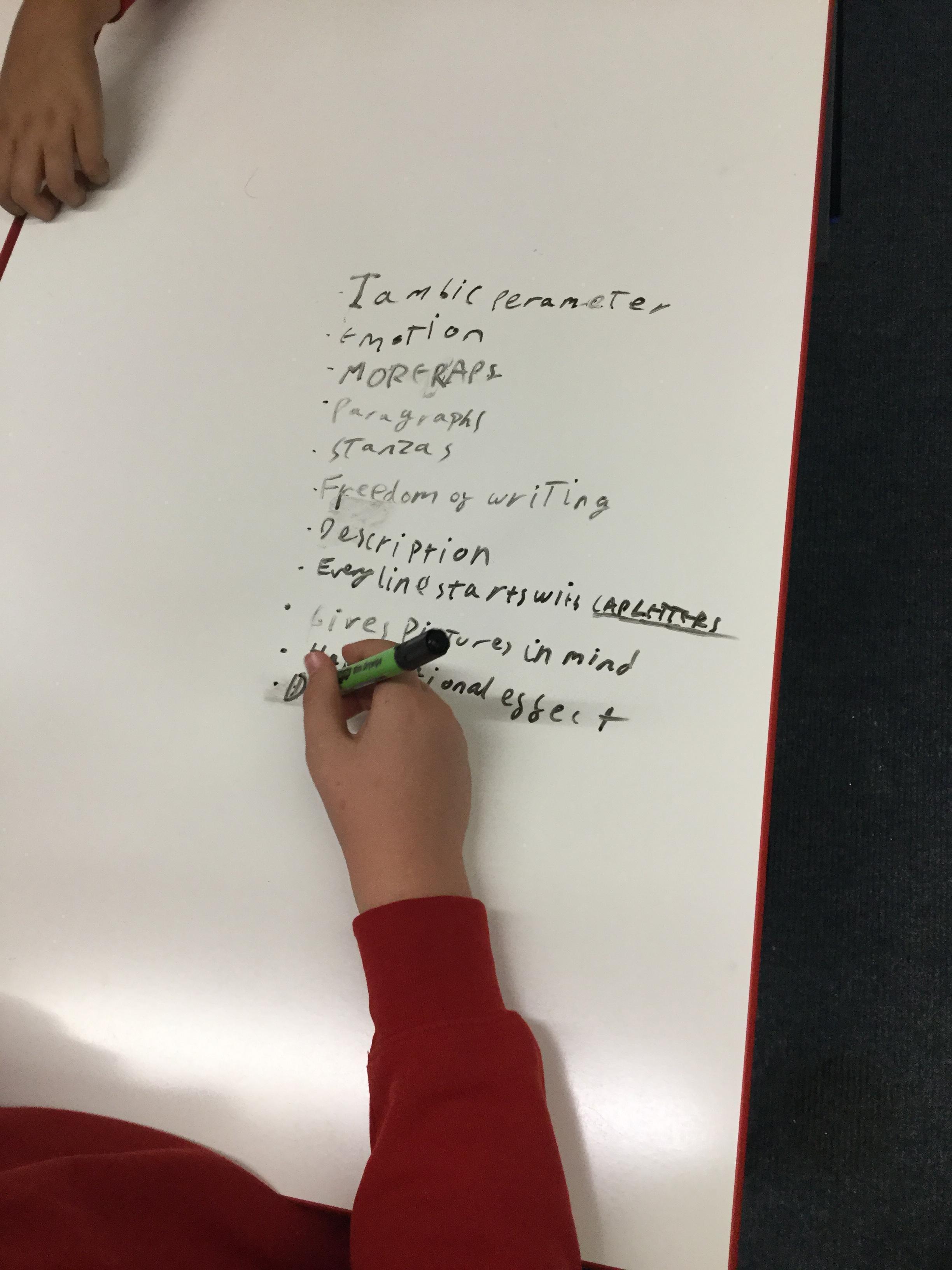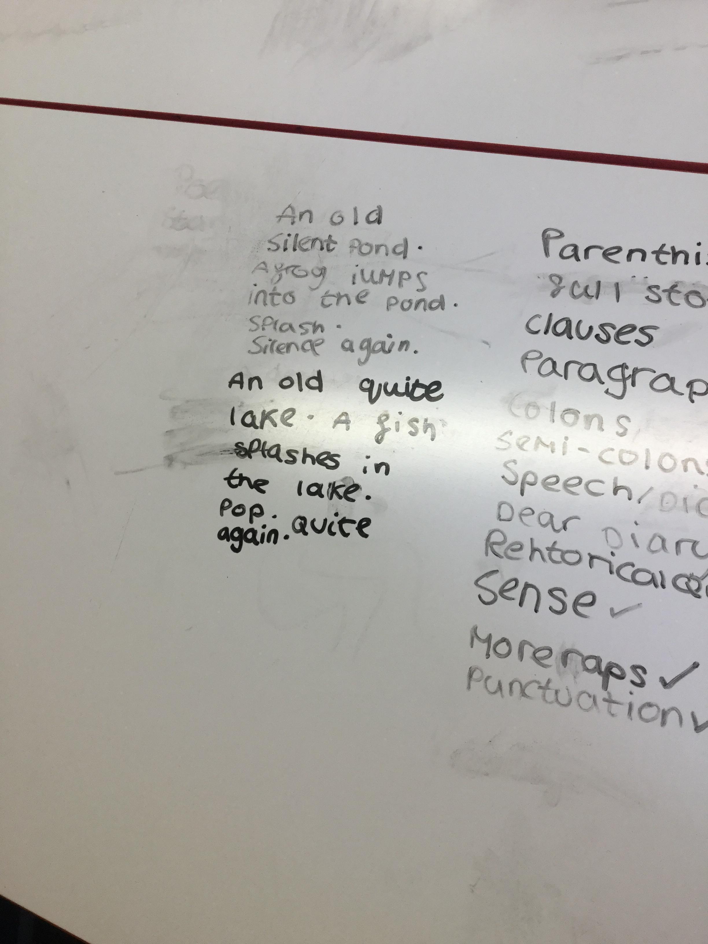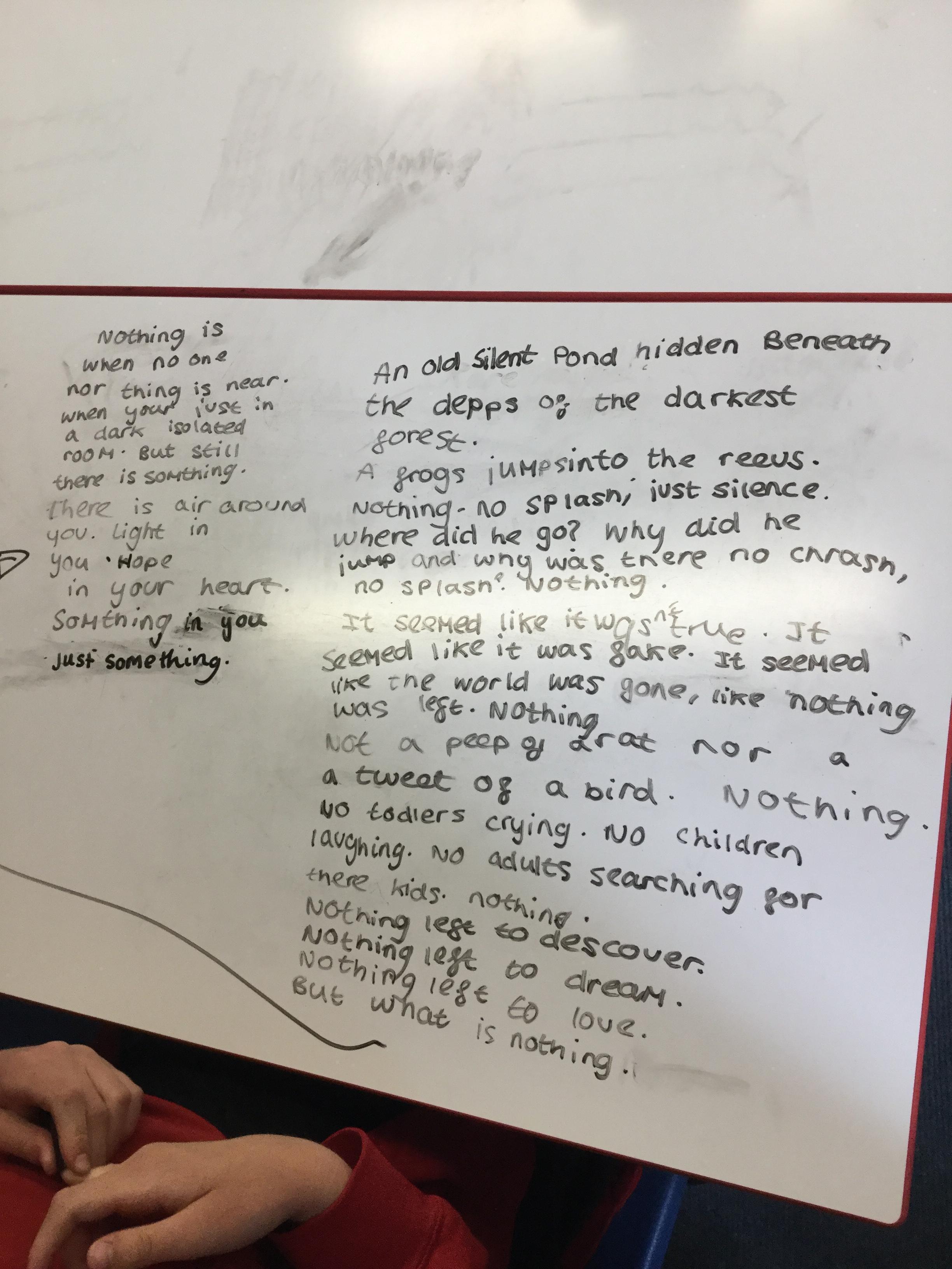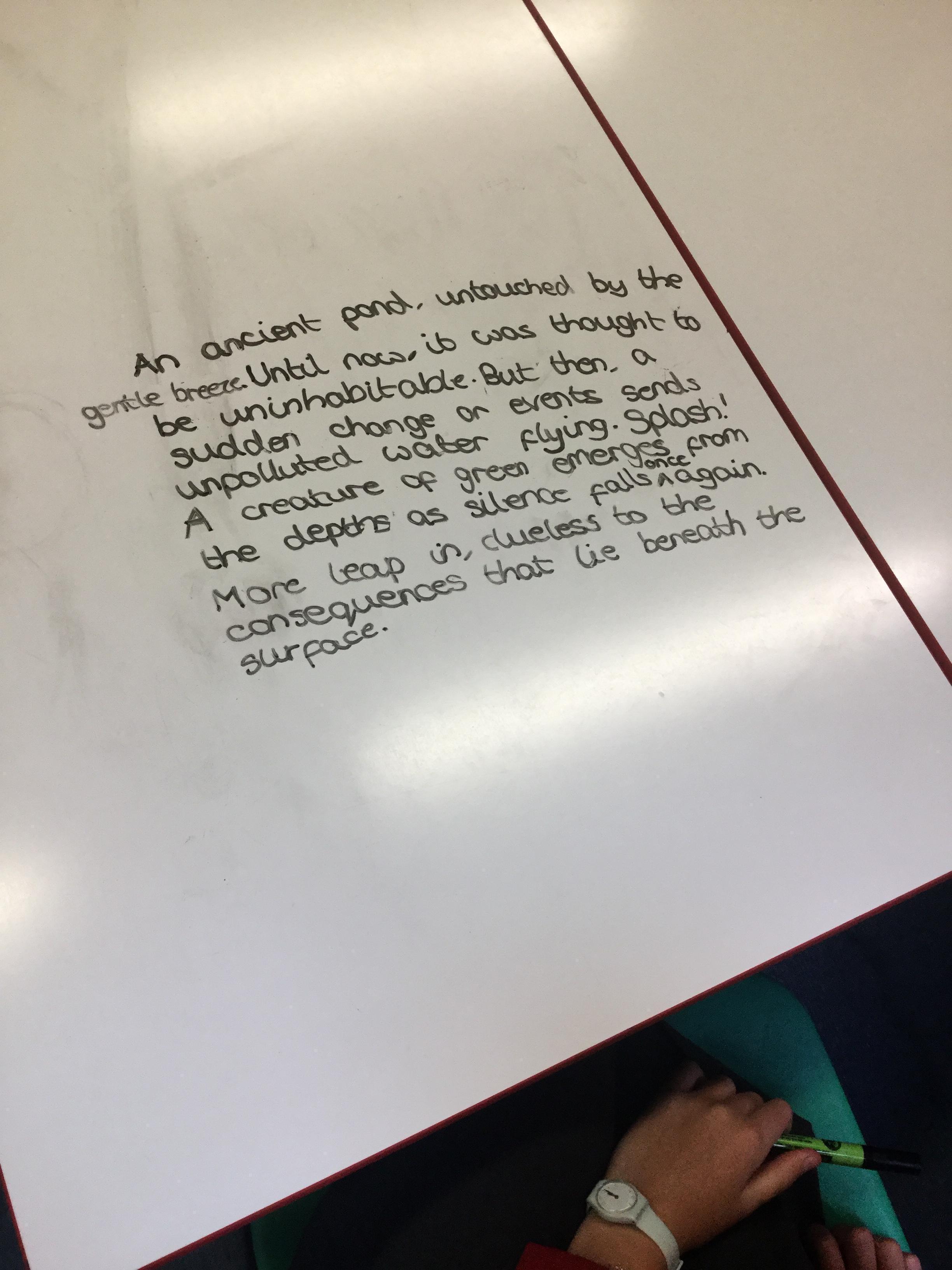 In our Let’s Thin English lesson we were trying to classify and identify the differences between poetry and prose. We then looked at some text and tried to decide the category writing it belonged to. After much discussion we tried to make the text more poetic before using the text as a basis for a narrative - which we wrote collaboratively in our Let’s Think groups.
