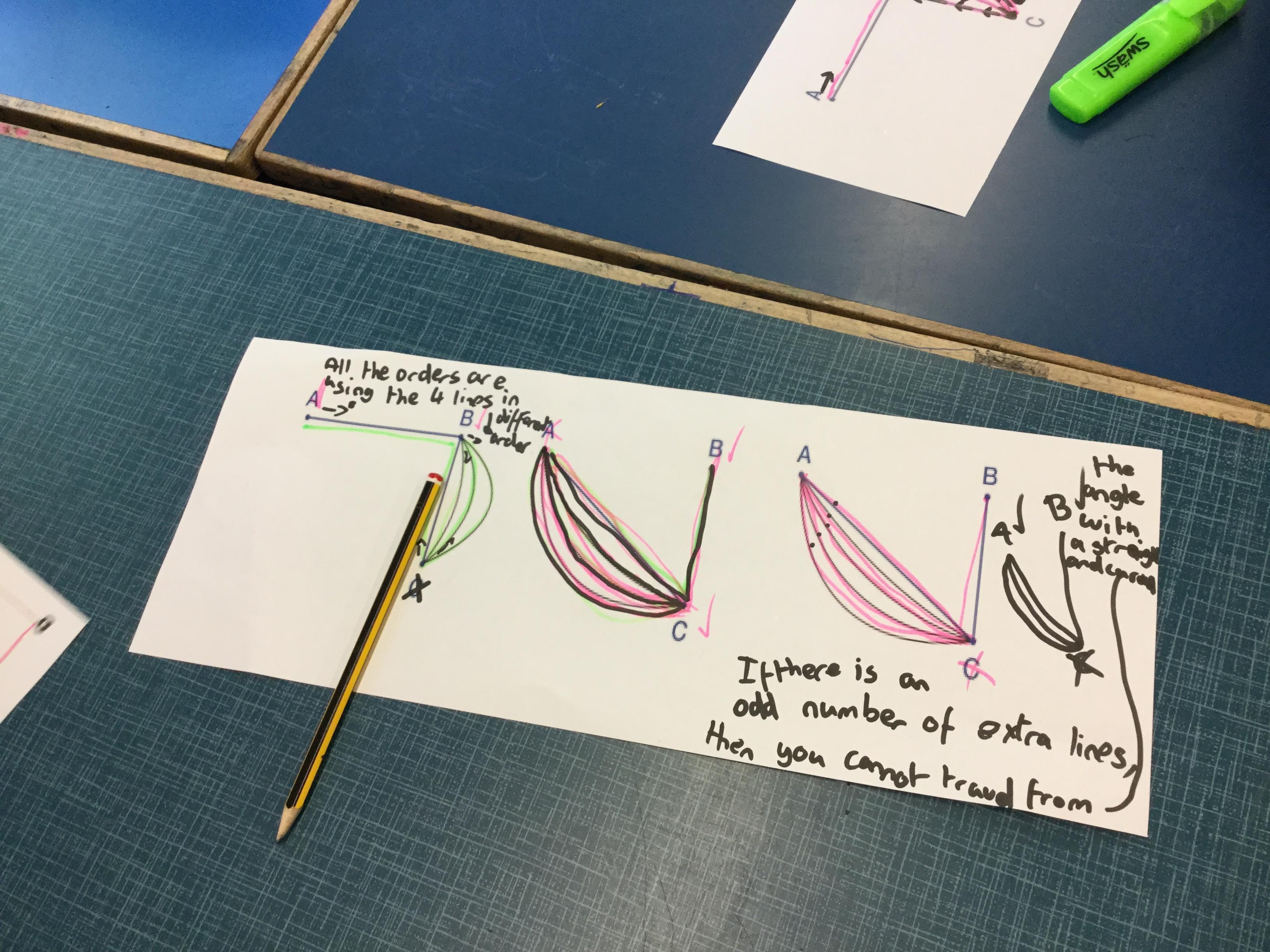 In Let's Think Maths we were looking at traversable networks and formulating rules through discussion and pictorial representations.