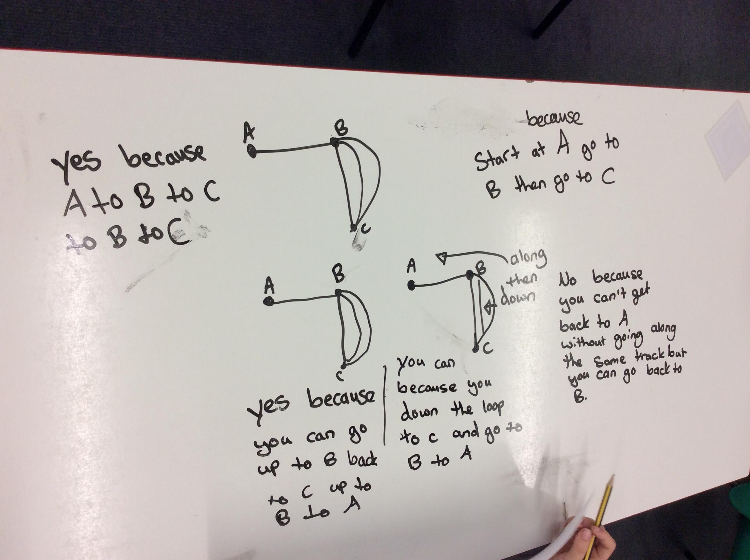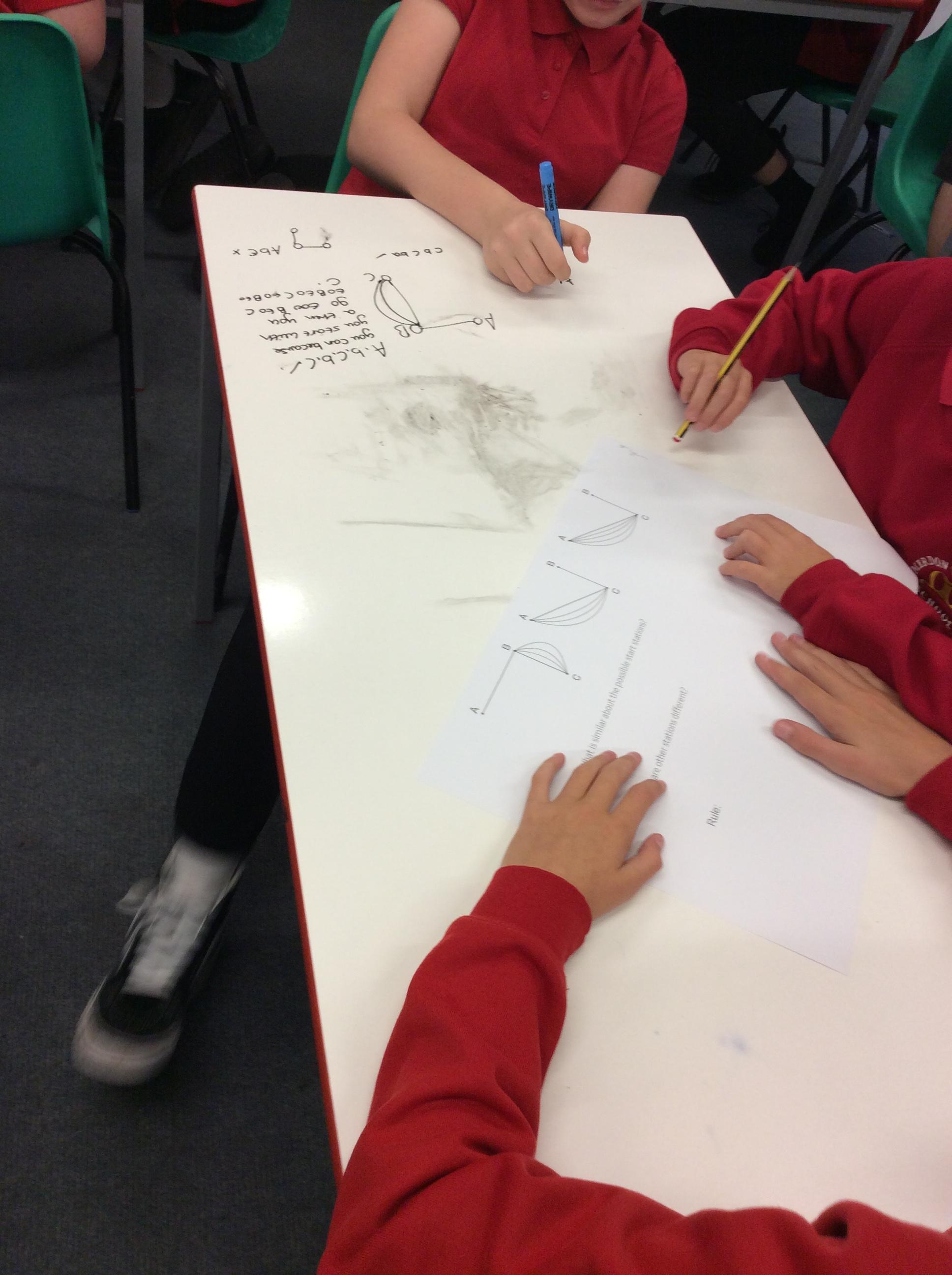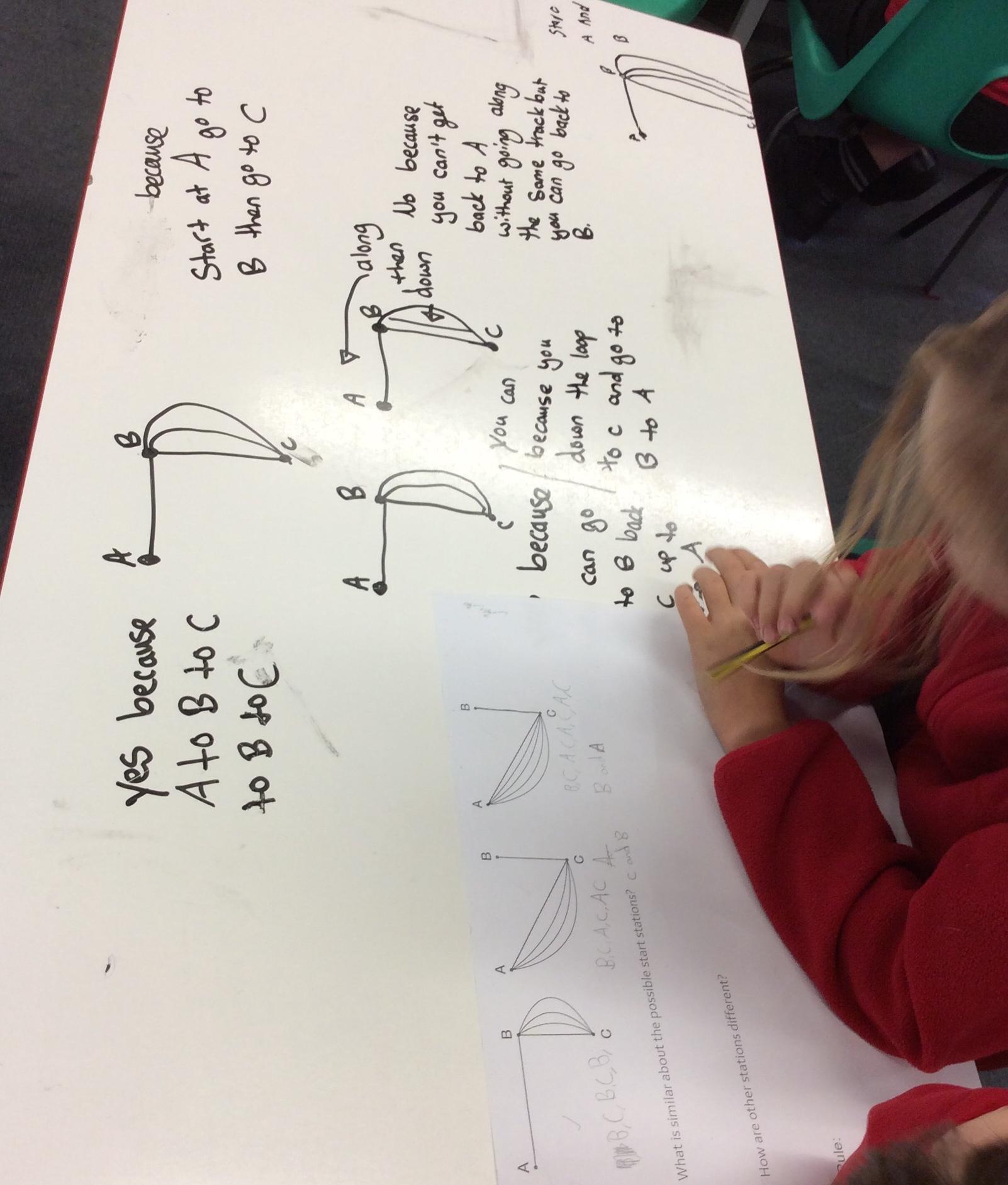 In their Let's Think Maths lesson the children were asked to explore the idea of different tram networks. They had to work out whether different networks were traversable or not. They explored several ideas and then had to come up with a rule that would describe a traversable network and then prove it.