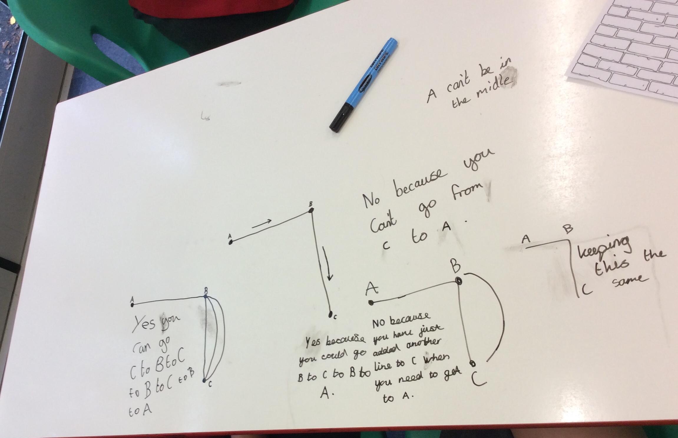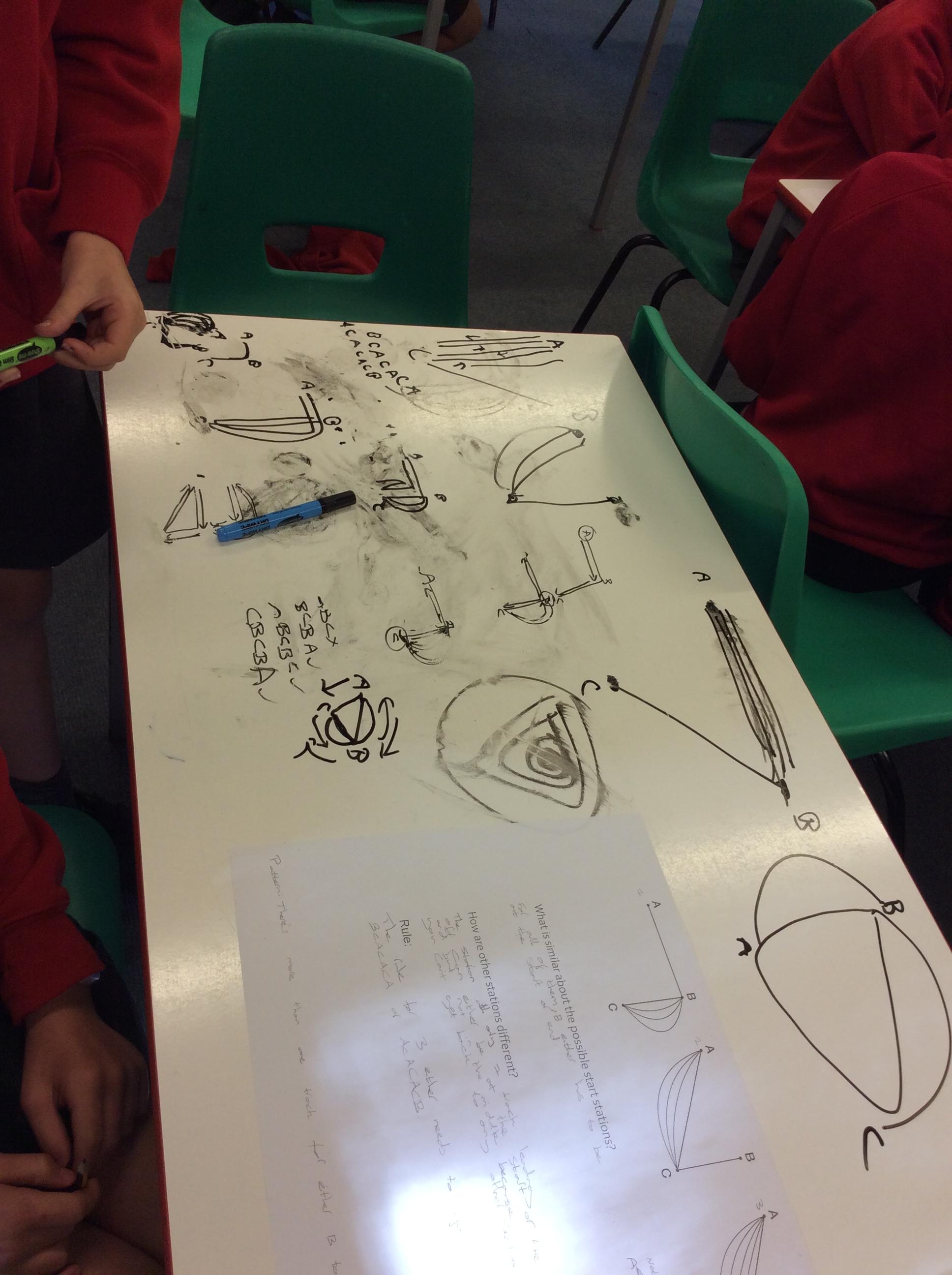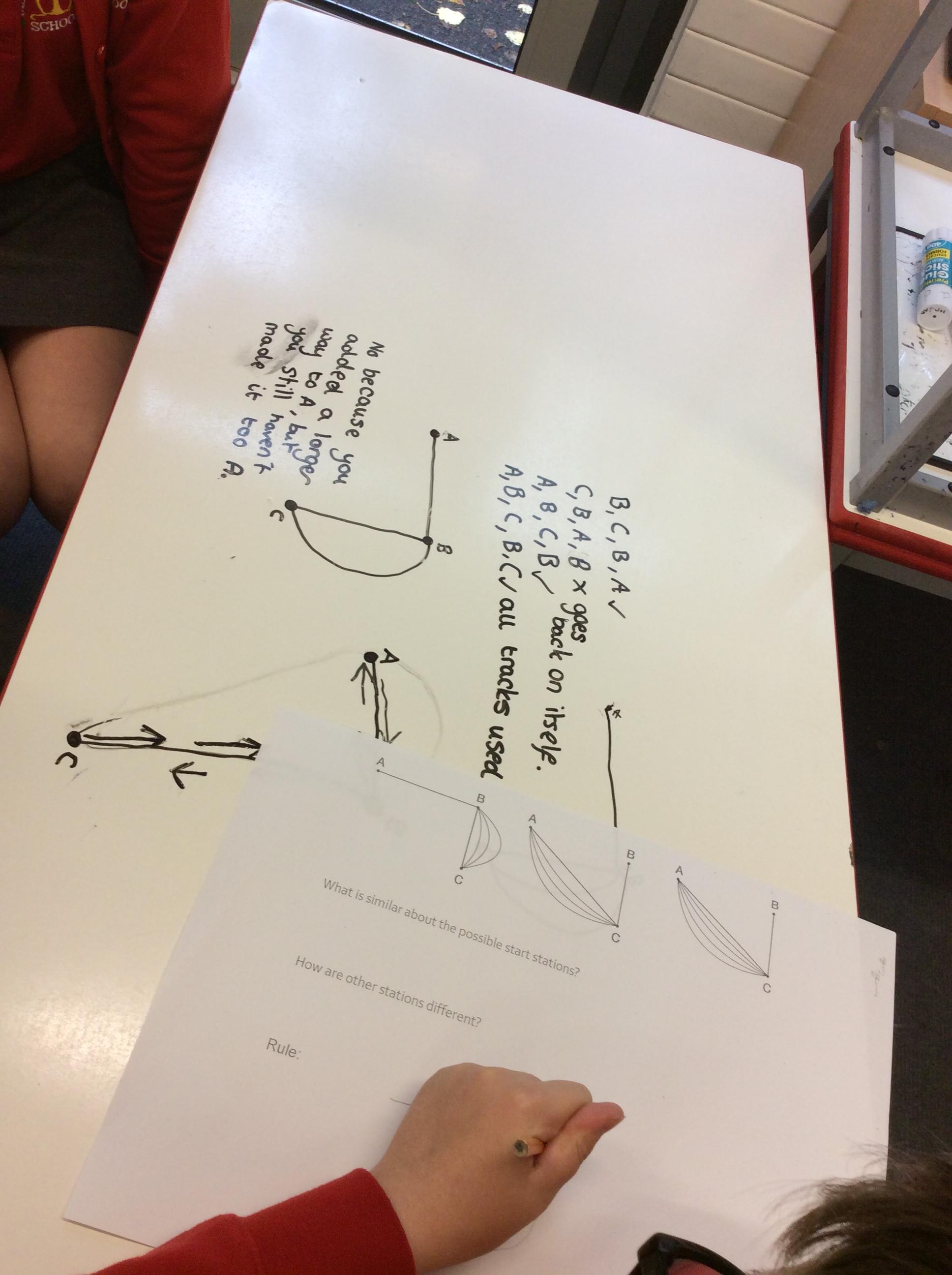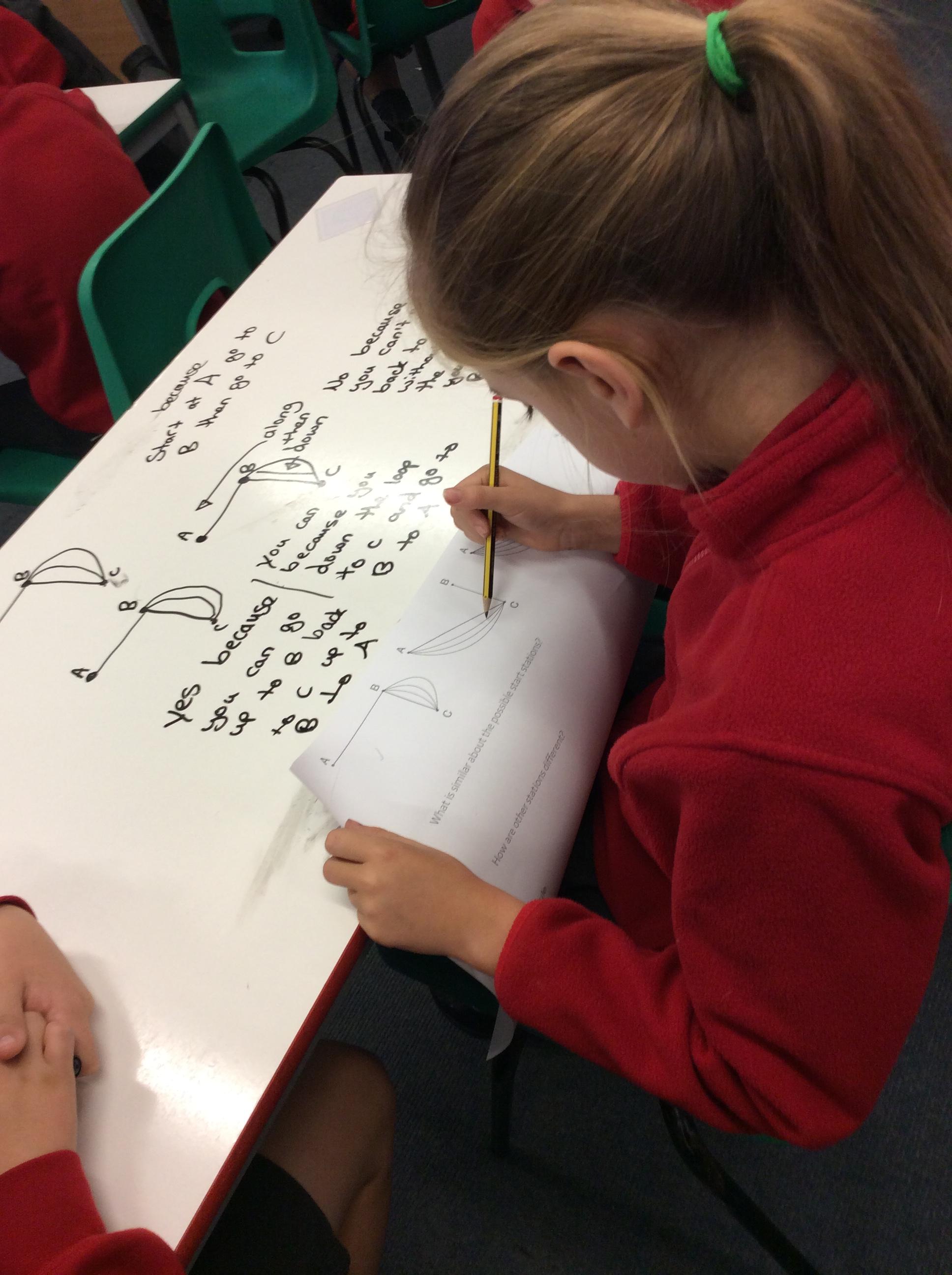 In their Let's Think Maths lesson the children were asked to explore the idea of different tram networks. They had to work out whether different networks were traversable or not. They explored several ideas and then had to come up with a rule that would describe a traversable network and then prove it.