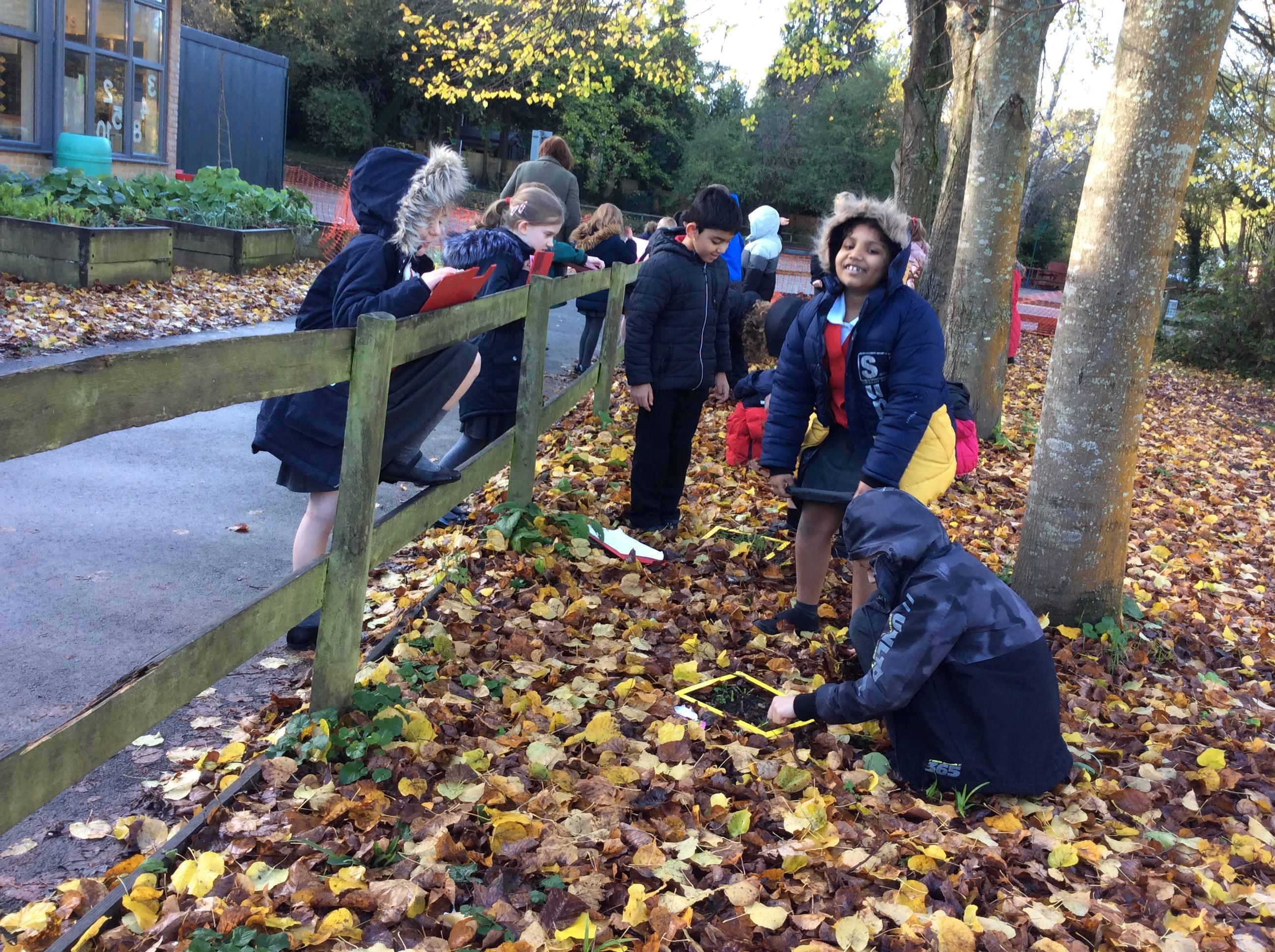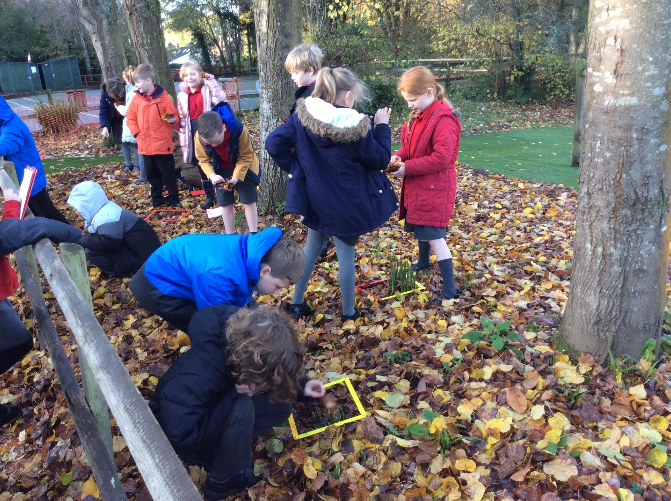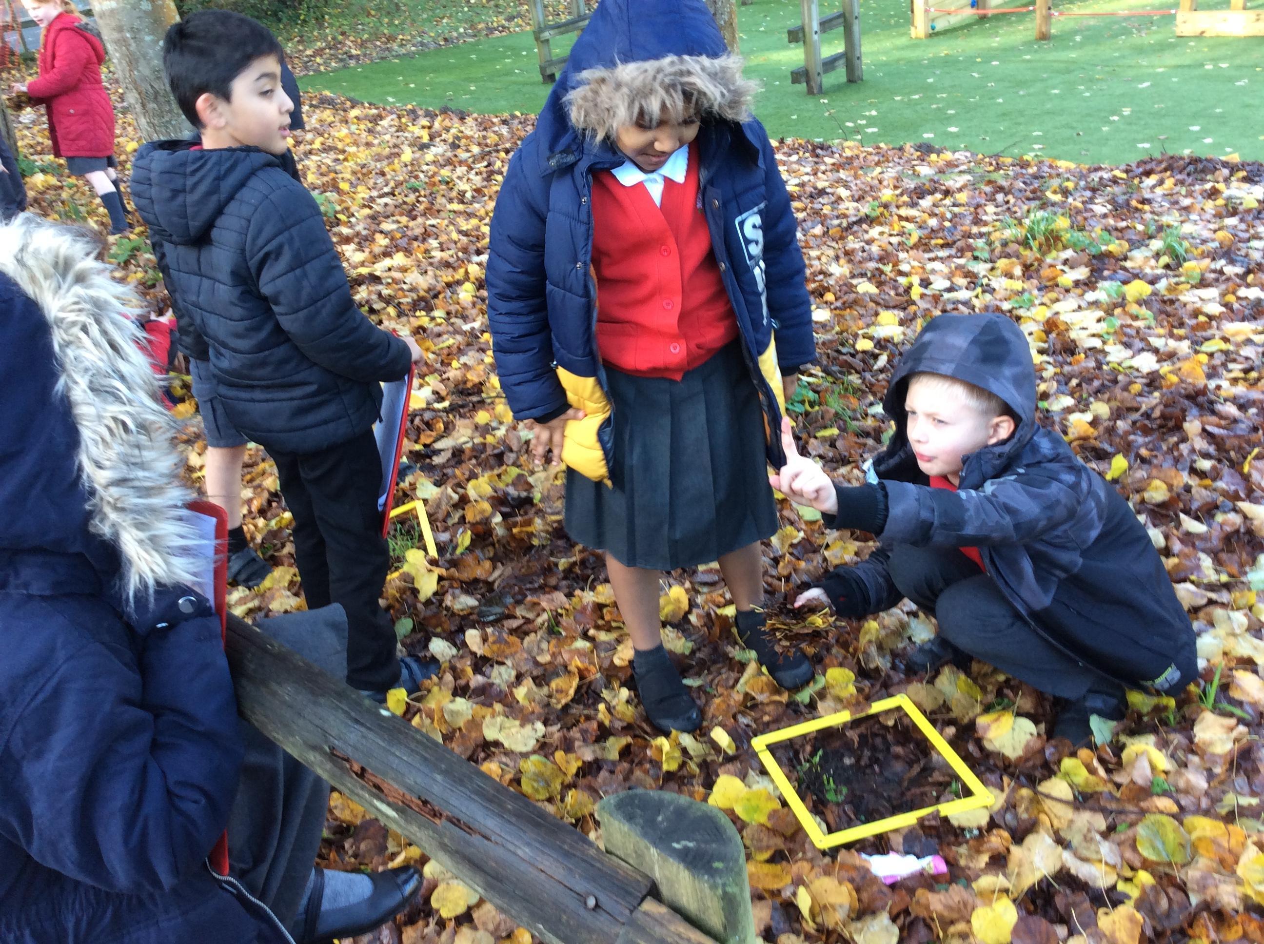Our first visit to our longitudinal study site.  We used our observational skills and collected information by counting different things inside a Quadrat.