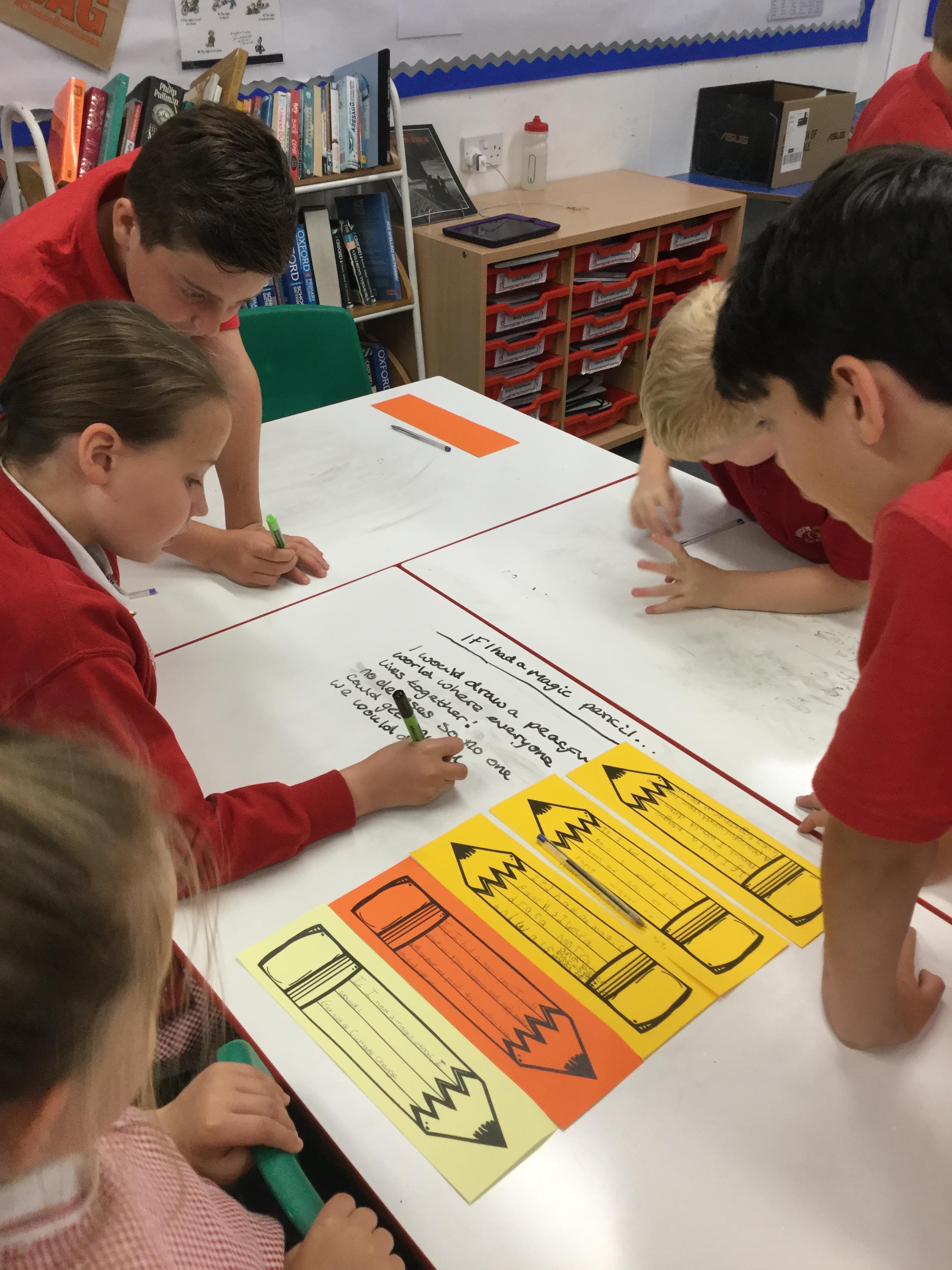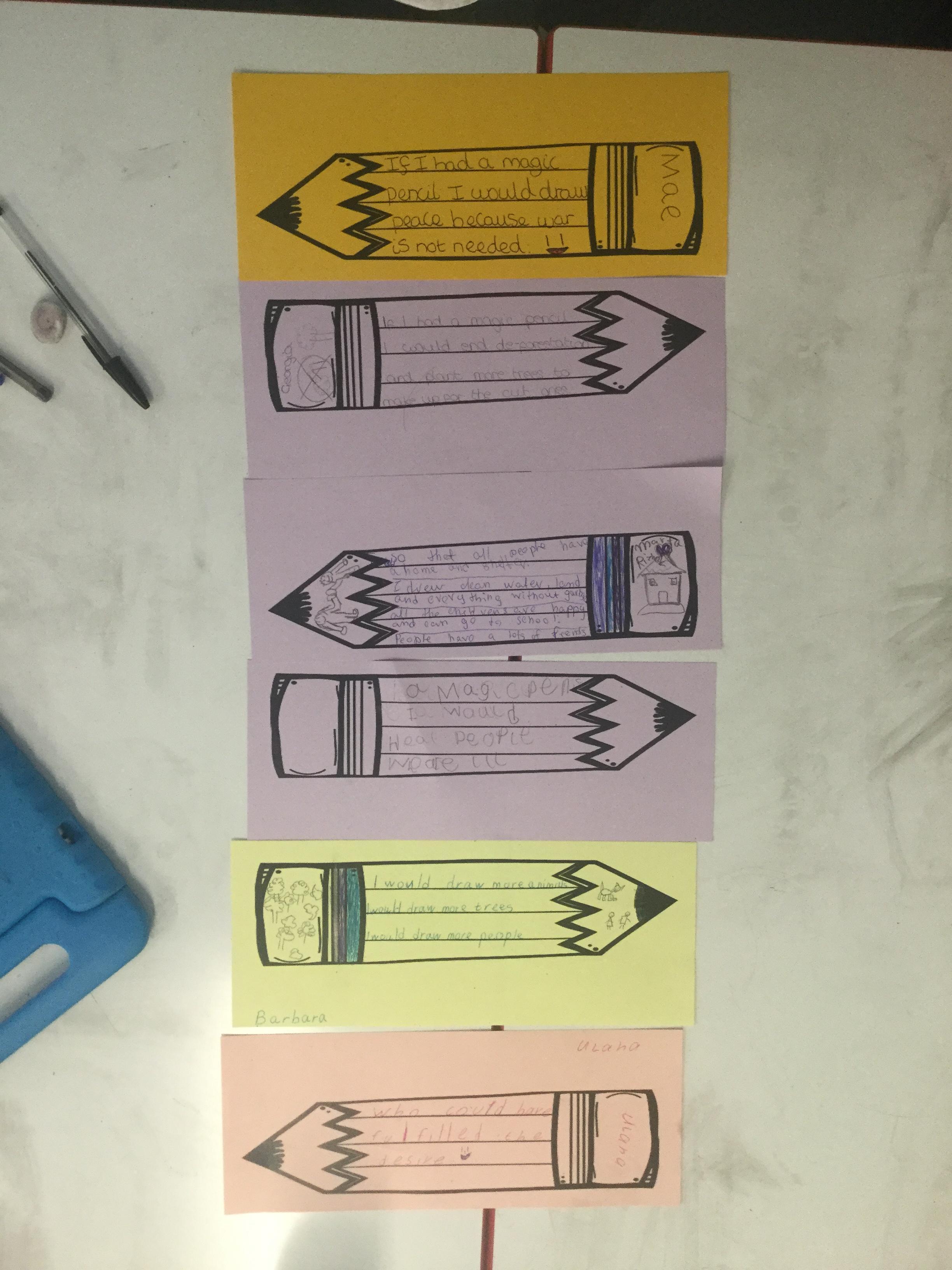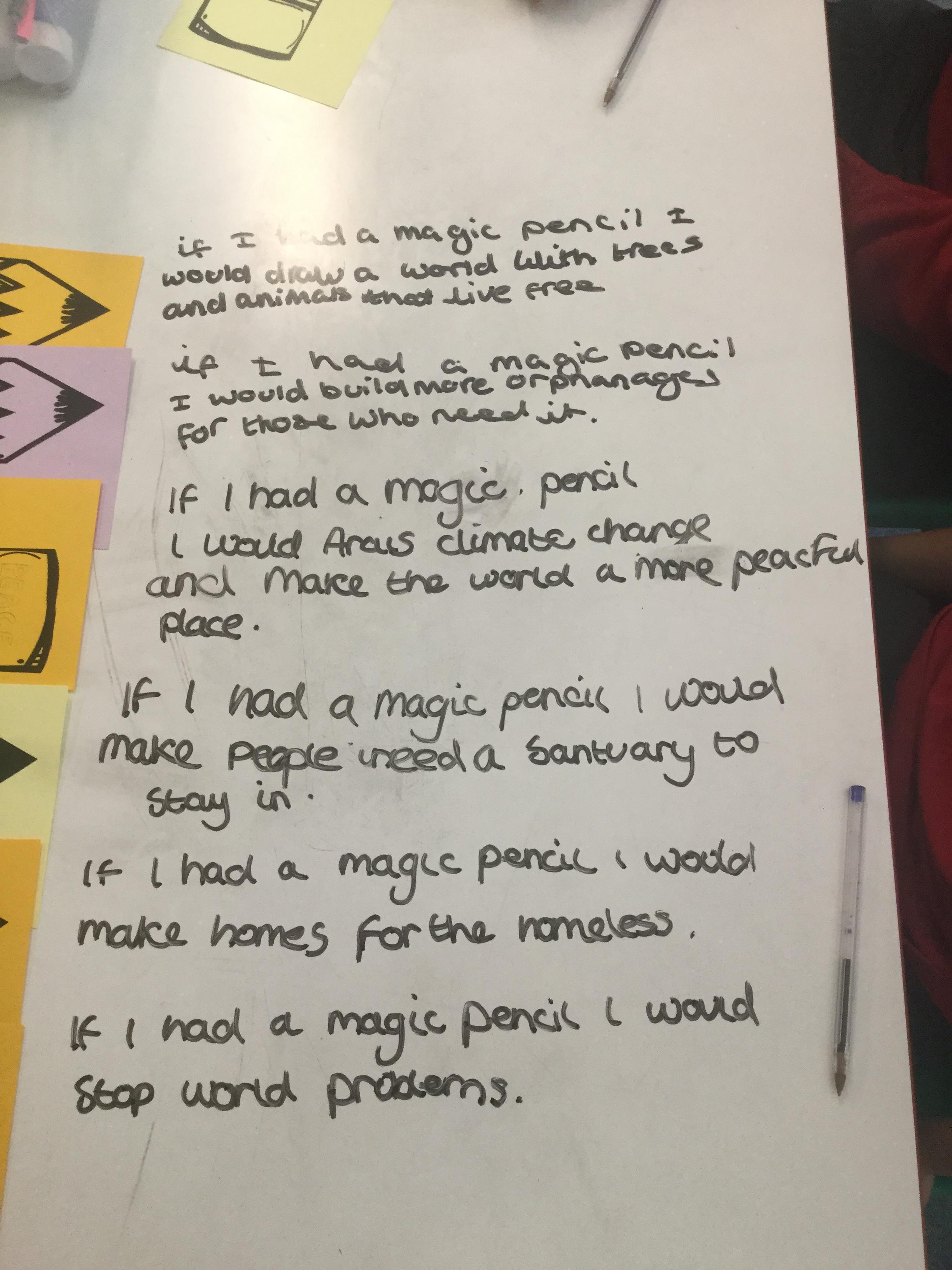 The children then thought about the words in her book and imagined what they would wish for if they had a magic pencil.