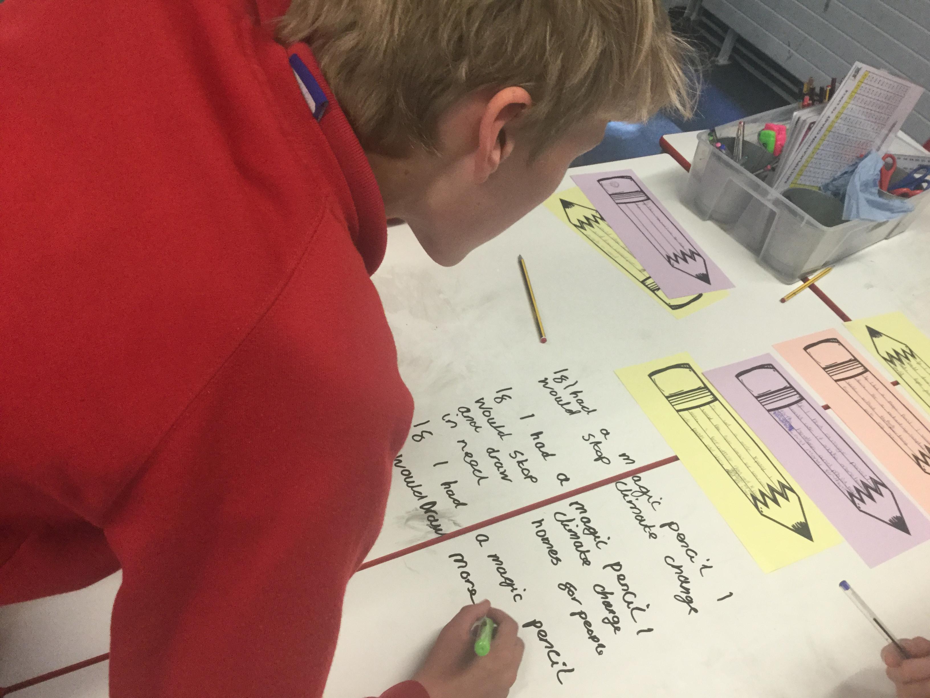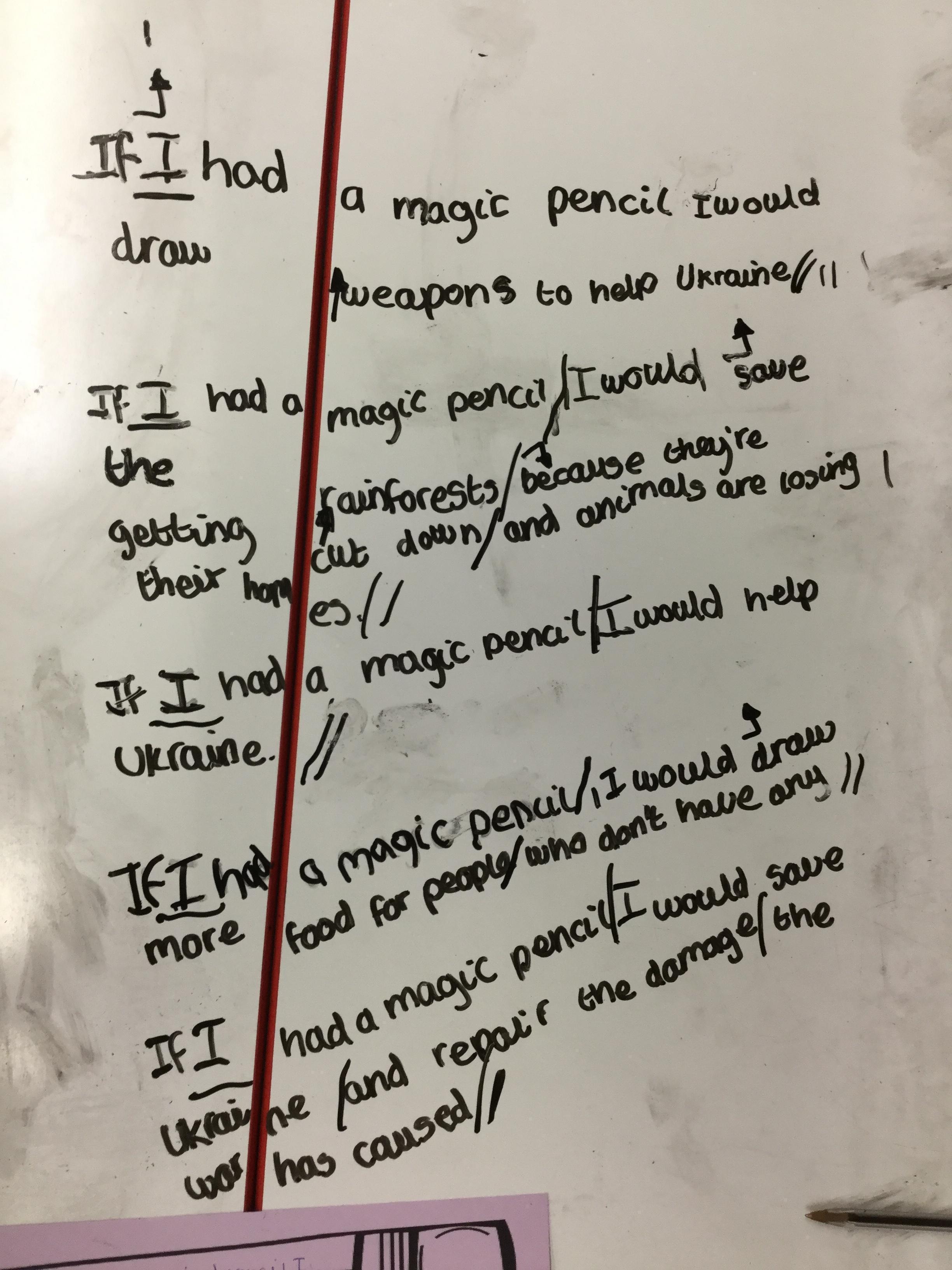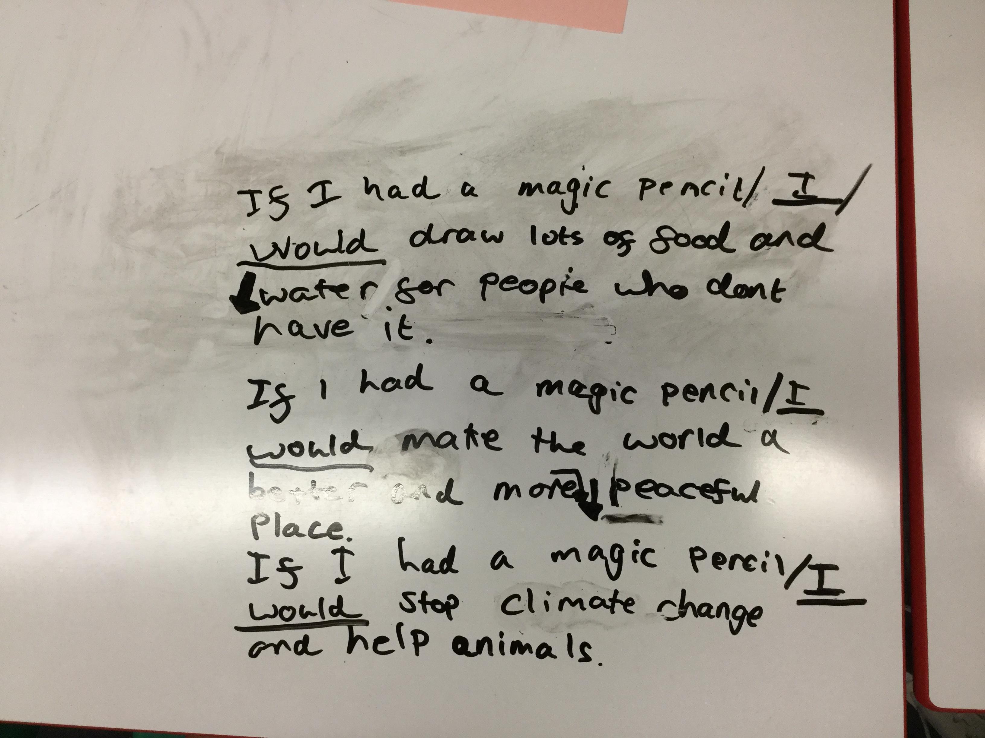 The children then thought about the words in her book and imagined what they would wish for if they had a magic pencil.
