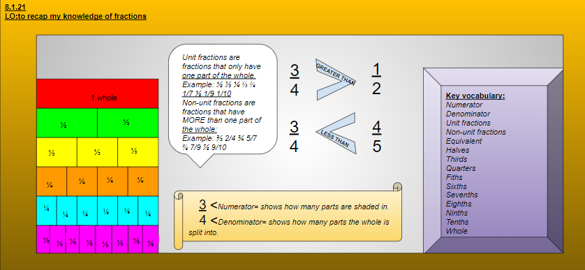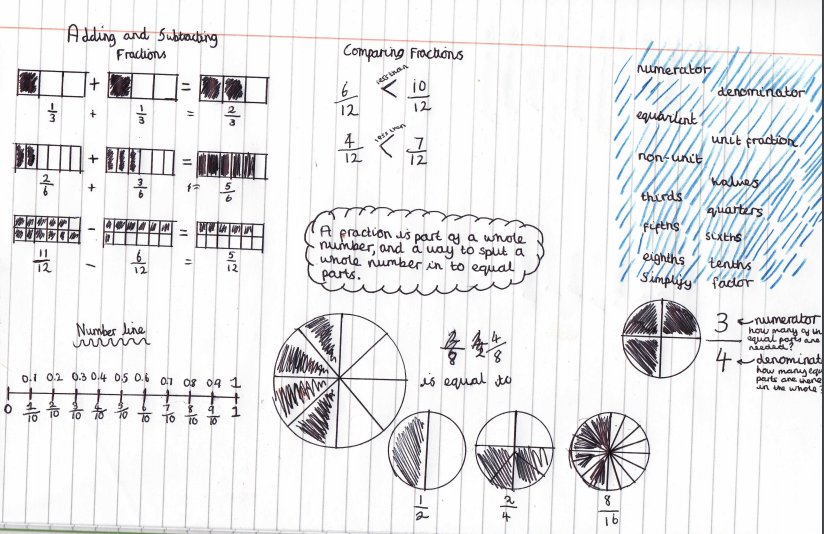 To begin our Remote Learning in Maths, Year 6 were asked to remember the different areas of fractions that we covered before the Christmas break and to create knowledge organisers that demonstrate their prior learning.