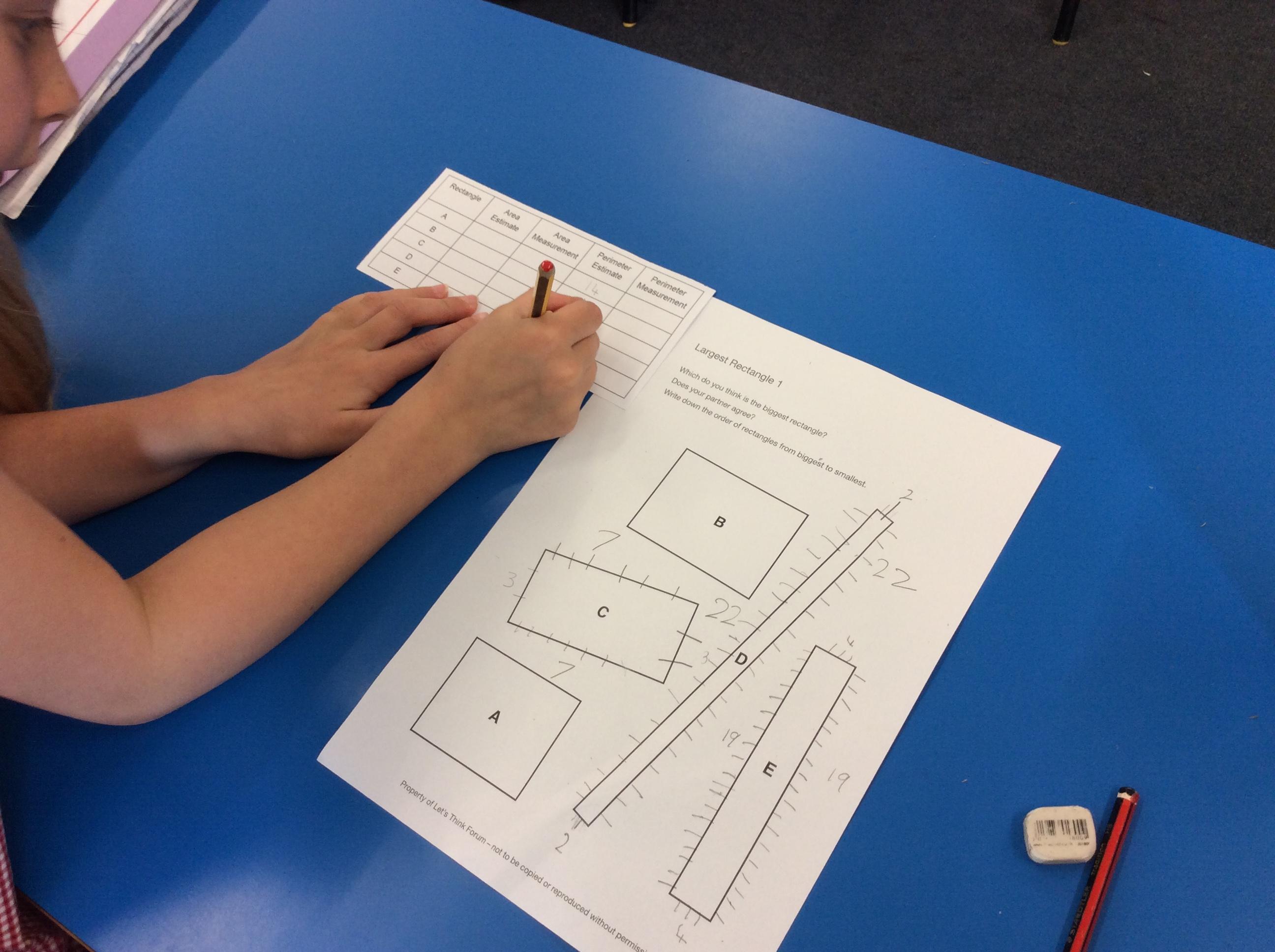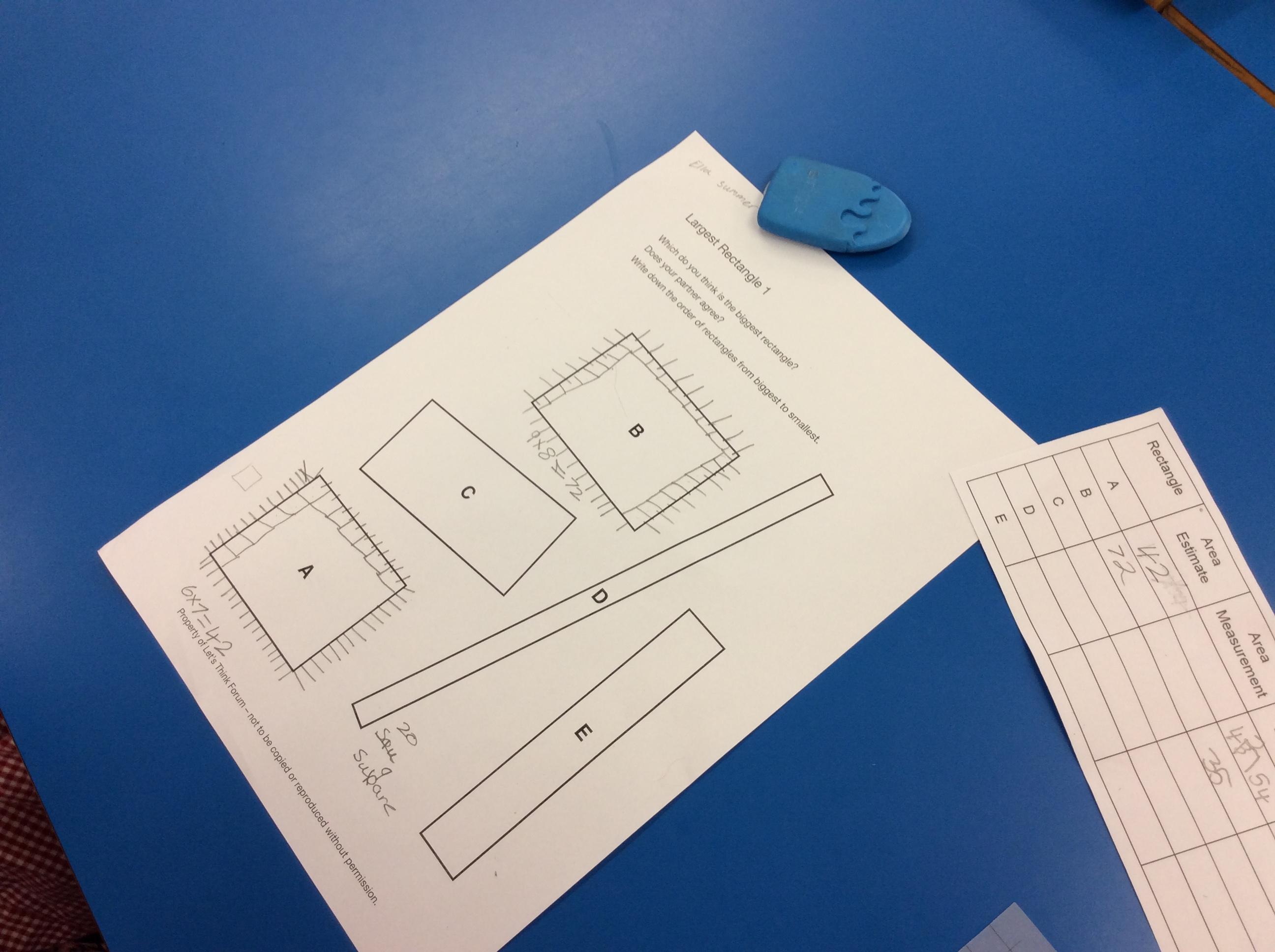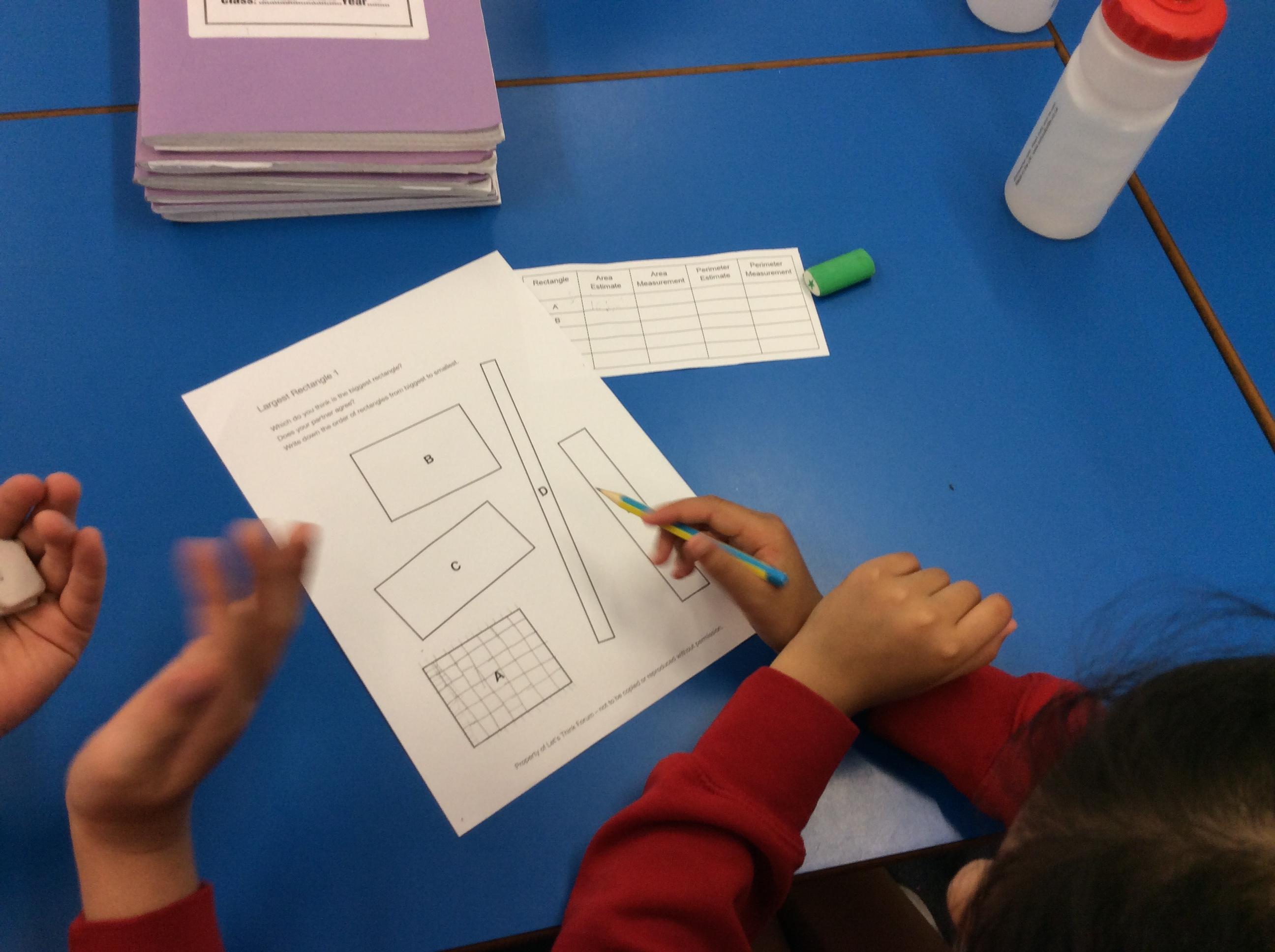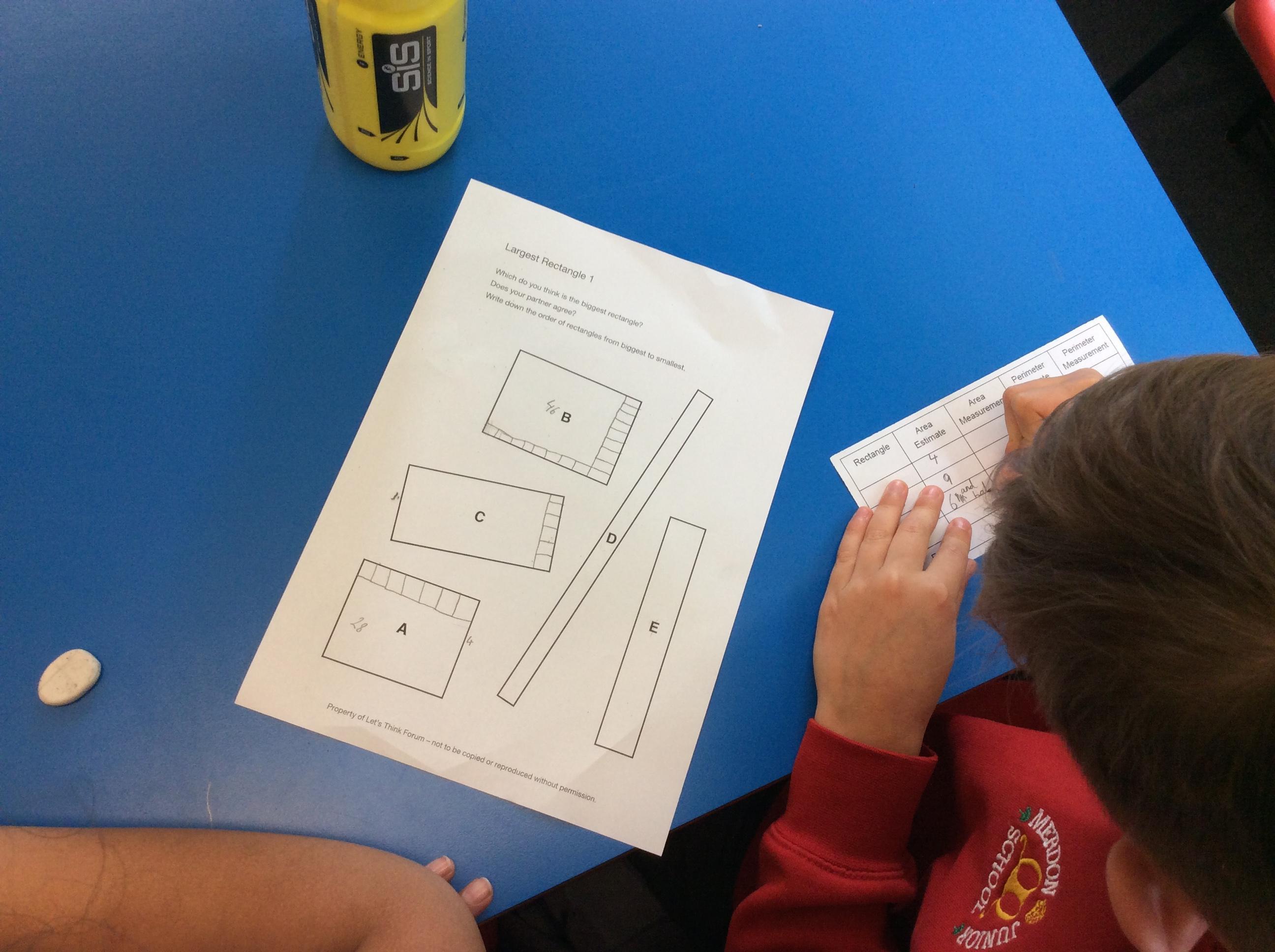 We are doing some fabulous Let’s Think lessons in maths where we can explore some really interesting maths idea and have fun at the same time!  This term so far we have explored the question “which is the largest rectangle?”  We work in pairs and groups to ask questions and discuss ideas.
