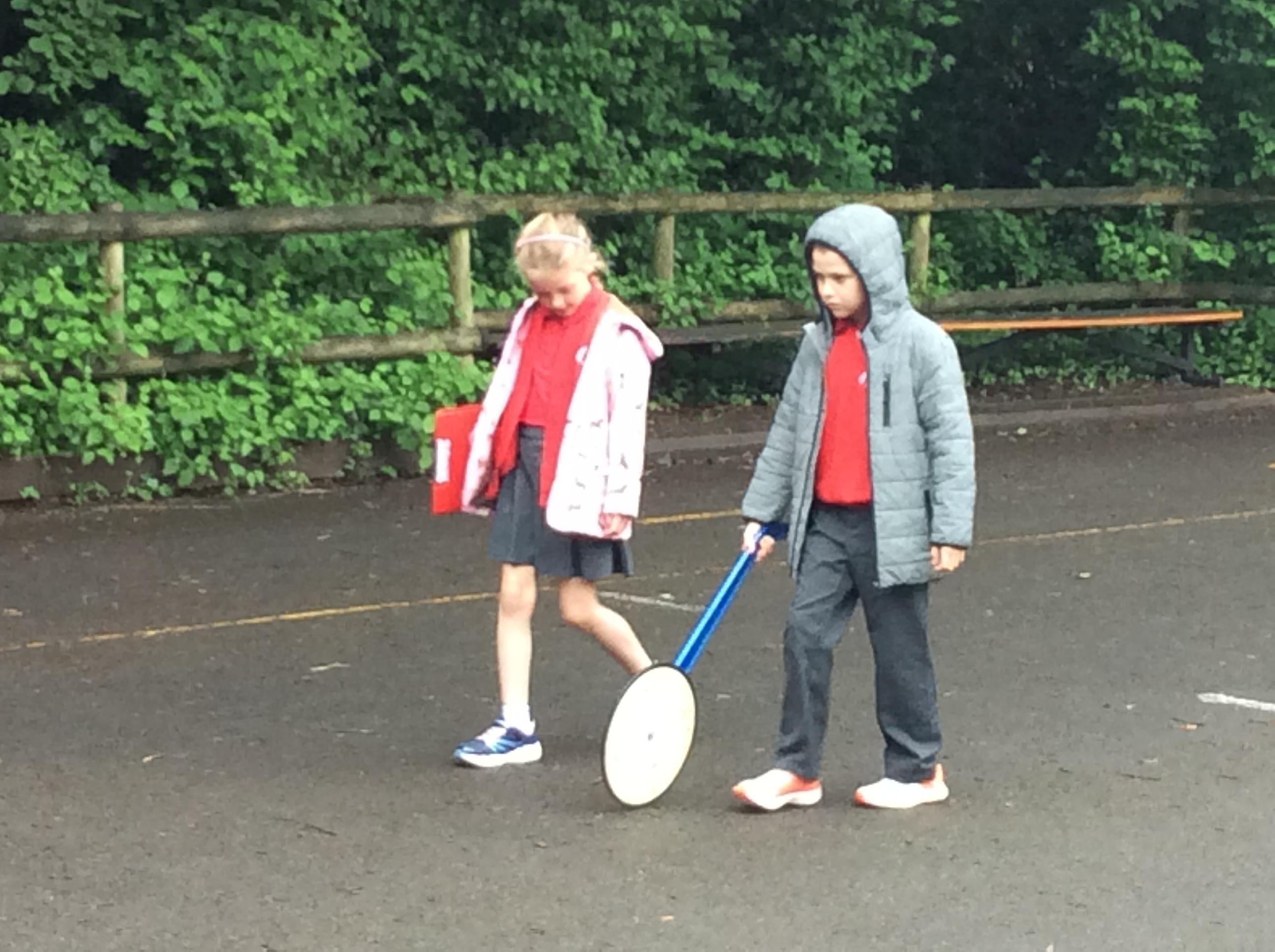 This week we have been looking at measures and thinking about how to measure larger spaces.  We practices using the metre sticks and trundle wheels to measure outside.  We tried to record in metres and centimetres.
