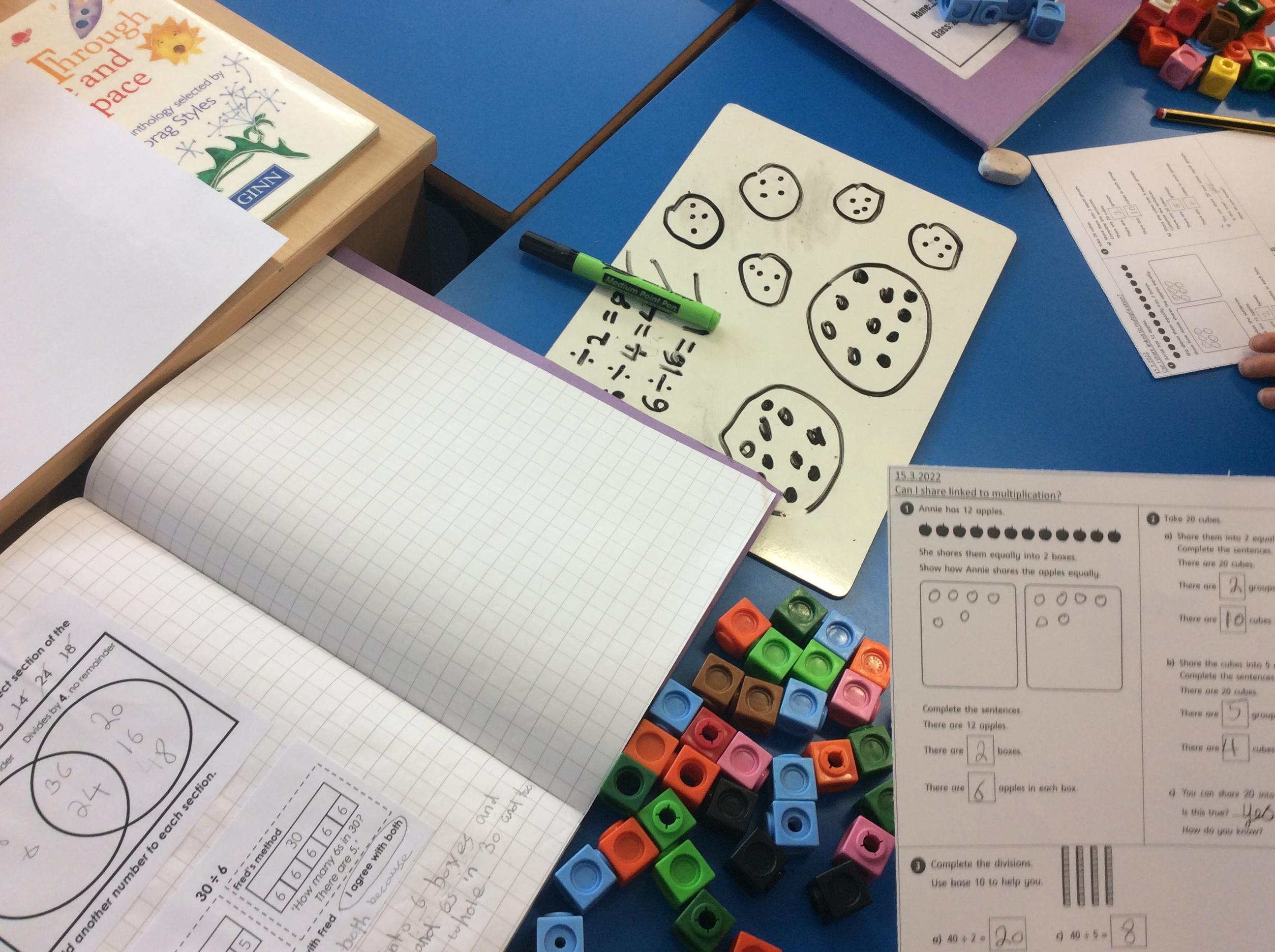 This week we are looking at multiplication and division. We explored arrays and have been working hard on explaining and reasoning in our apply tasks. Sometimes we use equipment to help us and if we are stuck, we can use the coaching questions on the working wall to help us solve a problem. Here we are in action...